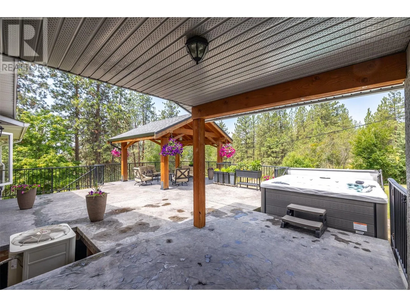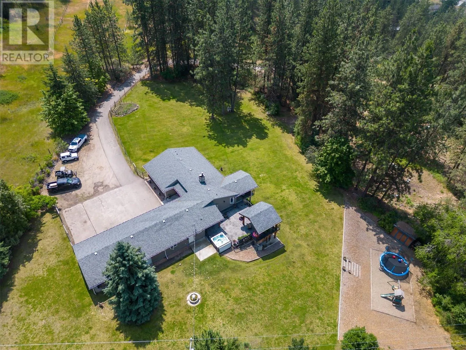 Welcome to your private paradiseâan exceptional 6+ acre package nestled in nature. The walkout rancher offers well over 3,000 sq ft of thoughtfully designed living space. The main level features 3 bedrooms, including a luxurious oversized primary with a 4-piece ensuite, under cabinet lighting and a jetted rain shower. A formal dining room, cozy living area with a striking stone fireplace, and a chefâs kitchen with wall oven, quartz counters and a massive island take family gatherings to the next level. Step directly onto your stamped concrete patio, where two covered seating areasâincluding a custom fir pergolaâand a hot tub await. Perfect for hosting or relaxing in total privacy. The walkout lower level offers a den, full bath, spacious games/rec room, gym, and ample storage, all with a wall of windows showcasing the peaceful, tree-lined yard. The fully fenced yard is a picture perfect 10/10. The property features several flat areas and provides space to create your dream lifestyle. Many other extras here including a Big Blue R/O & UV filtration system, central A/C, irrigation, new HWT, and don't forget the 4-car attached garage. Peace, privacy, and possibility await. (id:27476)