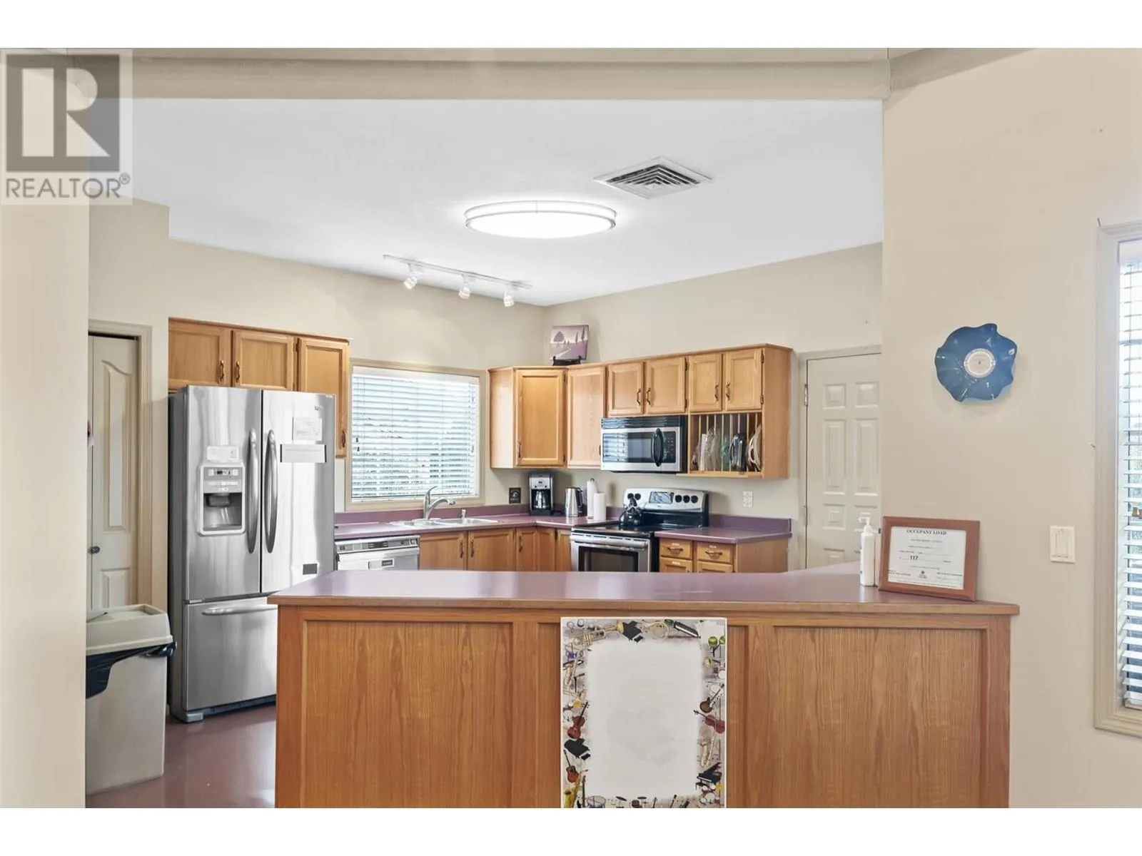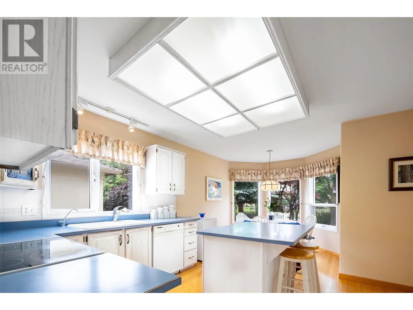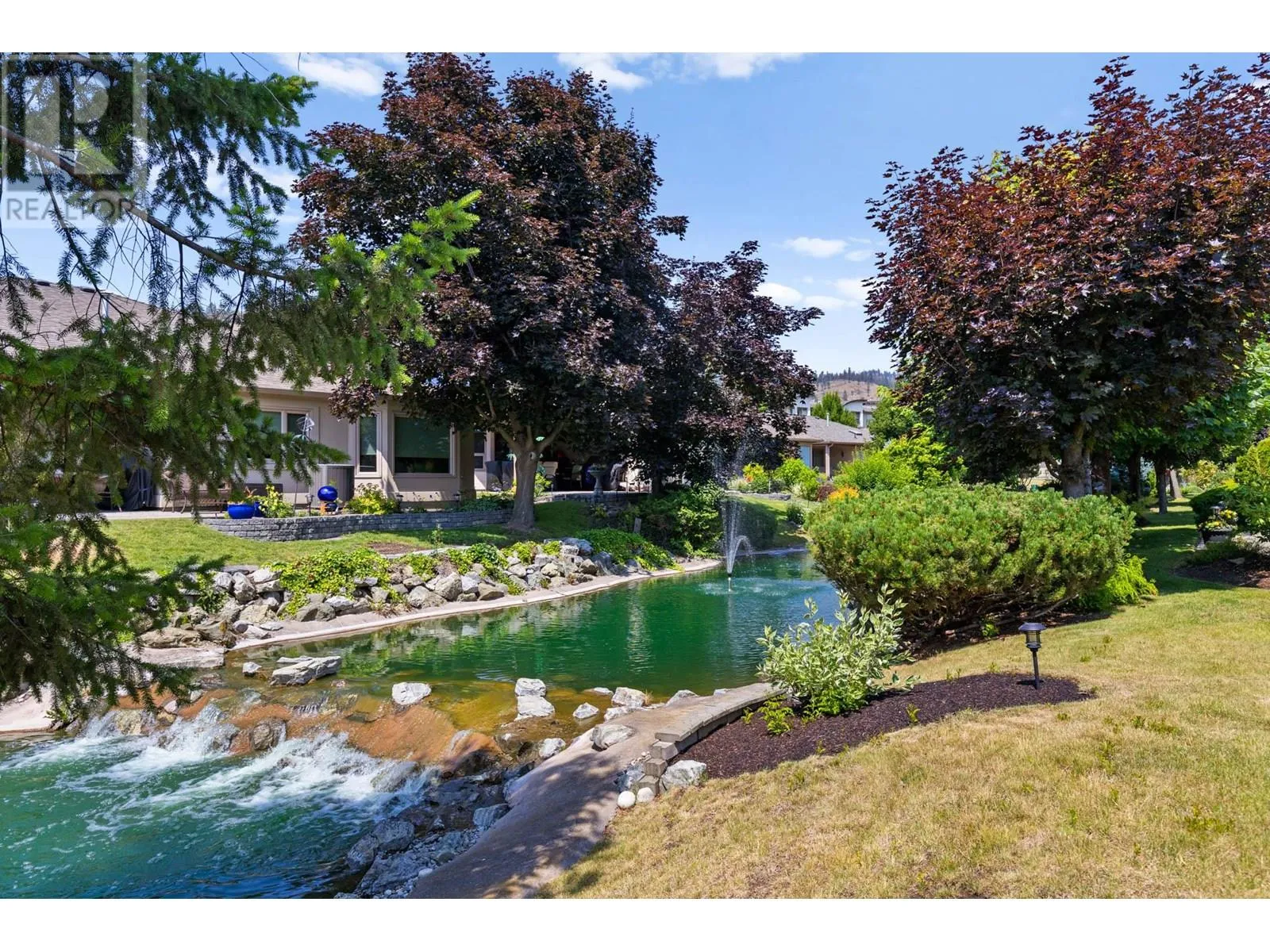 Experience the convenience of one-level living in this spacious standalone home in Sandpointe, ideally situated to capture afternoon sun and the soothing sounds of the backyard waterway with small rapids. Meticulously maintained, this rare home offers an excellent and versatile floor plan featuring a generous sized primary bedroom, an additional bedroom, a dedicated home office, a separate den, a formal dining room, and a formal living roomâproviding exceptional space for entertaining and having separate spaces to relax. The kitchen features a center island and a breakfast nook with bay windows overlooking the water. A sliding glass door from the kitchen leads to a private patio with peaceful views, perfect for grilling & dining, with an awning for shade. For added ambiance, the den has a gas fireplace. The primary bedroom offers ample space for a king-sized bed, full furniture set, a seating area, with an adjoining 4-piece bathroom. The patio provides views of the well-manicured lawns. A new furnace was installed in 2023, ensuring comfort and efficiency. This home includes a two-car garage and is located in one of Kelownaâs premier 55+ gated communities, Sandpointe. Residents enjoy an exceptional clubhouse with a games room, library, fitness center, and indoor and outdoor pools. Conveniently located in Glenmore, it's within walking distance to medical facilities, groceries, and Brandtâs Creek Greenway. Enjoy the best of Sandpointe living in this beautifully appointed home. (id:27476)