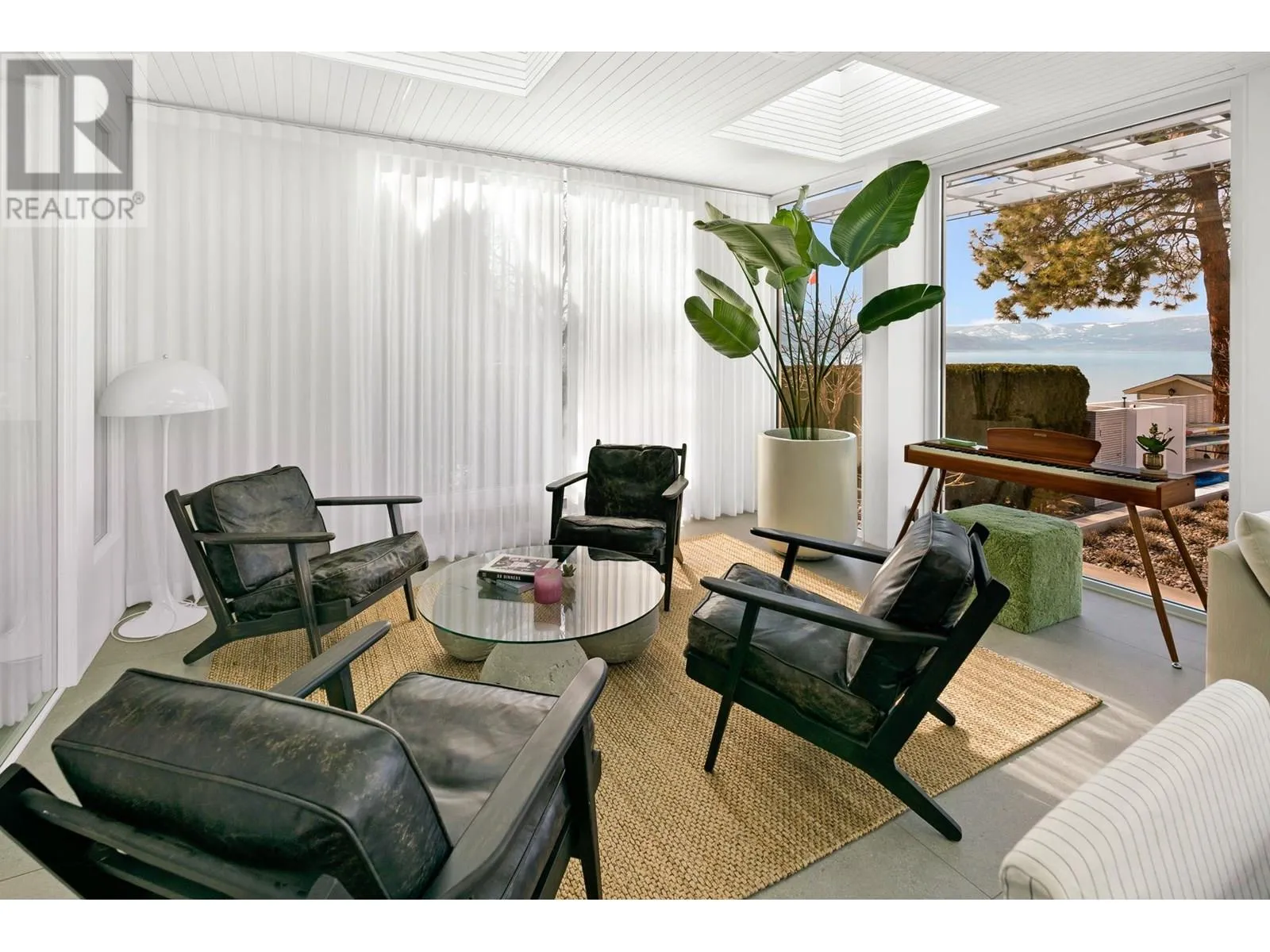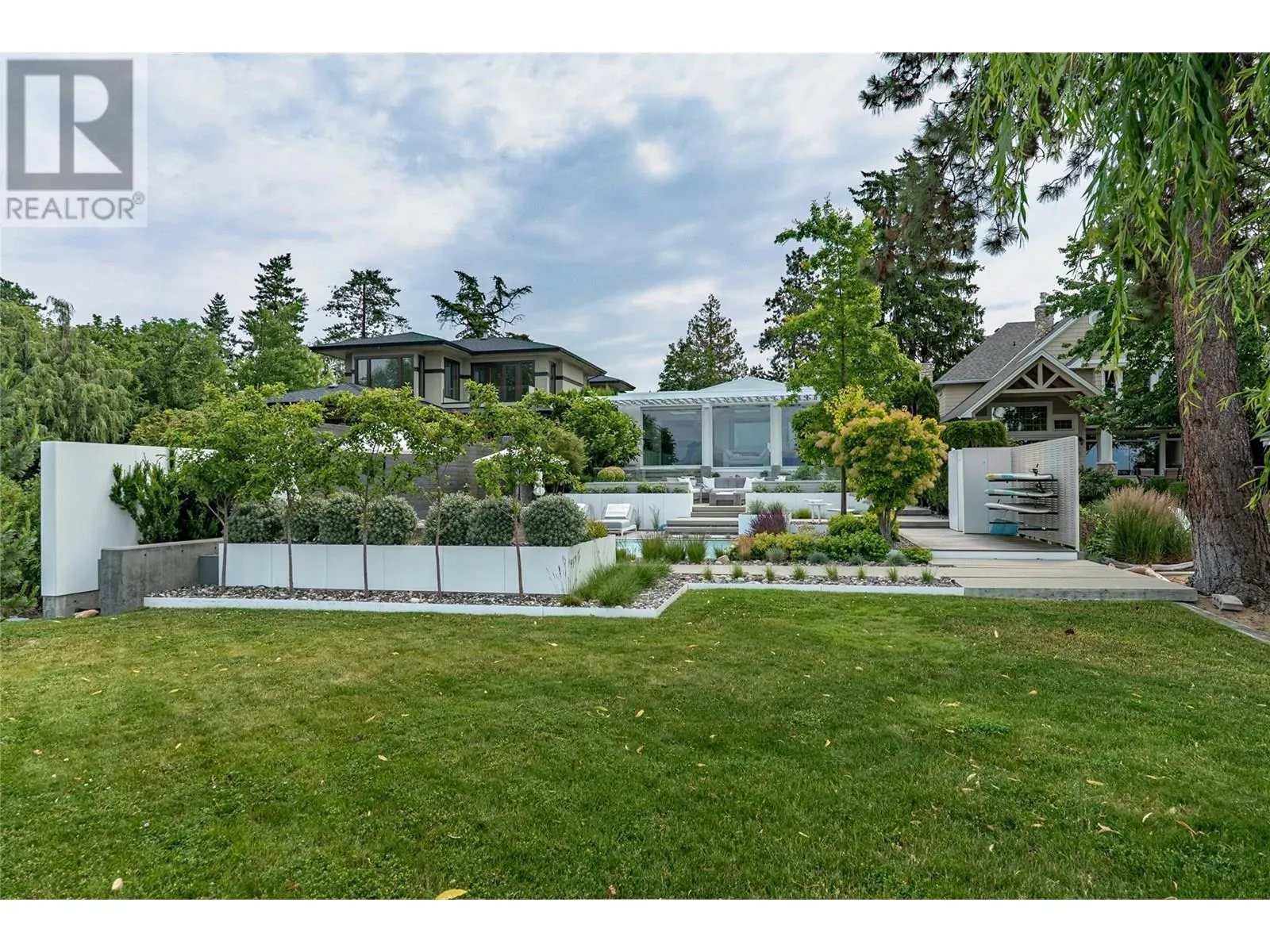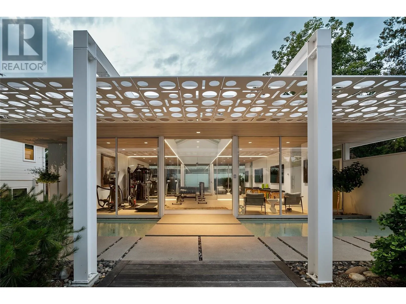 Welcome to your own lakeside sanctuary, where luxury meets tranquility in this one-of-a-kind retreat. Originally built as a 1979 Pan-Abode beach home, this property has been reimagined into a stunning modern oasis with every detail thoughtfully curated. From the edge-grain cedar finishes to the fully integrated smart home features, this home is designed to elevate your everyday living. The sleek, contemporary kitchen and spa-inspired bathrooms reflect a design that effortlessly brings the outdoors in. A standout feature is the expansive sunroom, flooded with natural light thanks to skylights and oversized windows, complete with hidden speakers and direct access to a BBQ and social patio area. Step outside and youâll find over 90 unique seating areas, each offering a different perspective of the landscaping and lake. The outdoor fire table with LED lighting and Sonos sound creates an inviting ambiance, while a plunge pool and waterfall feature enhance the serene vibe. Wellness is front and centre here. A private 750 sf gym is fully equipped with its own bathroom and steam shower, and the lower-level features an infrared sauna and cold bath spa bringing the feel of a luxury resort right into your home. For those drawn to the lake, paddle out from your private beach or enjoy the new dock, complete with a 4 ton boat lift and Sea-Doo lift. This isnât just a home, itâs a personal escape, a functional work of art, and a rare opportunity to own a slice of Okanagan paradise. (id:27476)