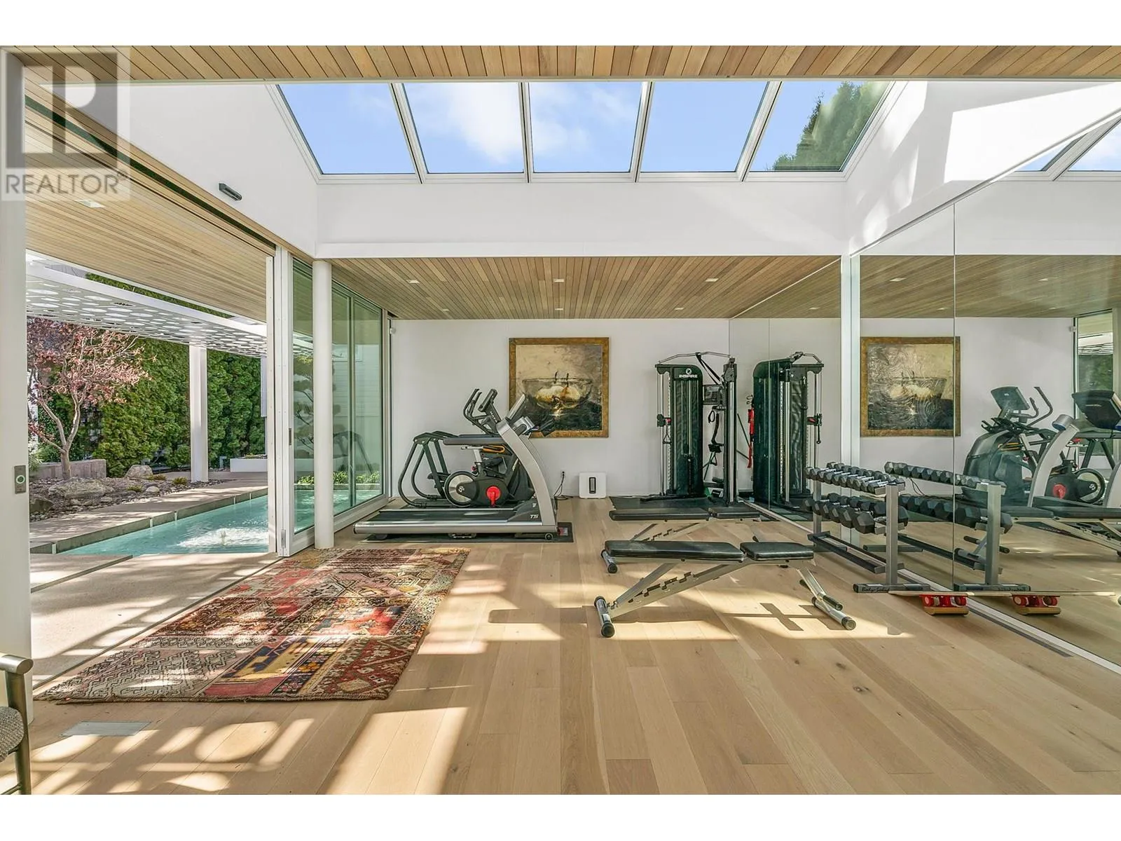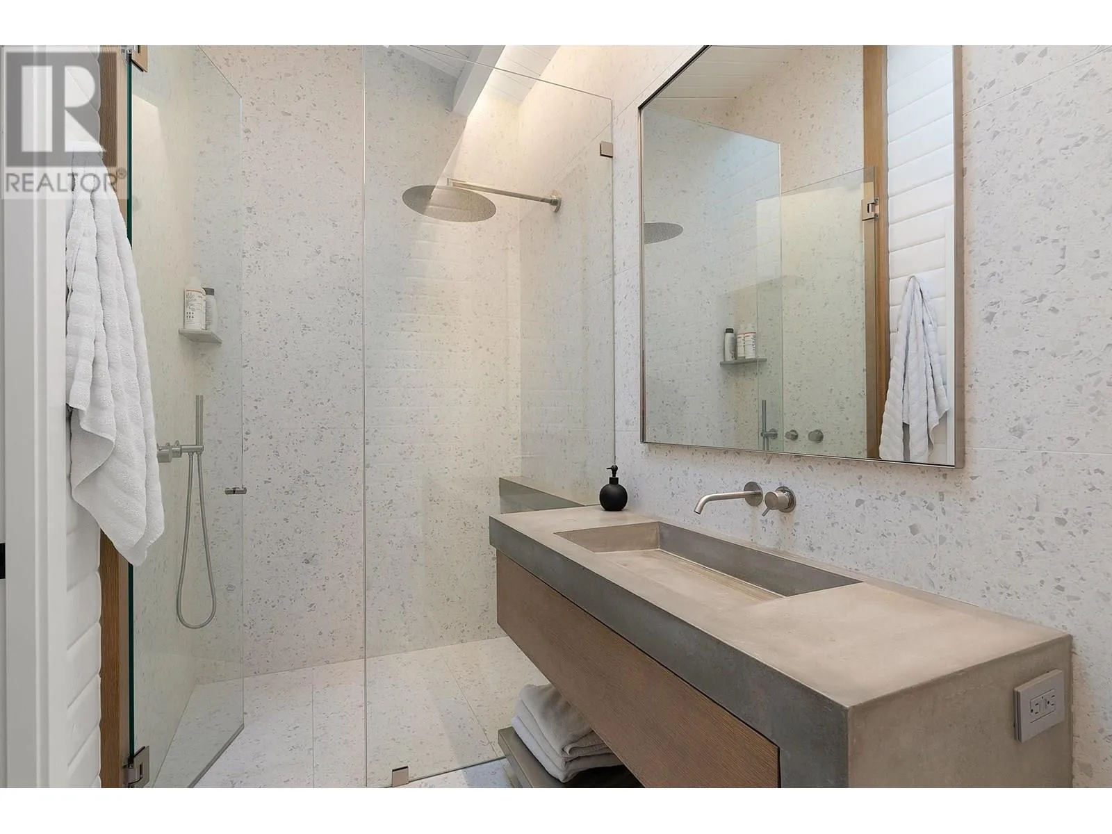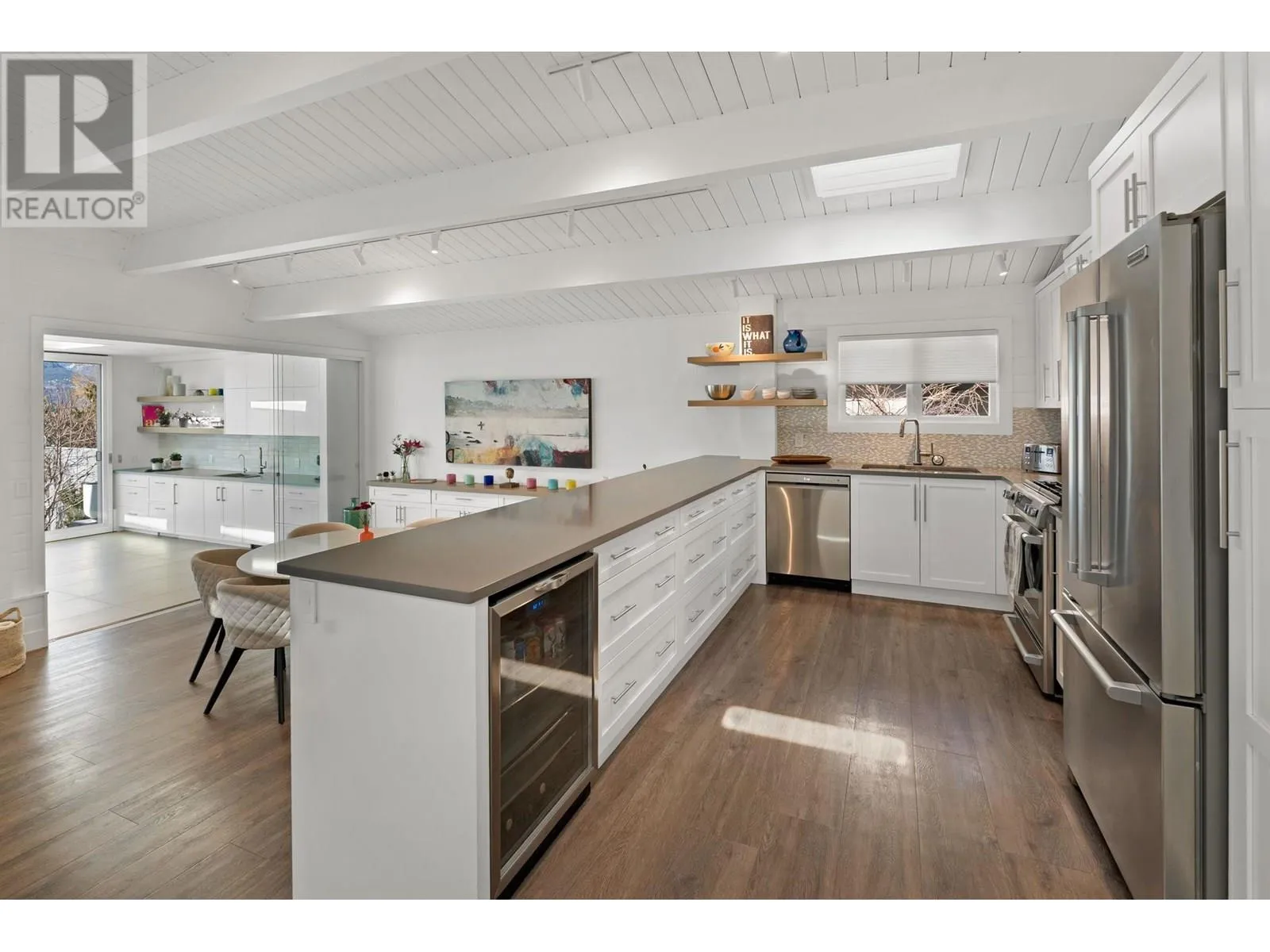 Welcome to your own lakeside sanctuary, where luxury meets tranquility in this one-of-a-kind retreat. Originally built as a 1979 Pan-Abode beach home, this property has been reimagined into a stunning modern oasis with every detail thoughtfully curated. From the edge-grain cedar finishes to the fully integrated smart home features, this home is designed to elevate your everyday living. The sleek, contemporary kitchen and spa-inspired bathrooms reflect a design that effortlessly brings the outdoors in. A standout feature is the expansive sunroom, flooded with natural light thanks to skylights and oversized windows, complete with hidden speakers and direct access to a BBQ and social patio area. Step outside and youâll find over 90 unique seating areas, each offering a different perspective of the landscaping and lake. The outdoor fire table with LED lighting and Sonos sound creates an inviting ambiance, while a plunge pool and waterfall feature enhance the serene vibe. Wellness is front and centre here. A private 750 sf gym is fully equipped with its own bathroom and steam shower, and the lower-level features an infrared sauna and cold bath spa bringing the feel of a luxury resort right into your home. For those drawn to the lake, paddle out from your private beach or enjoy the new dock, complete with a 4 ton boat lift and Sea-Doo lift. This isnât just a home, itâs a personal escape, a functional work of art, and a rare opportunity to own a slice of Okanagan paradise. (id:27476)