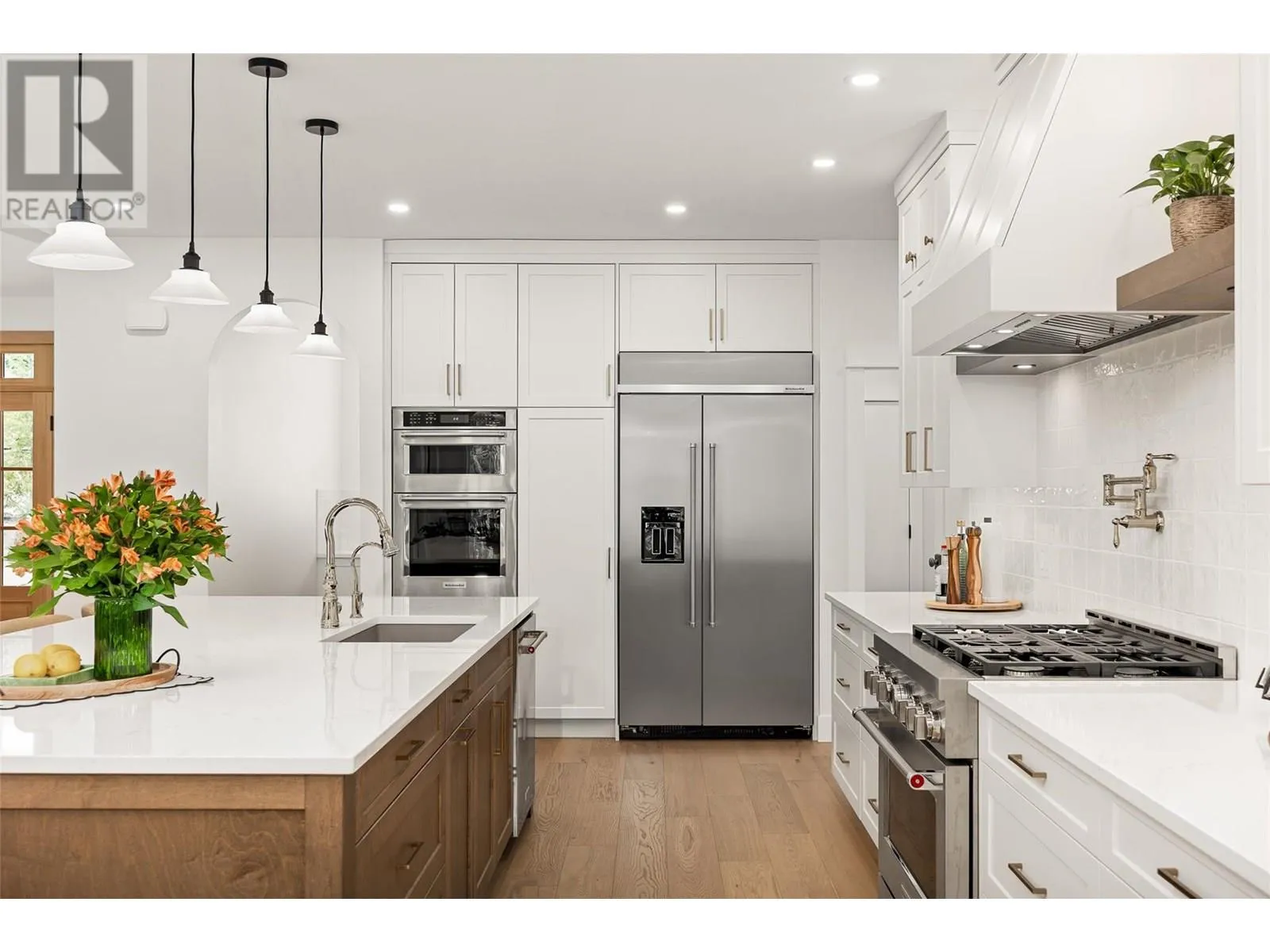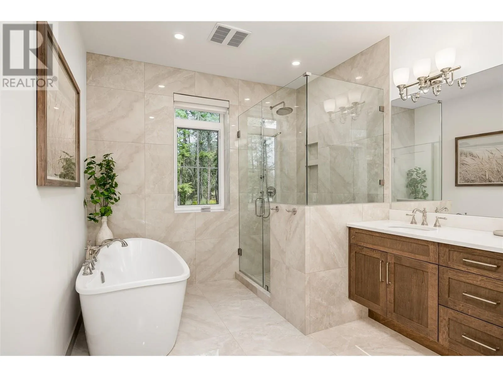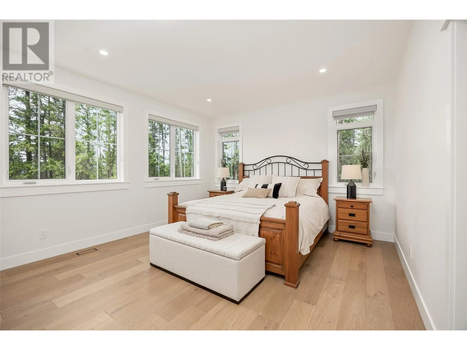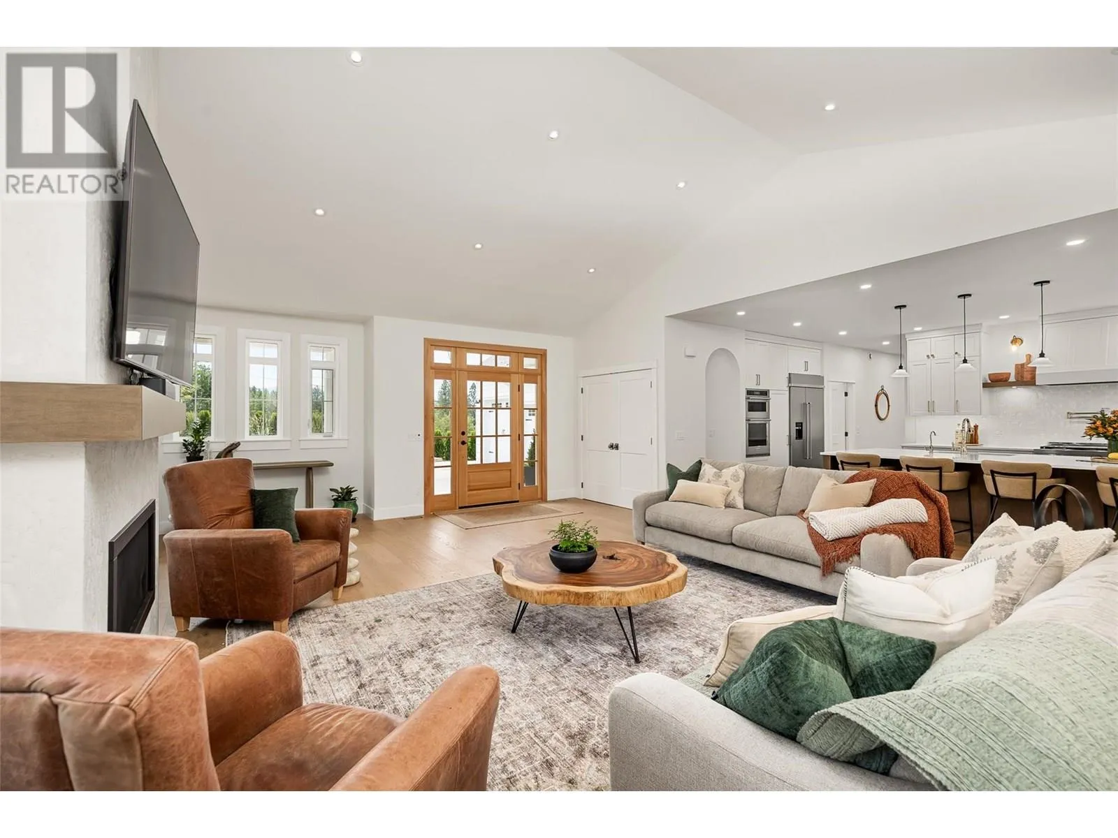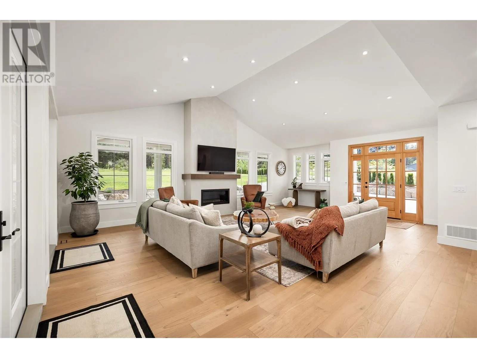 Welcome to this exquisite 2023 build, nestled on a massive and private 2.5-acre lot, offering a tranquil escape without sacrificing convenience. Behind the custom hemlock door, this 4 bed + den / 4 bath home spans 4,487 sqft, meticulously crafted to Step Code 4 Energy Guide standards for outstanding efficiency. The main level showcases a gourmet kitchen with an impressive 10' × 5' single-slab quartz island, maple cabinetry, a full butlerâs pantry, and a premium KitchenAid appliance package with a 6-burner gas stove and 42"" built-in fridge. Soaring vaulted ceilings define the open living area, while the main-floor primary suite offers a spa-like ensuite with mitred tile, heated floors, and a maple vanity with automatic kick lighting. You'll find an additional bedroom, 2 bathrooms, den, mud room, and attached, oversized triple-car garage to complete the upper level. Downstairs, the walk-out lower level is perfect for entertaining, featuring a wet bar in the expansive rec room, a gym (wired for a home theatre), and two more bedrooms with a full bath. Outside, a trex-clad wrap-around deck overlooks the fully irrigated yard, a 500 sqft paver patio with conduit ready for a future pool and hot tub, dog run, & fire pit. Only one neighbour, endless possibilities, and every finish already done to a luxury standardâthis is acreage living without compromise. Don't miss your chance on this stunning home, contact our team to book your private viewing today. (id:27476)