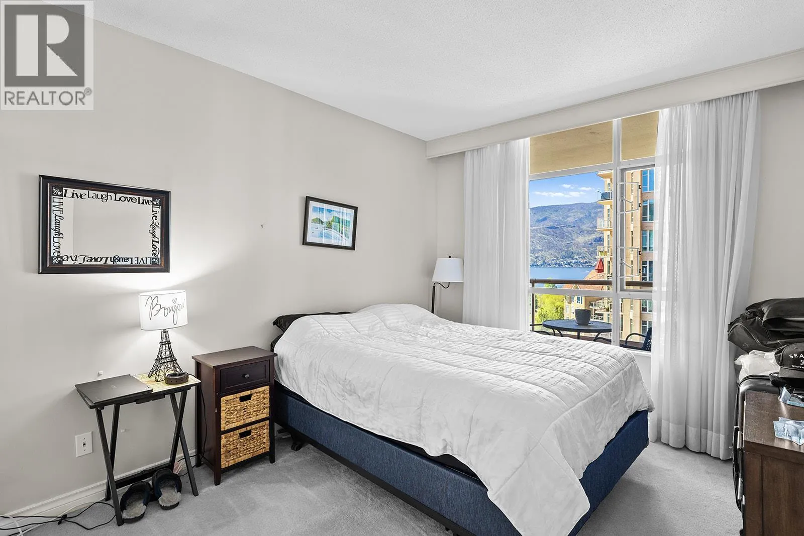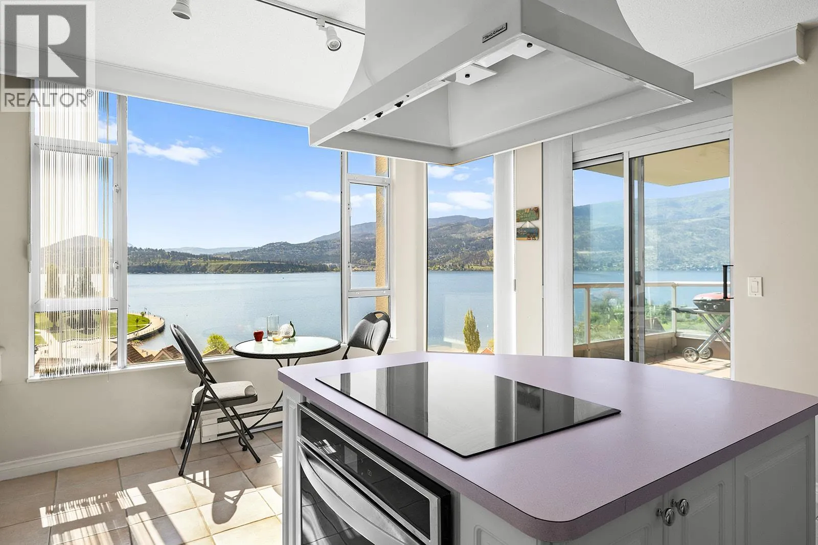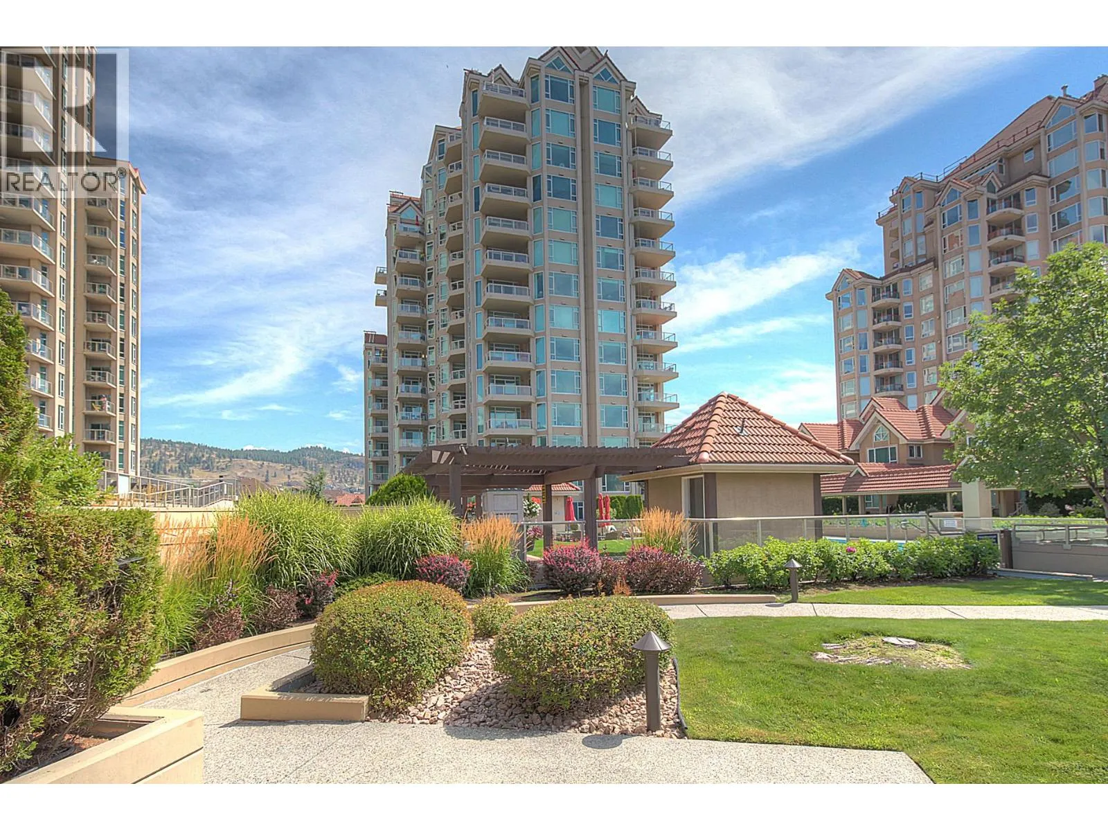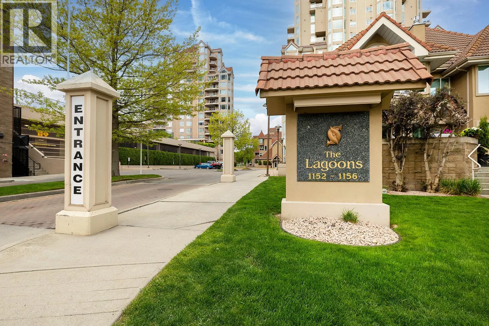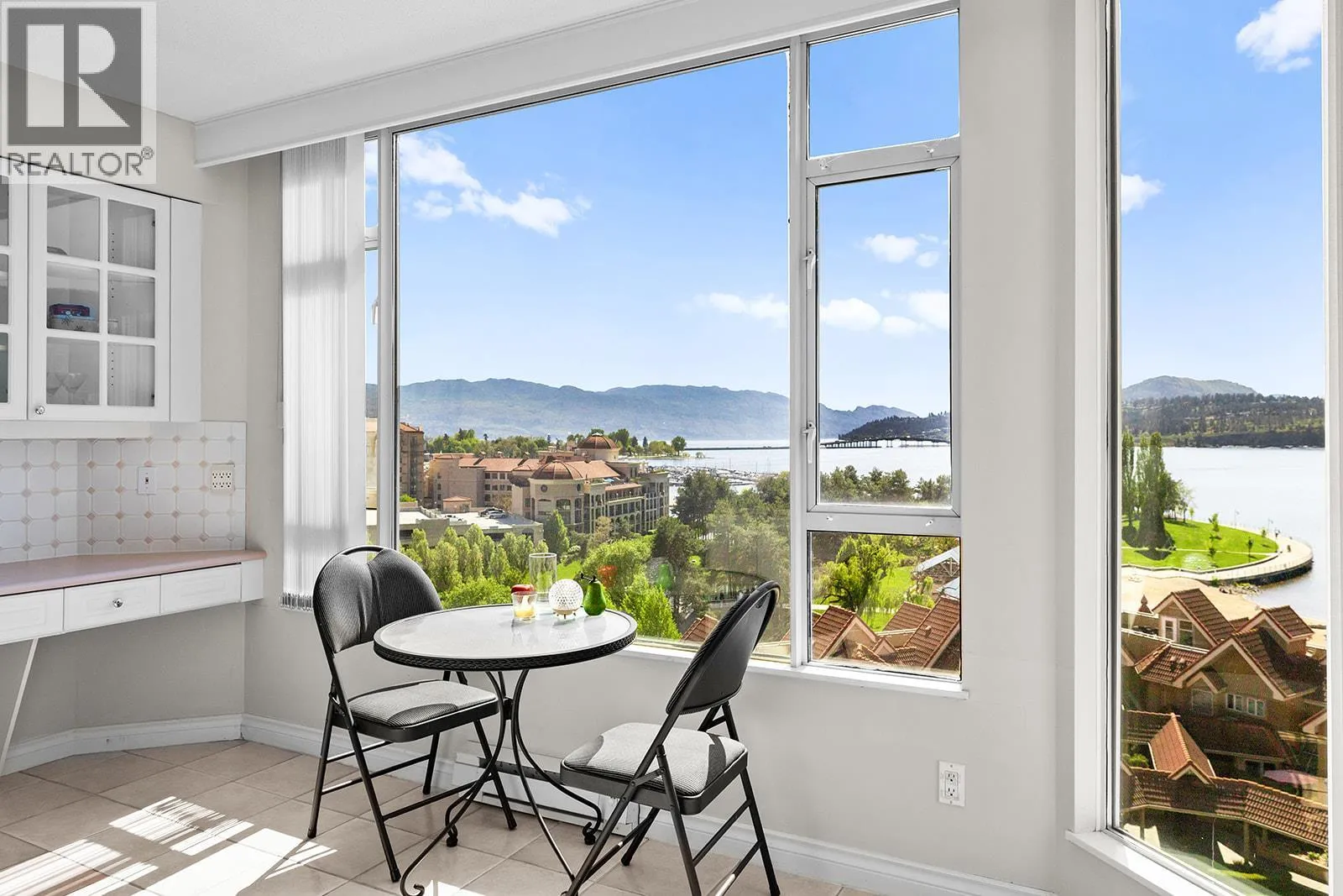 An incredible Opportunity to own one of these exceptionally rare units and with some updates substantially increase the value. â The panoramic views will leave you absolutely captivated and knowing no one will ever build in front of you will keep your investment secure. This spacious condo boasts over 1,400 sq. ft. of comfortable living space and includes TWO side-by-side parking stalls. Newer engineered hardwood floors flow throughout the main living areas, and enhance the open-concept design. The bright and airy living room showcases stunning vistas of Okanagan Lake, the bridge, and surrounding mountains, framed by expansive windows and patio doors that flood the space with natural light. A cozy gas fireplace adds charm for those cool winter evenings. The kitchen connects to a generous covered deck, perfect for enjoying morning coffee or evening sunsets overlooking the lake, city, and bridge. A large dining area between the kitchen and living room makes entertaining effortless. The primary suite also has a private deck with views, an ensuite with a soaker tub and separate shower, A dedicated laundry room with a sink and extra storage adds everyday convenience. The Lagoons offers an unmatched lifestyle with exceptional amenities, including indoor and outdoor pools, a sauna, hot tub, fully equipped fitness centre, secure bike storage, and even the potential for boat moorage on the canal. Located just from the beach, restaurants, shopping, the arena, and theatre. (id:27476)