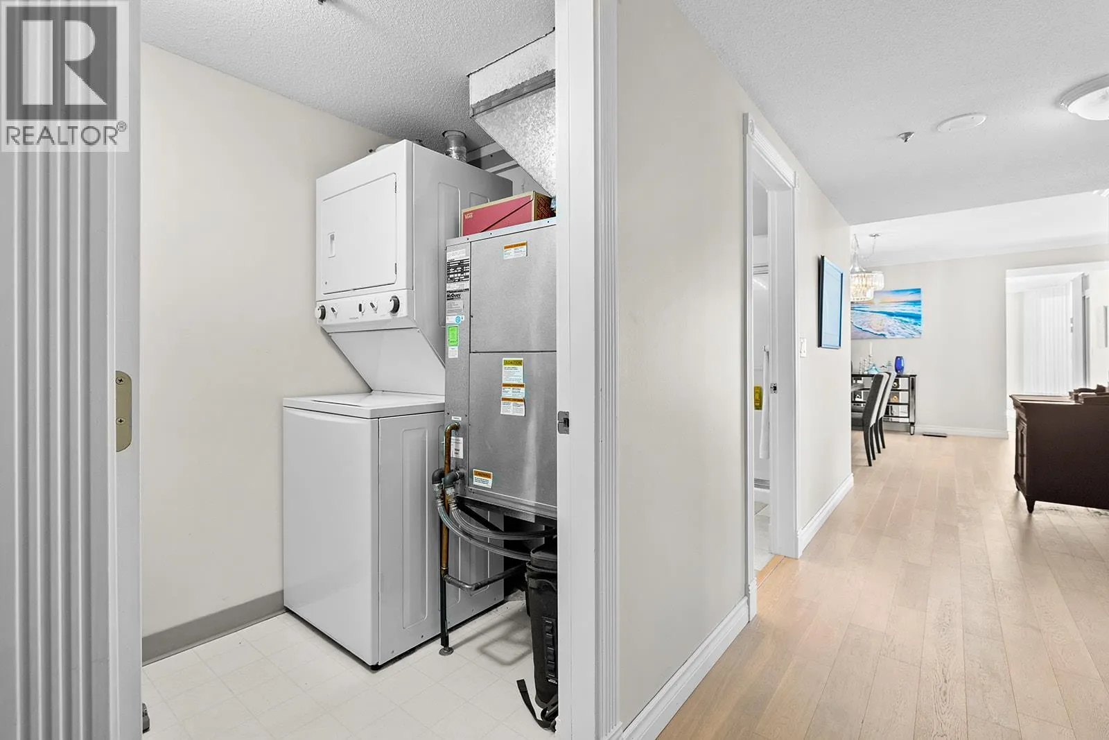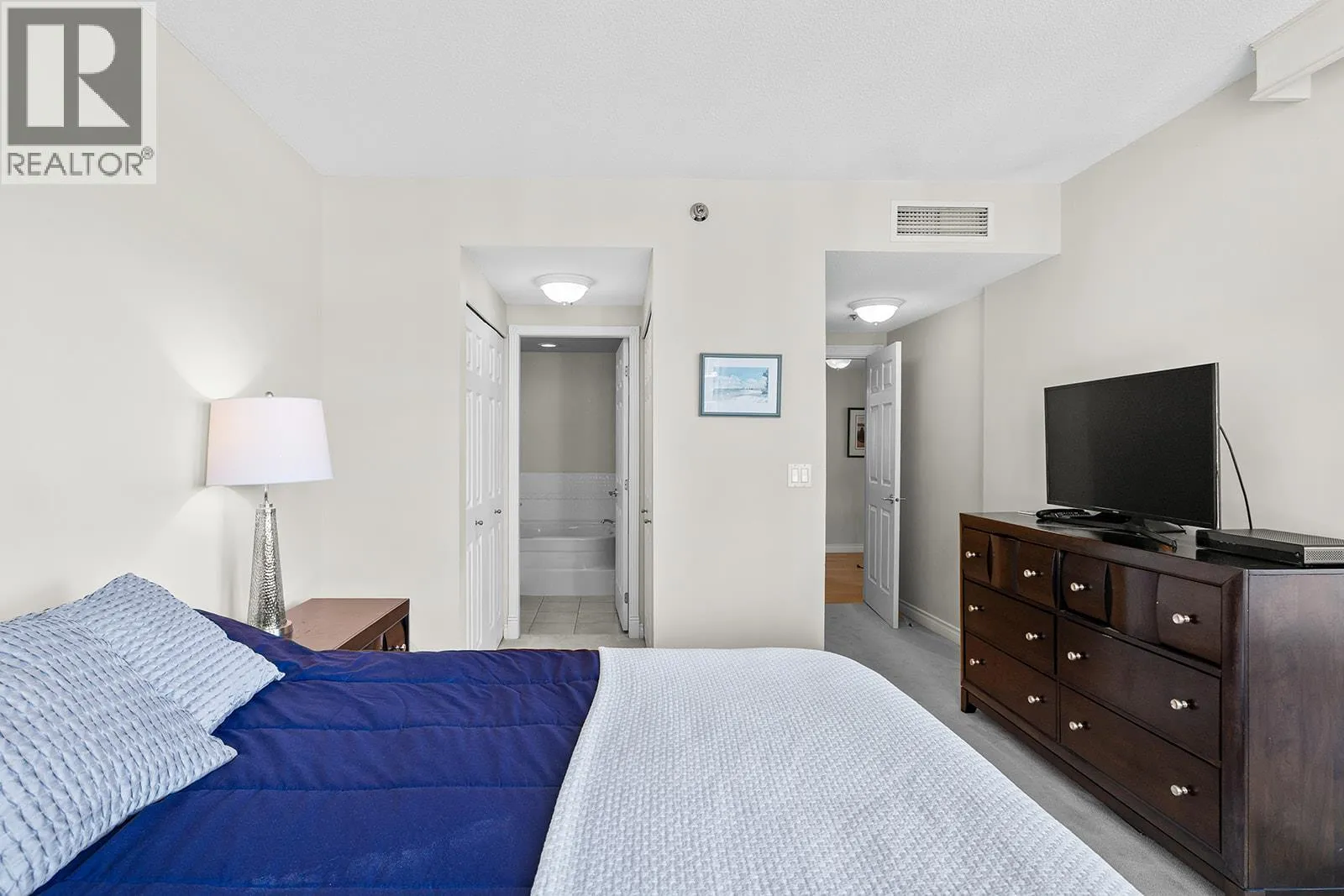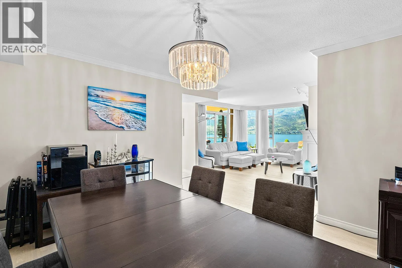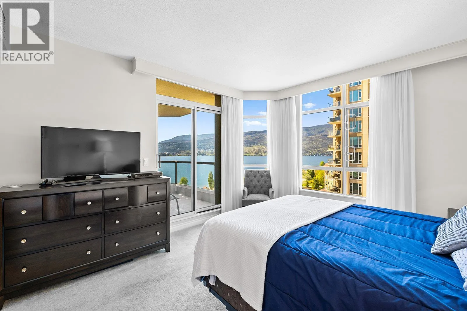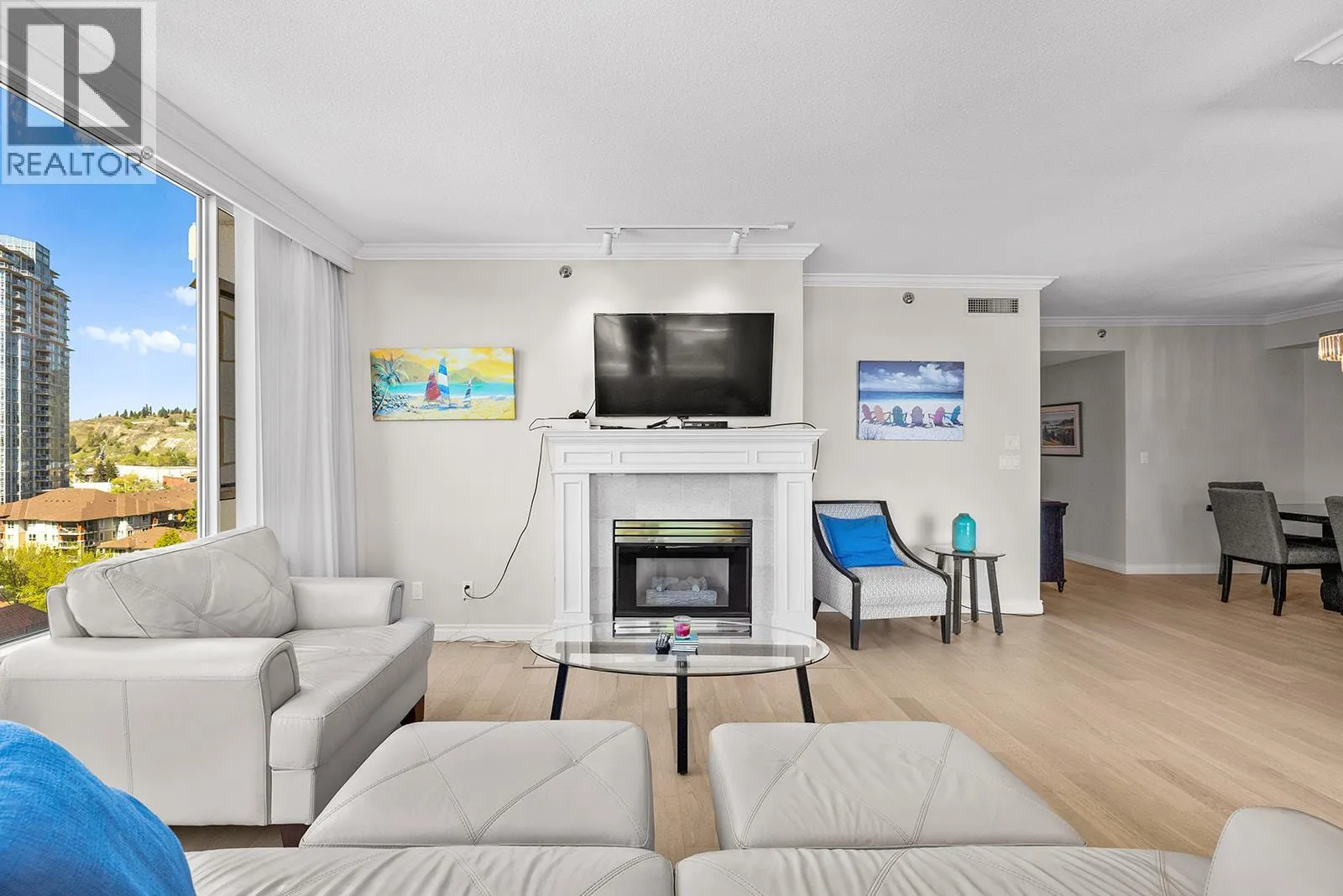 An incredible Opportunity to own one of these exceptionally rare units and with some updates substantially increase the value. â The panoramic views will leave you absolutely captivated and knowing no one will ever build in front of you will keep your investment secure. This spacious condo boasts over 1,400 sq. ft. of comfortable living space and includes TWO side-by-side parking stalls. Newer engineered hardwood floors flow throughout the main living areas, and enhance the open-concept design. The bright and airy living room showcases stunning vistas of Okanagan Lake, the bridge, and surrounding mountains, framed by expansive windows and patio doors that flood the space with natural light. A cozy gas fireplace adds charm for those cool winter evenings. The kitchen connects to a generous covered deck, perfect for enjoying morning coffee or evening sunsets overlooking the lake, city, and bridge. A large dining area between the kitchen and living room makes entertaining effortless. The primary suite also has a private deck with views, an ensuite with a soaker tub and separate shower, A dedicated laundry room with a sink and extra storage adds everyday convenience. The Lagoons offers an unmatched lifestyle with exceptional amenities, including indoor and outdoor pools, a sauna, hot tub, fully equipped fitness centre, secure bike storage, and even the potential for boat moorage on the canal. Located just from the beach, restaurants, shopping, the arena, and theatre. (id:27476)