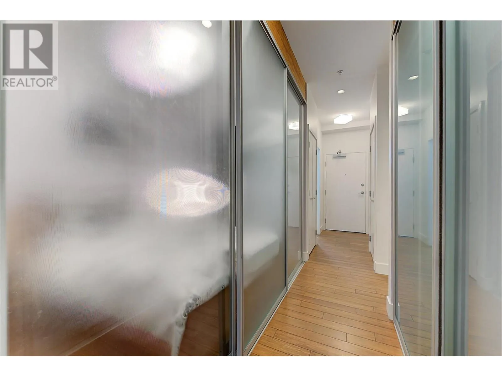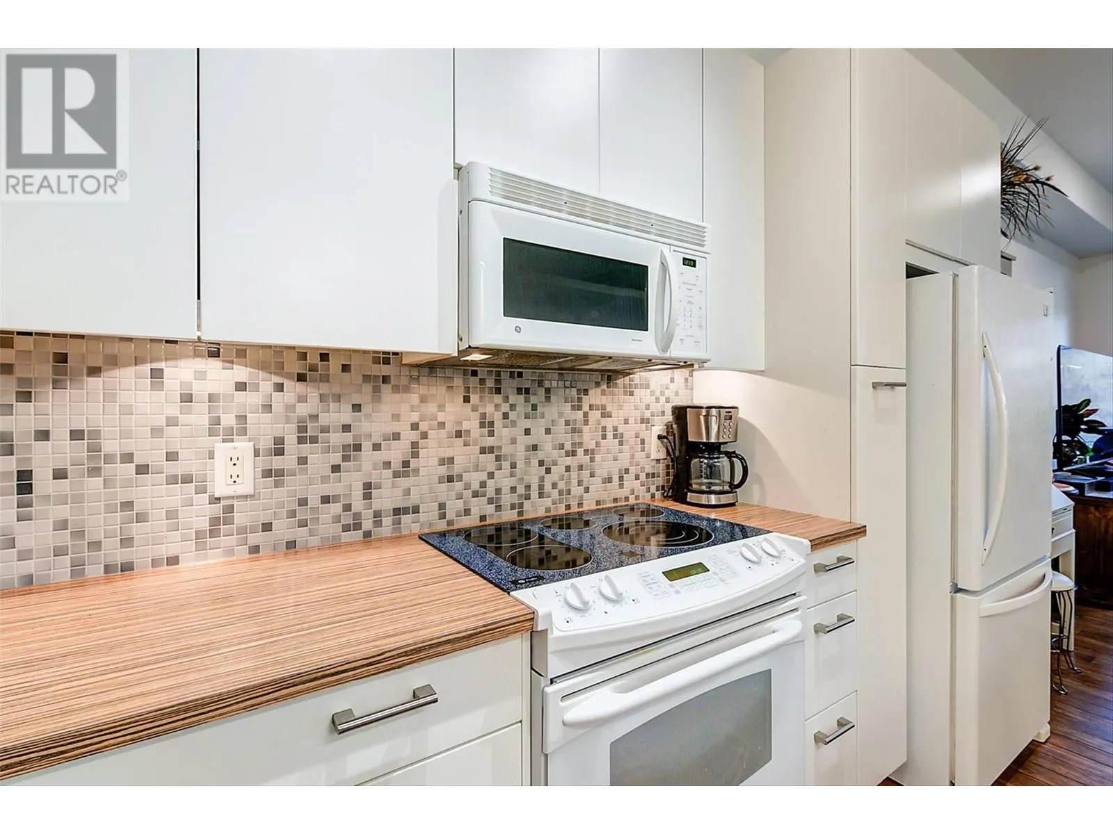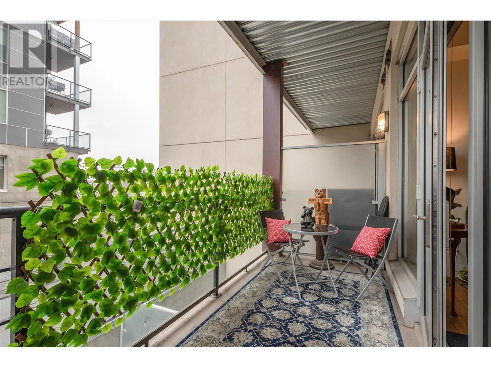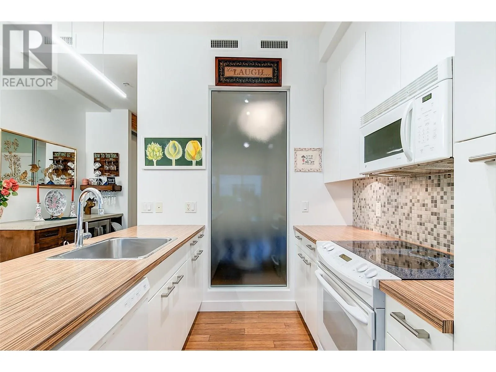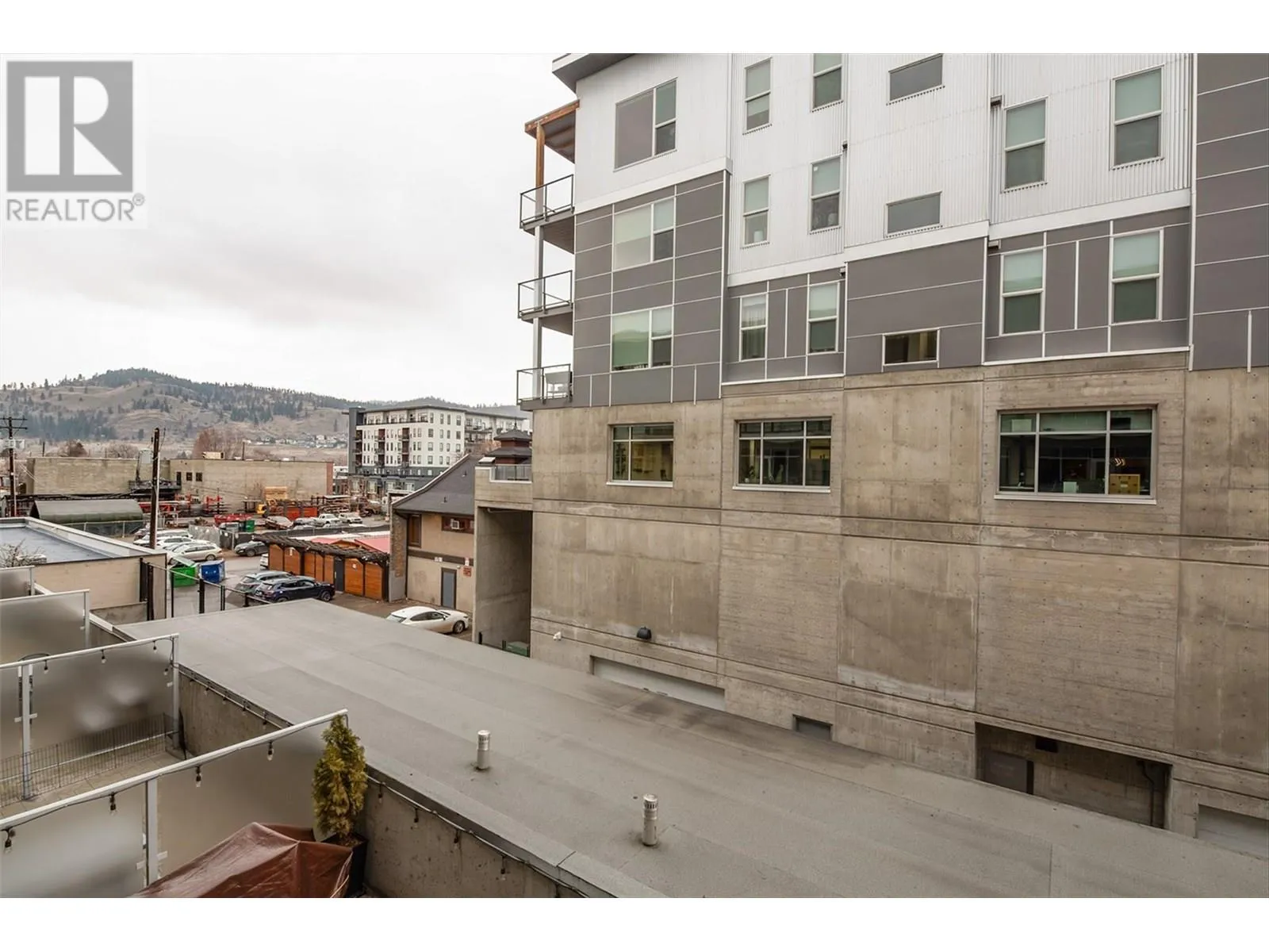 **WELCOME HOME** Live, work and play Downtown Kelowna with ownership in one of Kelownaâs only true loft buildings located in the heart of the Arts and Entertainment district. Constructed in wood frame and concrete with exterior Gullah detailing, Cannery Lofts is a mix-used development boasting an âUrban-Okanaganâ aesthetic that successfully explores the use of wood and concrete. Arrive home to your sanctuary of combined architectural talents that offers 9â ceilings, a custom built-in credenza with a poured concrete countertop and wine cooler, as well as an expansive wall of windows that welcomes ample light and inspiring vistas. This 2 bedroom, 2 full bathroom unit is an immaculate and well-cared for living space situated a stones throw from the sandy shores of Lake Okanagan, world-class wineries and breweries, an international art gallery and a plethora of quaint boutiques and delectable cafes. Thoughtful energy conservation measures include: reflective laminated low E glass, high R-value construction and in-suite heat pumps. Experience why Kelowna is the preferred destination of many via the communal roof top patio~ the ideal space to bbq, entertain and experience the the phenomenal views of the Okanagan Valley. PLEASE NOTE: Cannery Lofts offers very generous rules regarding pets & rentals. Pet allowance: one dog (max 30â @ shoulder, or 2 dogs with combined shoulder height of 30â with strata approval), or 2 cats. (id:27476)