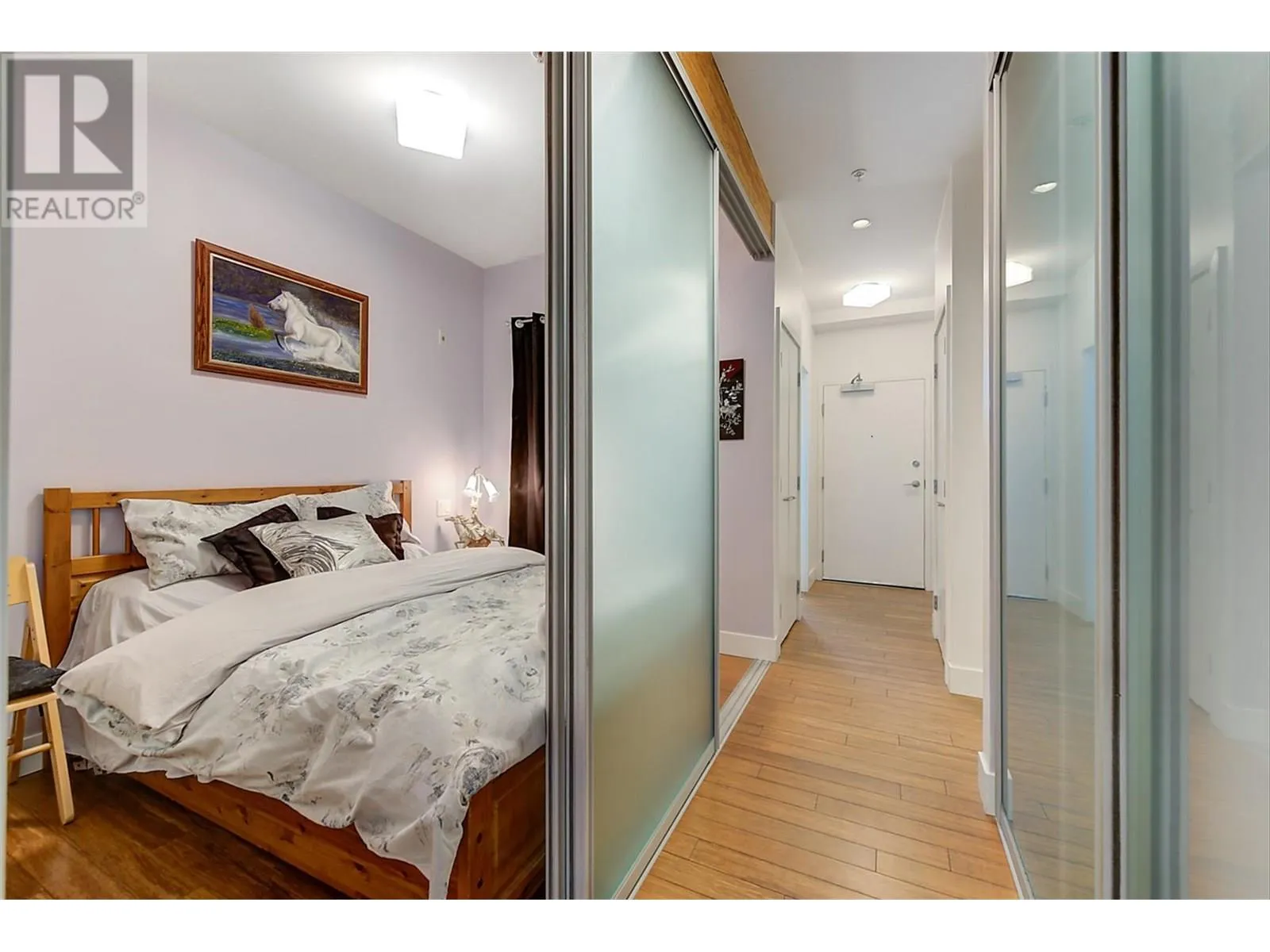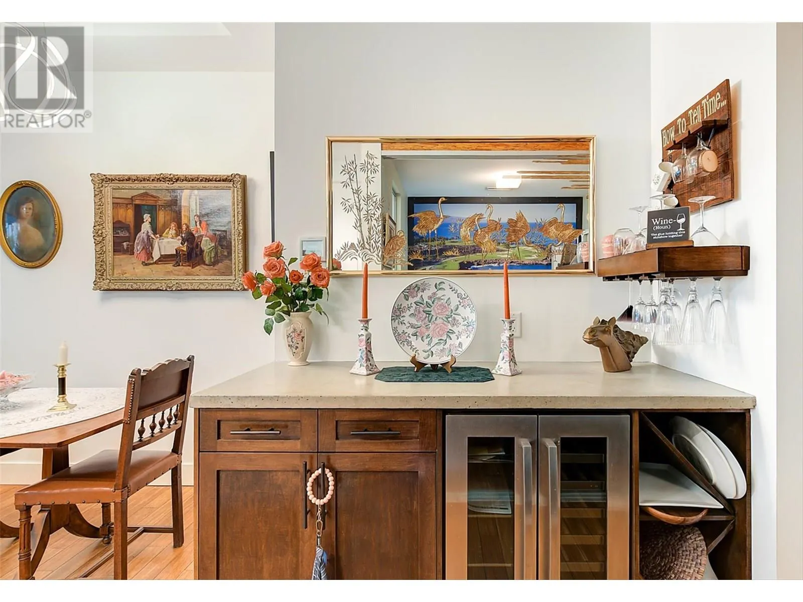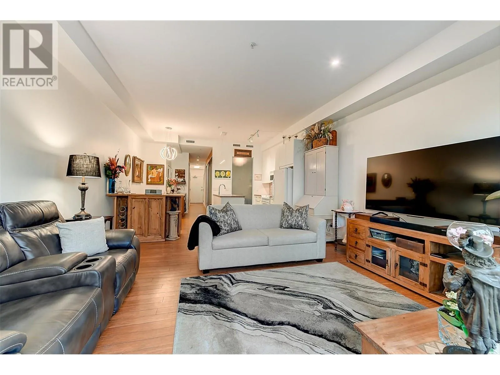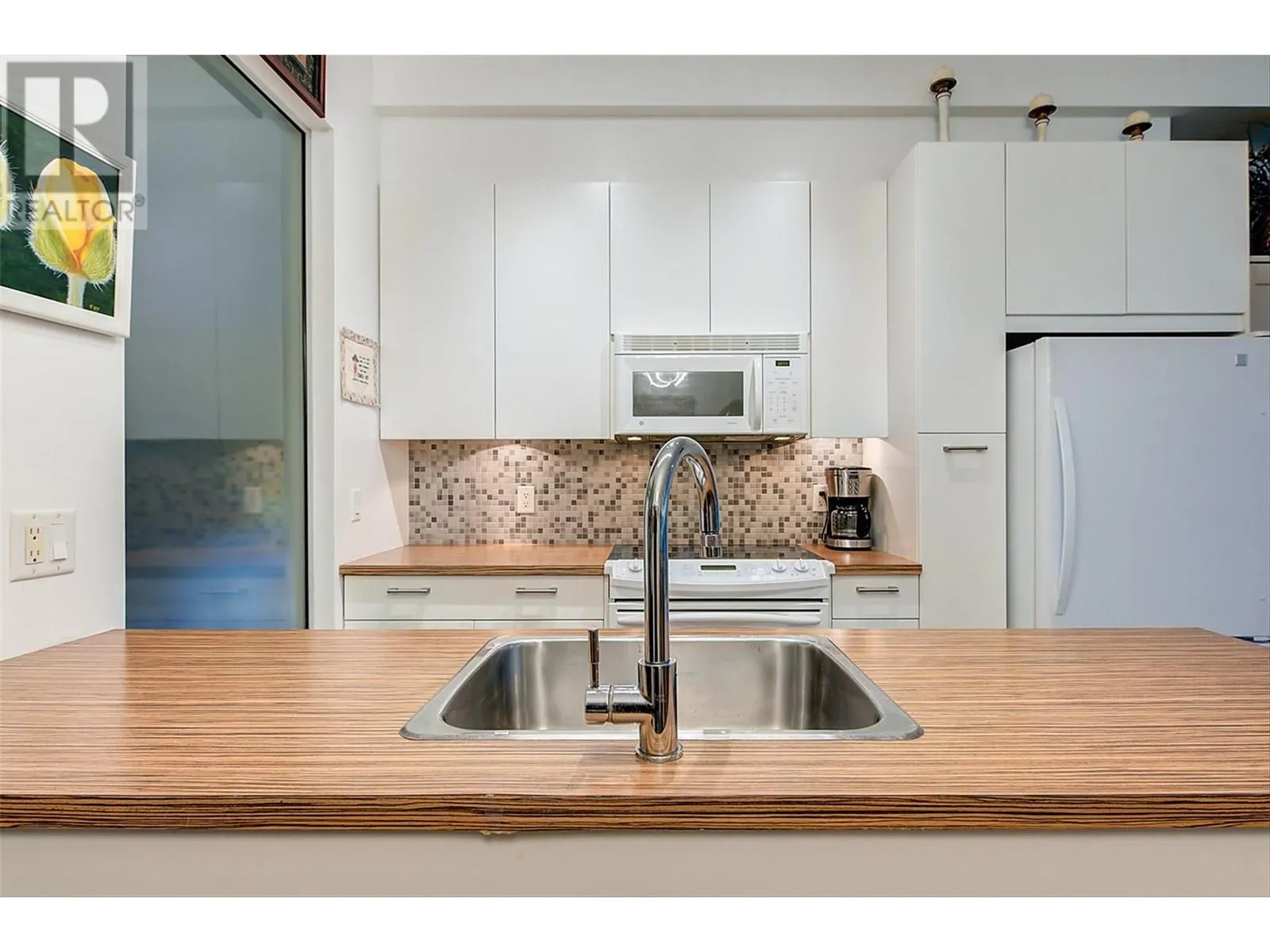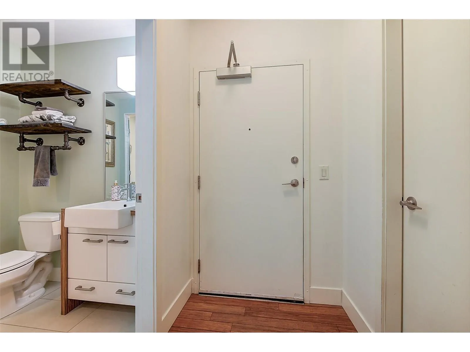 **WELCOME HOME** Live, work and play Downtown Kelowna with ownership in one of Kelownaâs only true loft buildings located in the heart of the Arts and Entertainment district. Constructed in wood frame and concrete with exterior Gullah detailing, Cannery Lofts is a mix-used development boasting an âUrban-Okanaganâ aesthetic that successfully explores the use of wood and concrete. Arrive home to your sanctuary of combined architectural talents that offers 9â ceilings, a custom built-in credenza with a poured concrete countertop and wine cooler, as well as an expansive wall of windows that welcomes ample light and inspiring vistas. This 2 bedroom, 2 full bathroom unit is an immaculate and well-cared for living space situated a stones throw from the sandy shores of Lake Okanagan, world-class wineries and breweries, an international art gallery and a plethora of quaint boutiques and delectable cafes. Thoughtful energy conservation measures include: reflective laminated low E glass, high R-value construction and in-suite heat pumps. Experience why Kelowna is the preferred destination of many via the communal roof top patio~ the ideal space to bbq, entertain and experience the the phenomenal views of the Okanagan Valley. PLEASE NOTE: Cannery Lofts offers very generous rules regarding pets & rentals. Pet allowance: one dog (max 30â @ shoulder, or 2 dogs with combined shoulder height of 30â with strata approval), or 2 cats. (id:27476)