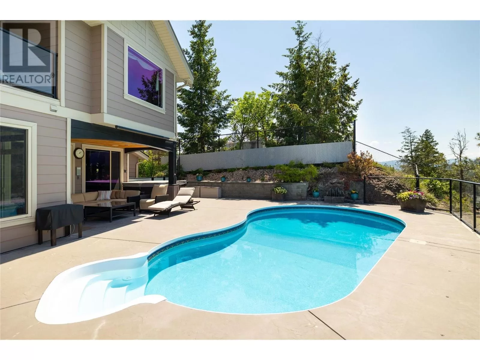 BELOW ASSESSED VALUE!! Elevated above the city & embraced by natural beauty, this remarkable residence offers a true retreat with breathtaking views, exceptional privacy, & an outdoor paradise designed for unforgettable moments. Seamlessly connected indoor-outdoor living defines this home, with a sparkling saltwater pool, relaxing hot tub, & multiple lounge areas to soak up the Okanagan sunshine. Inside, discover rich custom dark hardwood flooring, thoughtful architectural details, & elegant high-end finishes throughout. The chef-inspired kitchen is a true showpiece, complete with a top-tier appliance package, oversized island perfect for gathering, & a seamless flow to the spacious dining & living areas. An office/bedroom with separate entrance & a nearby guest bathroom & mudroom create versatile options â ideal for a home-based business or guests. Upstairs, three generous bedrooms & a sprawling bonus room provide ample space for a growing family. The primary suite is a luxurious sanctuary with a cozy fireplace, private deck with mountain views, & a spa-like ensuite featuring a steam shower & freestanding soaker tub for ultimate relaxation. Additional highlights include abundant storage on the lower level, a workshop area in the garage with a sink, & low-maintenance landscaping with a dedicated dog run. Bordering parkland with direct access to scenic walking trails & no direct neighbours, this is a rare opportunity to experience refined, private living in one of Kelownaâs most coveted settings. (id:27476)
