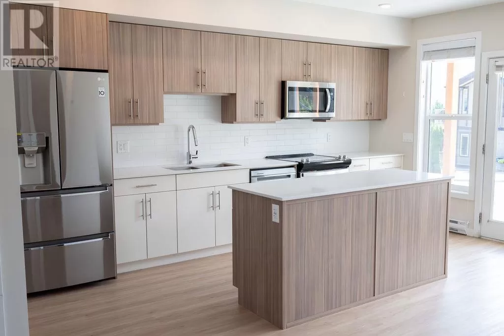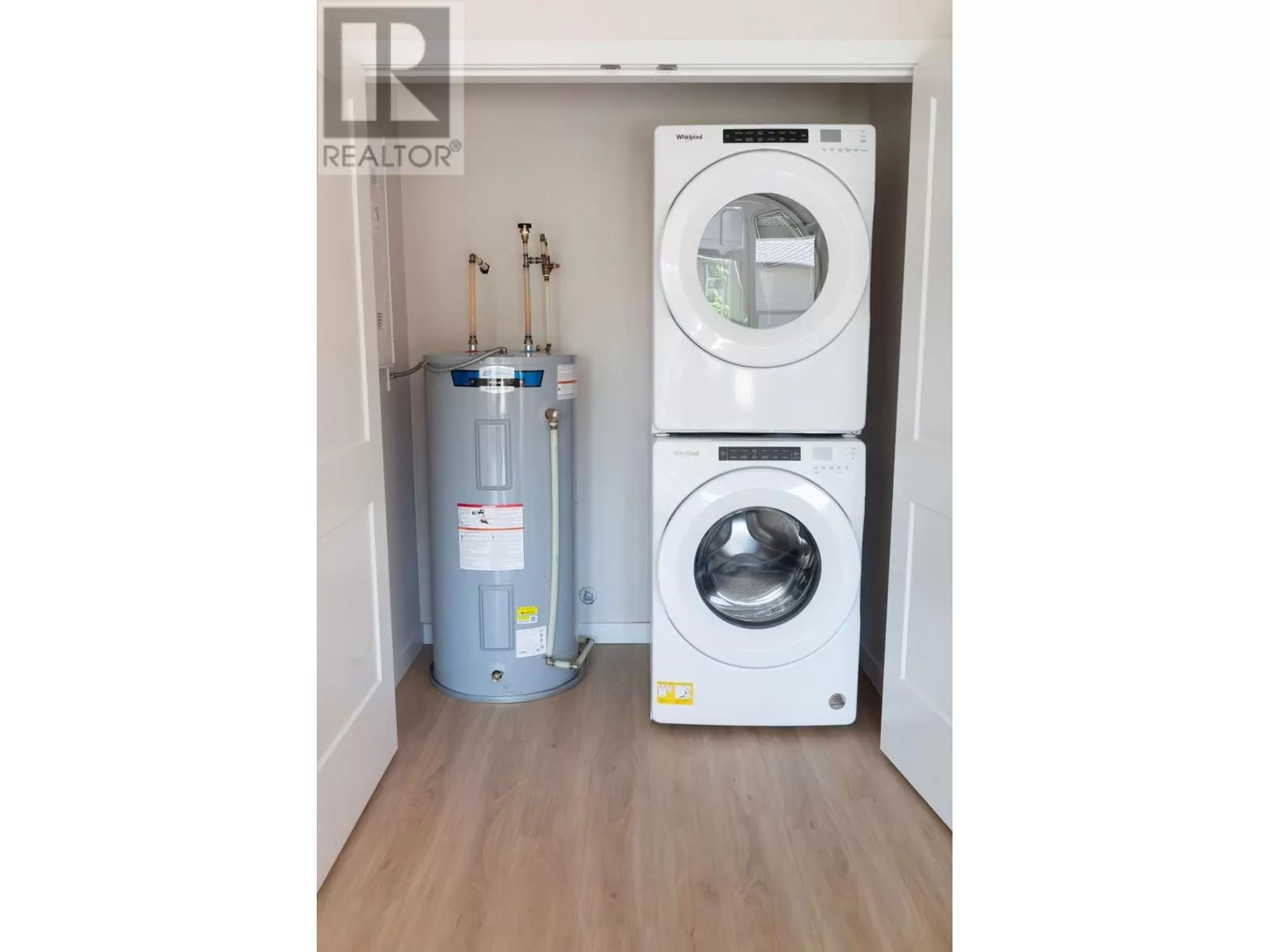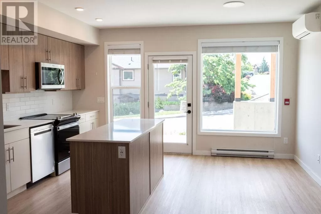 Welcome to the highly sought-after Promontory development. This is 2 2-bedroom, 2 bathroom ground floor townhome. Designed for comfort and style, this bright and airy home features an efficient layout with high ceilings, easy-care flooring, and plenty of natural light. The modern kitchen includes quartz countertops, a large island, and luxury stainless steel appliances, with a stacked washer and dryer adding everyday convenience. Enjoy eco-friendly living with solar-powered heating and cooling, green energy features, and data center upgrades. Just steps from Knox Mountain Park, Kathleen Lake, and Glenmore Ridge Trails, and only minutes from Downtown Kelowna, Okanagan Lake, restaurants, wineries, UBCO, and the airport. This unbeatable location offers both nature and urban amenities at your fingertips. Pet and rental friendly (2 dogs, 2 cats, or 1 of each allowed). Ideal for first-time buyers or investors. Immediate possession availableâdonât miss out! (id:27476)