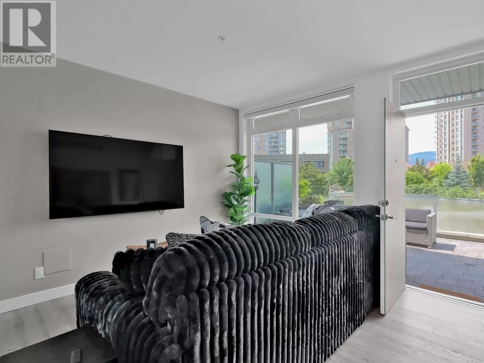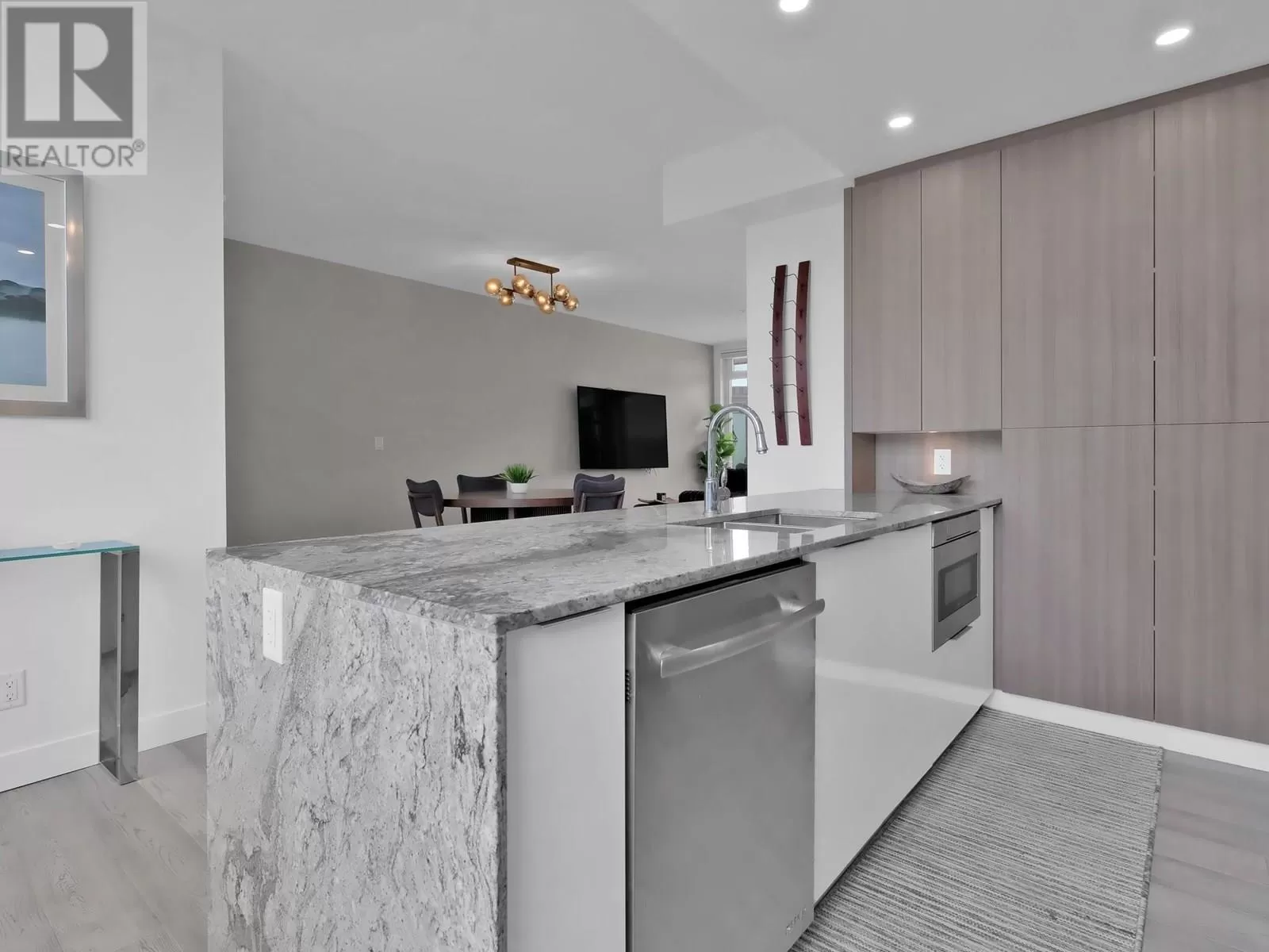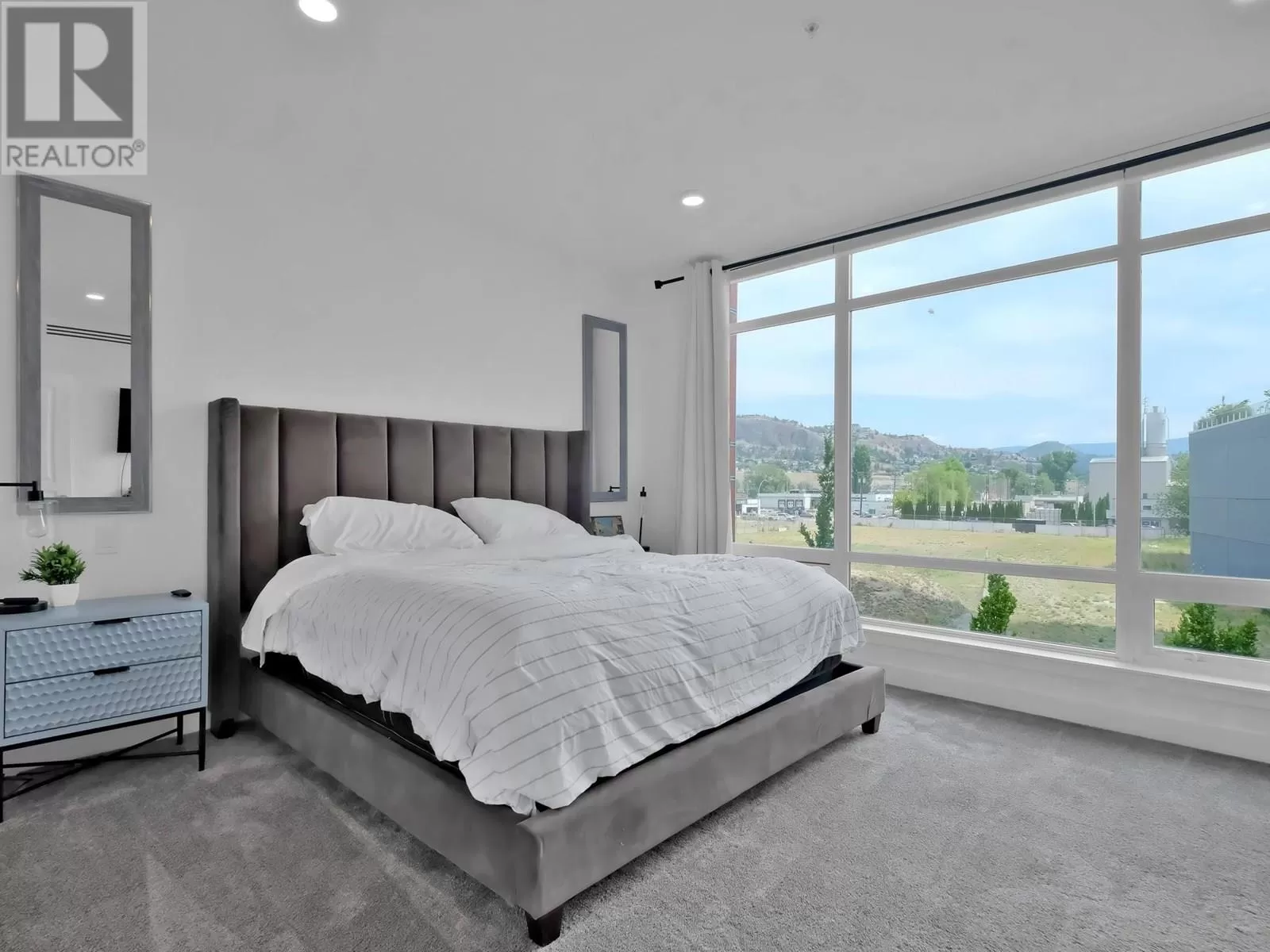Stunning luxury townhouse in the heart of downtown, just steps from the lake and surrounded by top-tier amenities including the yacht club, coffee shops, restaurants, shopping, beaches, hiking trails, and a bird sanctuary. With a fabulous floor plan and high-end finishings throughout, this home is flooded with natural light. The gourmet chefâs kitchen boasts waterfall granite countertops, soft-close cabinetry, and a beverage center with bar fridge. The open-concept living and dining area extends to a private patio overlooking a tranquil water featureâperfect for BBQs and entertaining. Upstairs, the king-sized primary suite offers mountain views, a walk-in closet, and a spa-inspired ensuite with a soaker tub, walk-in glass shower, and double vanity. Two additional bedrooms, a full bathroom, and a convenient laundry area complete the upper level. This home offers the convenience of two parking stalls, one underground and one uncovered, along with being pet-friendly ( 2 pets with max of 50 lbs each). It's ideally situated in a highly sought-after, walkable downtown location, providing ideal urban living! (id:27476)