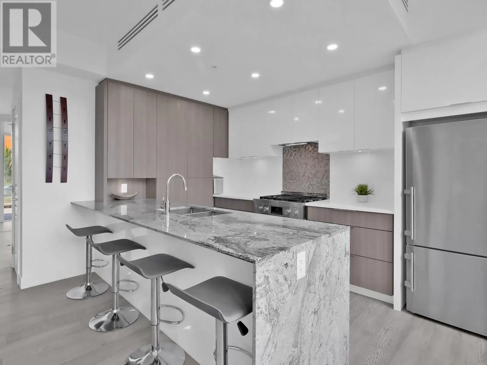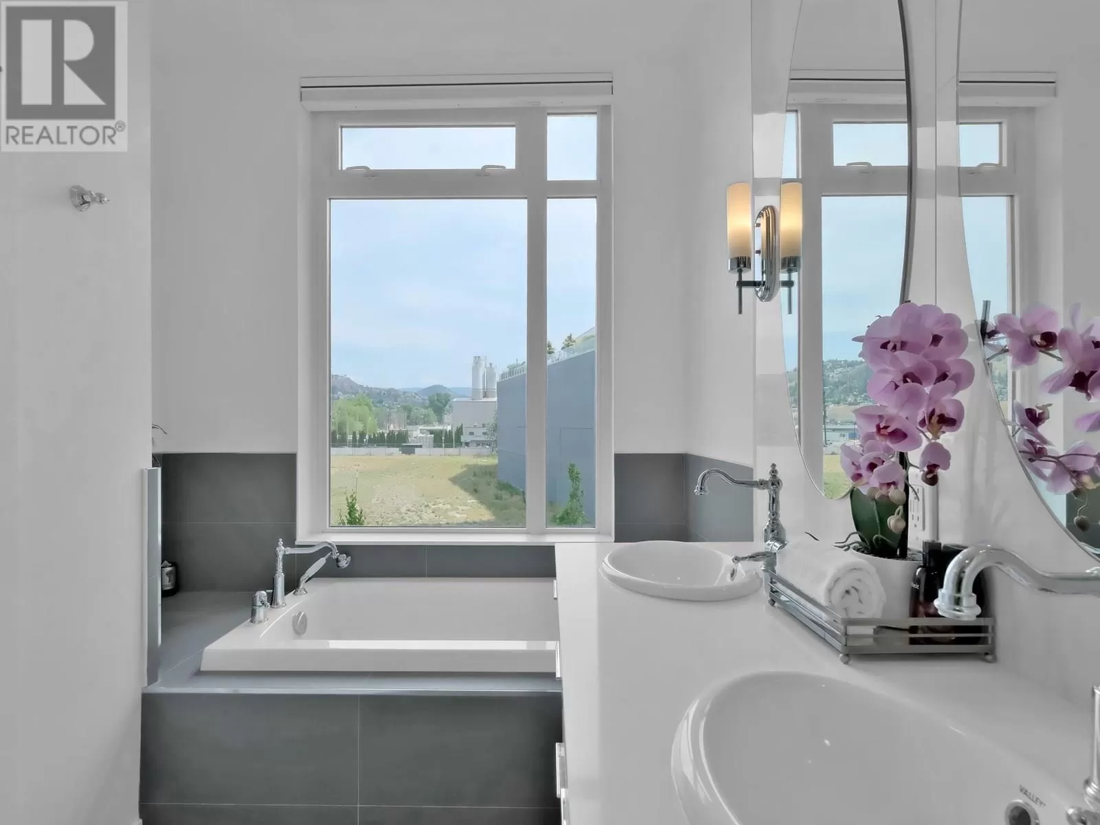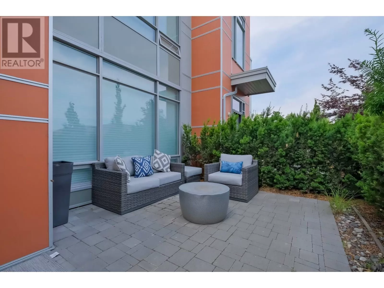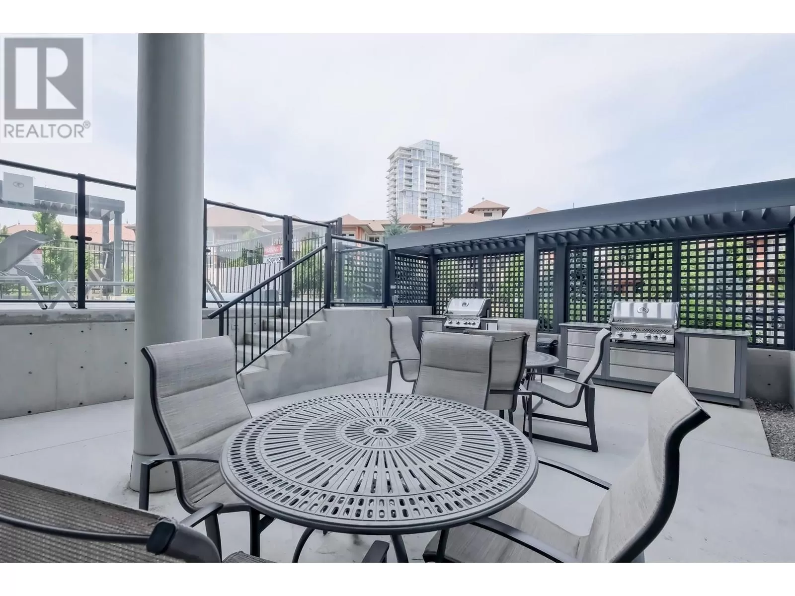 Stunning luxury townhouse in the heart of downtown, just steps from the lake and surrounded by top-tier amenities including the yacht club, coffee shops, restaurants, shopping, beaches, hiking trails, and a bird sanctuary. With a fabulous floor plan and high-end finishings throughout, this home is flooded with natural light. The gourmet chefâs kitchen boasts waterfall granite countertops, soft-close cabinetry, and a beverage center with bar fridge. The open-concept living and dining area extends to a private patio overlooking a tranquil water featureâperfect for BBQs and entertaining. Upstairs, the king-sized primary suite offers mountain views, a walk-in closet, and a spa-inspired ensuite with a soaker tub, walk-in glass shower, and double vanity. Two additional bedrooms, a full bathroom, and a convenient laundry area complete the upper level. This home offers the convenience of two parking stalls, one underground and one uncovered, along with being pet-friendly ( 2 pets with max of 50 lbs each). It's ideally situated in a highly sought-after, walkable downtown location, providing ideal urban living! (id:27476)