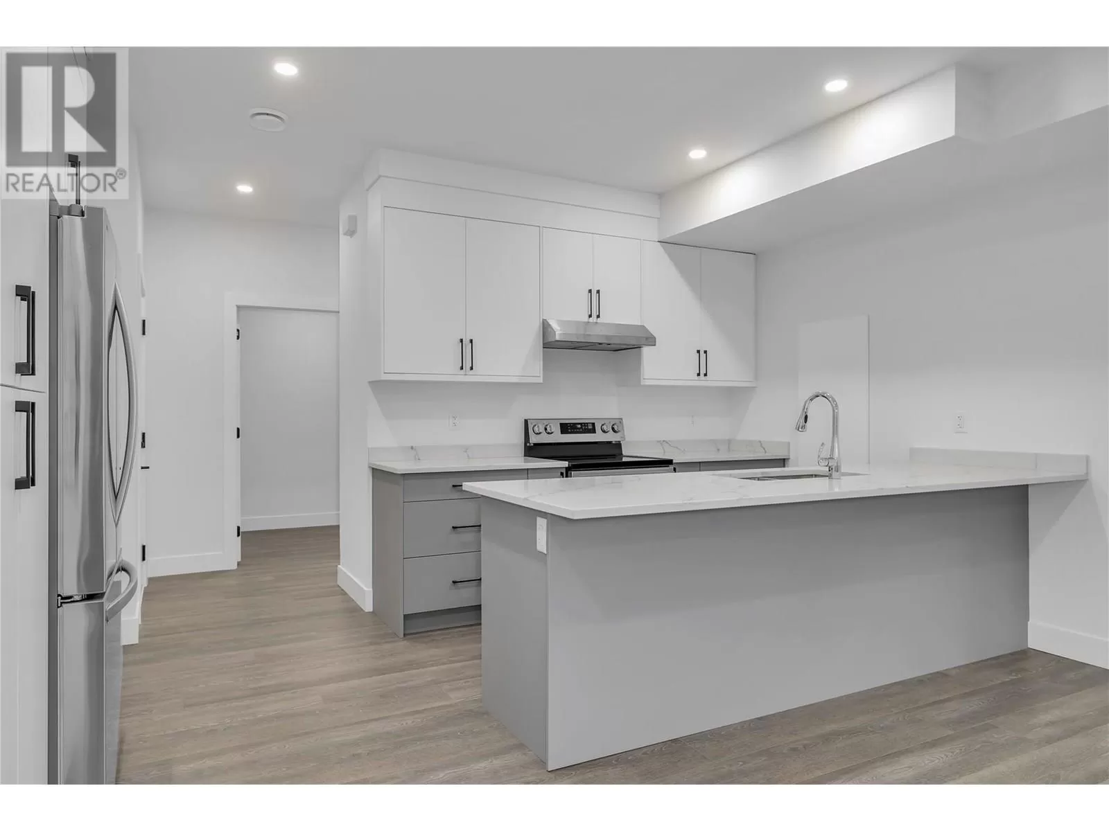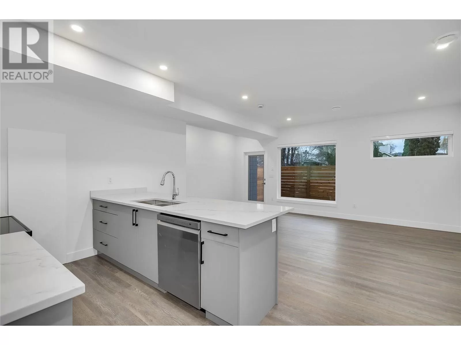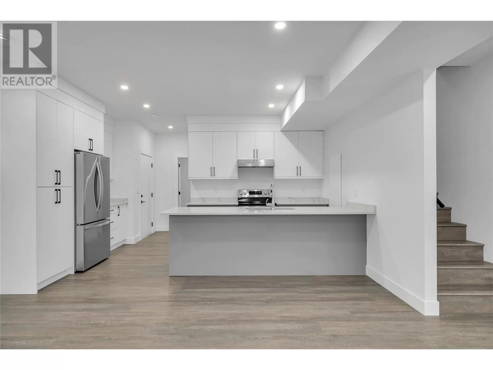 Welcome to this stunning brand-new 3-bedroom townhouse, ideally located just minutes from the hospital, offering both convenience and modern living at its finest. This beautifully designed home features an open-concept floor plan with bright, airy living spaces, making it perfect for entertaining or relaxing with family. The stylish kitchen boasts sleek quartz countertops, two tone cabinets with black hardware, stainless steel appliances, ample cabinet space plus additional storage under the stairs. The large island offers lots of room for stools and the massive laundry/utility room provides a great flex space for fitness equipment, a desk or storage for bikes and other sporting gear. A door off the living room provides access to the private, fenced patio area perfect for outdoor dining or simply enjoying the fresh air. Each of the three generously sized bedrooms offers plenty of natural light, with the primary suite featuring a great closet with built in storage and an ensuite bathroom with large shower and double sinks for added comfort and privacy. The primary also features an incredible covered balcony, a great place to enjoy morning coffee or unwind and relax at the end of a long day. This central location is fantastic for easy access to public transportation and the wonderful shopping and dining of the Pandosy area. Don't miss the opportunity to call this beautiful new townhouse with warranty, your new home! Schedule a tour today. (id:27476)