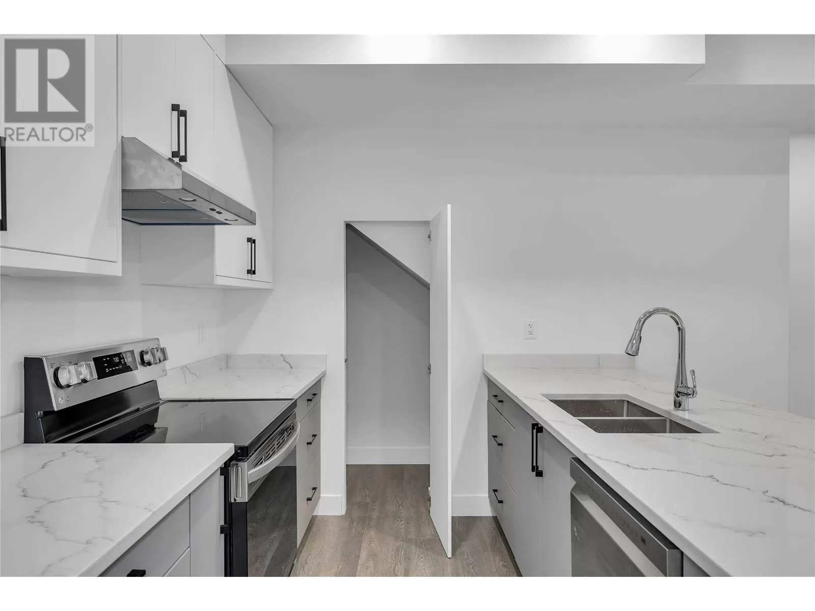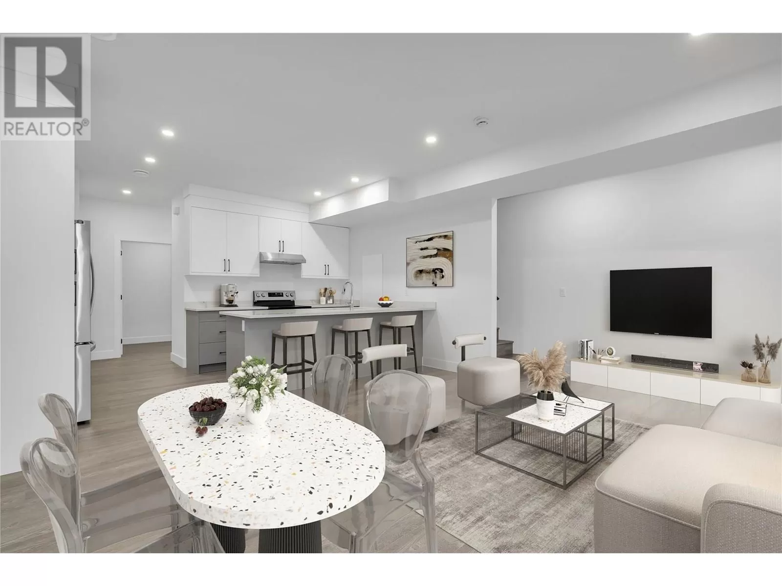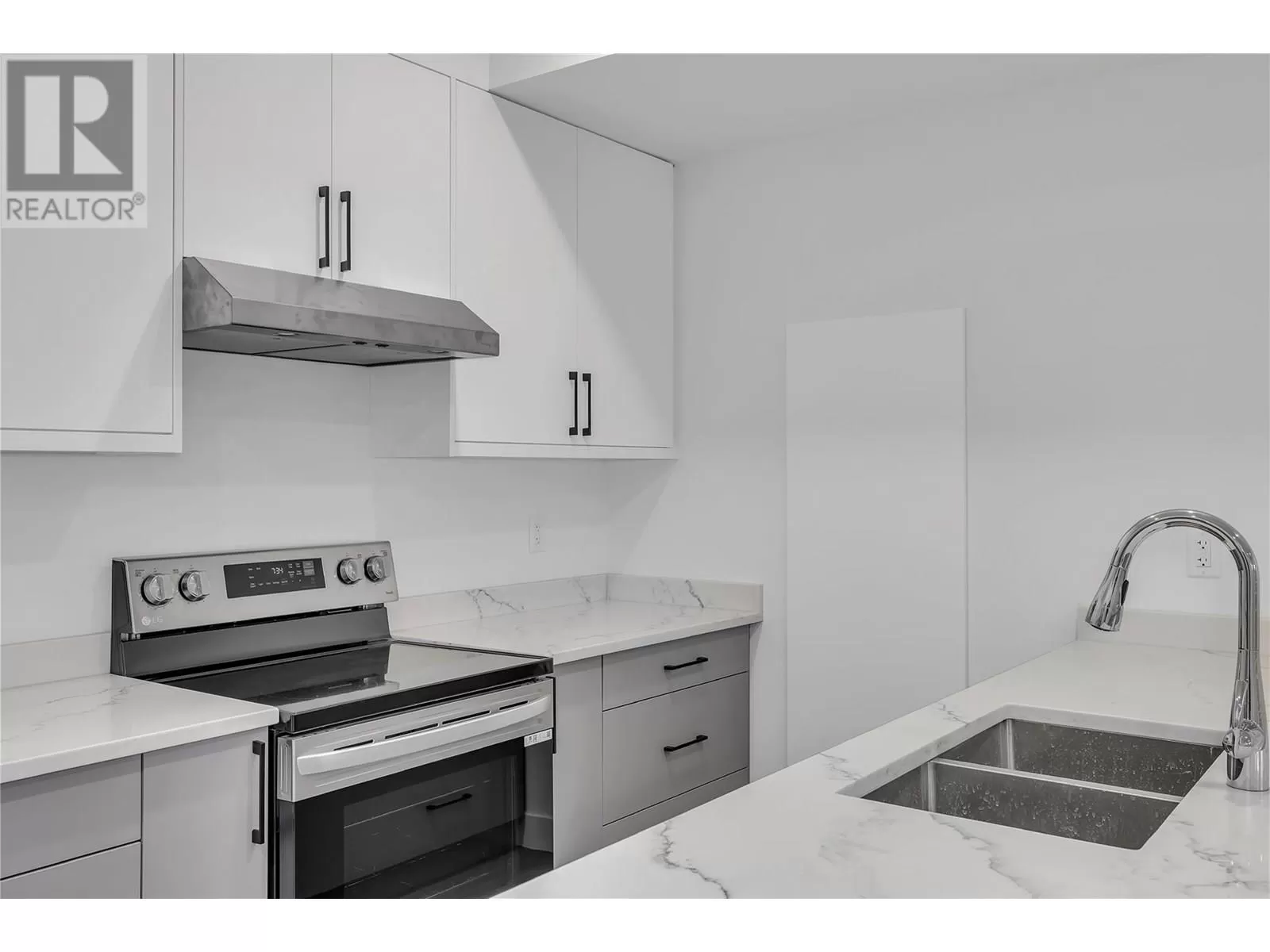 Welcome to this stunning brand-new 3-bedroom townhouse, ideally located just minutes from the hospital, offering both convenience and modern living at its finest. This beautifully designed home features an open-concept floor plan with bright, airy living spaces, making it perfect for entertaining or relaxing with family. The stylish kitchen boasts sleek quartz countertops, two tone cabinets with black hardware, stainless steel appliances, ample cabinet space plus additional storage under the stairs. The large island offers lots of room for stools and the massive laundry/utility room provides a great flex space for fitness equipment, a desk or storage for bikes and other sporting gear. A door off the living room provides access to the private, fenced patio area perfect for outdoor dining or simply enjoying the fresh air. Each of the three generously sized bedrooms offers plenty of natural light, with the primary suite featuring a great closet with built in storage and an ensuite bathroom with large shower and double sinks for added comfort and privacy. The primary also features an incredible covered balcony, a great place to enjoy morning coffee or unwind and relax at the end of a long day. This central location is fantastic for easy access to public transportation and the wonderful shopping and dining of the Pandosy area. Don't miss the opportunity to call this beautiful new townhouse with warranty, your new home! Schedule a tour today. (id:27476)