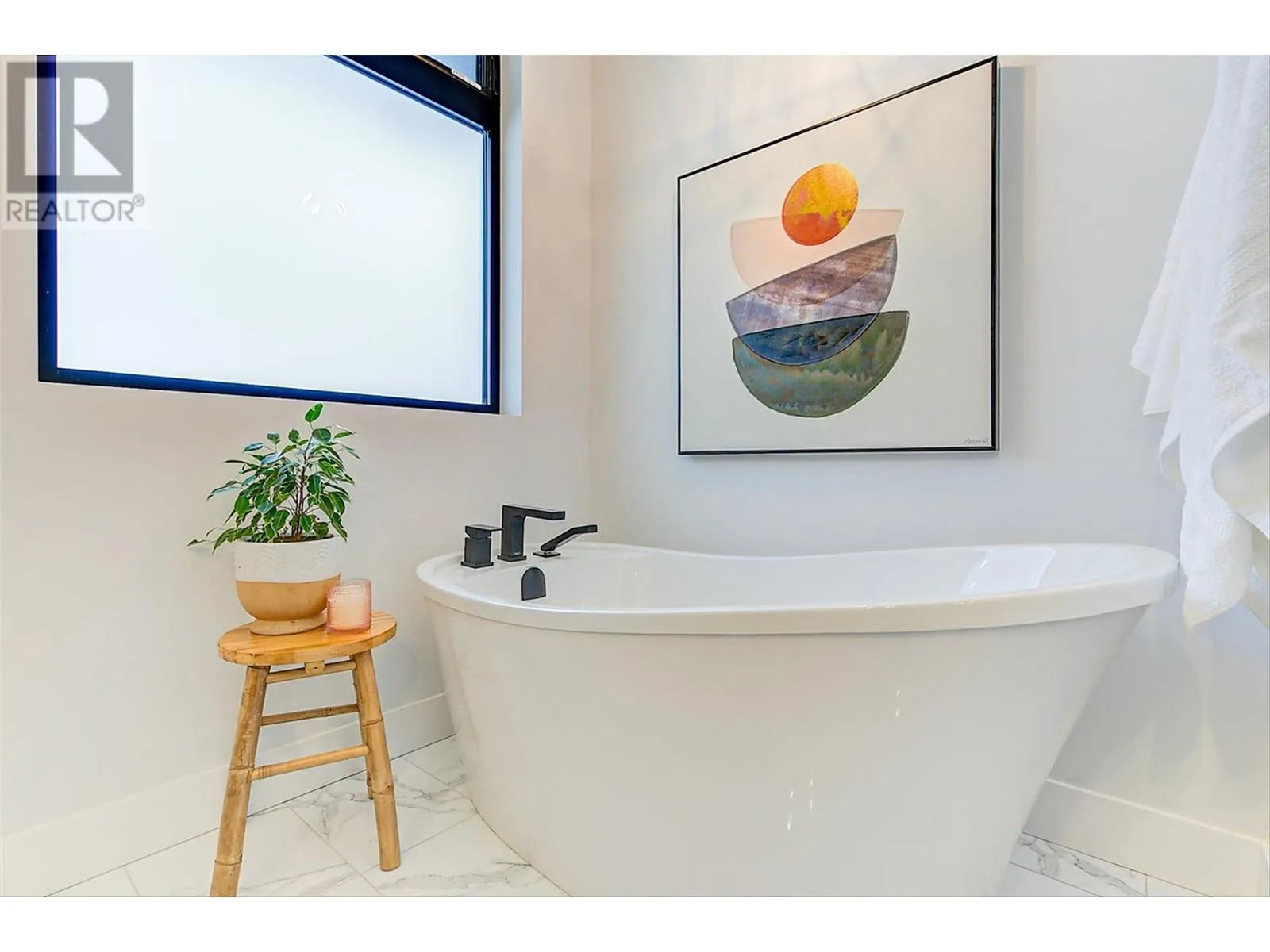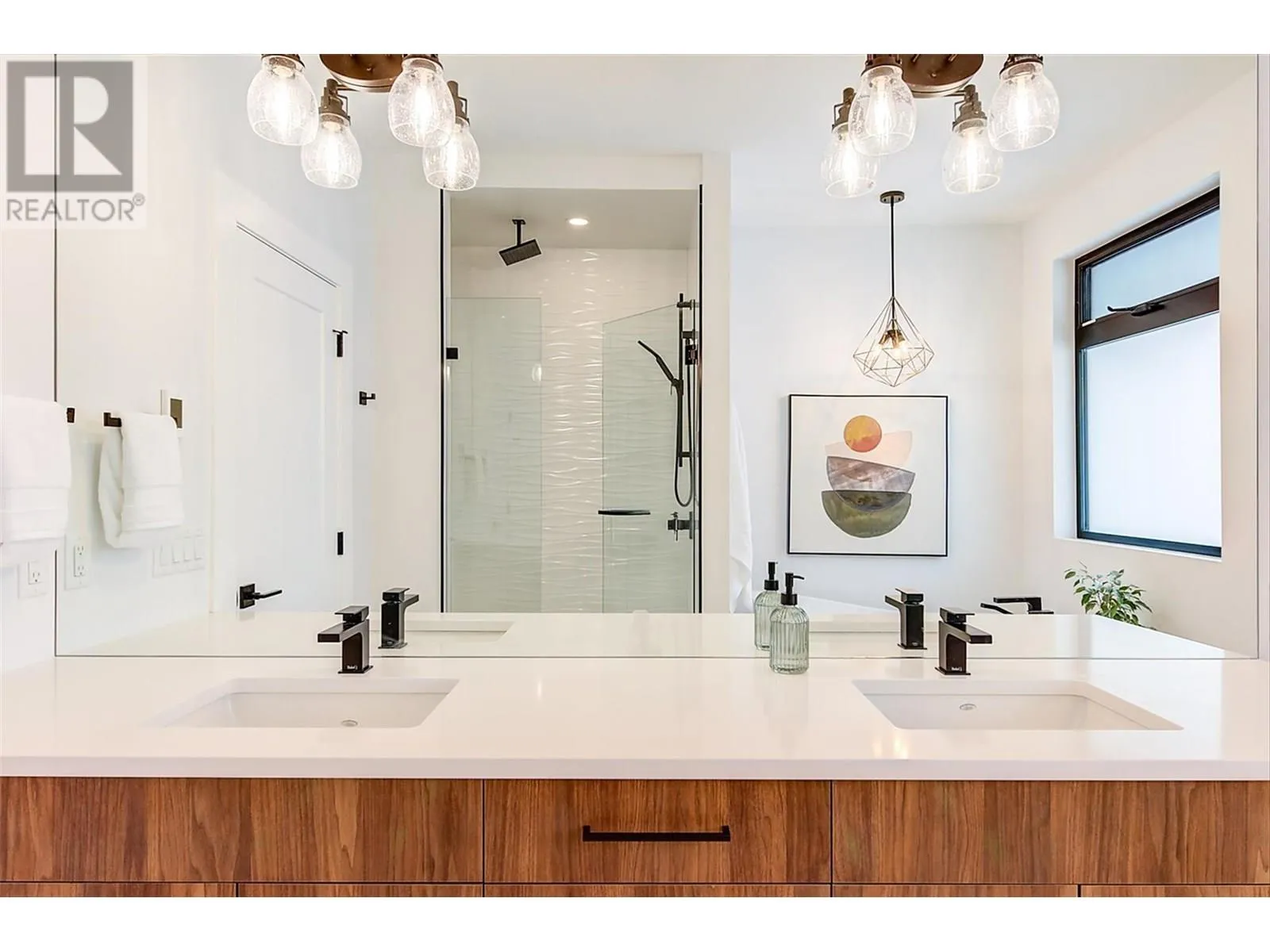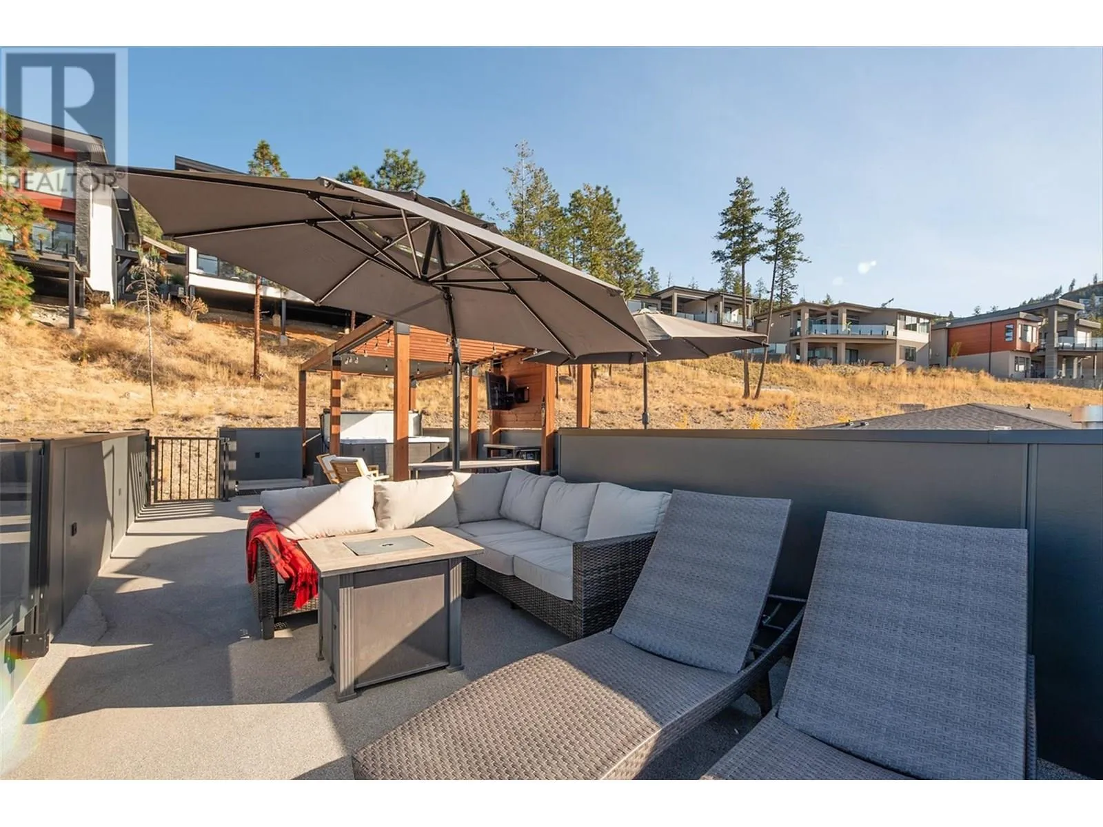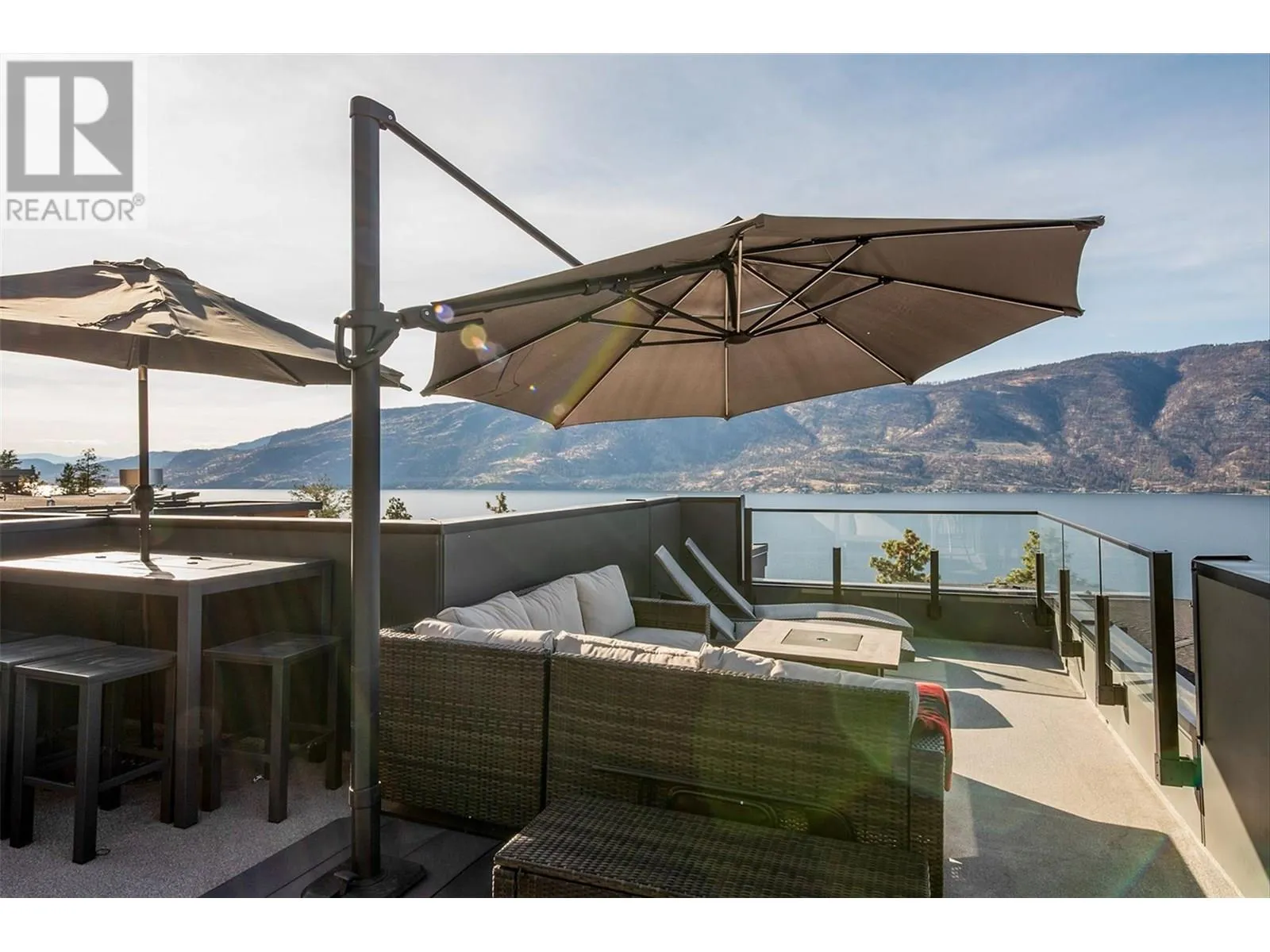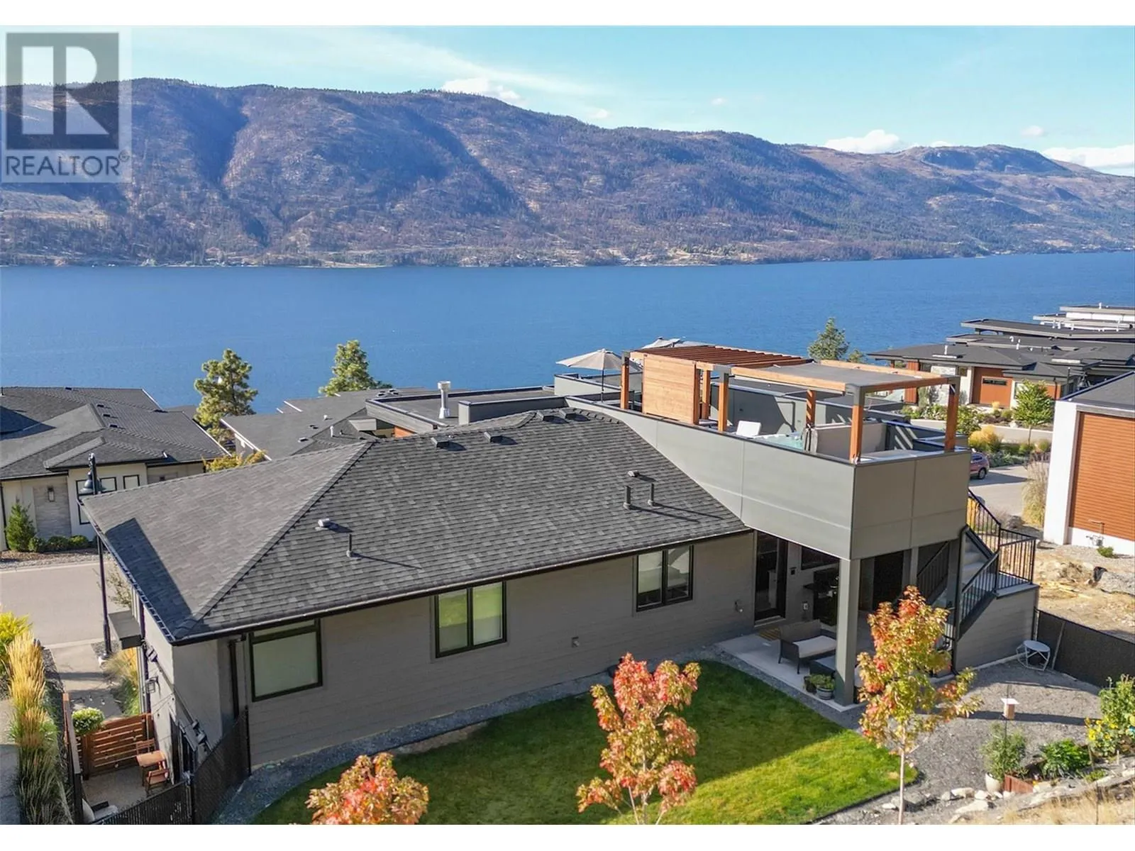 FANTASTICALLY RARE FIND in McKinley Beach!!! Home with a 725 SF ROOF TOP PATIO W/ HOT TUB & LOUNGE OVERLOOKING OKANAGAN LAKE. BE THE ENVY OF THE NEIGHBOURHOOD while basking in the sun taking in breathtaking 180 degree; western views. Custom Crafted home built by one of Kelowna's finest Award Winning builders features an open concept floor plan w/ eat in kitchen that includes a large quartz, waterfall island & high end appliance package including a 36"" gas range. Rare again, large fenced backyard seen from your kitchen sink. Picturesque Walls of Windows facing East & West spray sunshine into your home no matter the season. Luxurious Primary Bedroom hosts the perfect retreat of an ensuite that includes heated floors, 2 sinks, spacious shower & stand alone tub. 2 added bedrooms, full bath, 4th bedroom/den & laundry room complete this main residence. Find a fully furnished Legal 1 bedroom Suite fitted with a private side entrance & separate patio, is the perfect space for guests when they come to visit, or rent out for extra revenue. TOPPING all of this off is an incredible oversized double car garage with Epoxy floors & extra parking on the driveway. The McKinley Beach Association membership share a $5M amenity centre fittingly named ""Our Place"" includes a secure clubhouse w/ gym, indoor pool & hot tub. Outdoor community features include Pickle ball, Tennis & Basketball courts, Community Gardens, Beach, Marina (5 min walk or cruise down in a golf cart), & endless Hiking Trails. (id:27476)