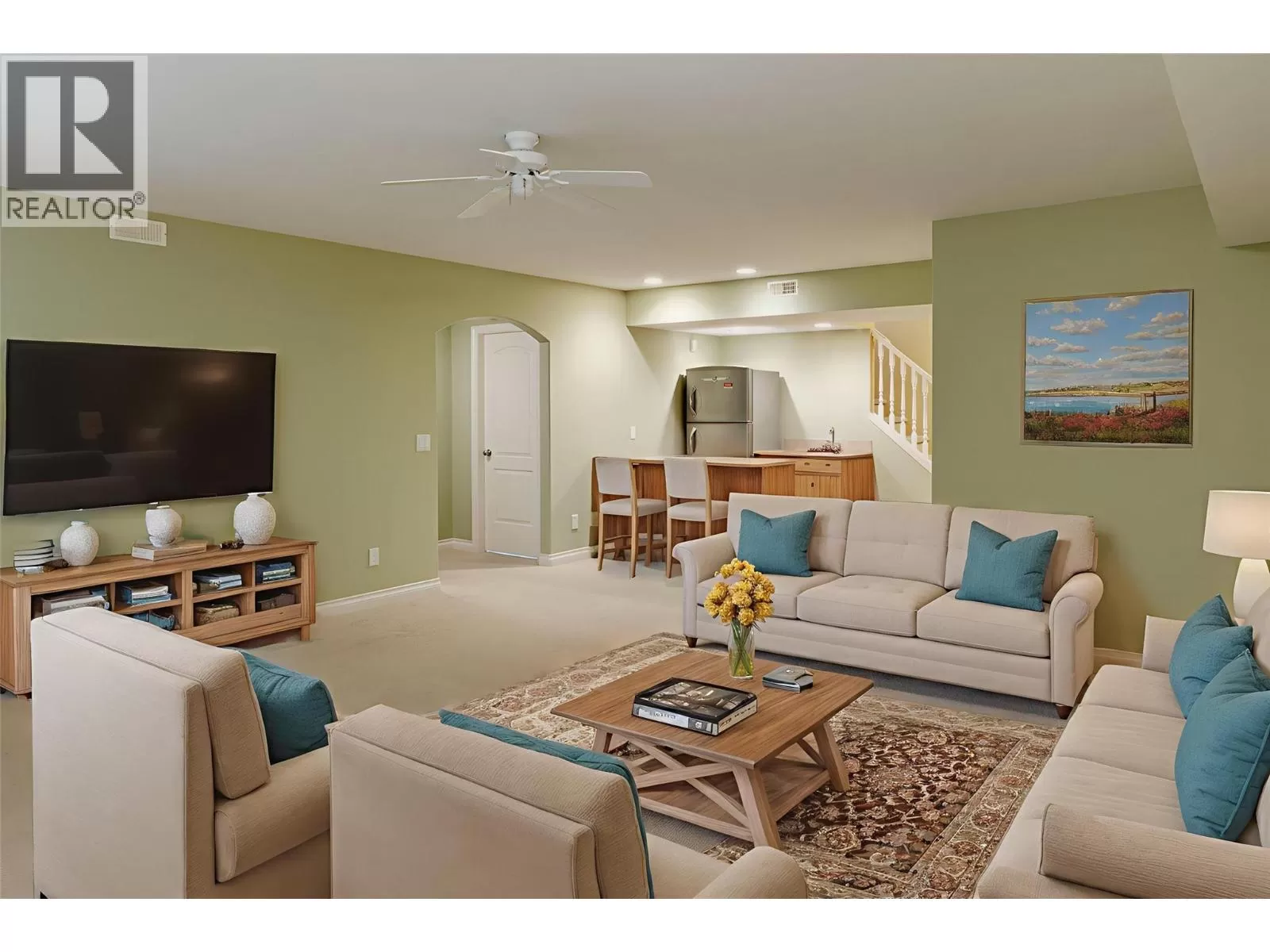 Discover this bright & inviting home offering a versatile floor plan and stunning valley views. Situated in a quiet, family-friendly Kettle Valley neighbourhood, famous as an award winning elite residential community with local shops and services. This residence provides the perfect blend of comfort and functionality. The main level features an open-concept design flooded with natural light, highlighted by warm hardwood flooring and a cozy gas fireplace. The spacious kitchen includes a large island with bar seating, stainless appliances, and a pantry â ideal for everyday living and effortless entertaining. Step outside to a generous sun deck to enjoy morning coffee or evening sunsets overlooking mature trees and mountains beyond. The primary suite is a true retreat, complete with its own fireplace, access to the deck, a walk-in closet, and a spacious ensuite with dual vanities and a soaker tub. The lower level offers two additional bedrooms, a full bathroom, a large family room with fireplace, and a wet bar area â presenting excellent flexibility for guests, a recreation space, or future suite potential. Enjoy the covered patio that seamlessly extends your living space outdoors. Additional highlights include a double garage, abundant storage, and welcoming covered entry set above the street for added privacy and presence.This is a fantastic opportunity to personalize and create your dream Okanagan home in a peaceful setting just minutes from schools, shops, parks & amenities. (id:27476)