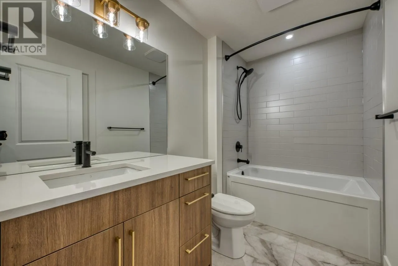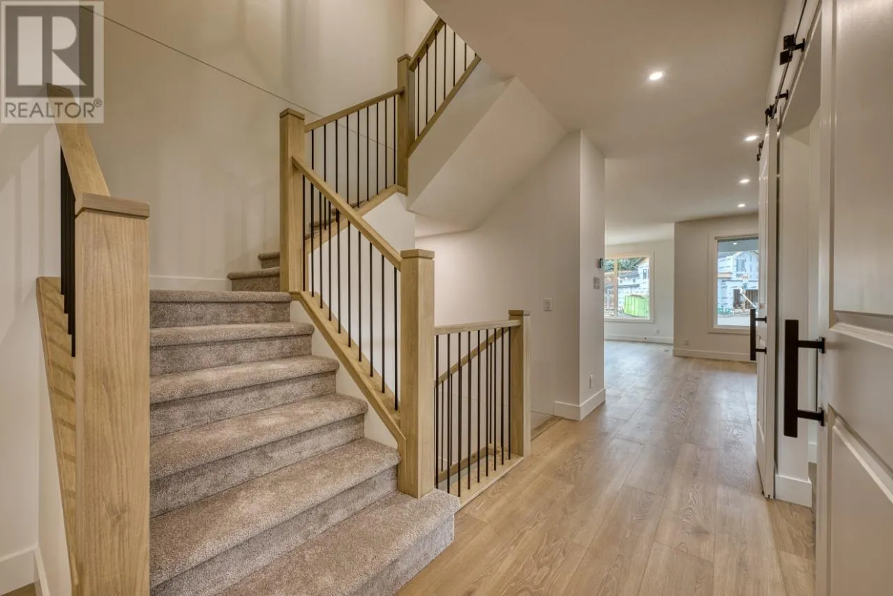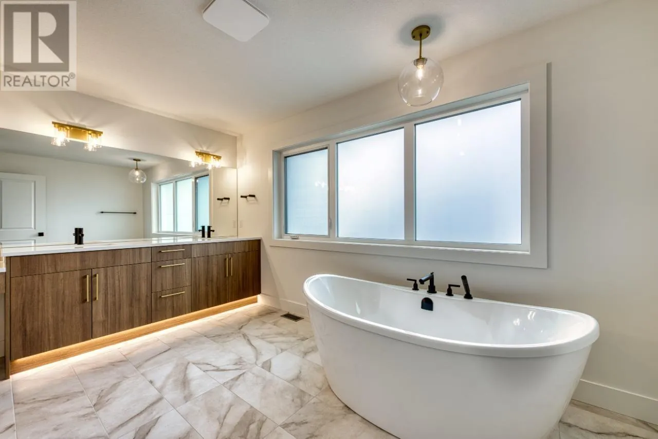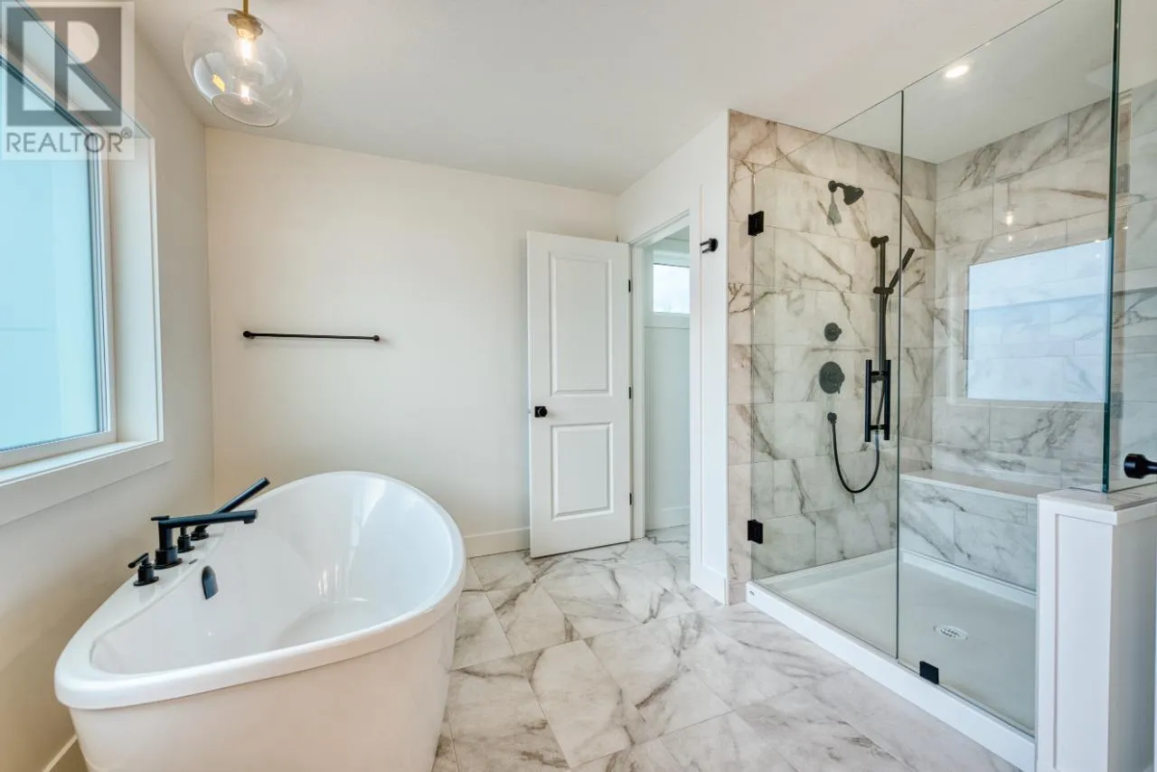 The Olive, a modern farmhouse by Carrington Home, is a stunning new build located in the Orchard in the Lower Mission. Designed with a soft, inviting color palette, this thoughtfully laid-out home offers the perfect balance of style and function. The spacious open-concept living area features custom arches and a striking double-sided electric fireplace that connects the great room and home office. The chefâs kitchen includes a large island, plenty of cabinets, and a 10pc appliance package. A butlerâs pantry and mudroom enhance organization and convenience. Upstairs, the luxurious primary bedroom boasts vaulted ceilings, a faux-wood beam, and electric fireplace, enjoy a spa-like ensuite with dual vanities, and a walk-in closet. Two additional bedrooms, a full bath, and a bonus room complete the upper level. The finished basement includes a rec room with an electric fireplace and is roughed in potential future development. The Olive offers timeless elegance and modern living. (id:27476)