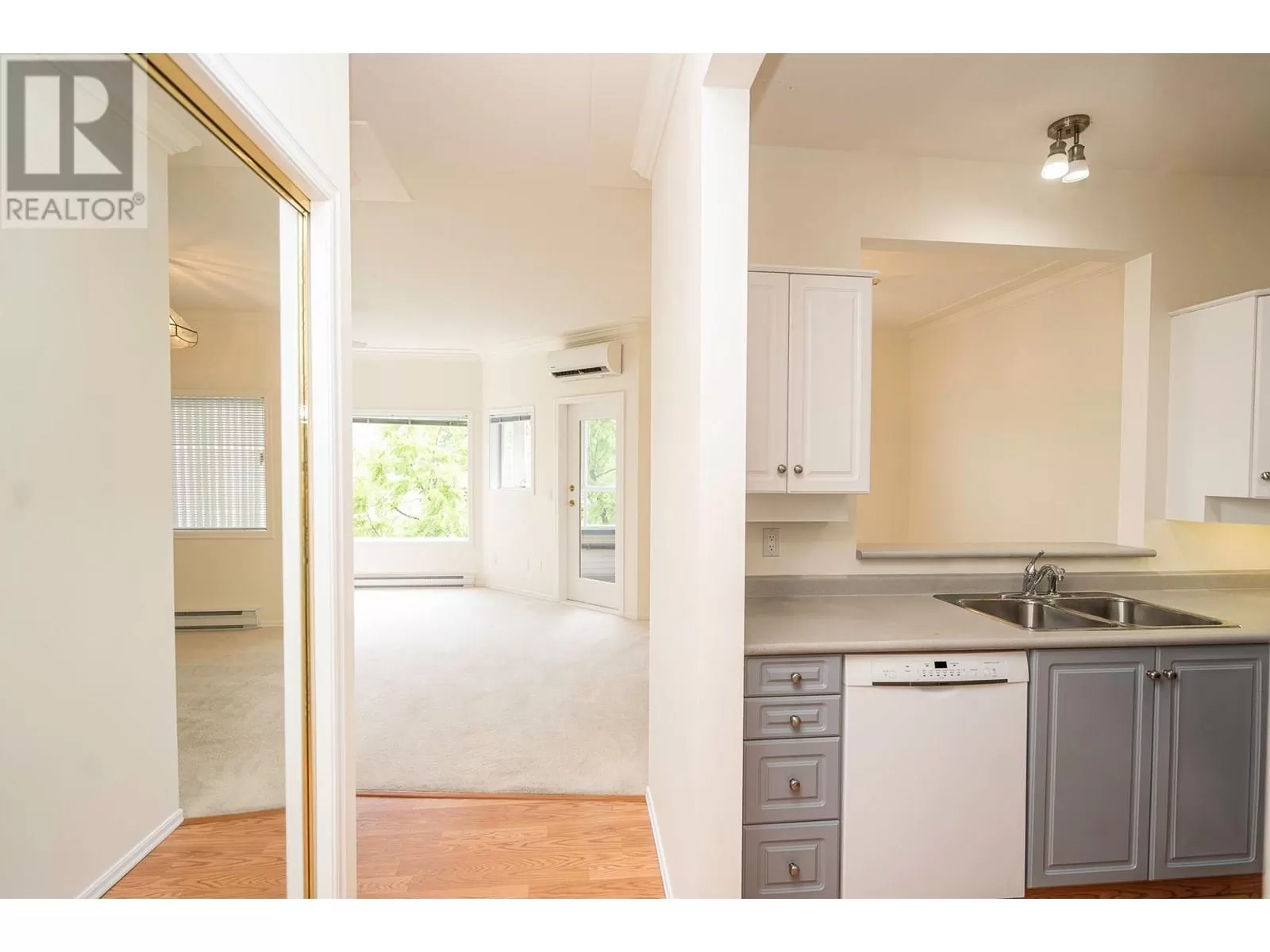 Welcome to Hawthorn Park, a desirable 55+ community perfectly located near Mission Creek Shopping Centre! This bright and spacious south-facing corner unit offers 2 bedrooms, 2 bathrooms, and over 1,100 sqft of thoughtfully updated living space featuring crown moulding and laminate flooring. Enjoy mountain views from the open-concept living area and the comfort of a sunroom that backs onto the peaceful creek - perfect for year-round enjoyment. The updated U-shaped kitchen offers modern finishes and plenty of storage. The primary suite features a walk-through closet and a beautifully renovated ensuite with new flooring, a walk-in tile shower, and updated fixtures. The second bedroom is spacious and has mountain views as well! Additional highlights include in-unit laundry, a mini split heat pump to keep you cool all summer, fresh paint, and a storage locker conveniently located just across the hall. One secured underground parking stall and ample visitor parking complete this fantastic offering! (id:27476)