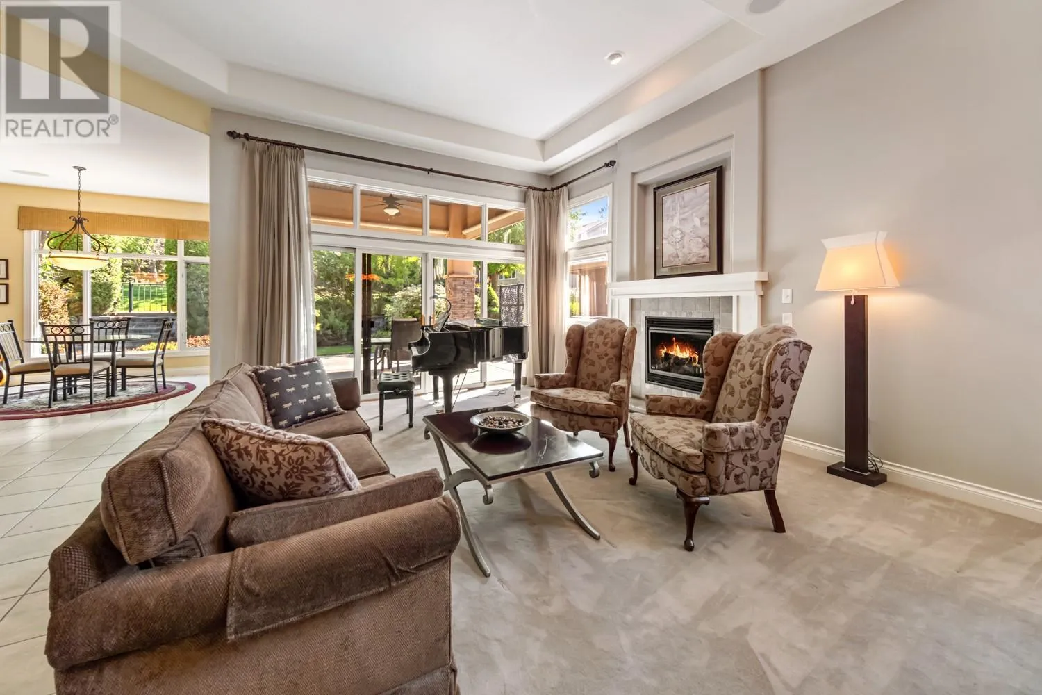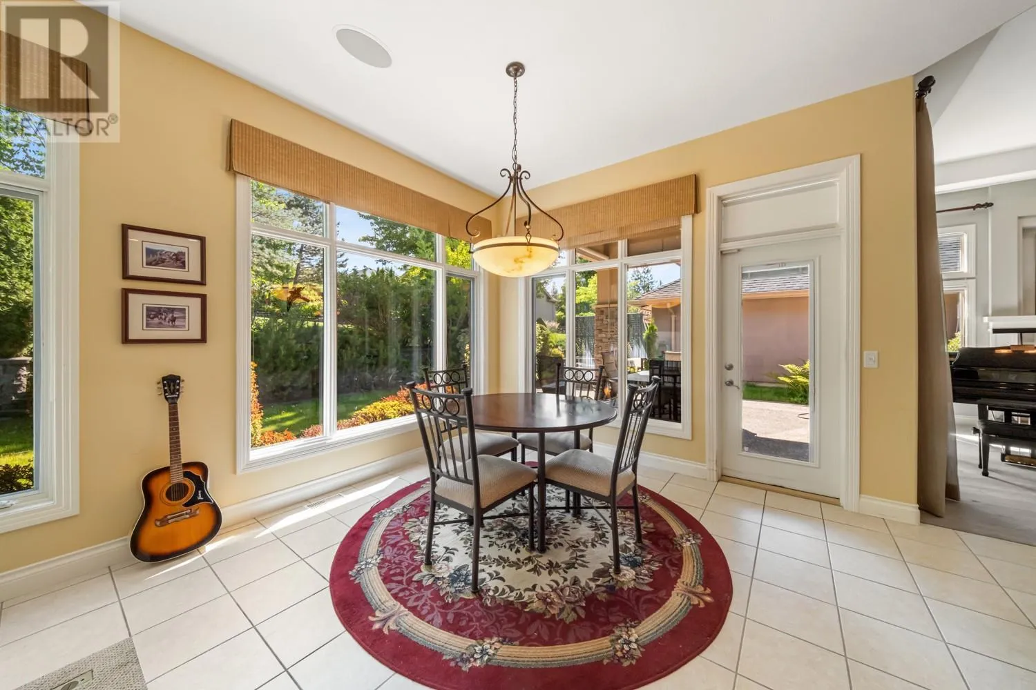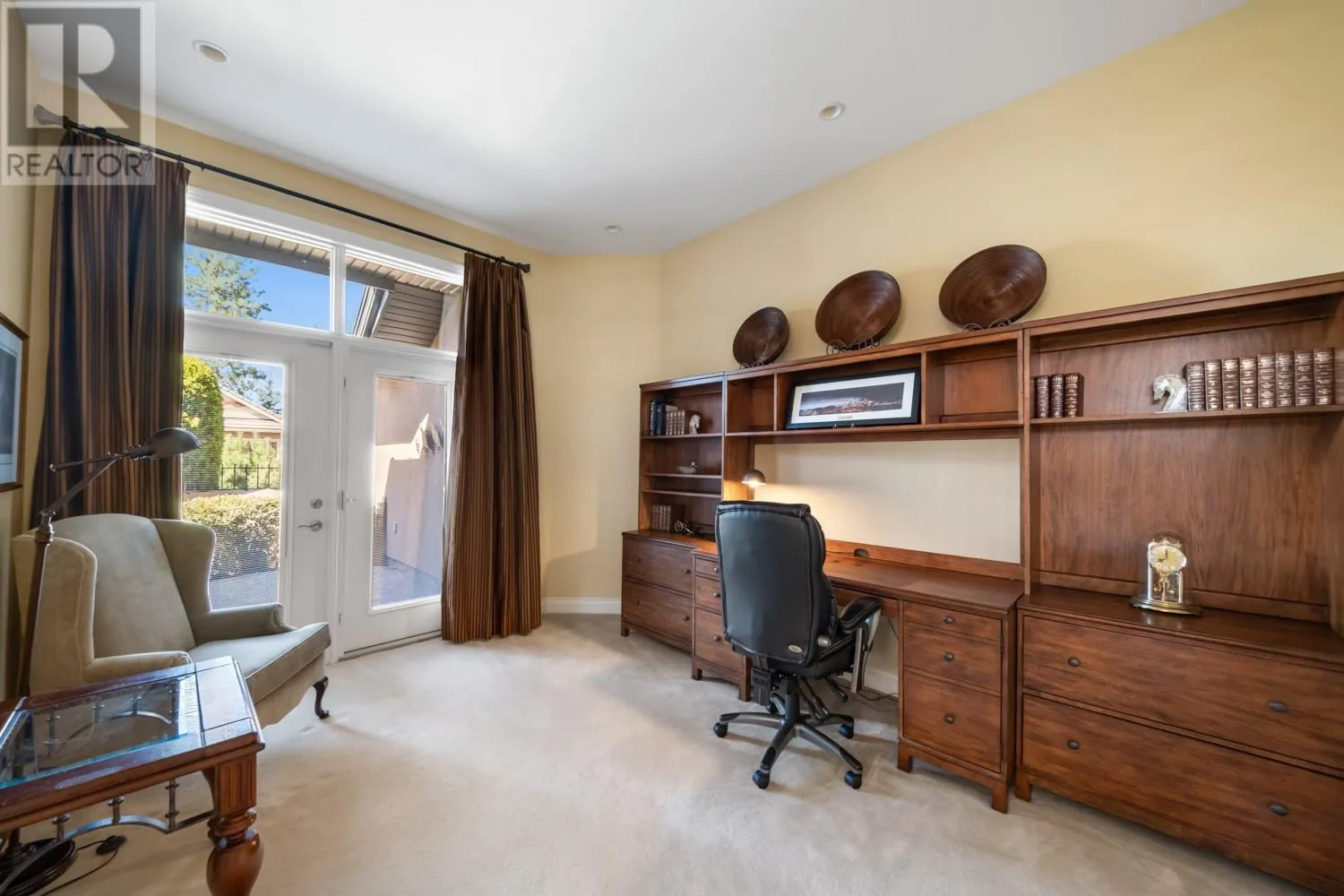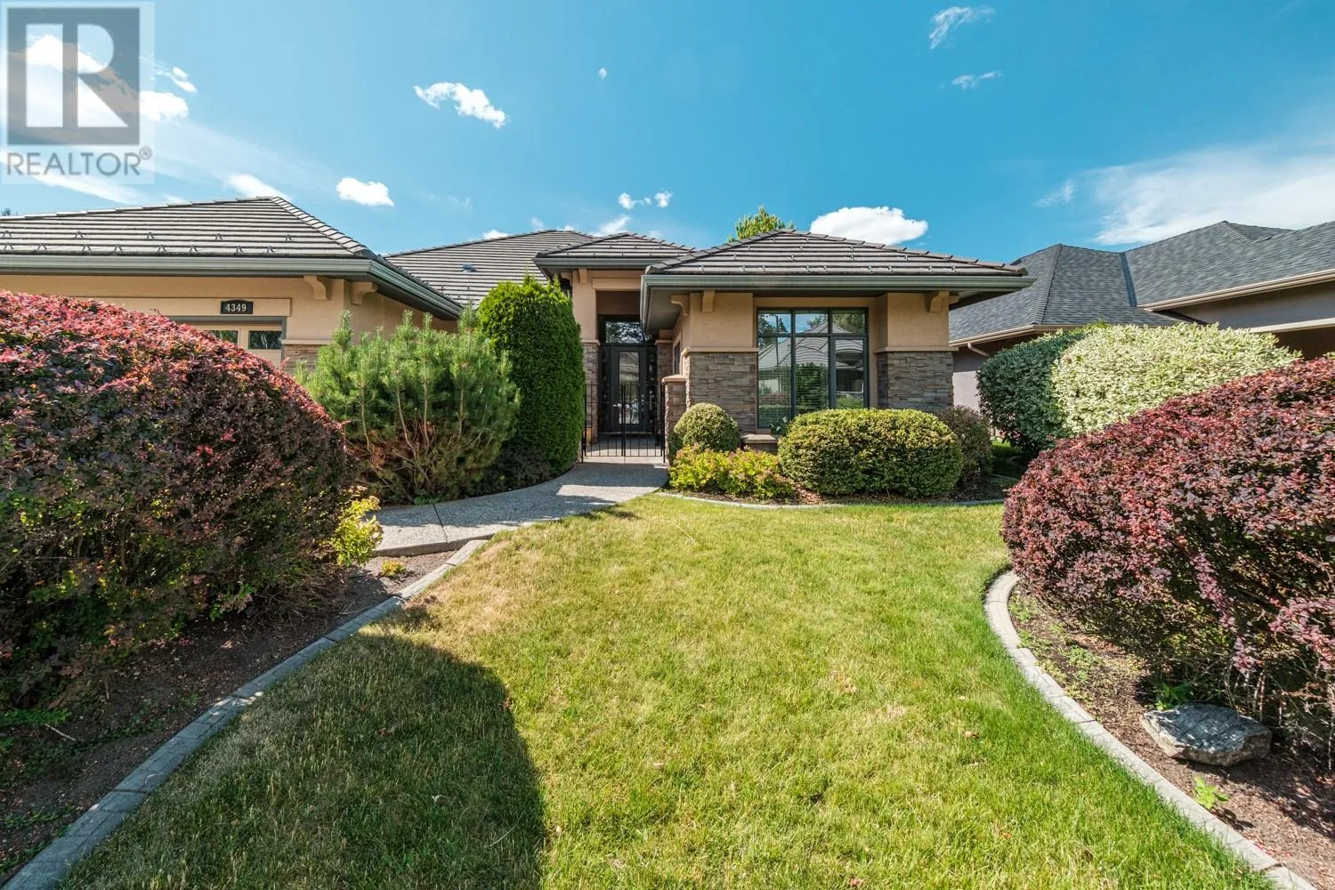 This coveted âTroonâ Model is the flagship of Gallaghers Home designs offering style and quality throughout. Backing on to a Private Strata Park, this home offers exquisite privacy and beautiful Outdoor living space. The dramatic, high ceilings and expansive windows invite in south facing light to highlight the stunning finishing. Concrete Tile Roof and Acrylic Stucco ensure many years of worry free maintenance. Plenty of versatile living space with a formal Living and Dining Room as well as a cozy Family Room and Breakfast Nook. The spacious Primary Suite boasts a 5 piece spa inspired ensuite bathroom and walk-in closet. A guest room, additional full bath, den/office, and laundry room complete the floorplan. As an added bonus, there is a large, full height unfinished partial Basement space with stair access from the garage great for Storage, Workshop, Gym, or Hobby Room options. If you are a Nature Lover - you will delight at the many trail accesses just outside your door. Gallaghers Canyon is known for its vibrant lifestyle community and variety of amenities. Schedule your personal tour to see what Okanagan Living is really all about! (id:27476)