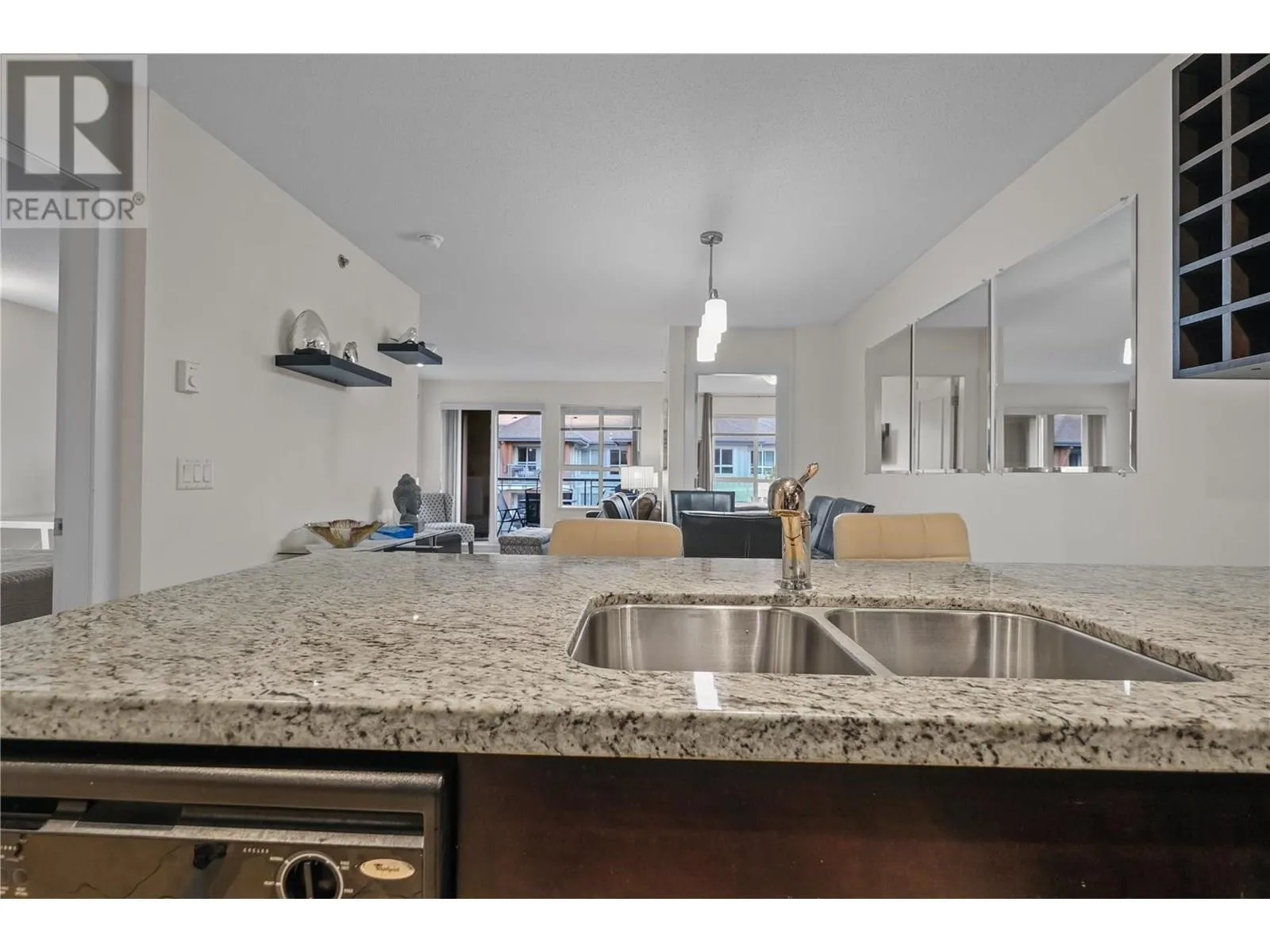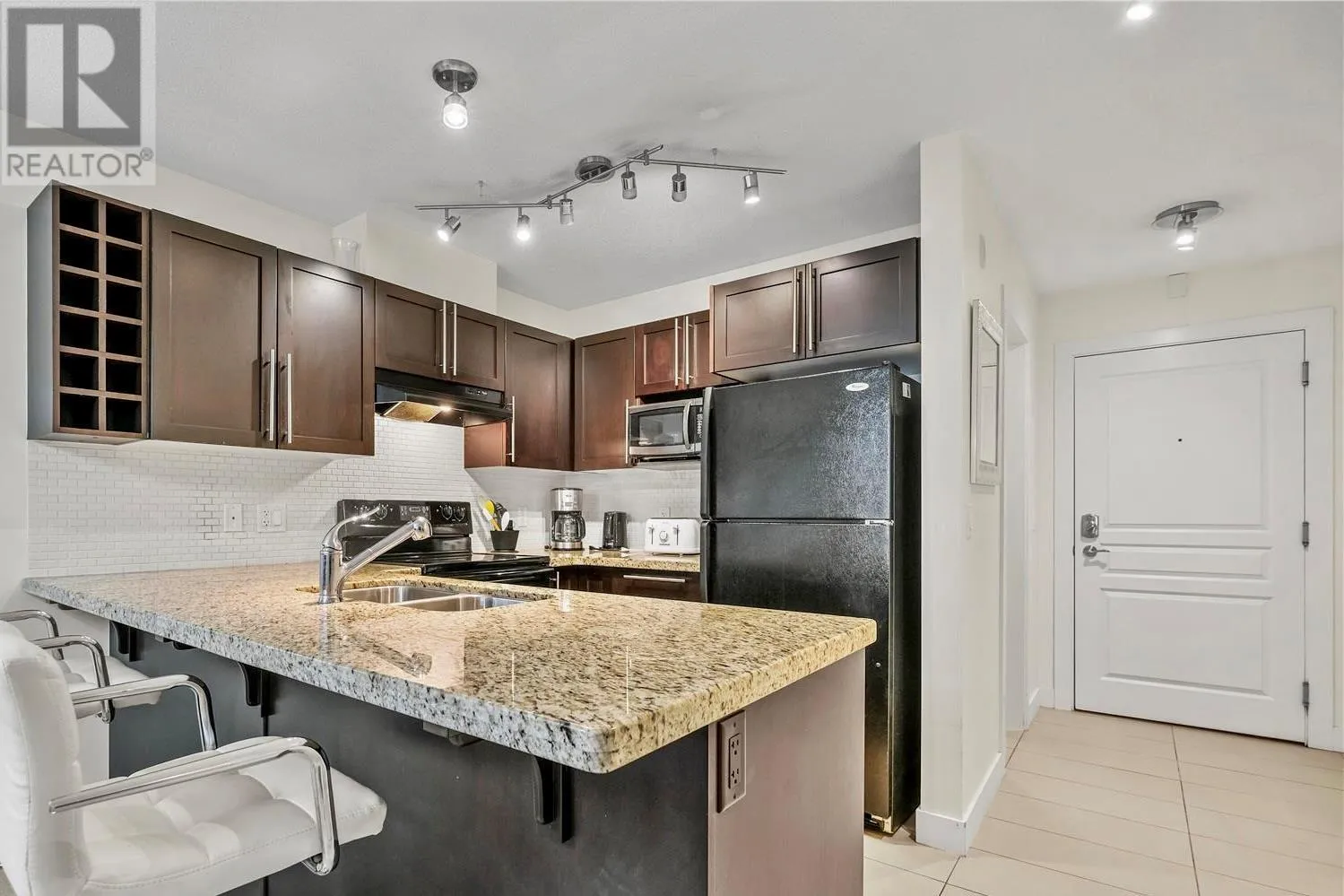 Welcome to Waterscapes, one of downtown Kelowna's most sought after resort style communities. This top floor 2 bedroom, 2 bathroom condo is currently in the final stages of a full professional rebuild, offering the rare opportunity to own what feels like a brand new home, without paying GST! The unit features a bright and functional layout with generously sized separated bedrooms for added privacy, a kitchen with wrap around granite countertops including bar style seating, plus a built-in wine rack, an electric fireplace and access to your spacious deck. The primary bedroom is big enough for a king size bed and includes a walk-in closet and a full ensuite. The 2nd bathroom includes a walk-in shower, and for added convenience, the suite includes its own in suite laundry. Waterscapes residents enjoy access to the Cascade Club, which includes an outdoor pool, two hot tubs, a full fitness centre, a residents lounge with 2 pool tables, guest suites and a putting green. Located just steps from Okanagan Lake, this home is within walking distance to the yacht club, Prospera Place, Knox Mountain, restaurants, cafes, breweries, and Kelownaâs vibrant cultural district. The building is pet friendly with no height restrictions for dogs, making it perfect for animal lovers. Whether you are a first time buyer, investor, or just want to experience downtown living, this is a unique opportunity to own in a nearly new building, with a secure underground parking spot & your own storage locker! (id:27476)