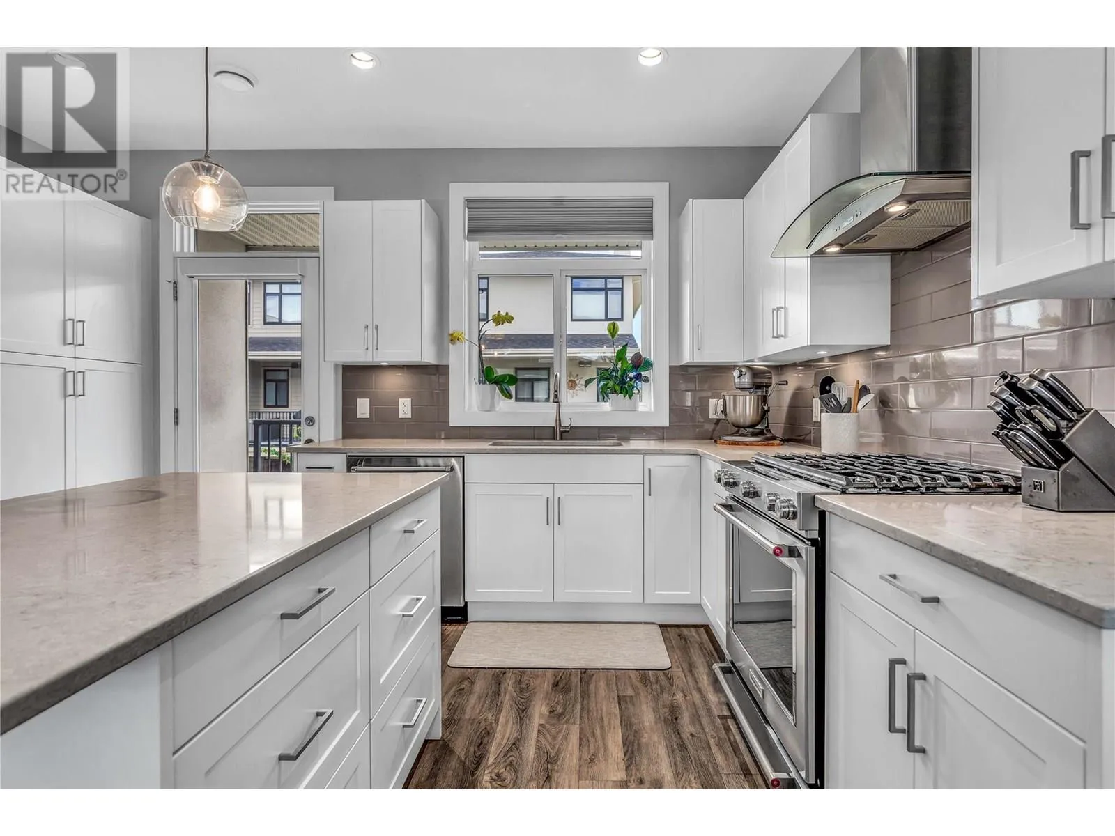 Pristine Townhome in Cameron Mews! Discover this stunning end-unit townhome located in the desirable Cameron Mews community. Offering 3 bedrooms and 2.5 bathrooms, this home sits on the quieter side of the complex, providing a peaceful retreat. Parking is plentiful with space for 4 vehicles, including a 2-car garage. The open-concept living, dining, and kitchen area boasts soaring 9-foot ceilings, creating a bright and airy atmosphere. The kitchen is a chefâs dream with sleek quartz countertops, a large island, stainless steel appliances, and a gas rangeâmaking meal prep a delight. Step outside onto two walkout decks, perfect for outdoor entertaining or relaxation. Upstairs, you'll find three spacious bedrooms. The primary bedroom features a luxurious 4-piece ensuite, a large walk-in closet, and its own private balconyâideal for unwinding. A full bathroom and convenient laundry area complete the second level. Additional features include a versatile first-floor den suited for a home office or additional living space, a charming front porch, and ample visitor parking just steps away. Built with exceptional craftsmanship and backed by a 2-5-10 New Home Warranty, this home offers style, comfort, and convenience in a prime location close to shopping, schools, parks, and the hospital. Donât miss the opportunity to make this exceptional townhome your new home! (id:27476)