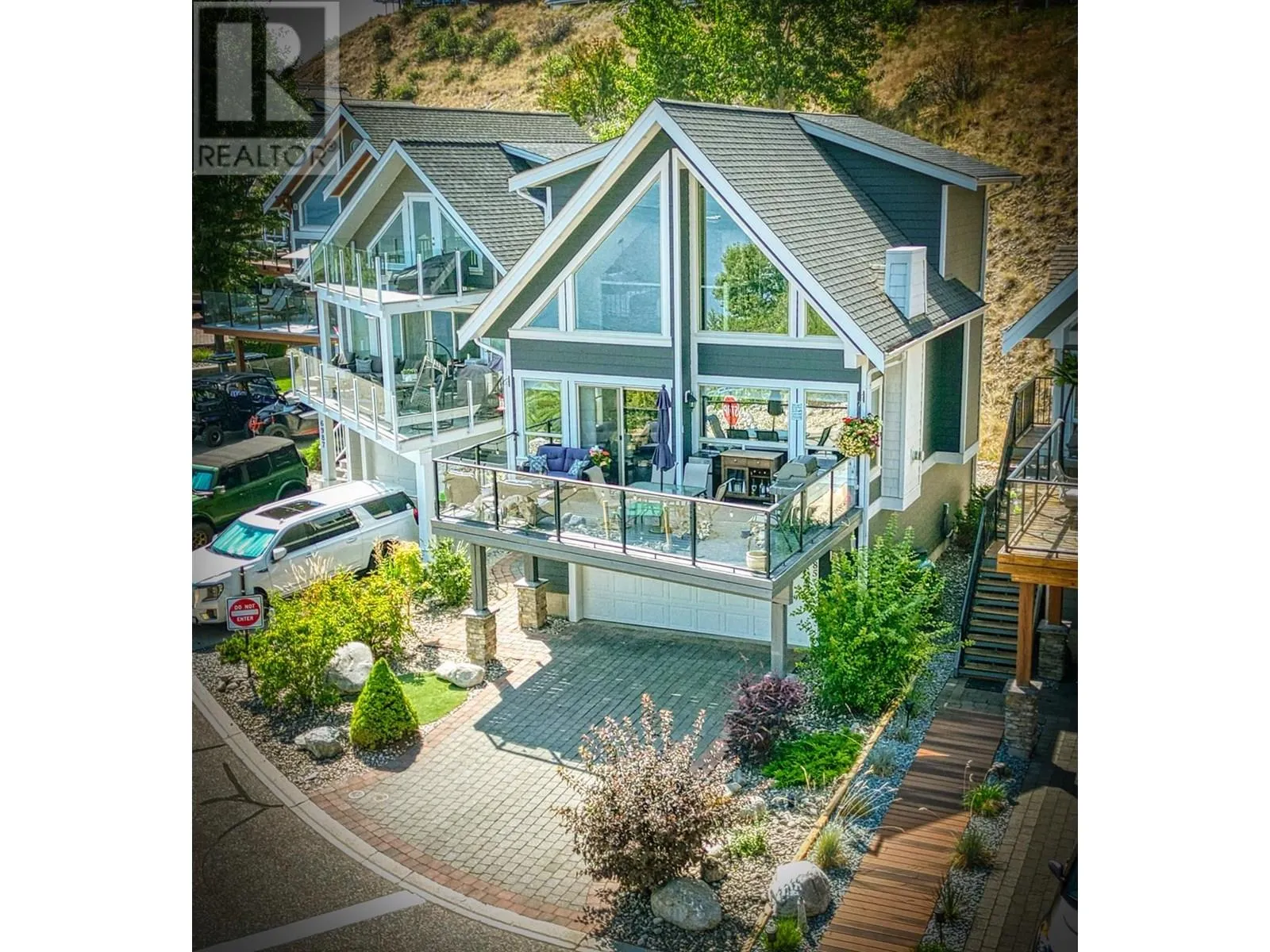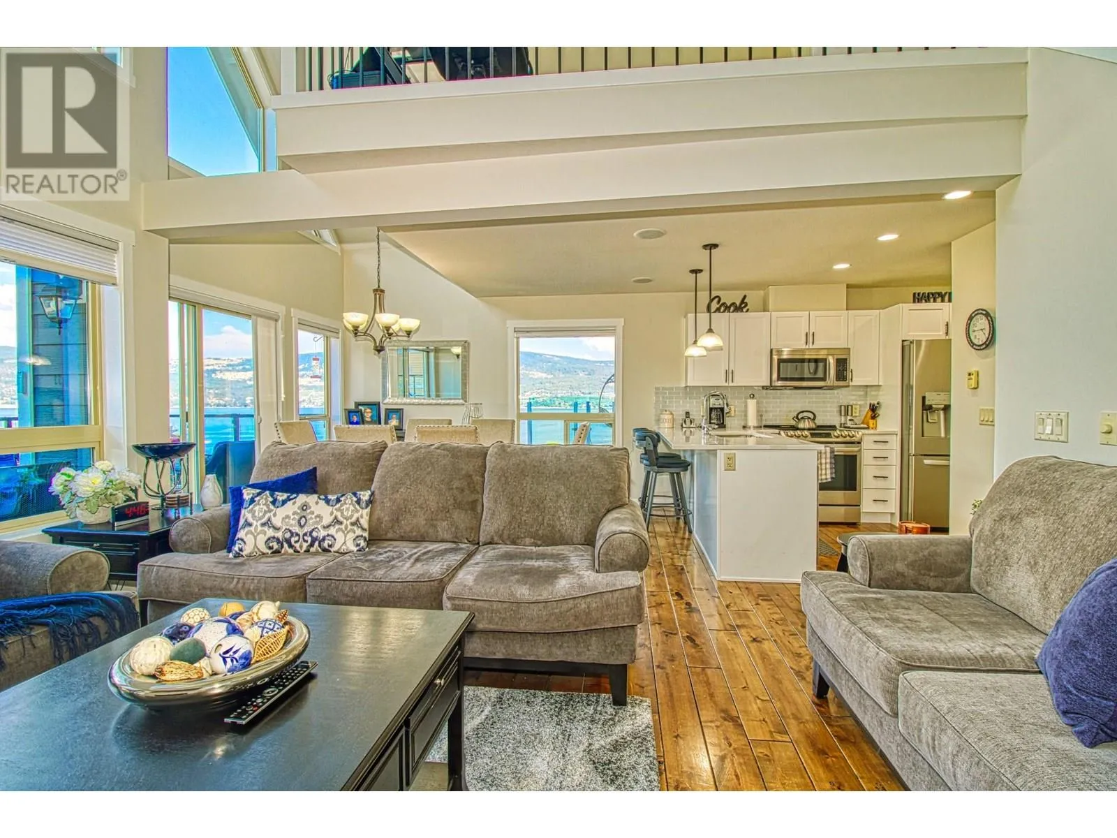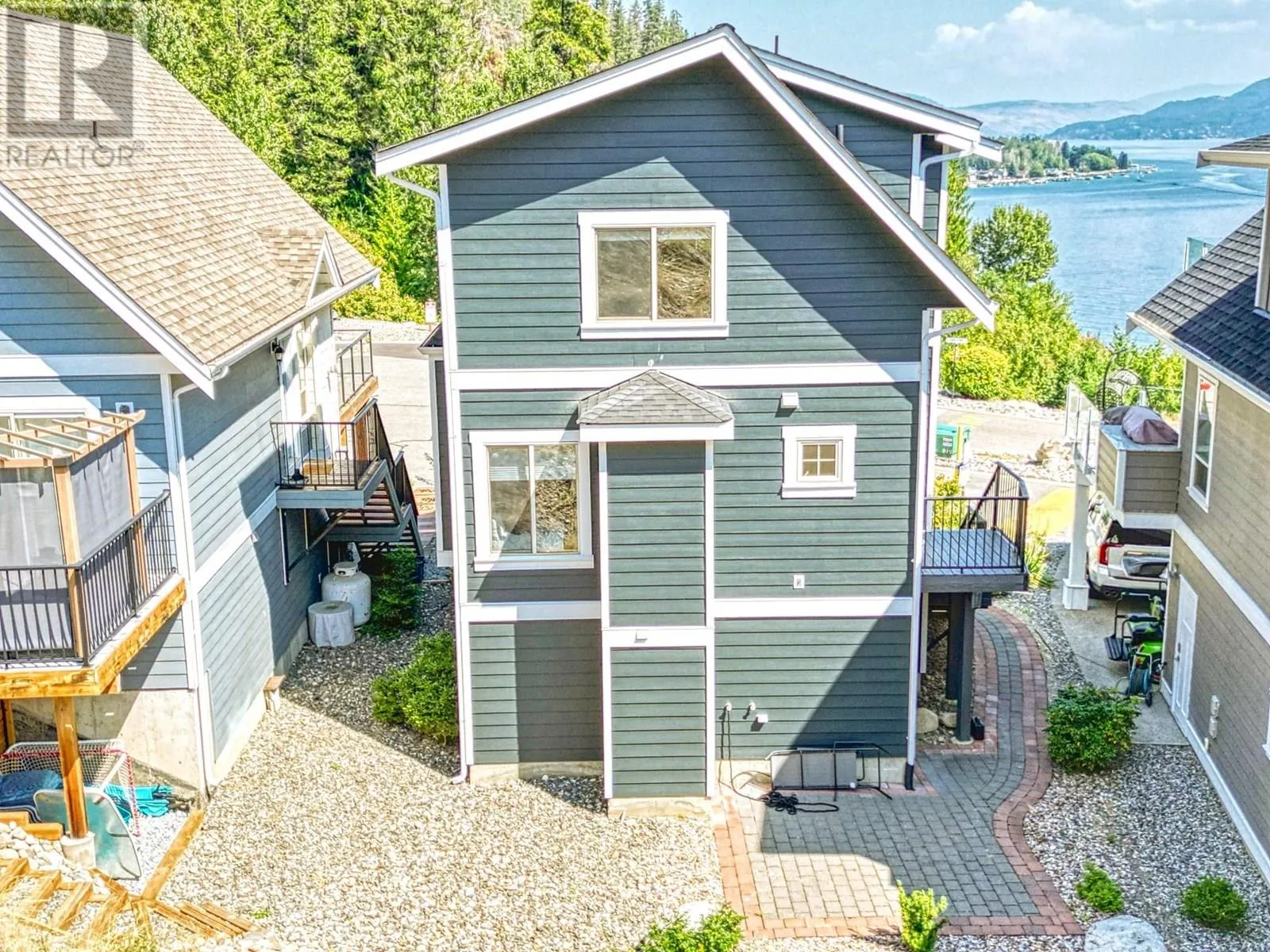 FULL LAKE VIEW & WALK TO YOUR BOAT. This cottage at La Casa Resort is located very close to the marina parking lot, has full garage, fantastic lake views. Recent NEW KITCHEN, BATHROOMS & APPLIANCES. SHORT TERM RENTALS are allowed & popular at La Casa. Beautifully presented with recent complete professional repaint inside & out. Lots of room at the back to add a huge rear deck or further develop the existing patio (perfect spot for a HOT TUB). LARGE DECK facing the lake, Three good sized bedrooms, one is an open plan loft and already has doorway if you wanted to enclose the room. Garage large enough for boat and all your toys. Full width rear deck could be added with walkout from master bedroom (architectural approval reqd). Full lake views from kitchen, dining, living rooms and loft. Stone Countertops throughout, larger than average bathroom on top floor, full bathroom on main floor. Hardwood floor through living, dining, kitchen. Kitchen has breakfast bar. La Casa Resort is Freehold ownership, open YEAR-ROUND for you or VACATION RENTAL guests to enjoy. You choose whether to keep for yourself, rent out some of the time or use an on-site company if you want a 'hands-off' investment. La Casa Resort Amenities: Beaches, sundecks, Marina with 100 slips & boat launch, 2 Swimming Pools & 3 Hot tubs, Aqua Parks, Mini golf, Playground, Tennis/Pickleball Courts, Dog Beach, Beach area, Private Security, Owners Lounge, Owners Gym Facility. Grocery/liquor store on site plus Restaurant. (id:27476)