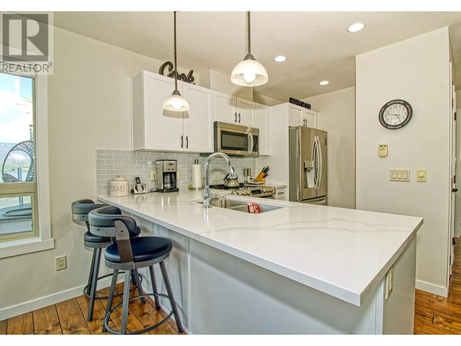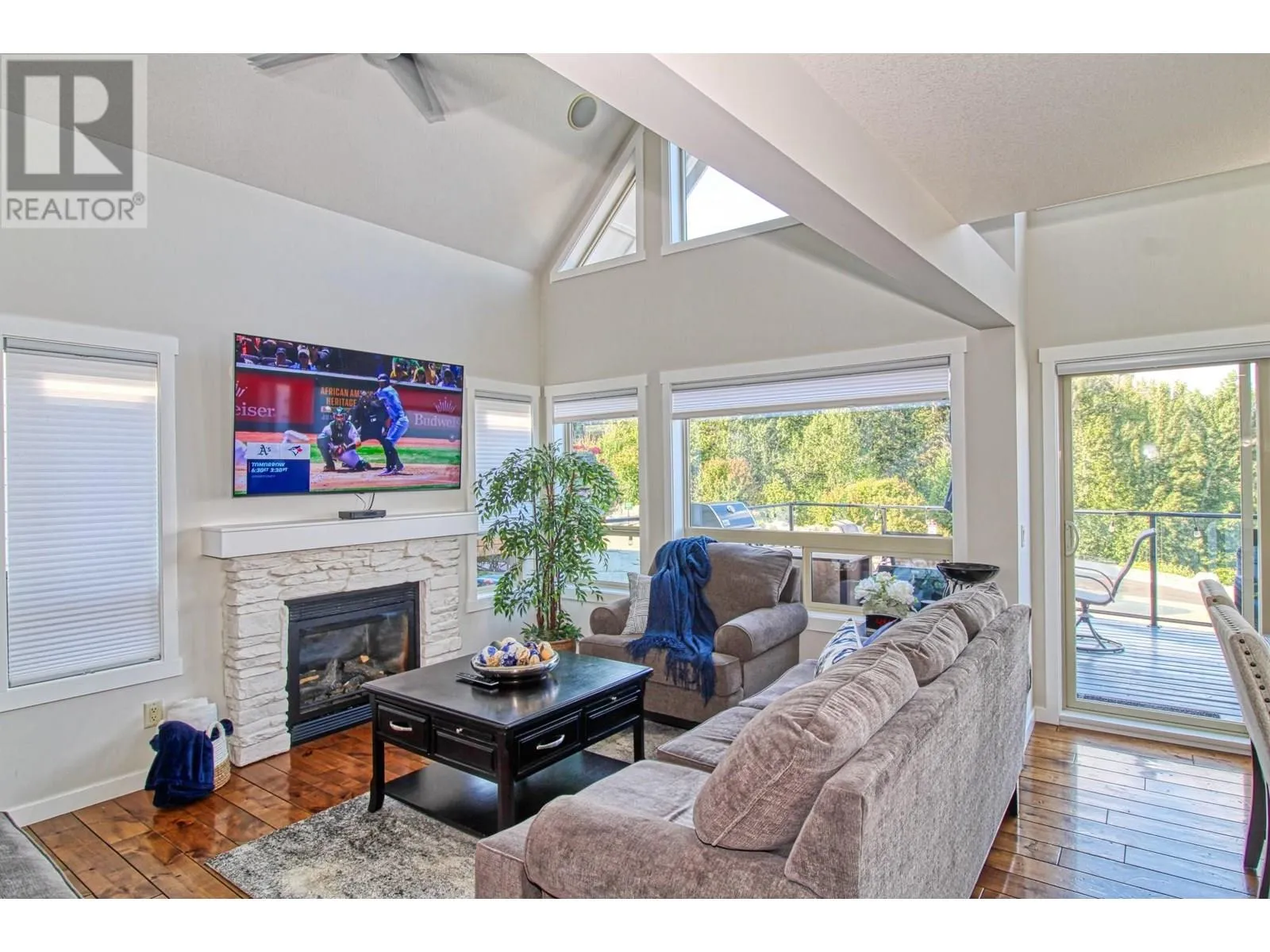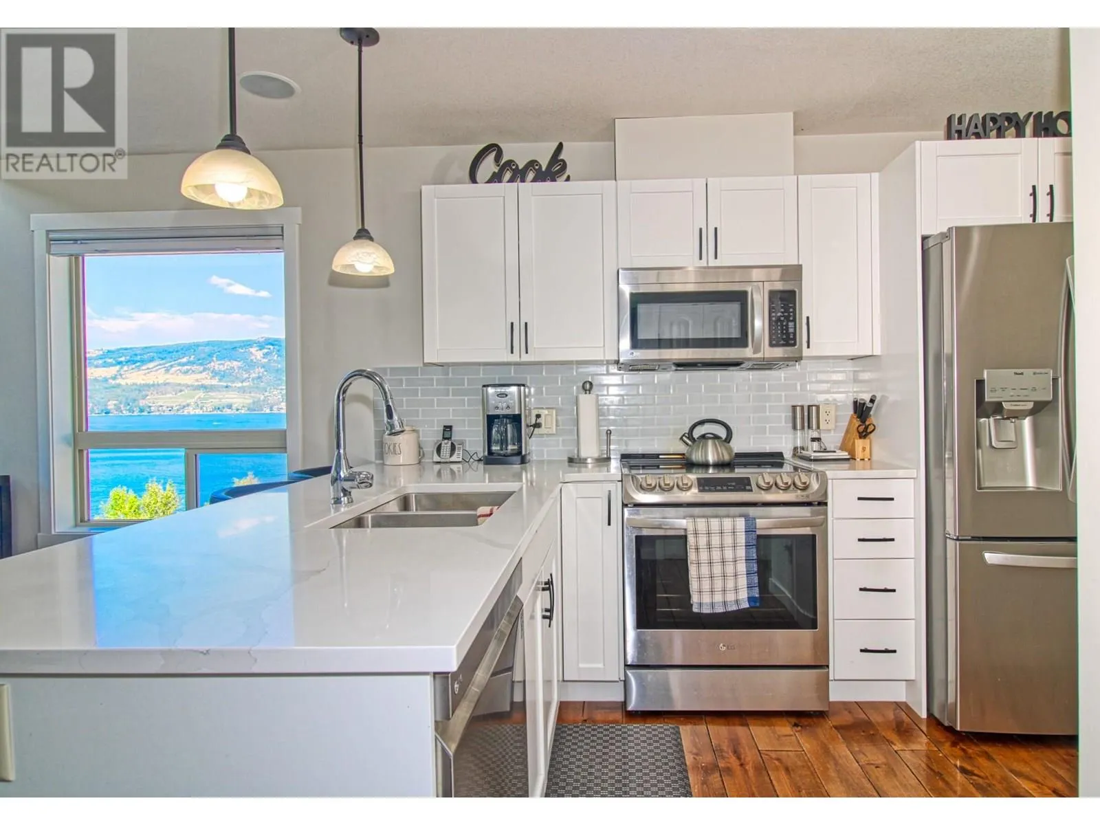 FULL LAKE VIEW & WALK TO YOUR BOAT. This cottage at La Casa Resort is located very close to the marina parking lot, has full garage, fantastic lake views. Recent NEW KITCHEN, BATHROOMS & APPLIANCES. SHORT TERM RENTALS are allowed & popular at La Casa. Beautifully presented with recent complete professional repaint inside & out. Lots of room at the back to add a huge rear deck or further develop the existing patio (perfect spot for a HOT TUB). LARGE DECK facing the lake, Three good sized bedrooms, one is an open plan loft and already has doorway if you wanted to enclose the room. Garage large enough for boat and all your toys. Full width rear deck could be added with walkout from master bedroom (architectural approval reqd). Full lake views from kitchen, dining, living rooms and loft. Stone Countertops throughout, larger than average bathroom on top floor, full bathroom on main floor. Hardwood floor through living, dining, kitchen. Kitchen has breakfast bar. La Casa Resort is Freehold ownership, open YEAR-ROUND for you or VACATION RENTAL guests to enjoy. You choose whether to keep for yourself, rent out some of the time or use an on-site company if you want a 'hands-off' investment. La Casa Resort Amenities: Beaches, sundecks, Marina with 100 slips & boat launch, 2 Swimming Pools & 3 Hot tubs, Aqua Parks, Mini golf, Playground, Tennis/Pickleball Courts, Dog Beach, Beach area, Private Security, Owners Lounge, Owners Gym Facility. Grocery/liquor store on site plus Restaurant. (id:27476)