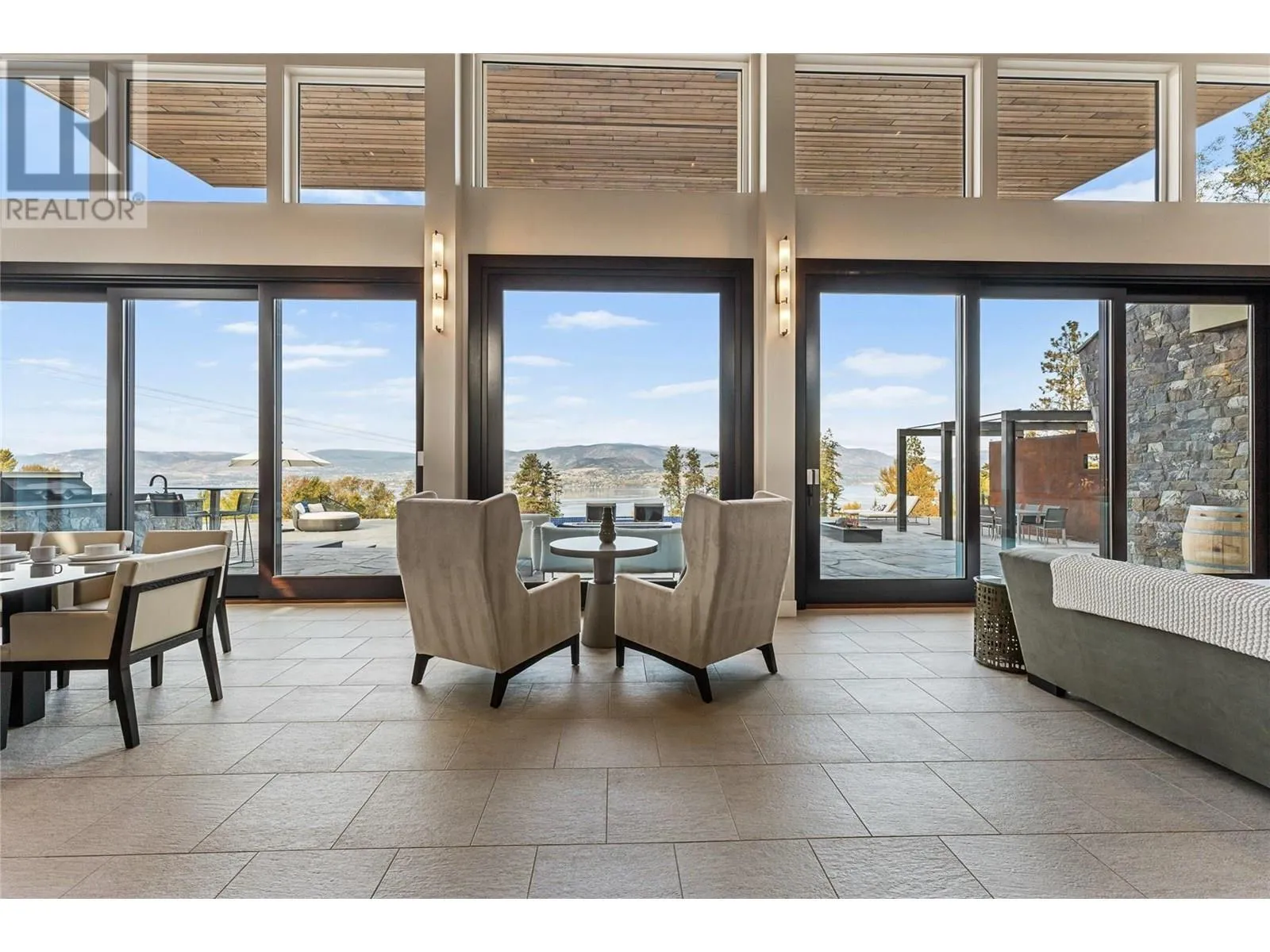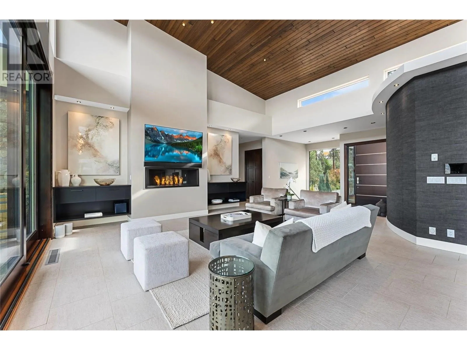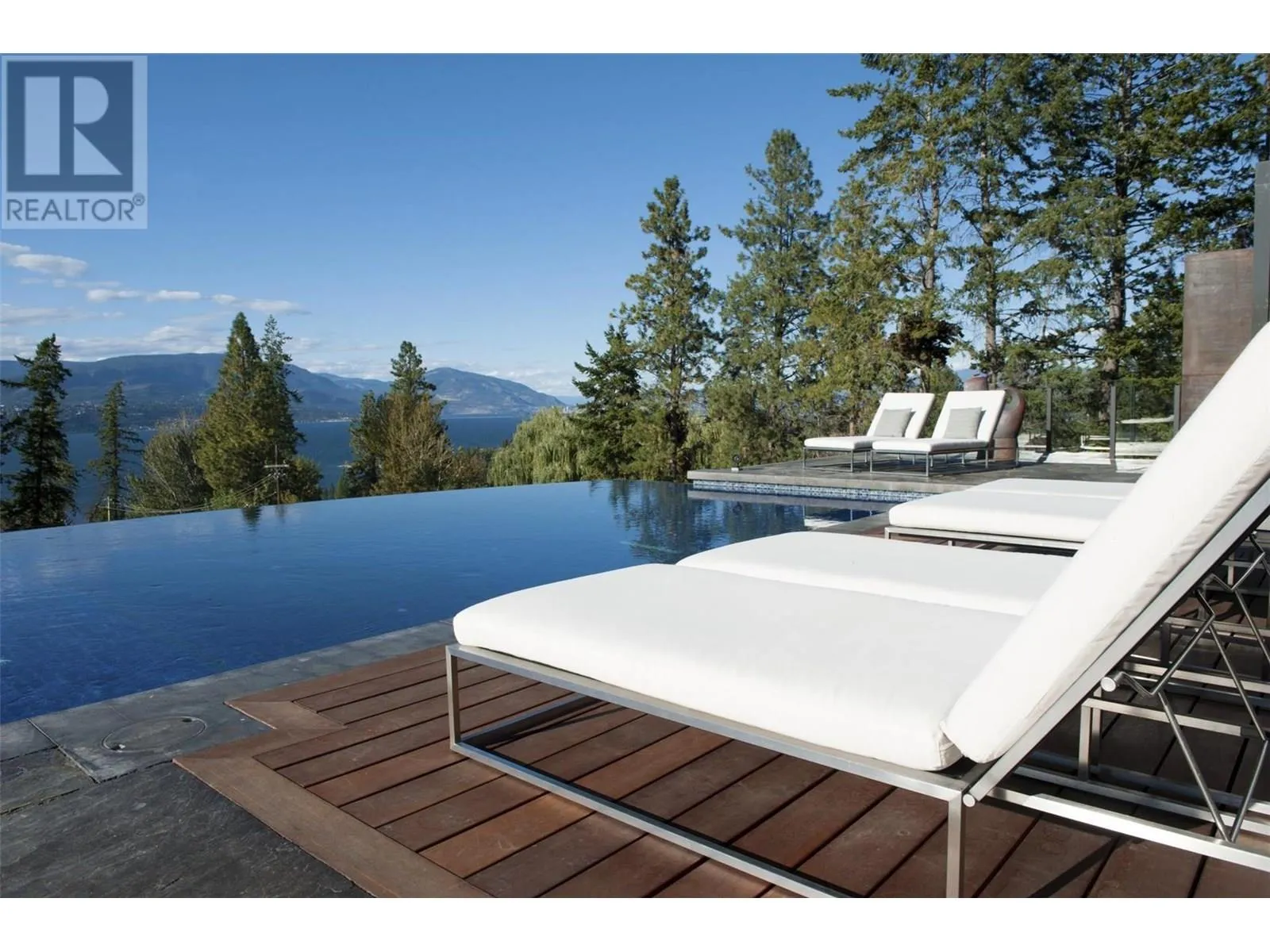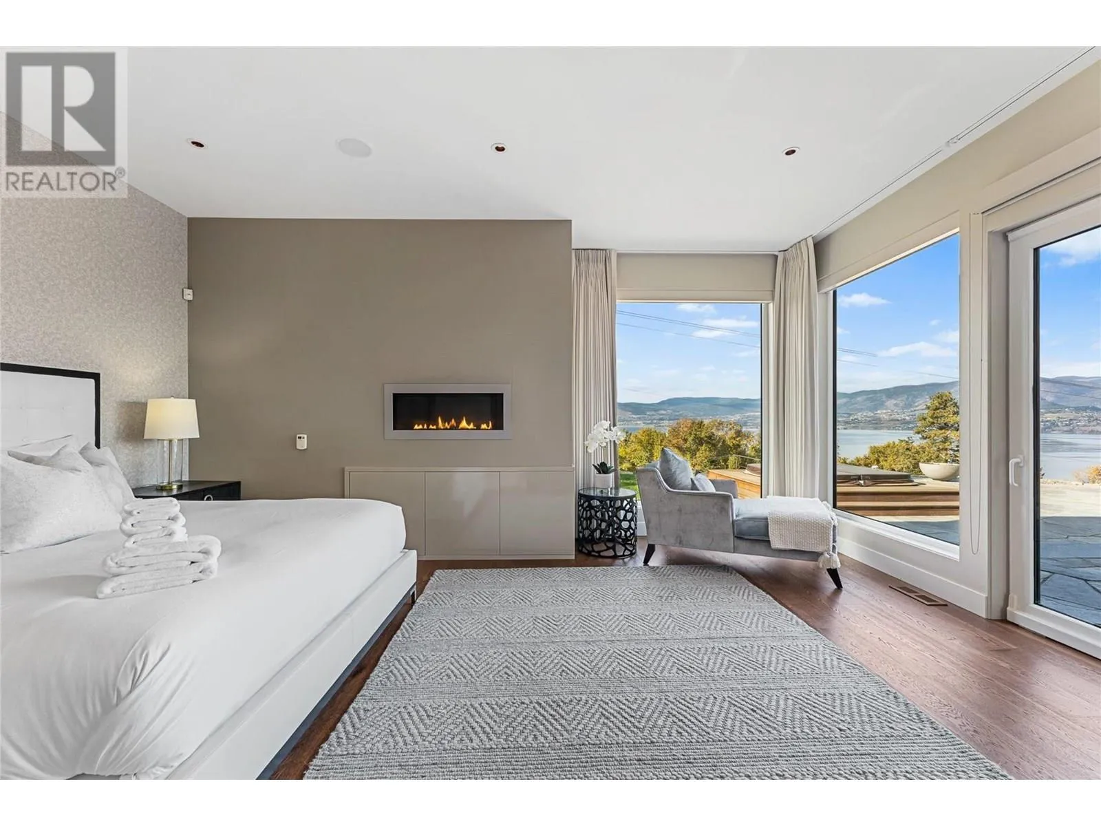 Private estate home set on 2.05 acres and perfectly positioned to capture the stunning lake, city and vineyard views. Enjoy an expansive flagstone patio with a spectacular negative edge saltwater infinity pool that creates a resort-like setting with room to lounge, entertain and take in the breathtaking views. Gated entry leads to heated triple garage & single garage plus RV garage. Upon entering the home youâll notice walls of glass showcase views of the pool, lake and beyond. Soaring ceiling height w/floor to ceiling windows & sliding wall system create a seamless extension to the outdoors with the open concept great room, dining & kitchen. Kitchen features oversized granite island, professional appliances, custom fixtures & cabinetry. Generous sized lake view primary bedroom framed in windows w/ linear gas fireplace & full ensuite with frameless glass shower, his/her sinks and soaker tub. Contemporary style home is over 5500 square feet with 4 bedrooms & 6 baths. Lower level boasts wine room, media room and games room. New pool, patio, pergola & outdoor living space completed in the summer 2015. The home blends exterior with interior living superbly. Located a short stroll to adjacent Summerhill Winery and minutes to the lake, hiking, dining, boutiques and schools. (id:27476)