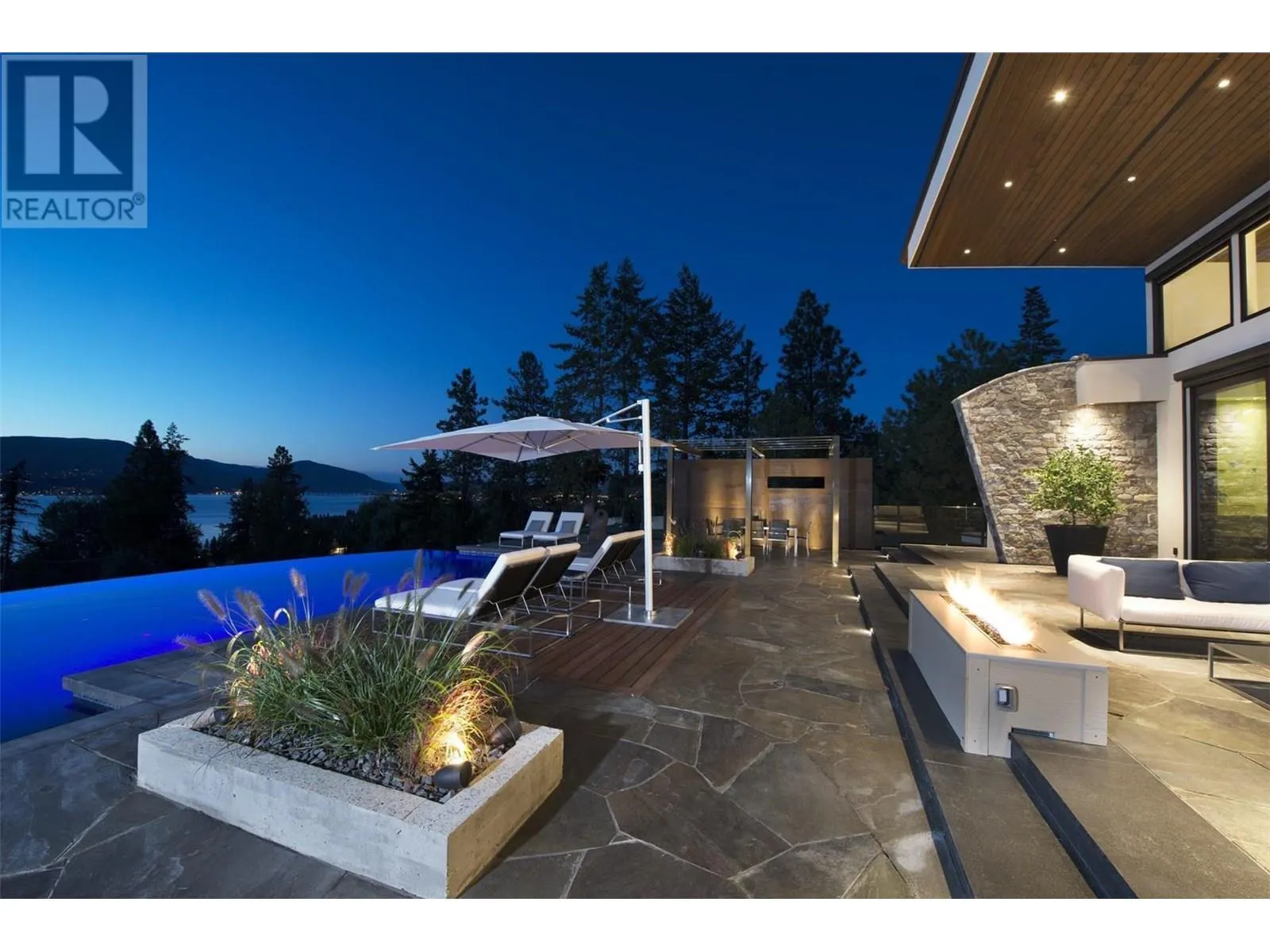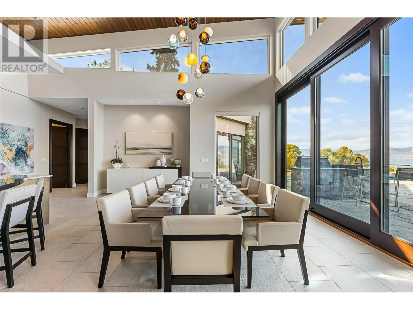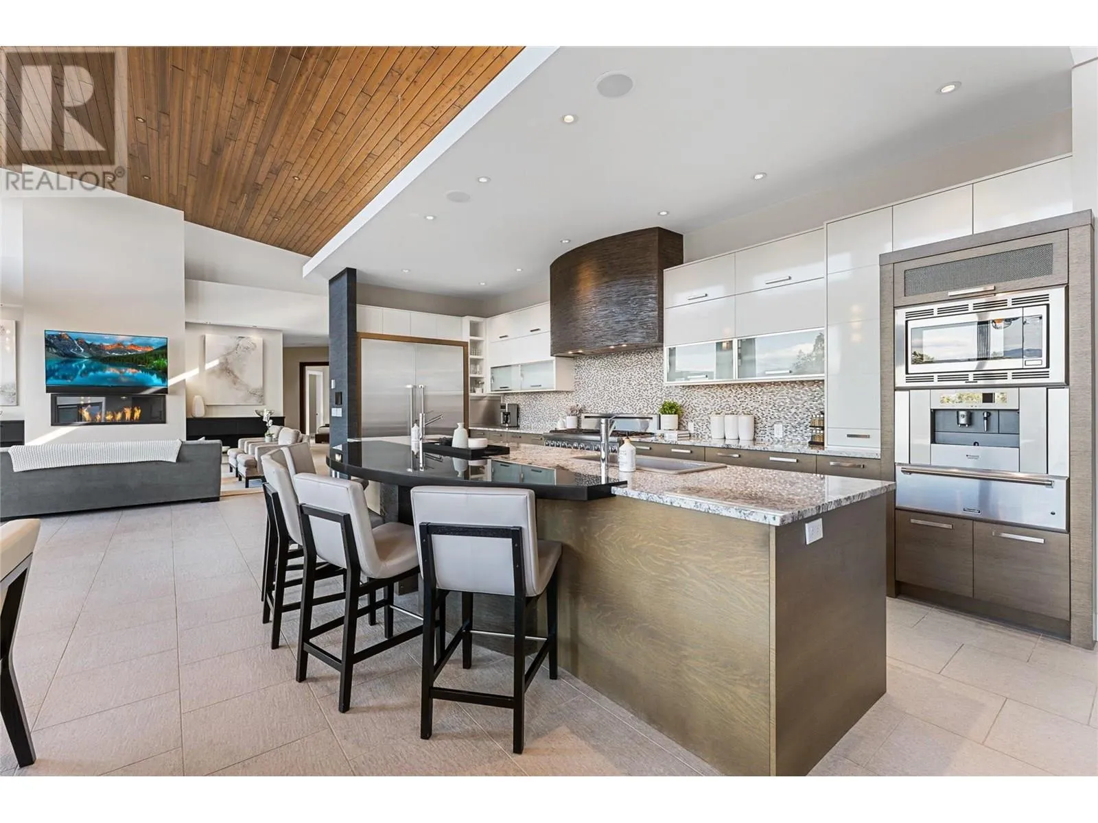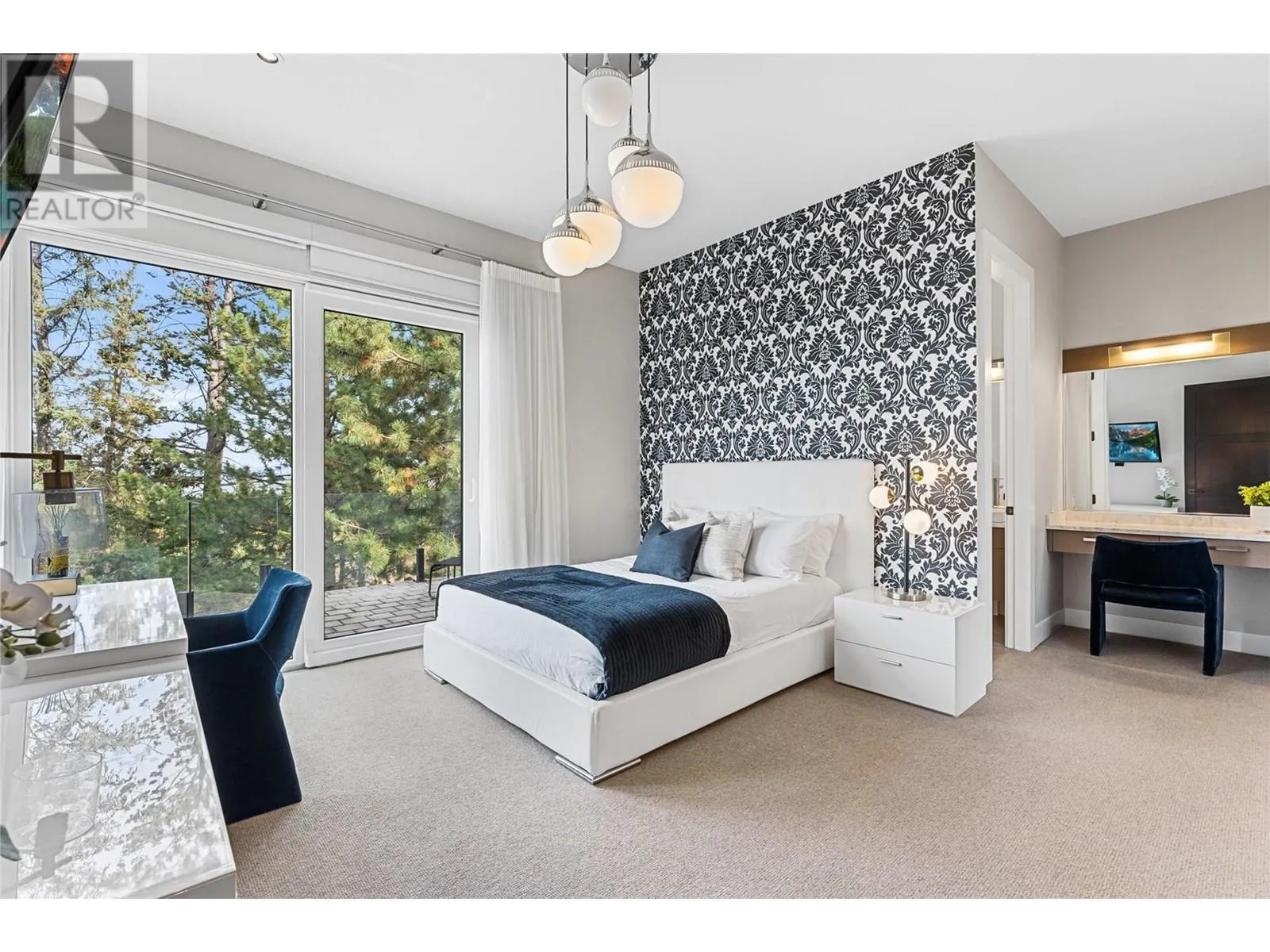 Private estate home set on 2.05 acres and perfectly positioned to capture the stunning lake, city and vineyard views. Enjoy an expansive flagstone patio with a spectacular negative edge saltwater infinity pool that creates a resort-like setting with room to lounge, entertain and take in the breathtaking views. Gated entry leads to heated triple garage & single garage plus RV garage. Upon entering the home youâll notice walls of glass showcase views of the pool, lake and beyond. Soaring ceiling height w/floor to ceiling windows & sliding wall system create a seamless extension to the outdoors with the open concept great room, dining & kitchen. Kitchen features oversized granite island, professional appliances, custom fixtures & cabinetry. Generous sized lake view primary bedroom framed in windows w/ linear gas fireplace & full ensuite with frameless glass shower, his/her sinks and soaker tub. Contemporary style home is over 5500 square feet with 4 bedrooms & 6 baths. Lower level boasts wine room, media room and games room. New pool, patio, pergola & outdoor living space completed in the summer 2015. The home blends exterior with interior living superbly. Located a short stroll to adjacent Summerhill Winery and minutes to the lake, hiking, dining, boutiques and schools. (id:27476)