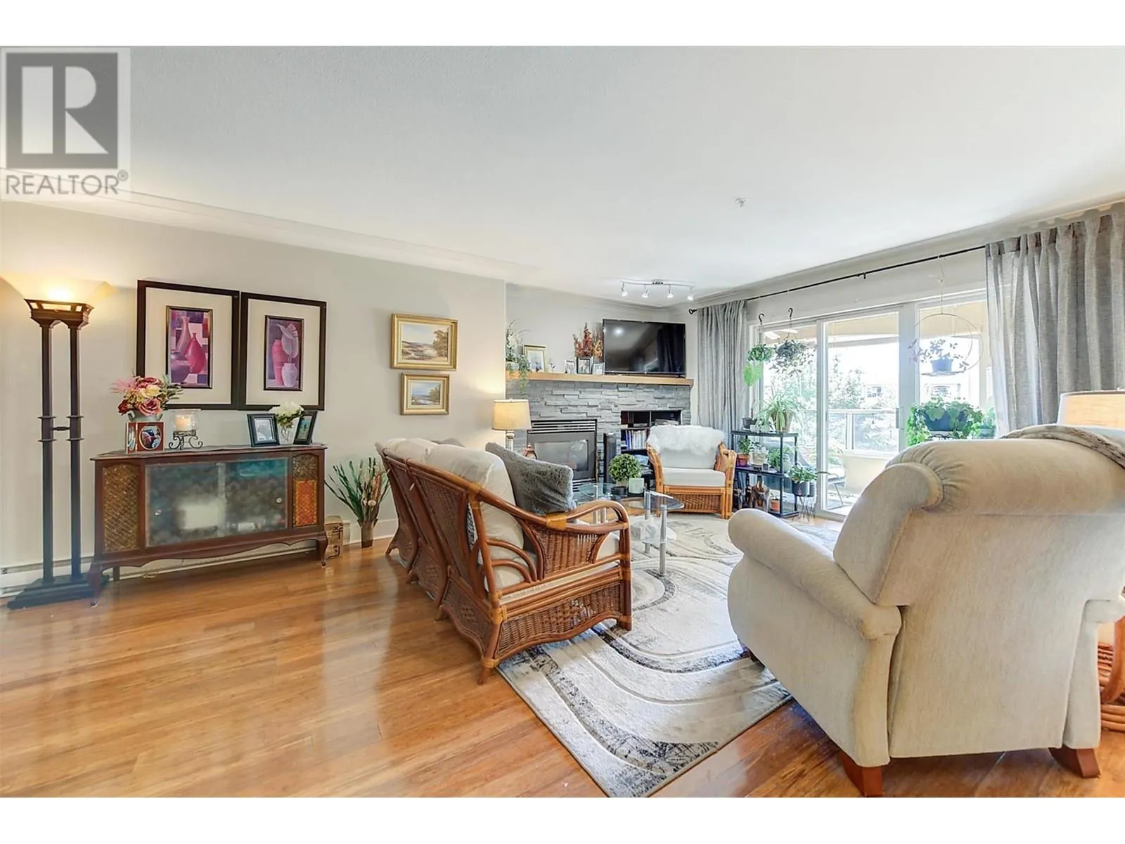 Welcome to your dream homeâa spacious 2-bedroom, 2-bathroom condo designed for comfort, convenience, and a vibrant lifestyle. Perfectly tailored for those seeking an easy, low-maintenance living experience, this home combines modern elegance with a warm, inviting ambiance. Step into an open concept living space that feels both expansive and cozy, featuring gleaming bamboo floors and stylish tile throughout. The heart of the home is the luxurious living room, anchored by a stunning gas fireplace that creates a welcoming atmosphere. The kitchen is a chefâs delight, boasting stainless steel appliances, sleek quartz countertops, an undermount sink, and a versatile mobile prep island. The master suite is a true retreat, offering generous space, a massive walk-in closet, and a private 4-piece ensuite for ultimate comfort and convenience. Step outside to your massive private wrap-around deck, a serene oasis perfect for morning coffee. Located in a resort-like complex, this home offers an unparalleled lifestyle. Enjoy the heated pool, vibrant clubhouse, hobby room, gym, and convenient guest suite for visiting family or friends. The complex is centrally located, just steps from shopping, restaurants, and essential amenities, yet feels like a private retreat. A spacious storage locker on the same floor adds extra convenience, and the homeâs thoughtful layout ensures ease of movement for all. Schedule your private tour today and discover why this is the perfect place to call home. (id:27476)