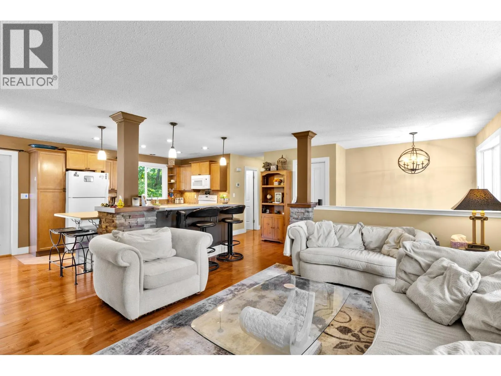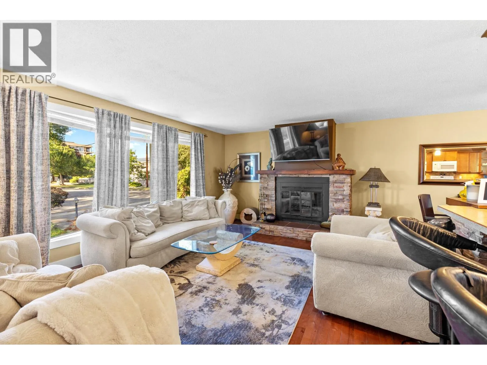 Nestled in a serene and family-friendly neighbourhood, this beautifully maintained 2+2 bedroom classic bi-level home sits on an exceptionally large lot, offering both space and versatility. Thoughtfully designed for practicality, it is easily suitable if you are looking for a mortgage helper. Upstairs, a rich maple kitchen with tiled flooring seamlessly opens to a warm and inviting great room, where real hardwood floors and a wood-burning fireplaceâcomplete with a recent WETT inspectionâcreate a cozy and sophisticated ambiance. The main bath has been tastefully updated, and modern lighting adds a fresh, contemporary touch throughout the home. With a new hot water tank installed in 2024 and numerous recent upgrades, this residence is move-in ready and waiting to welcome its next family. (id:27476)