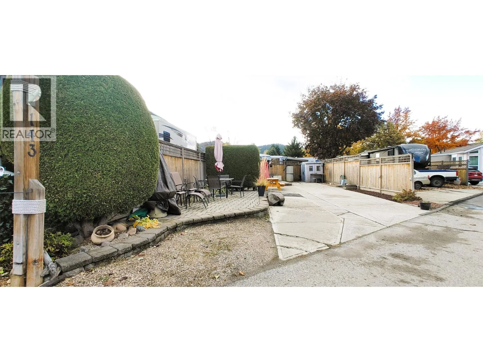 Welcome to Holiday Park Resort! Check out this Spacious Lot and bring your RV to start living the Okanagan Dream. The beautiful lot has a raised stone patio, gazebo, shed and wood fence on 3 sides. Situated close to the main recreation facility with an outdoor pool and hot tub. This gated community is loaded with the following amenities; pools, hot tubs, laundry facilities, pickleball courts, golf course, gym, craft room, woodworking shop, library, sandy beach, activities for kids and more. Check out the new THYME at Ellison Lake Restaurant and the new Up Front Market & Rentals. A fully serviced convenience store that also rents golf carts, bicycles, pedal go-carts, kayaks, canoes, paddleboards & pedal boats. 3 Pets allowed. Standard Lot, 1991 sqft. Lease term to March 2046. Yearly Maintenance Fee is $4,677, no pad rent. Okay to drive by but please do not disturb owners. The information contained here in should not be relied upon without independent verification. (id:27476)