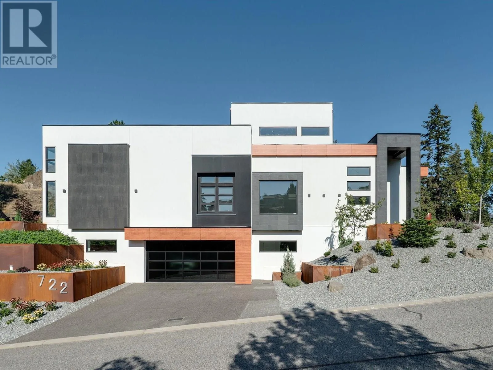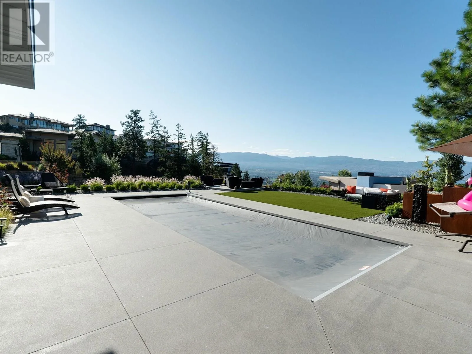 Nestled in the prestigious Highpointe community of Kelowna, this architectural masterpiece redefines modern luxury with views of the city, Okanagan Lake and surrounding mountains. This home is a visual showpiece, with striking geometric lines, floor-to-ceiling windows and meticulous landscaping. The interior boasts an impressive design, double-height ceilings, and seamless negative baseboards that exude elegance. The open-concept living space centers around a stunning linear fireplace, while the gourmet kitchen is a chefâs dream with high-end appliances, a waterfall-edge island, and a butlerâs pantry for effortless entertaining. A custom elevator provides convenient access to all levels, and two separate garages accommodate up to 9 vehicles, perfect for car enthusiasts. Each bedroom is a private retreat with designer finishes and spa-like ensuites, including the luxurious primary suite with a walk-in closet and private outdoor access. The professionally landscaped exterior features a dazzling pool, an outdoor kitchen, and multi-tiered terraces, ideal for entertaining or relaxation. SMART home technology ensures convenience, and the propertyâs location offers both privacy and proximity to downtown Kelowna, world-class wineries, golf courses and recreational trails. This home is a statement of sophistication and lifestyle. Contact Team Simpson Real Estate for your private tour of this extraordinary property. (id:27476)