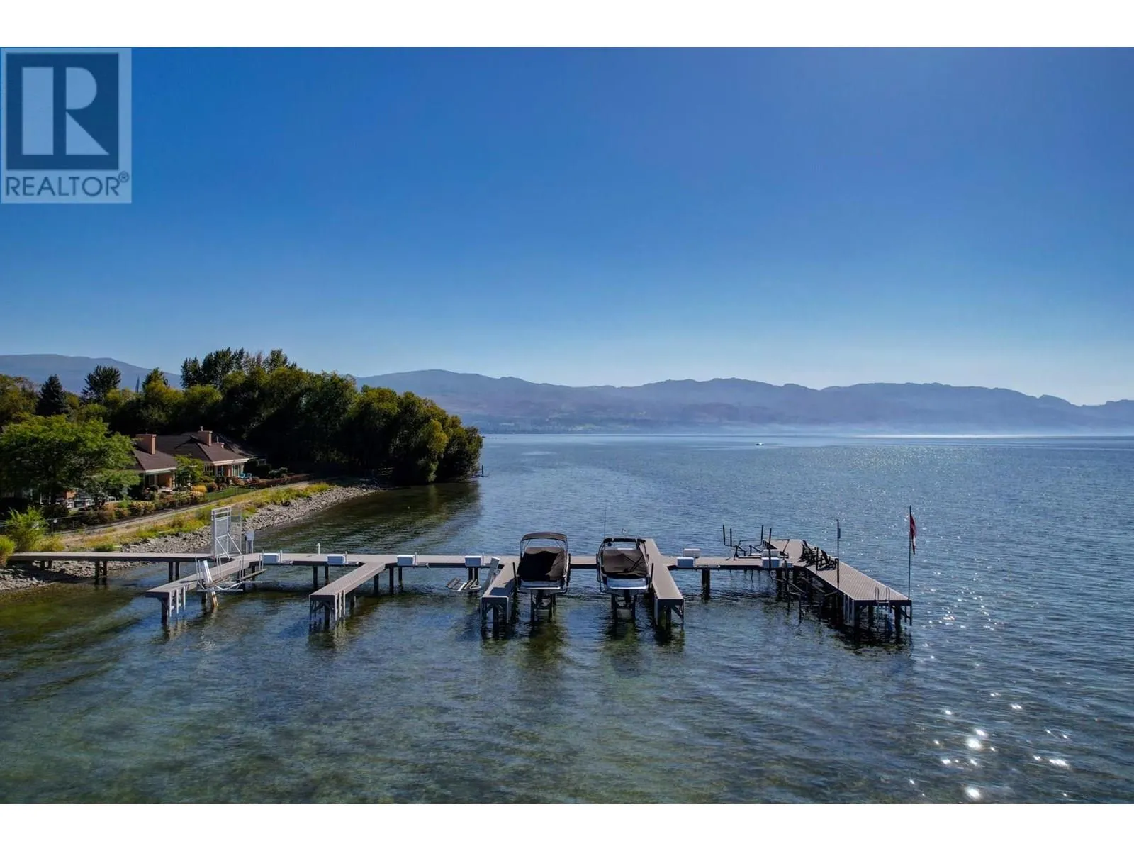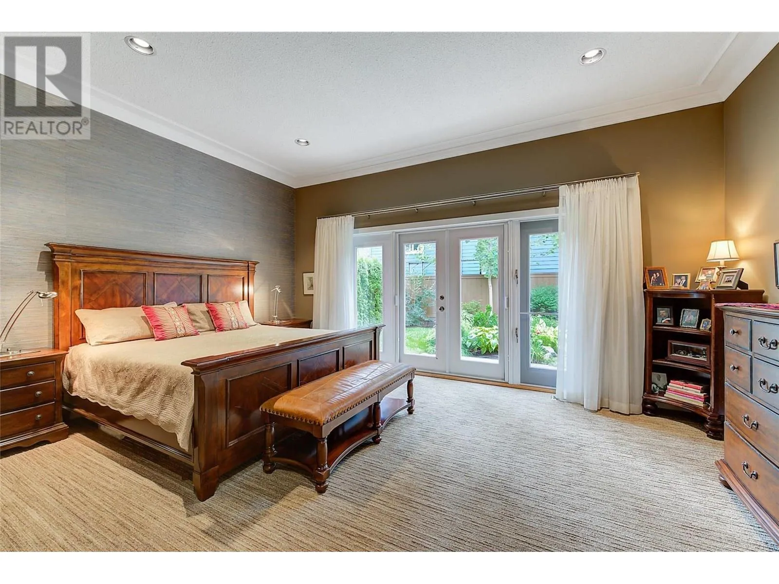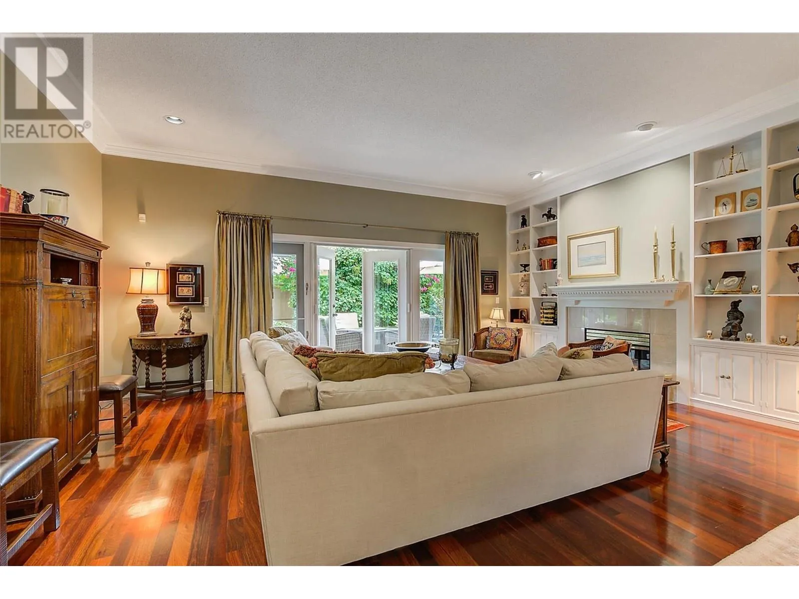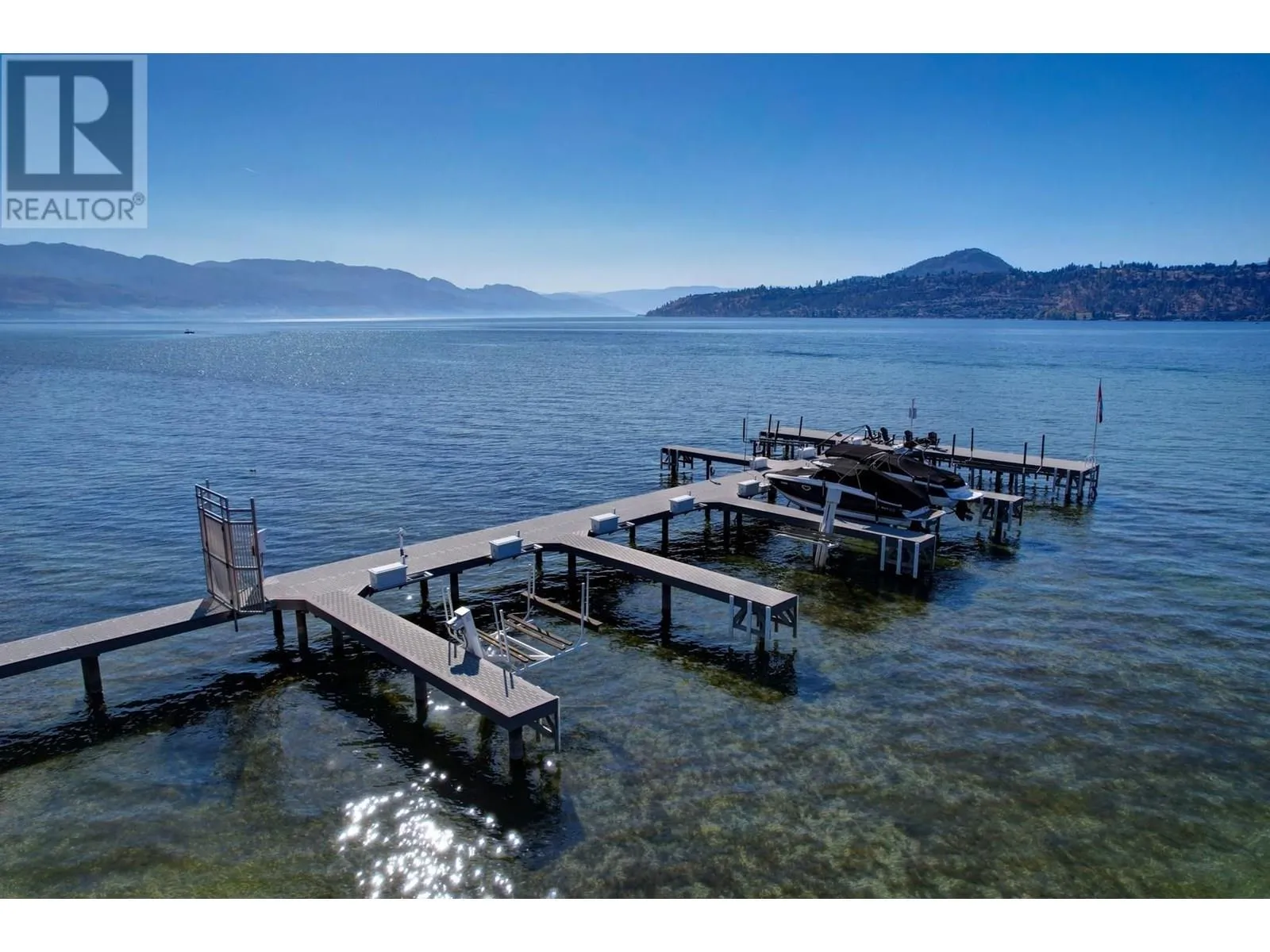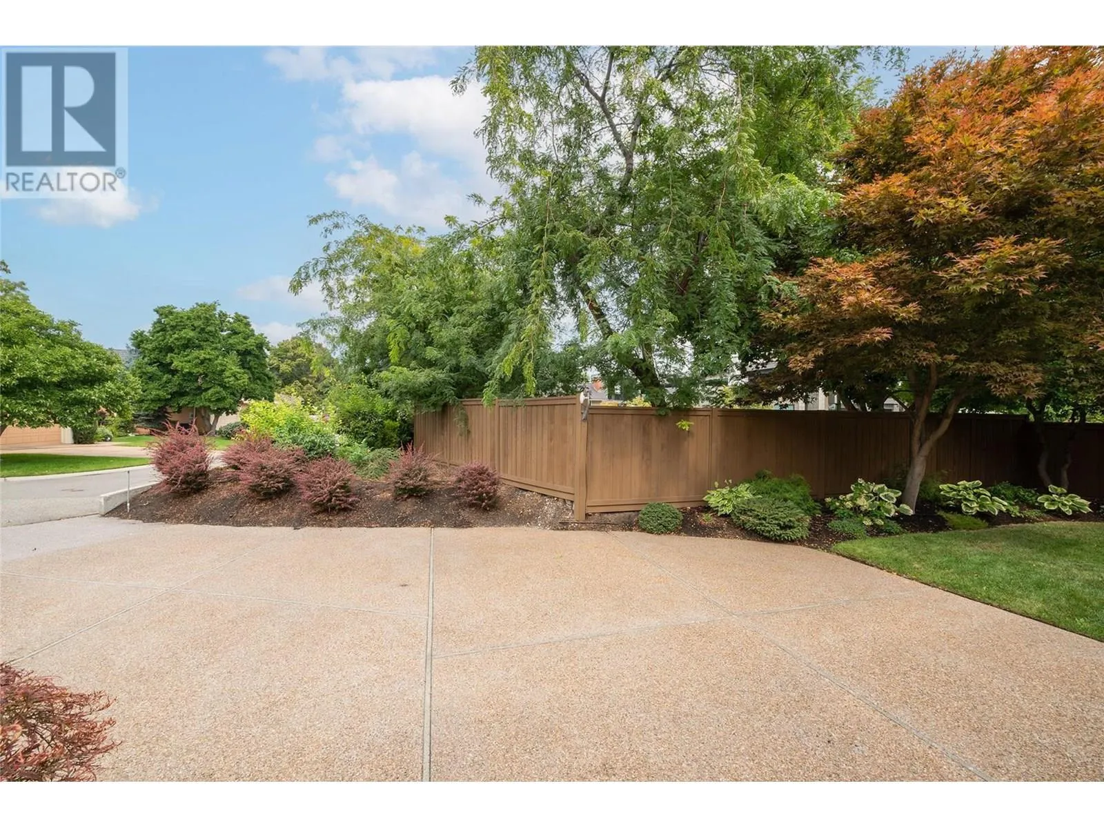 Luxurious One-Level Home in Gated Waterfront Community. Discover the perfect blend of comfort and convenience in this stunning one-level home located in an exclusive gated community. This residence offers easy access to the lake with your own private boat slip and lift. Enjoy tranquil living with waterfront pool beautifully landscaped surroundings. Residents of Le Chateau can also enjoy resort-style amenities on site including an outdoor pool, hot tub & private dock. Upon entry you're greeted by high ceilings, and rich cherry hardwood floors leading to the kitchen and the main living area. The chefâs kitchen features brand-new stainless-steel appliances. Centre island offers a gas range. Off the kitchen is an open, main living area with custom built-ins surrounding the gas fireplace. The primary suite is a gorgeous sanctuary with private access to the backyard and a recently renovated primary ensuite. The ensuite is finished with wood cabinetry, & granite counters for a luxurious feel. Enjoy unwinding in the soaker tub or expansive glass steam shower with a bench and speakers. One additional bedroom and den. In the backyard youâre surrounded by mature landscaping and a trellis bordering the patio. A water feature & outdoor lighting have been added. The two-car garage has been finished with epoxy flooring, and custom cabinetry. Incredible location within walking distance to beaches, cafes, restaurants and boutiques, and only a 5 minute drive to downtown Kelowna. (id:27476)