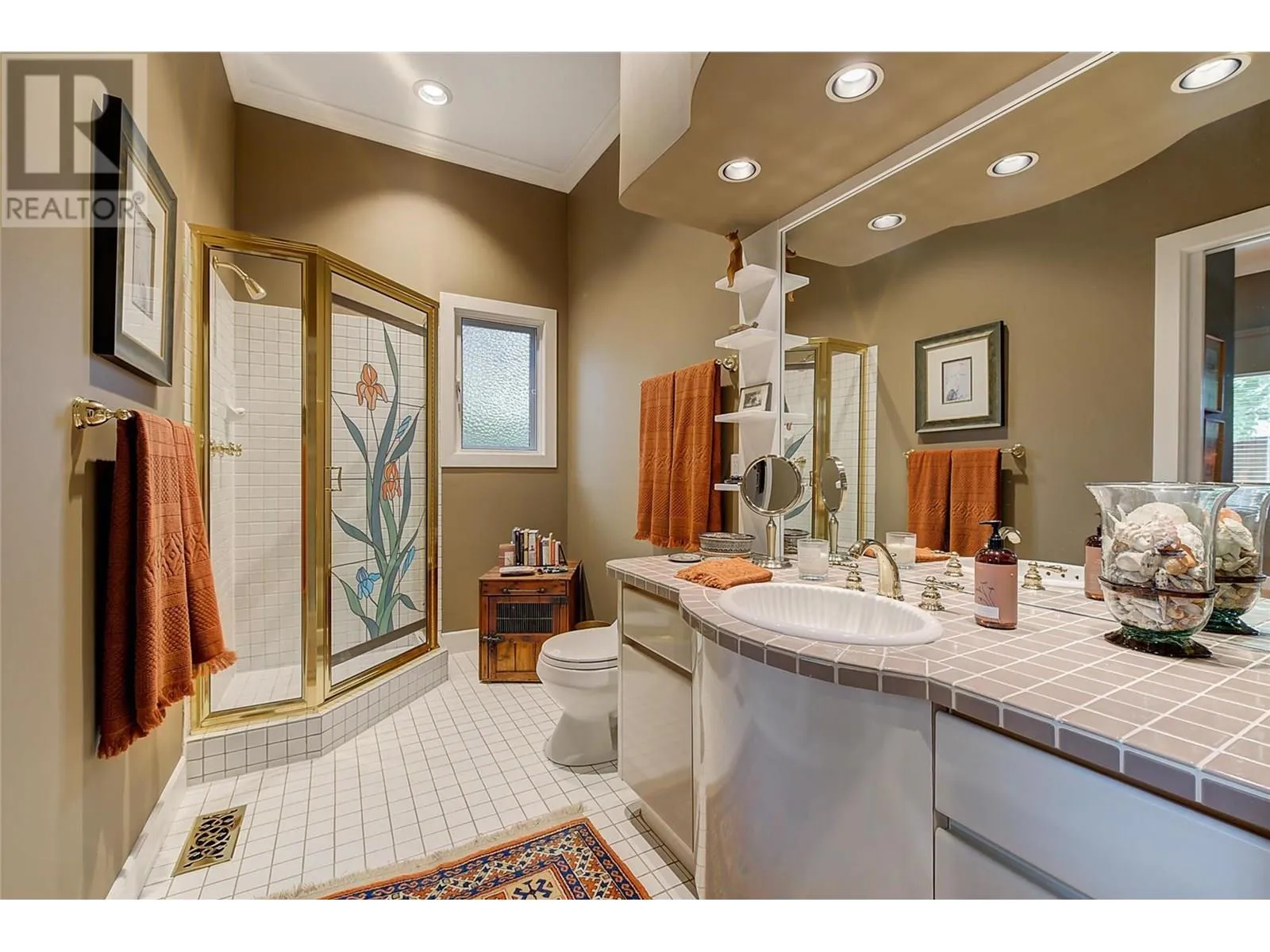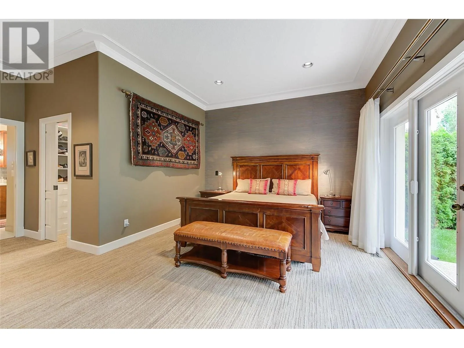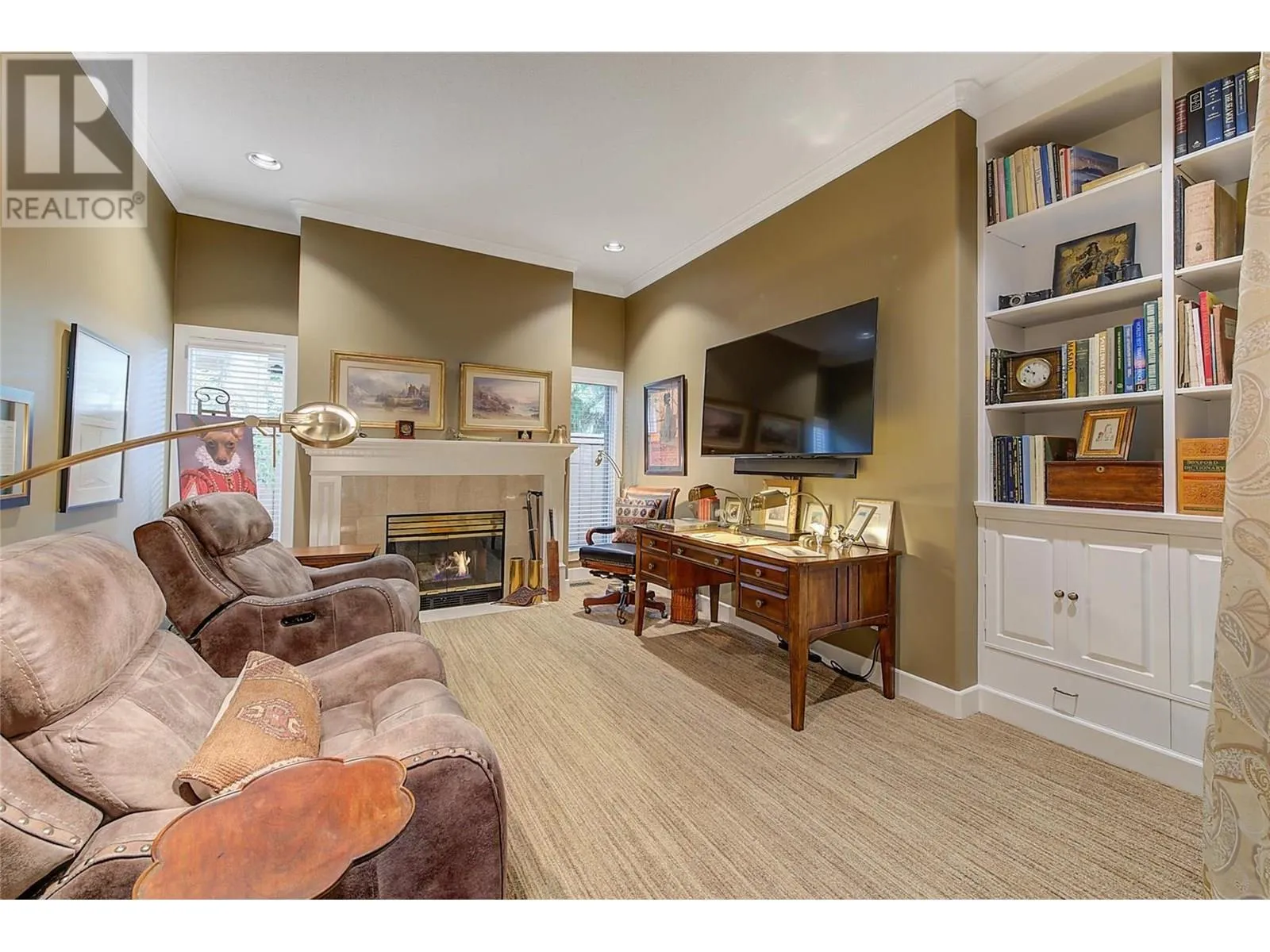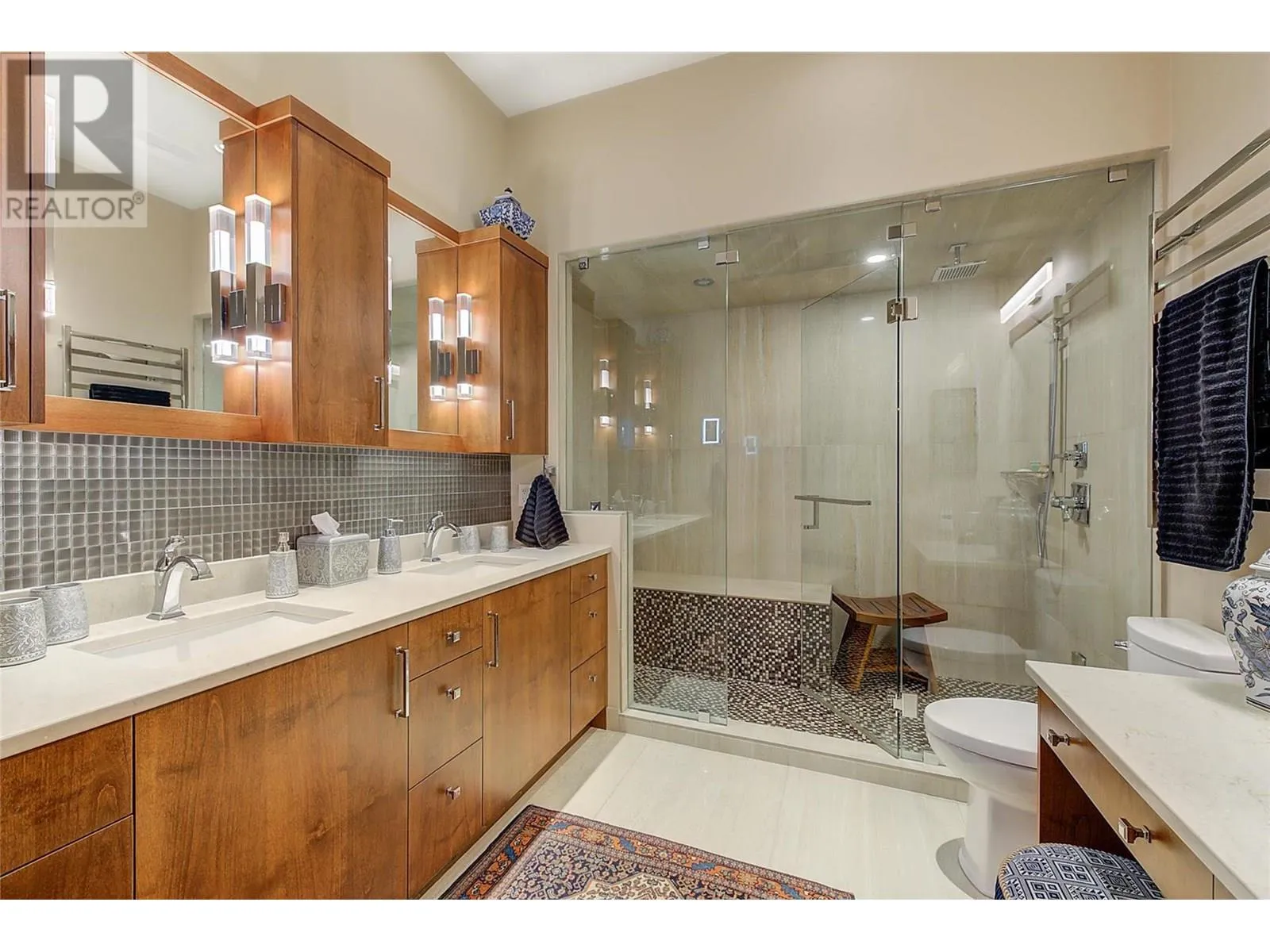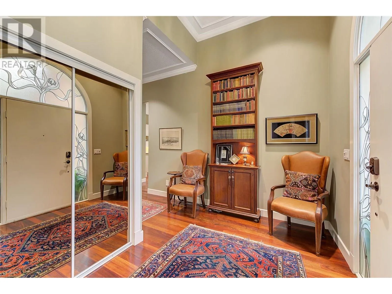 Luxurious One-Level Home in Gated Waterfront Community. Discover the perfect blend of comfort and convenience in this stunning one-level home located in an exclusive gated community. This residence offers easy access to the lake with your own private boat slip and lift. Enjoy tranquil living with waterfront pool beautifully landscaped surroundings. Residents of Le Chateau can also enjoy resort-style amenities on site including an outdoor pool, hot tub & private dock. Upon entry you're greeted by high ceilings, and rich cherry hardwood floors leading to the kitchen and the main living area. The chefâs kitchen features brand-new stainless-steel appliances. Centre island offers a gas range. Off the kitchen is an open, main living area with custom built-ins surrounding the gas fireplace. The primary suite is a gorgeous sanctuary with private access to the backyard and a recently renovated primary ensuite. The ensuite is finished with wood cabinetry, & granite counters for a luxurious feel. Enjoy unwinding in the soaker tub or expansive glass steam shower with a bench and speakers. One additional bedroom and den. In the backyard youâre surrounded by mature landscaping and a trellis bordering the patio. A water feature & outdoor lighting have been added. The two-car garage has been finished with epoxy flooring, and custom cabinetry. Incredible location within walking distance to beaches, cafes, restaurants and boutiques, and only a 5 minute drive to downtown Kelowna. (id:27476)