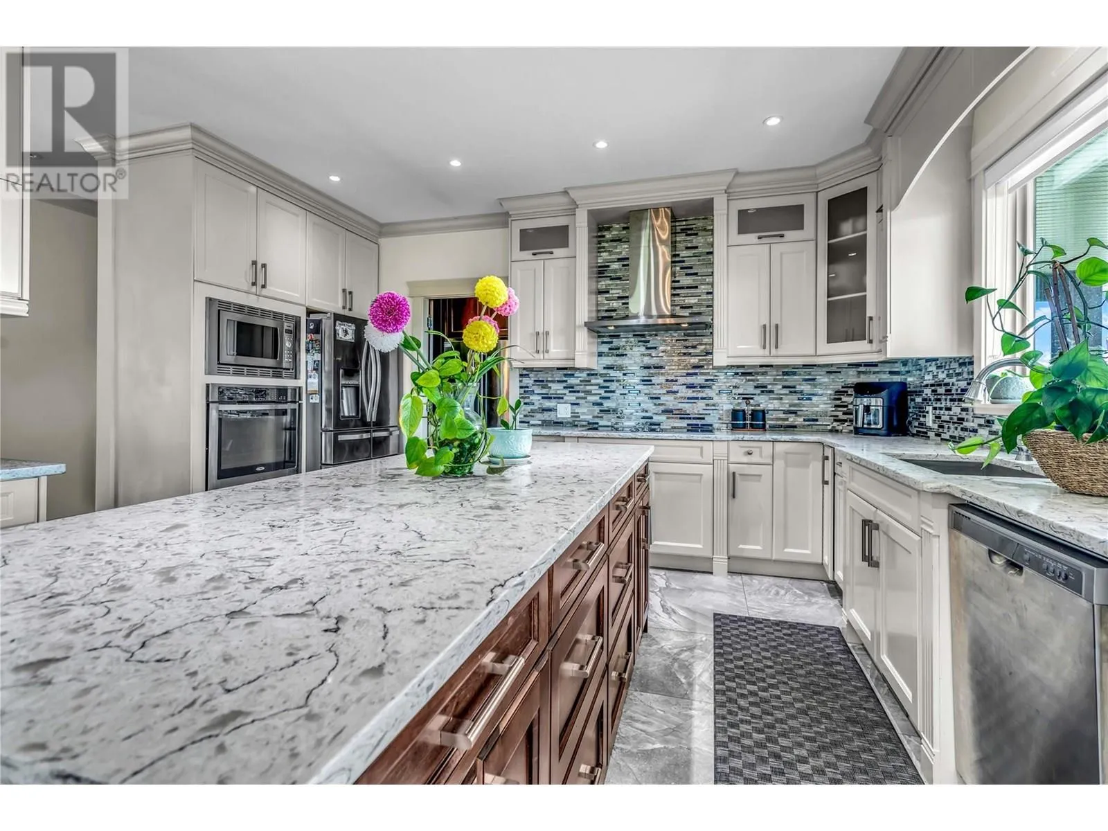 Welcome to 4561 Rittich Road! This exceptional 5.066-acre estate offers the perfect blend of agricultural charm and luxurious living in the heart of the Okanagan. Surrounded by sweeping views and a lush, mature orchard, this property is ideal for large families, multi-generational living, or those seeking space and serenity. The expansive 9-bedroom, 8-bathroom home features a beautiful, spacious main kitchen designed for entertaining, along with a fully equipped prep kitchen for added functionality. A generous living room offers plenty of space for gatherings, relaxation, or hosting guests in comfort. The dedicated theatre room is perfect for cozy family movie nights, while a self-contained legal 2-bedroom suite provides excellent rental or guest potential. Outside, you'll find approximately 3 acres of fully producing Staccato cherries, offering both beauty and agricultural income potential. Enjoy the outdoors with extensive green space, privacy, and the productivity of your own established orchard. A 3-car garage and ample parking complete the package. Whether you're looking to enjoy peaceful country living close to city conveniences or invest in a versatile estate property, 4561 Rittich Road delivers unmatched potential. (id:27476)