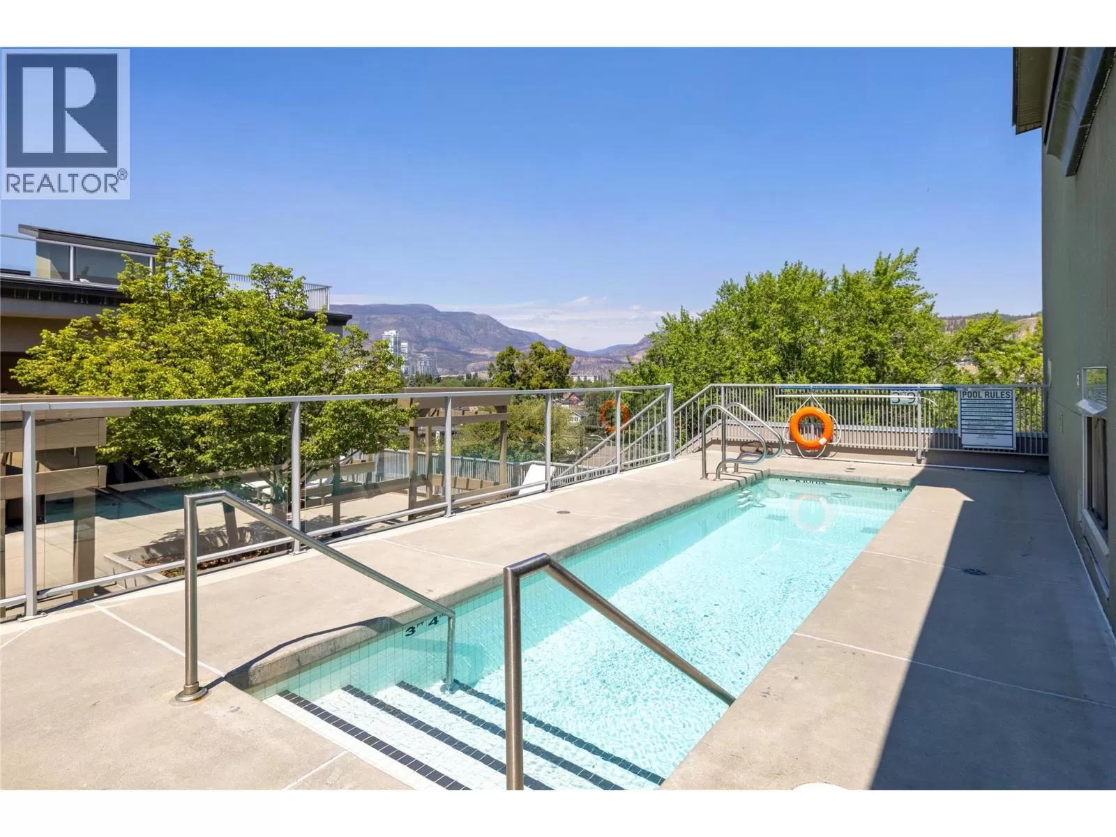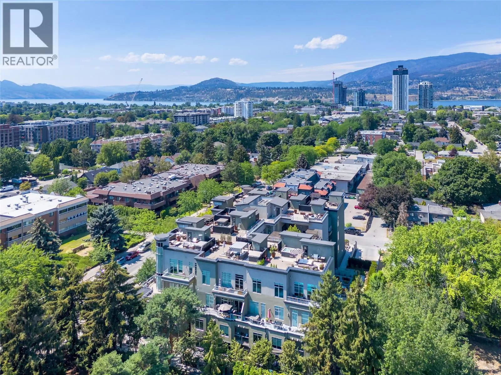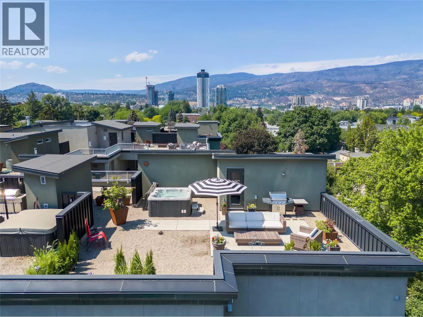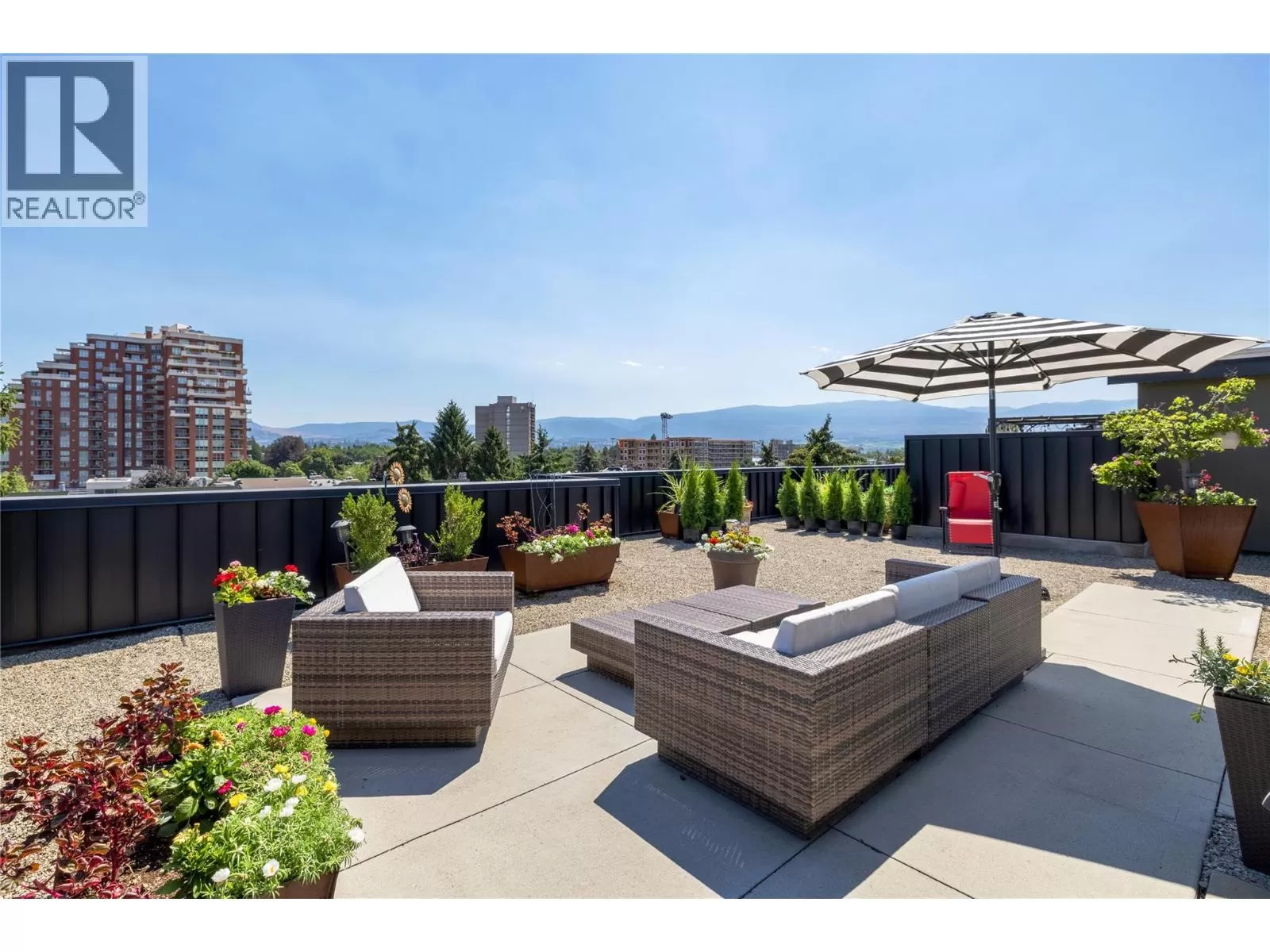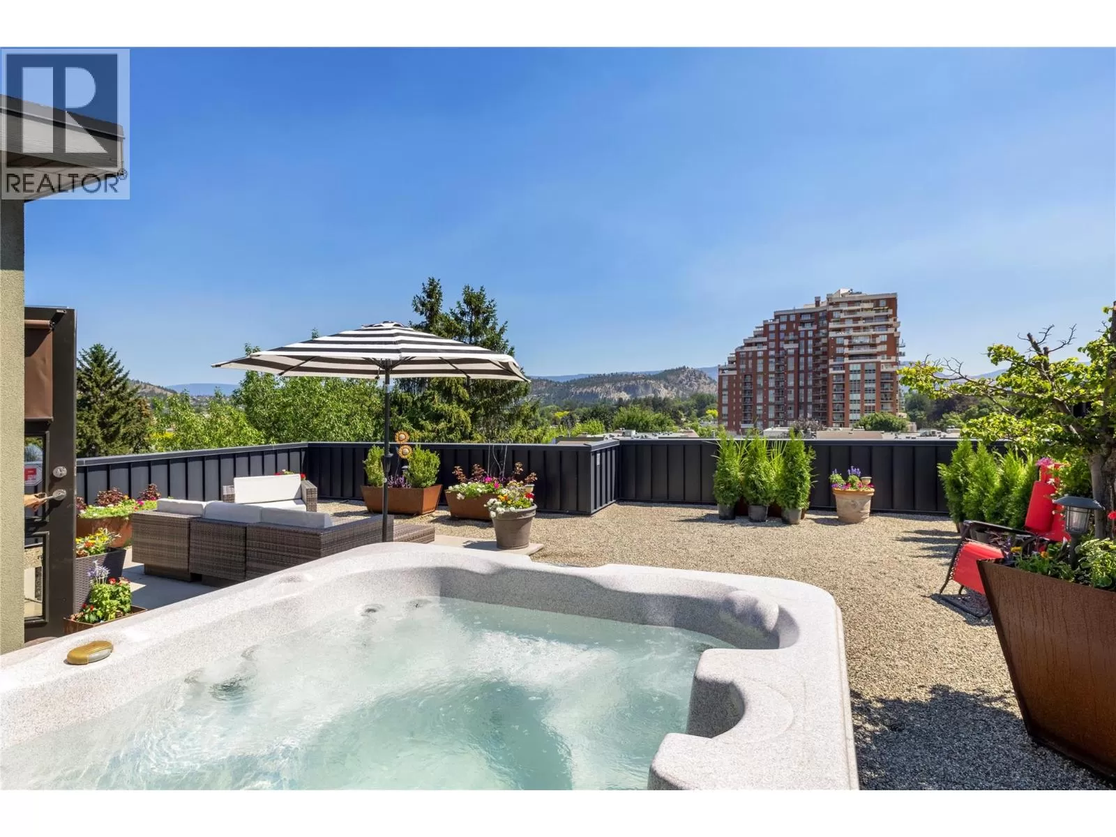 Experience the height of luxury urban living in this remarkable and truly one of a kind penthouse in Downtown Kelowna. Showcasing a sprawling 1,000 sq/ft private rooftop patio complete with your own hot tub, gas BBQ hookup, and sweeping views of the city and surrounding mountains, this residence sets a new standard for downtown living. An additional patio just off the kitchenâalso equipped with a gas BBQ hookup, offers even more space to relax and entertain year round. Inside, the open concept layout spans 1,506 sq/ft and is filled with upscale finishes, soaring 12-foot ceilings, and floor to ceiling windows that flood the space with natural light. The chef inspired kitchen features a large island and premium stainless steel appliances, making it perfect for both everyday living and hosting guests. The luxurious primary suite includes a spa like ensuite and a generous walk in closet, while a spacious second bedroom is conveniently located near a second full bathroom. The main level also includes a formal entry, a private office, two secure parking stalls, and a large storage locker. Residents enjoy access to exceptional amenities,including a swimming pool, hot tub, sauna, fire pit, two guest suites, fitness center, meeting room, and secure underground parking. Located just off vibrant Bernard Avenue, you're steps from shopping, dining, the beach, hiking trails, and all the best the city has to offer. (id:27476)