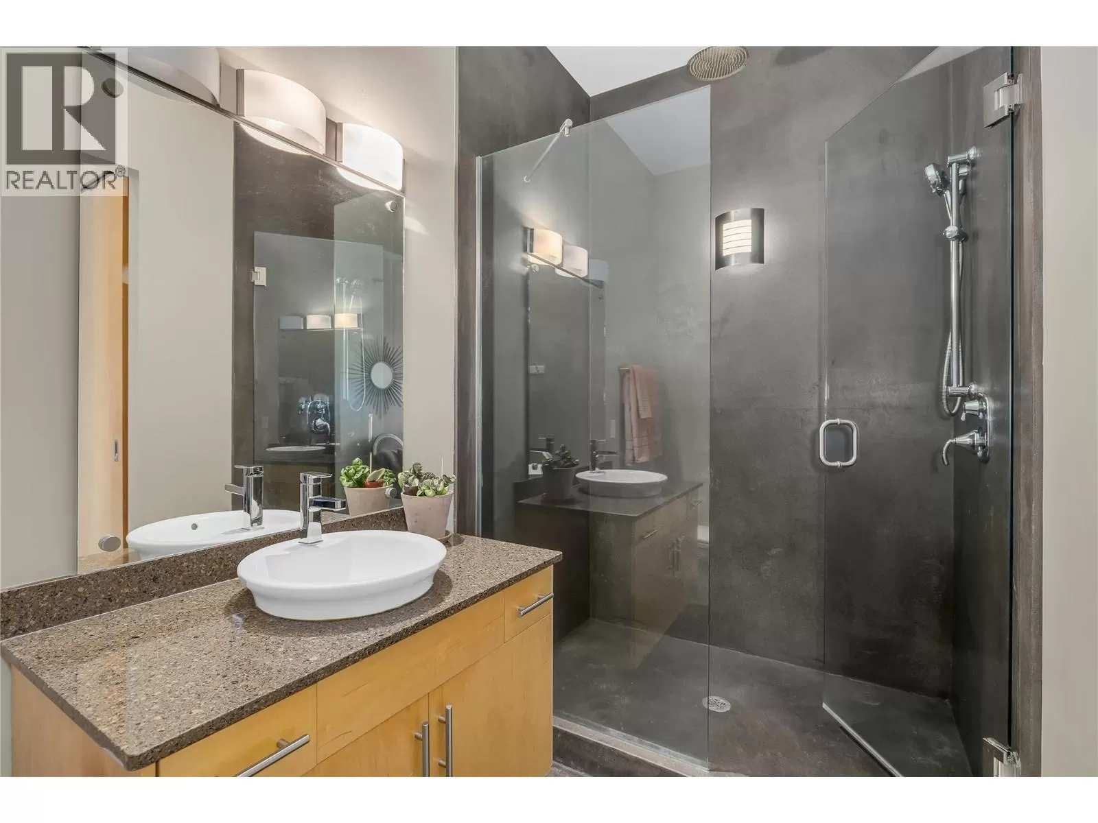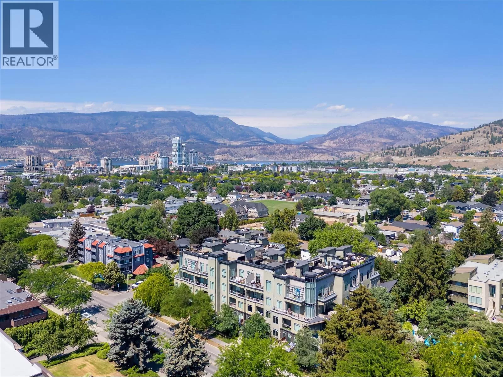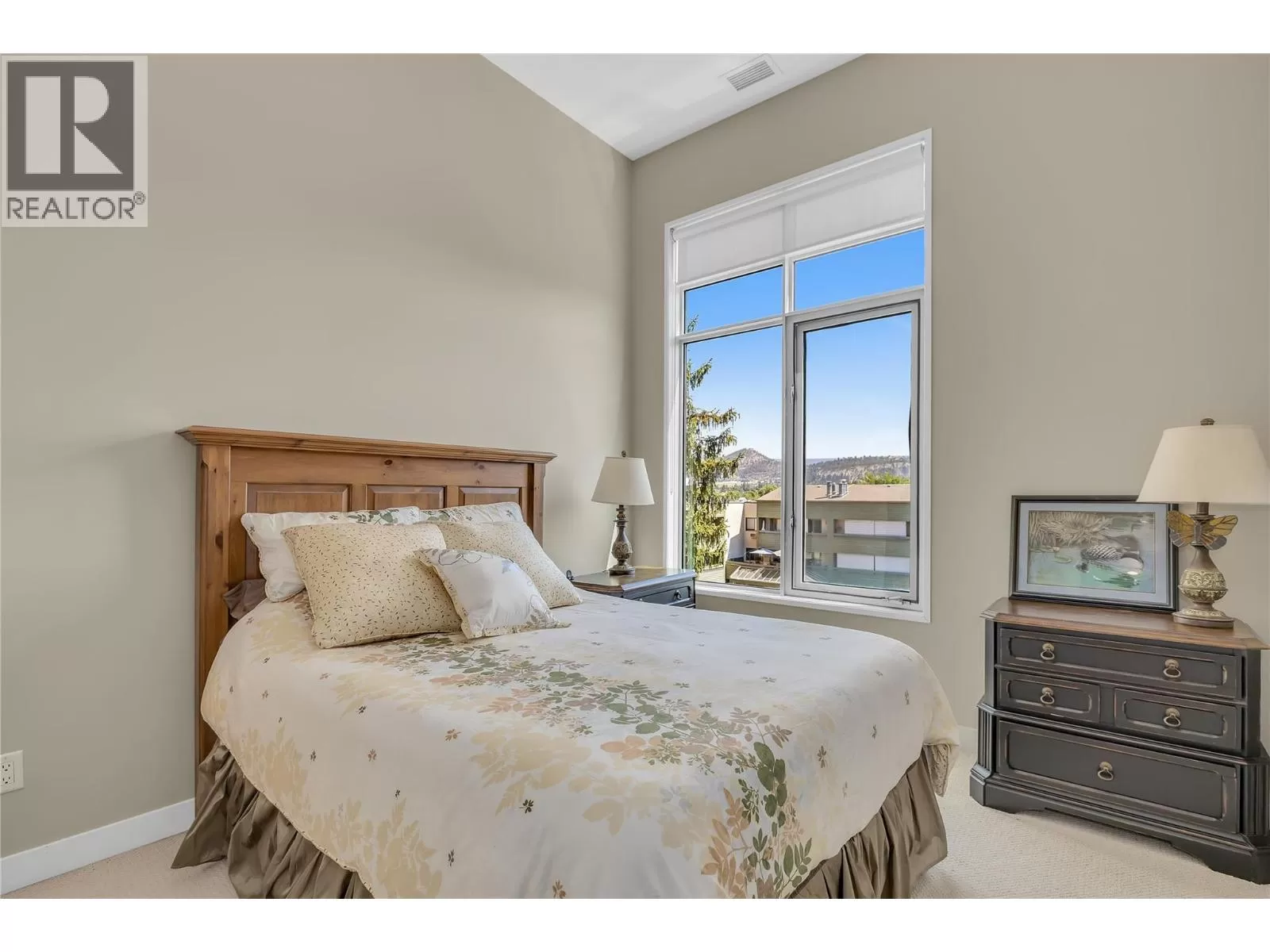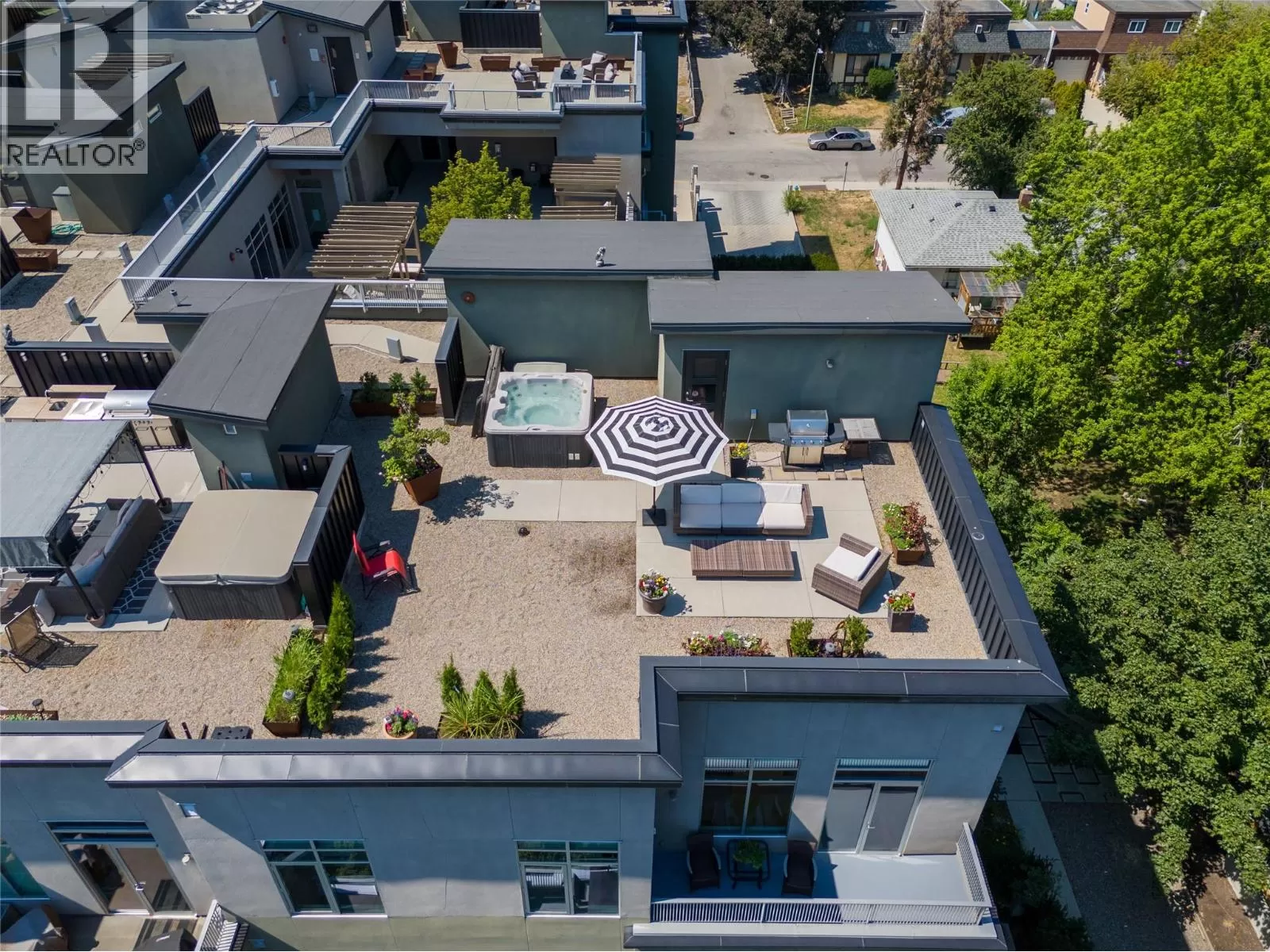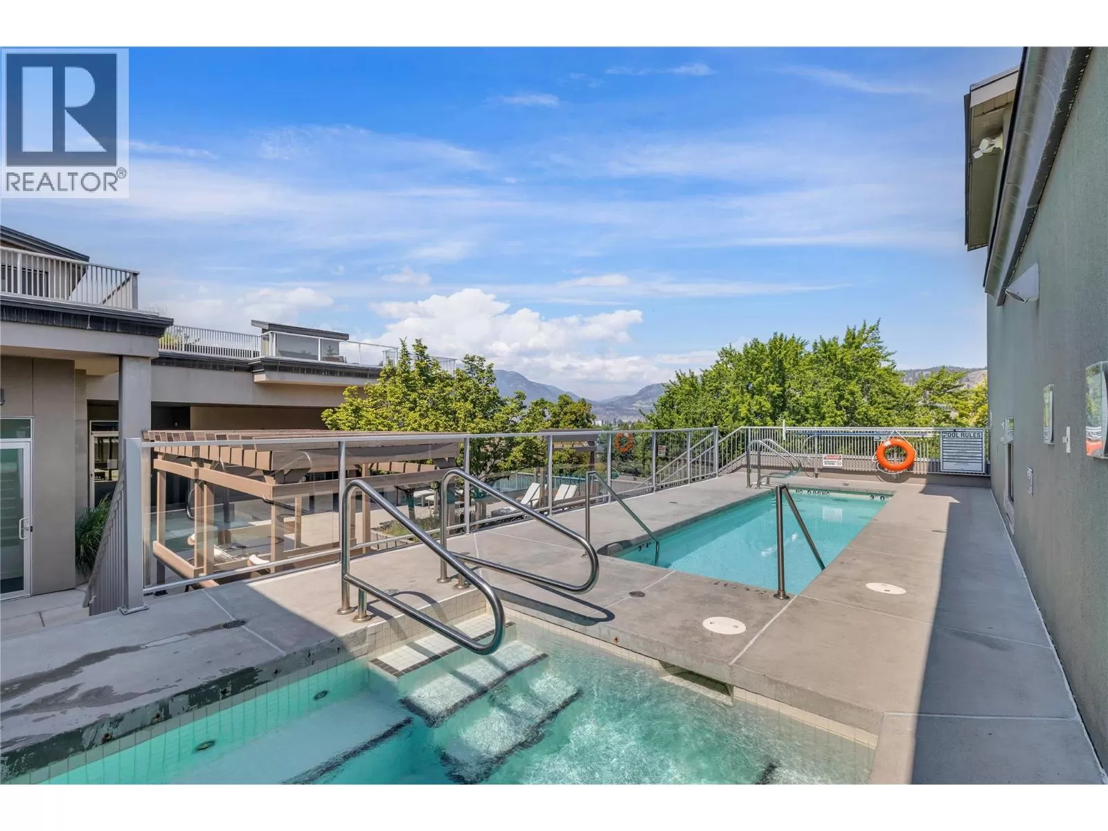 Experience the height of luxury urban living in this remarkable and truly one of a kind penthouse in Downtown Kelowna. Showcasing a sprawling 1,000 sq/ft private rooftop patio complete with your own hot tub, gas BBQ hookup, and sweeping views of the city and surrounding mountains, this residence sets a new standard for downtown living. An additional patio just off the kitchenâalso equipped with a gas BBQ hookup, offers even more space to relax and entertain year round. Inside, the open concept layout spans 1,506 sq/ft and is filled with upscale finishes, soaring 12-foot ceilings, and floor to ceiling windows that flood the space with natural light. The chef inspired kitchen features a large island and premium stainless steel appliances, making it perfect for both everyday living and hosting guests. The luxurious primary suite includes a spa like ensuite and a generous walk in closet, while a spacious second bedroom is conveniently located near a second full bathroom. The main level also includes a formal entry, a private office, two secure parking stalls, and a large storage locker. Residents enjoy access to exceptional amenities,including a swimming pool, hot tub, sauna, fire pit, two guest suites, fitness center, meeting room, and secure underground parking. Located just off vibrant Bernard Avenue, you're steps from shopping, dining, the beach, hiking trails, and all the best the city has to offer. (id:27476)