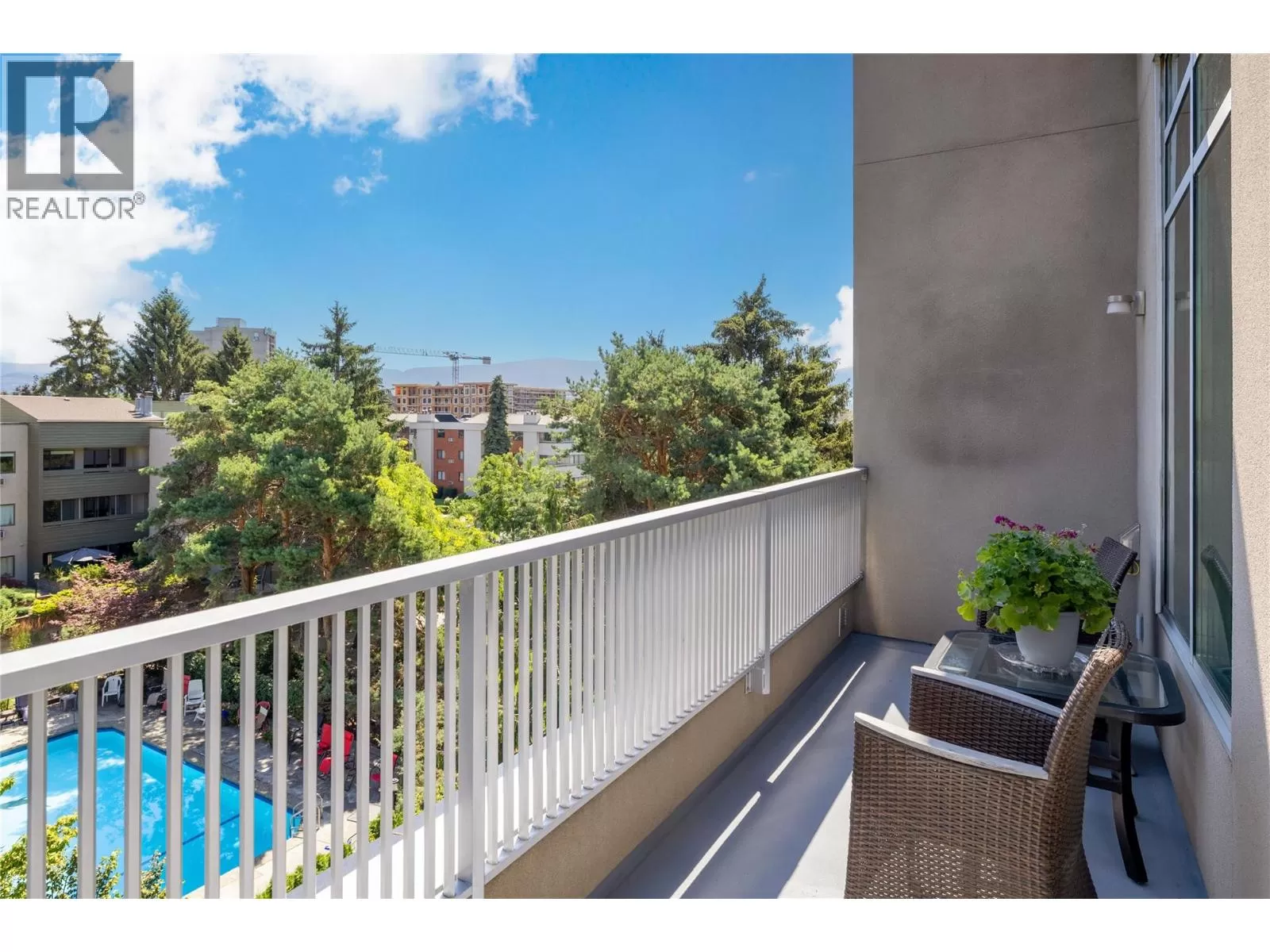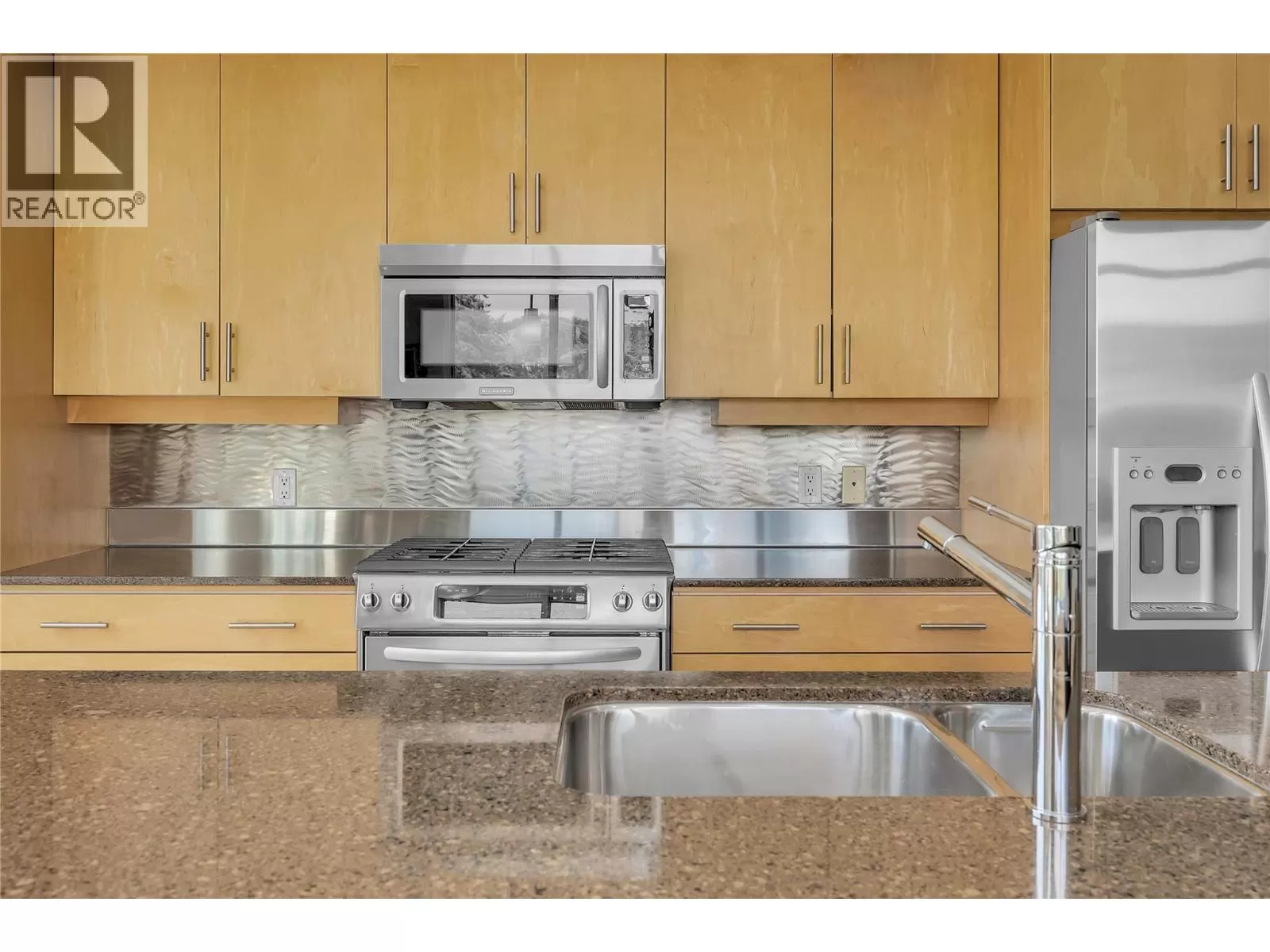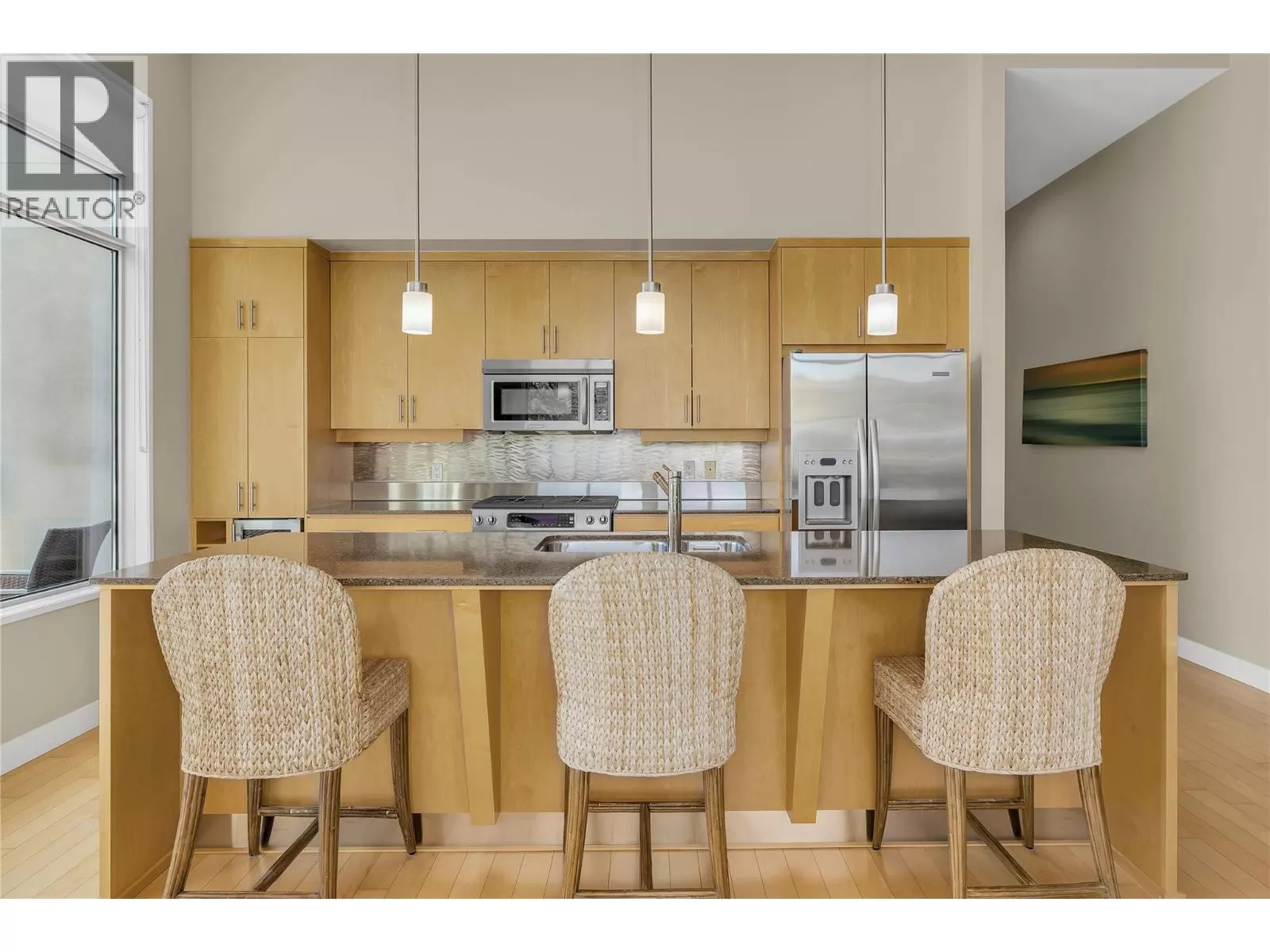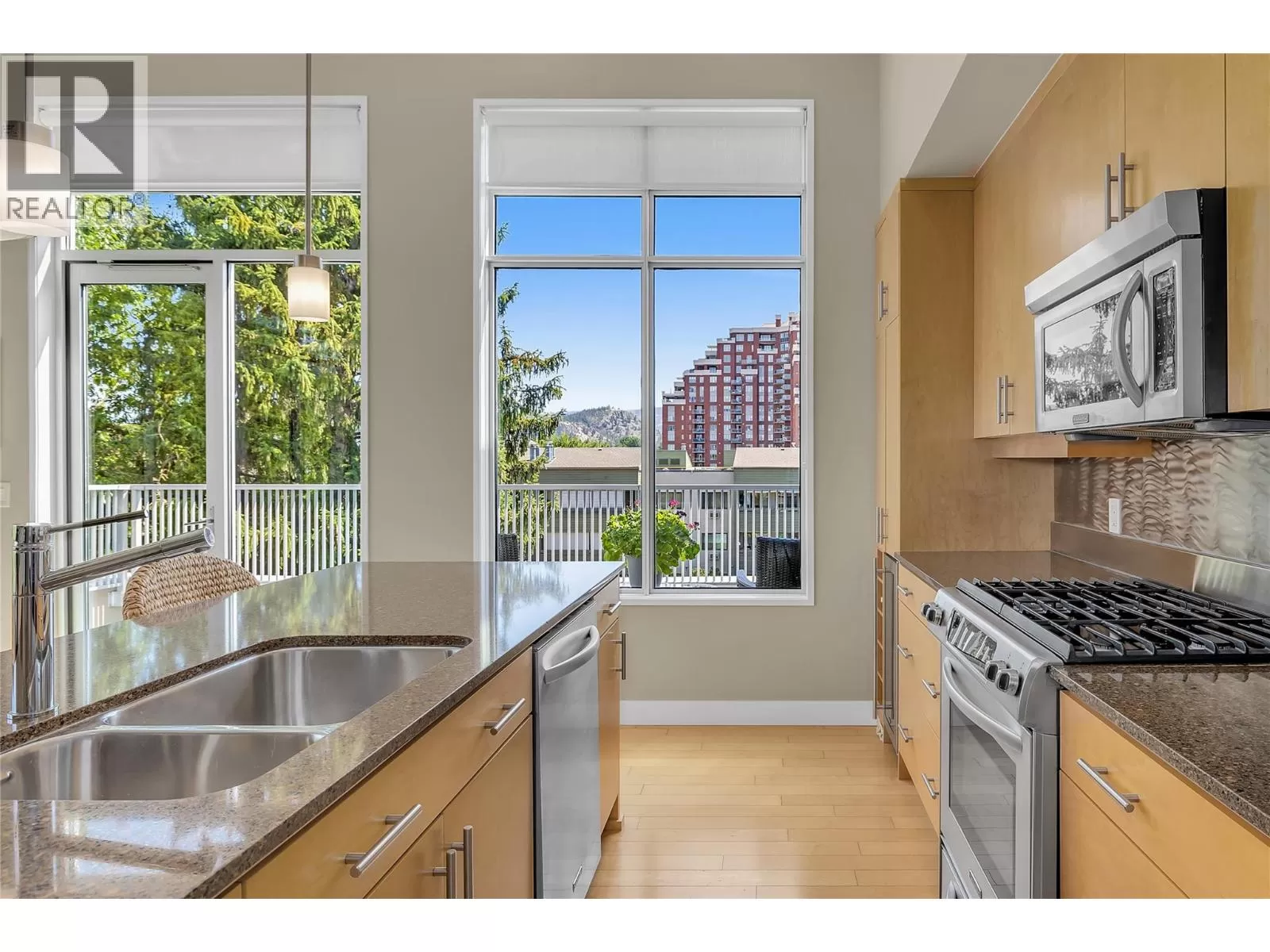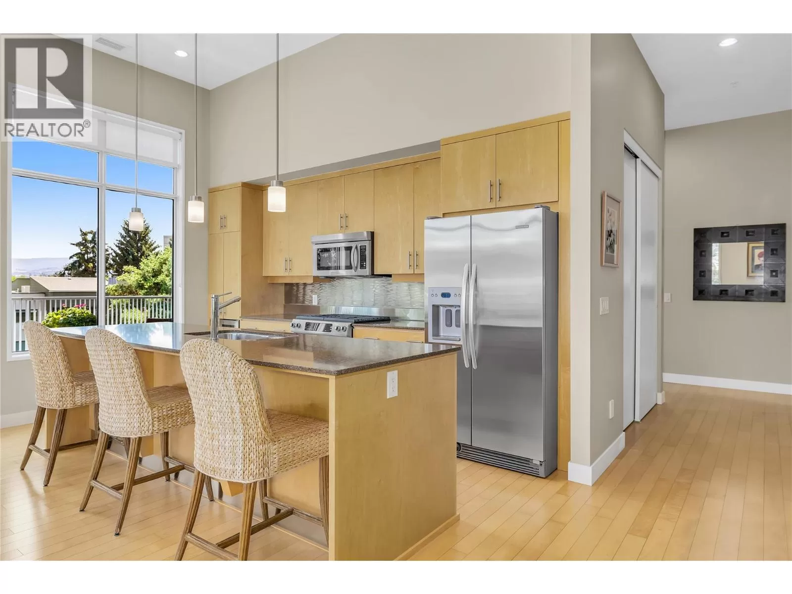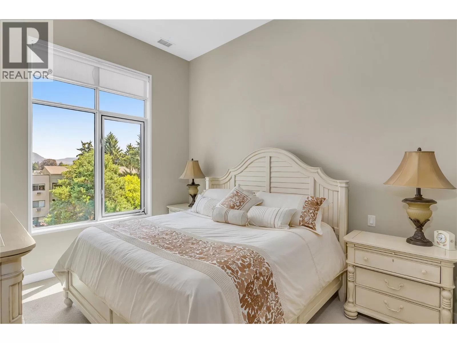 Experience the height of luxury urban living in this remarkable and truly one of a kind penthouse in Downtown Kelowna. Showcasing a sprawling 1,000 sq/ft private rooftop patio complete with your own hot tub, gas BBQ hookup, and sweeping views of the city and surrounding mountains, this residence sets a new standard for downtown living. An additional patio just off the kitchenâalso equipped with a gas BBQ hookup, offers even more space to relax and entertain year round. Inside, the open concept layout spans 1,506 sq/ft and is filled with upscale finishes, soaring 12-foot ceilings, and floor to ceiling windows that flood the space with natural light. The chef inspired kitchen features a large island and premium stainless steel appliances, making it perfect for both everyday living and hosting guests. The luxurious primary suite includes a spa like ensuite and a generous walk in closet, while a spacious second bedroom is conveniently located near a second full bathroom. The main level also includes a formal entry, a private office, two secure parking stalls, and a large storage locker. Residents enjoy access to exceptional amenities,including a swimming pool, hot tub, sauna, fire pit, two guest suites, fitness center, meeting room, and secure underground parking. Located just off vibrant Bernard Avenue, you're steps from shopping, dining, the beach, hiking trails, and all the best the city has to offer. (id:27476)