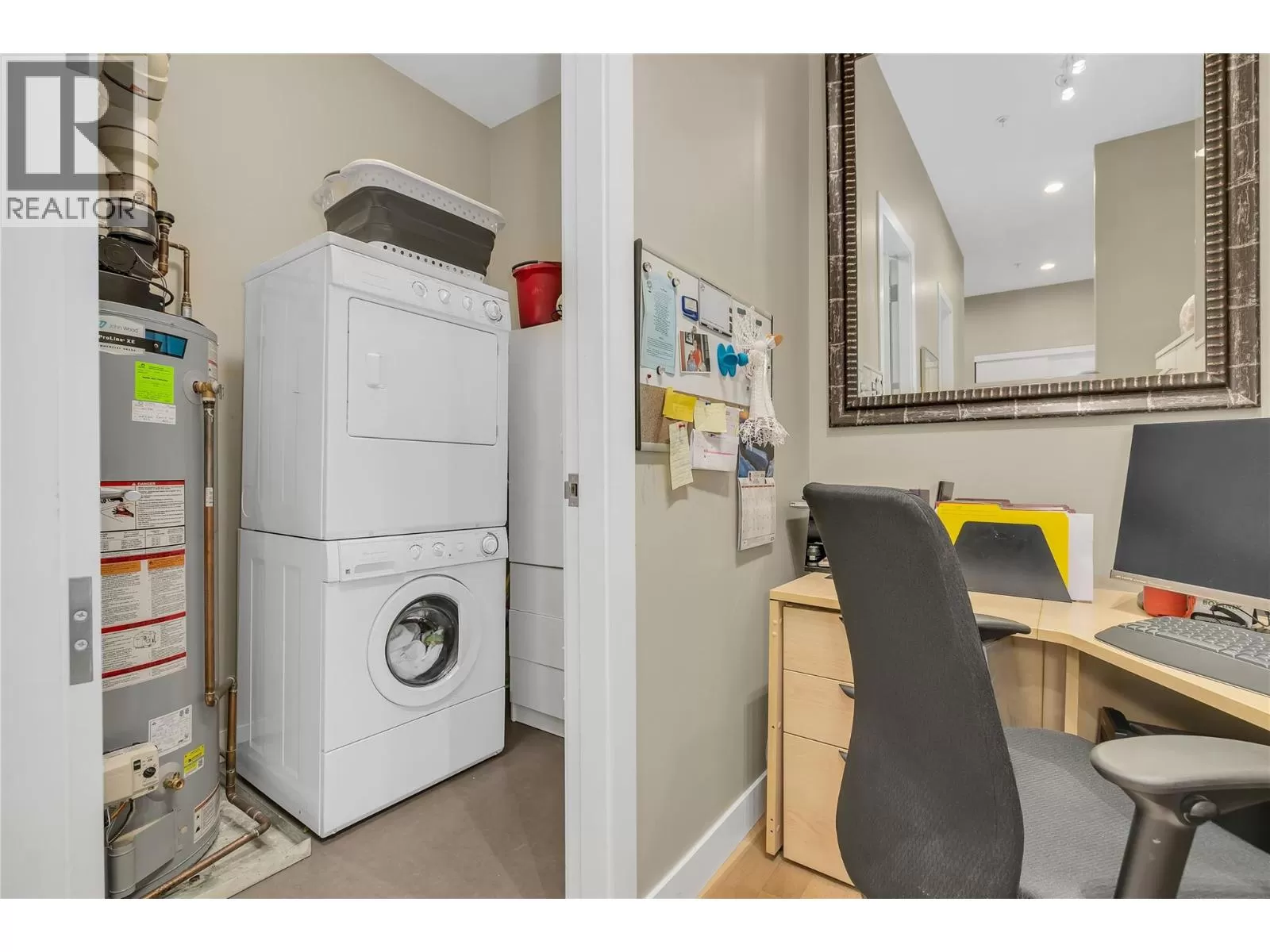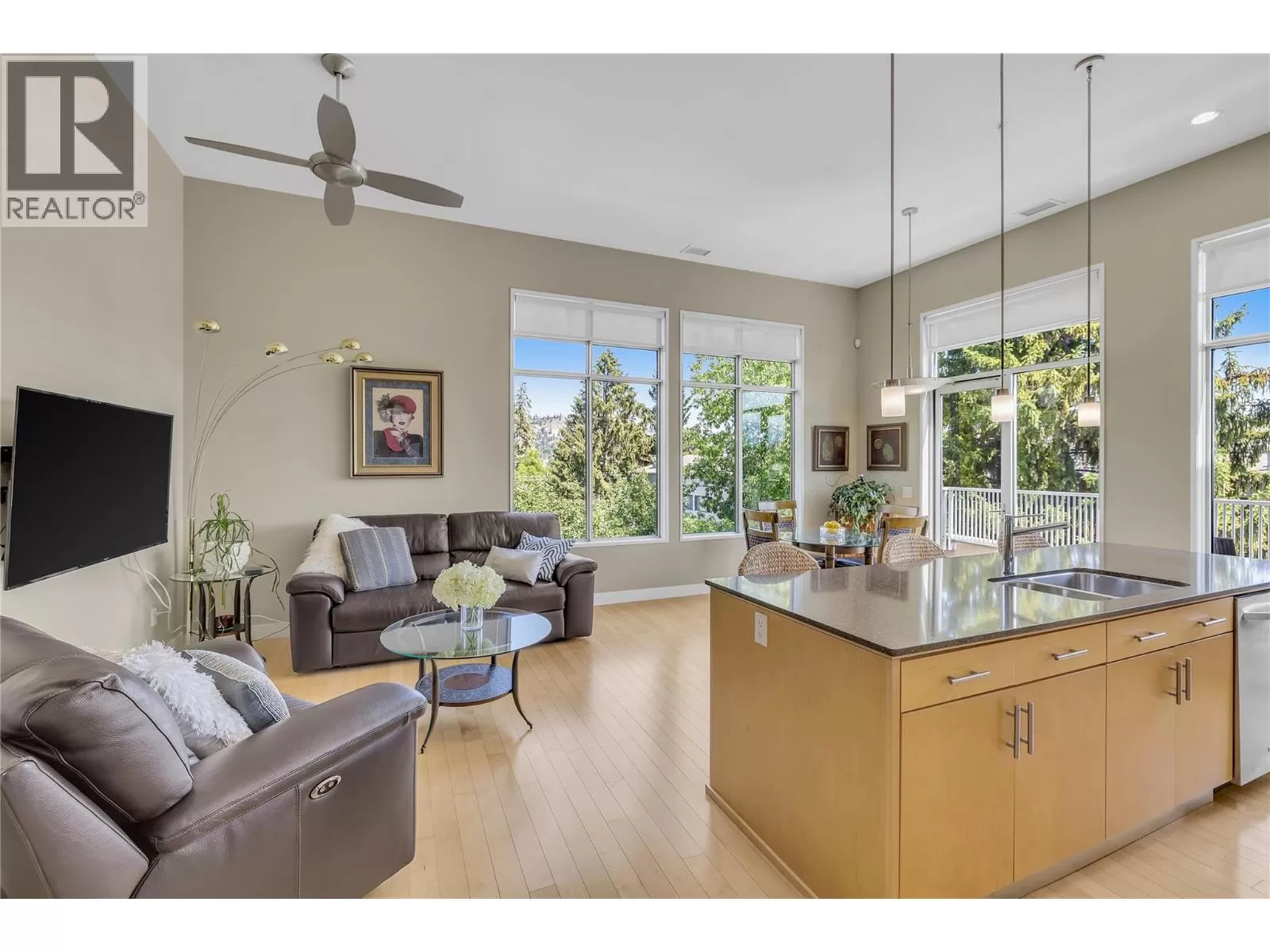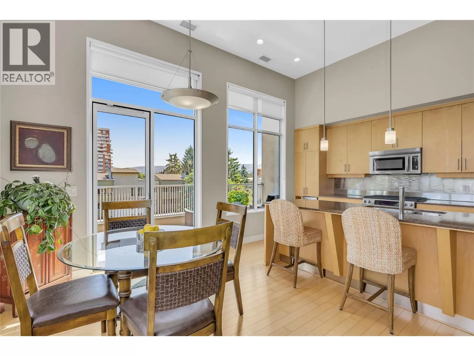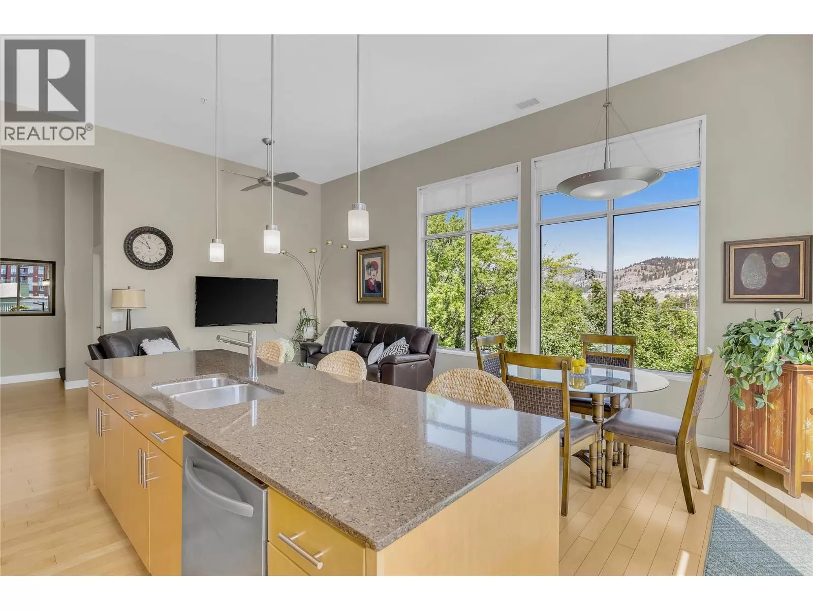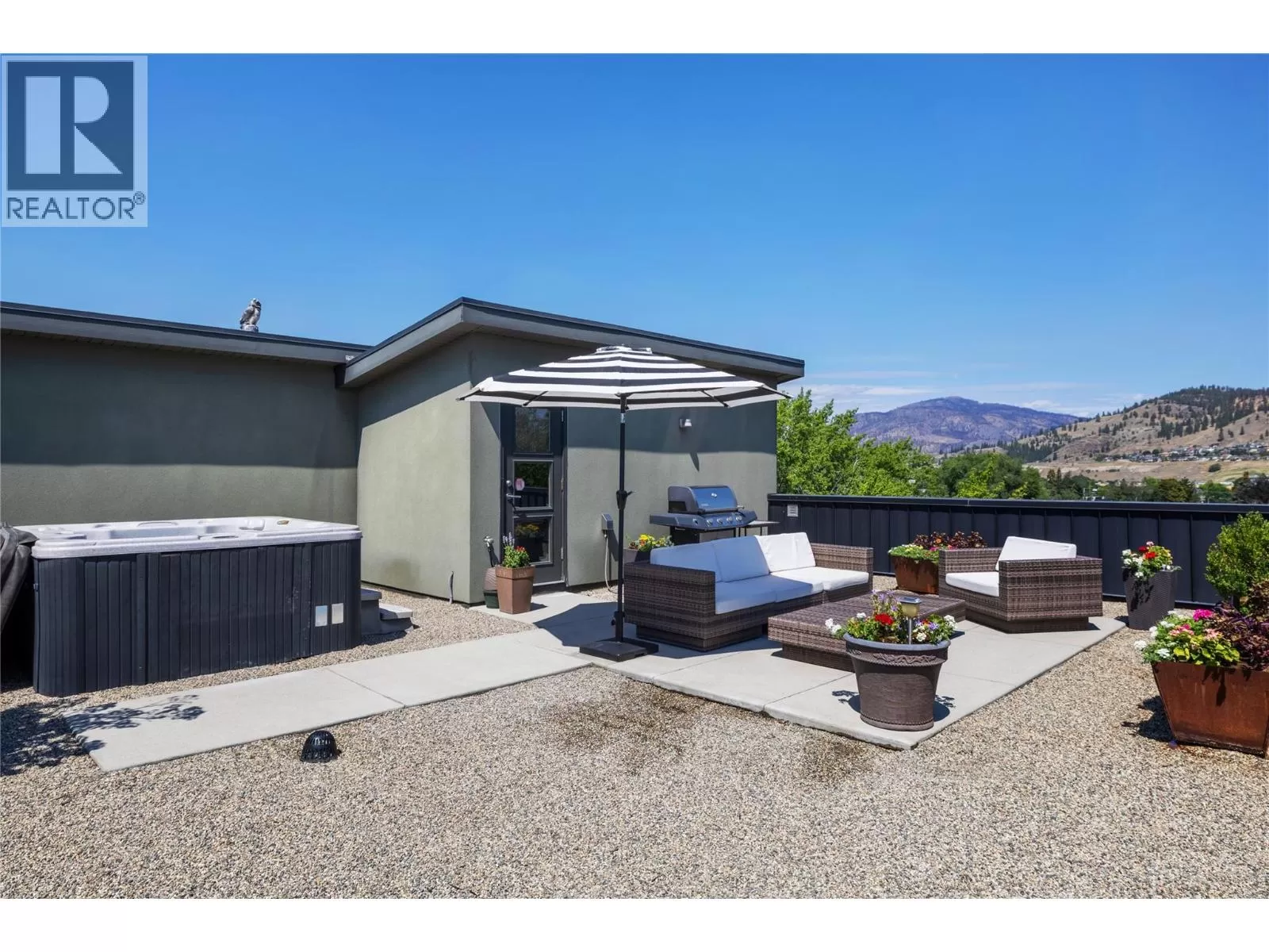 Experience the height of luxury urban living in this remarkable and truly one of a kind penthouse in Downtown Kelowna. Showcasing a sprawling 1,000 sq/ft private rooftop patio complete with your own hot tub, gas BBQ hookup, and sweeping views of the city and surrounding mountains, this residence sets a new standard for downtown living. An additional patio just off the kitchenâalso equipped with a gas BBQ hookup, offers even more space to relax and entertain year round. Inside, the open concept layout spans 1,506 sq/ft and is filled with upscale finishes, soaring 12-foot ceilings, and floor to ceiling windows that flood the space with natural light. The chef inspired kitchen features a large island and premium stainless steel appliances, making it perfect for both everyday living and hosting guests. The luxurious primary suite includes a spa like ensuite and a generous walk in closet, while a spacious second bedroom is conveniently located near a second full bathroom. The main level also includes a formal entry, a private office, two secure parking stalls, and a large storage locker. Residents enjoy access to exceptional amenities,including a swimming pool, hot tub, sauna, fire pit, two guest suites, fitness center, meeting room, and secure underground parking. Located just off vibrant Bernard Avenue, you're steps from shopping, dining, the beach, hiking trails, and all the best the city has to offer. (id:27476)