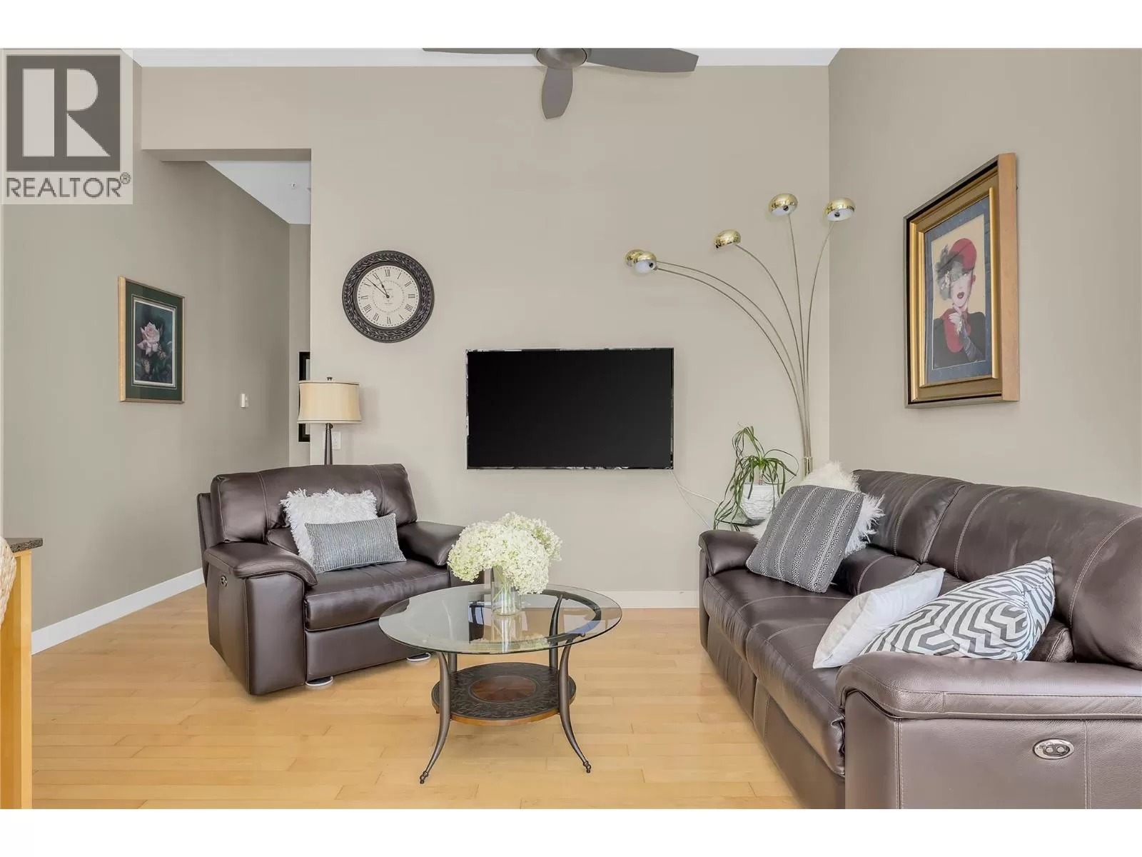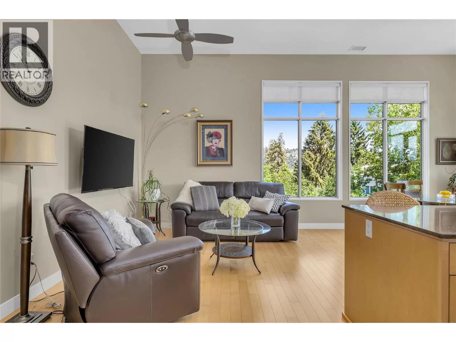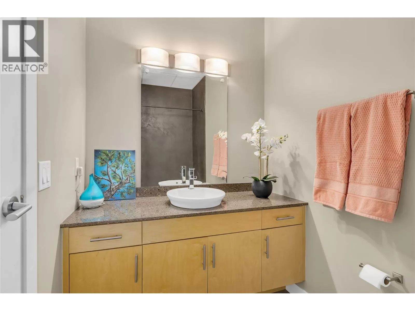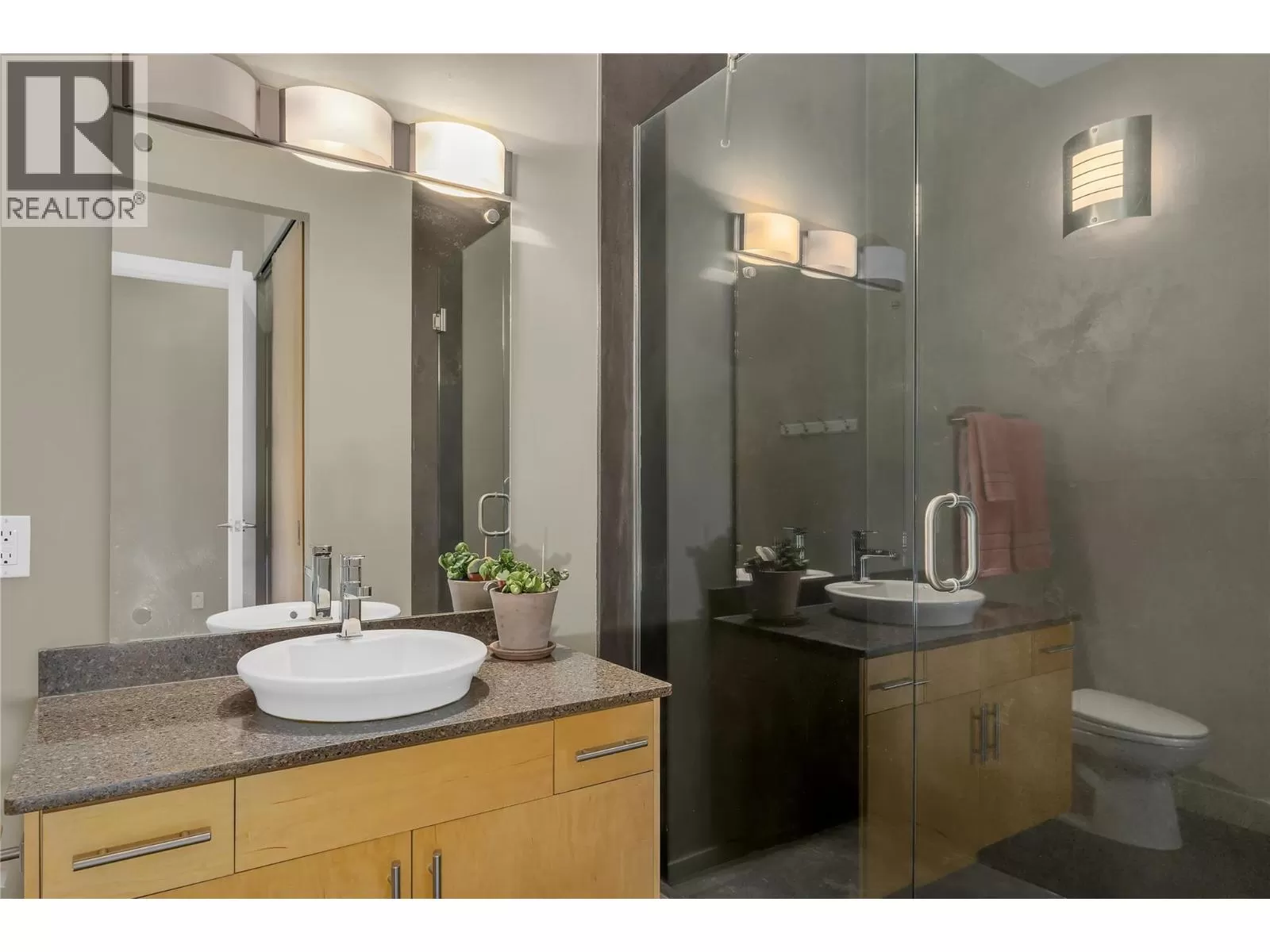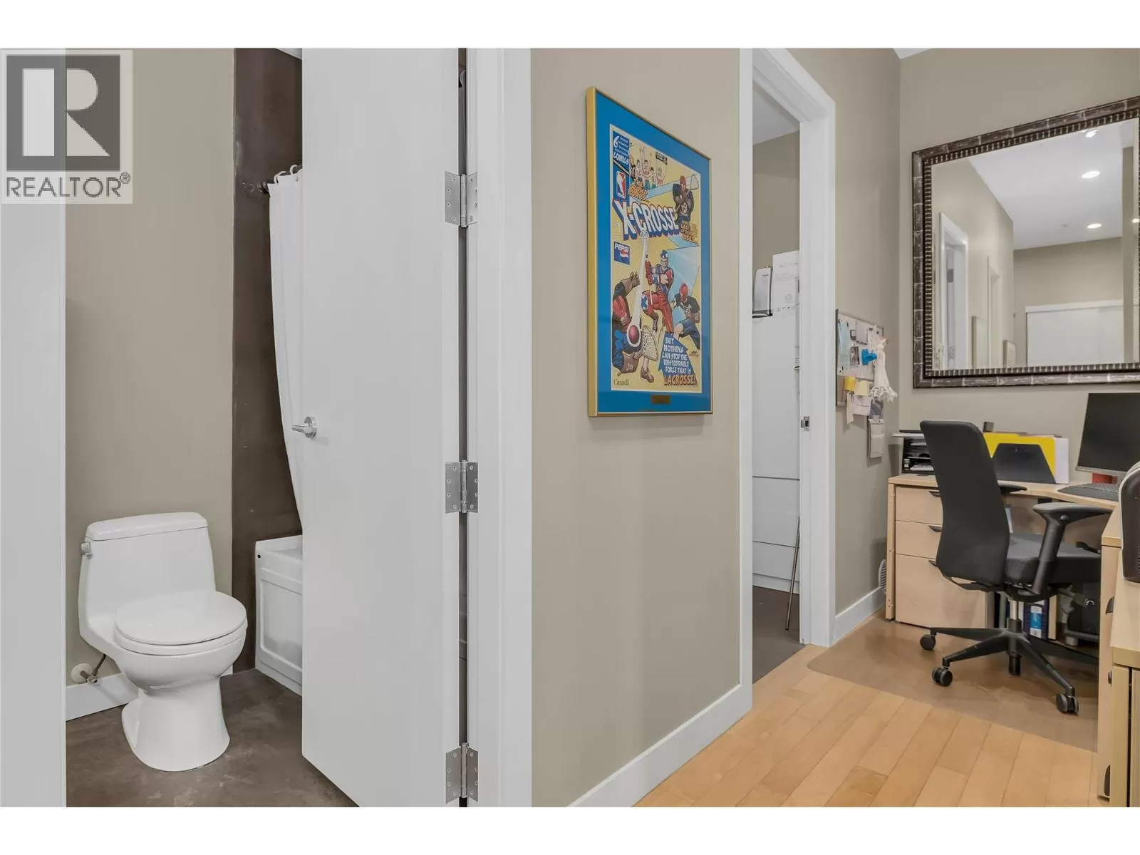 Experience the height of luxury urban living in this remarkable and truly one of a kind penthouse in Downtown Kelowna. Showcasing a sprawling 1,000 sq/ft private rooftop patio complete with your own hot tub, gas BBQ hookup, and sweeping views of the city and surrounding mountains, this residence sets a new standard for downtown living. An additional patio just off the kitchenâalso equipped with a gas BBQ hookup, offers even more space to relax and entertain year round. Inside, the open concept layout spans 1,506 sq/ft and is filled with upscale finishes, soaring 12-foot ceilings, and floor to ceiling windows that flood the space with natural light. The chef inspired kitchen features a large island and premium stainless steel appliances, making it perfect for both everyday living and hosting guests. The luxurious primary suite includes a spa like ensuite and a generous walk in closet, while a spacious second bedroom is conveniently located near a second full bathroom. The main level also includes a formal entry, a private office, two secure parking stalls, and a large storage locker. Residents enjoy access to exceptional amenities,including a swimming pool, hot tub, sauna, fire pit, two guest suites, fitness center, meeting room, and secure underground parking. Located just off vibrant Bernard Avenue, you're steps from shopping, dining, the beach, hiking trails, and all the best the city has to offer. (id:27476)