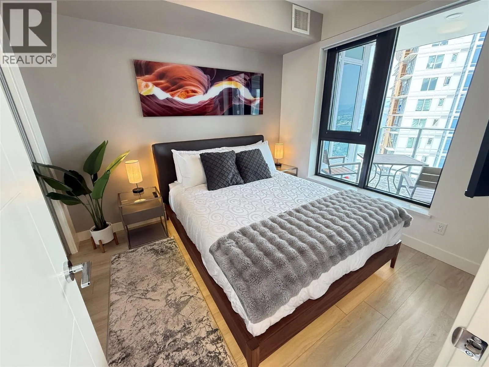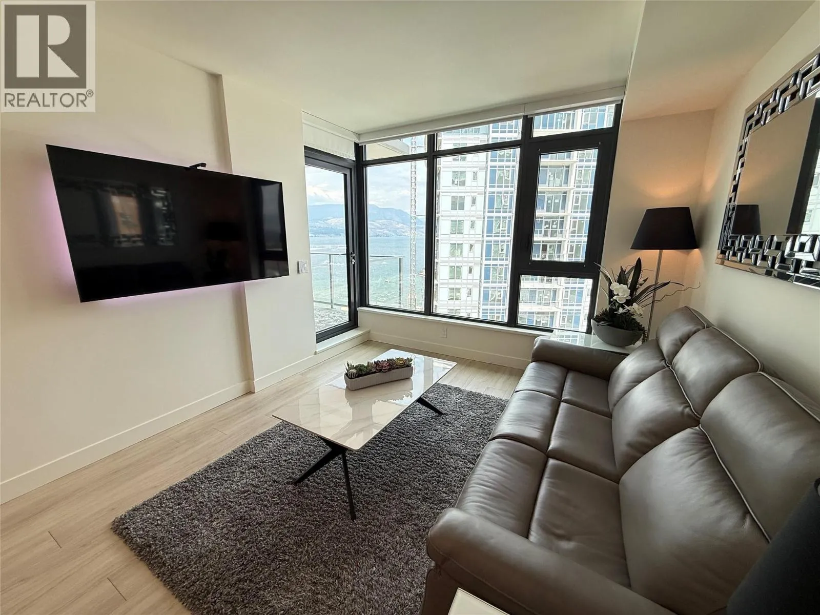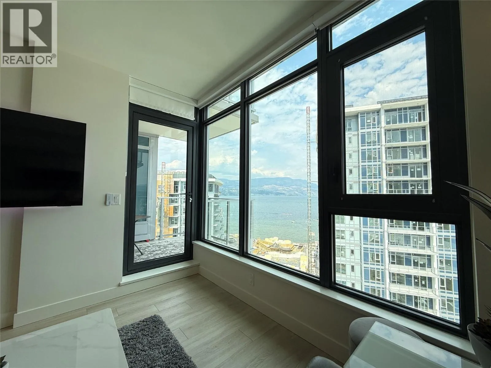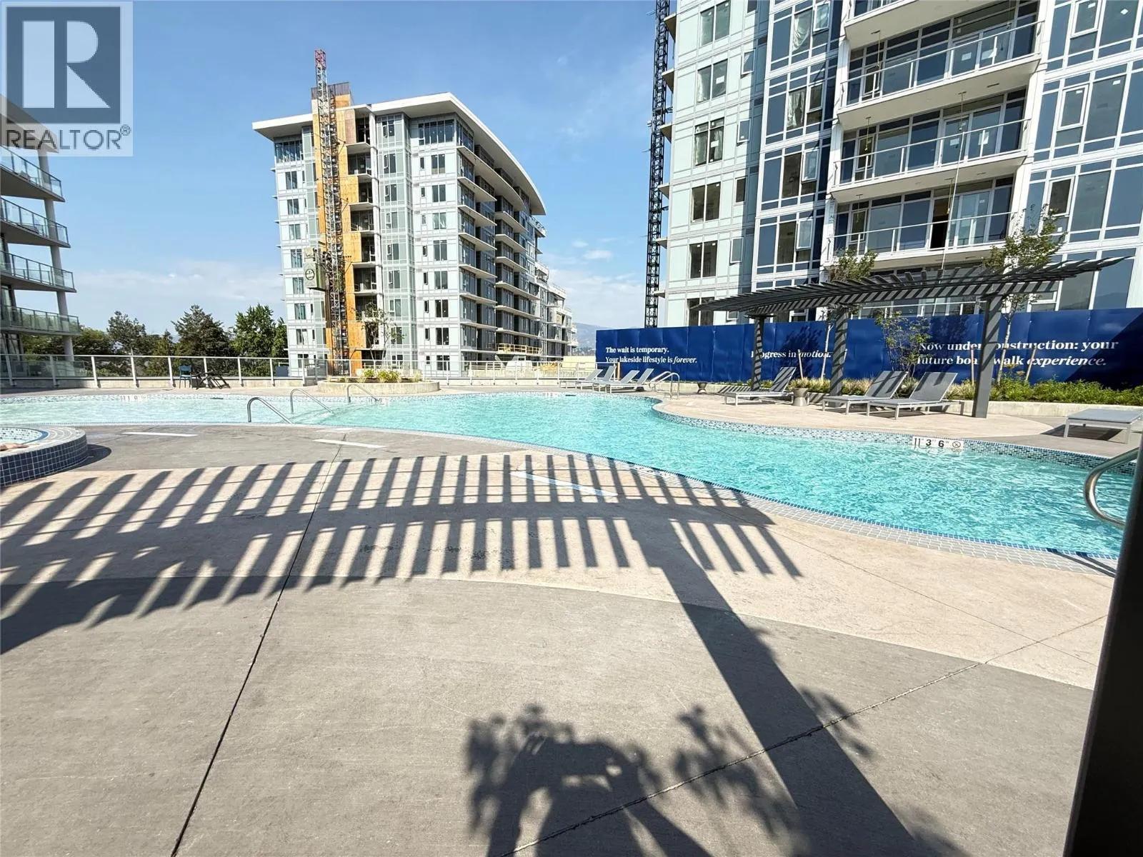 Experience luxury living or a turn-key investment in one off Kelowna's most sought after communities-Lower Mission. This modern 1-bedroom, 1-bath condo offers stunning panoramic views of Okanagan Lake, the pool deck, and mountains from your private balcony. Located in the upscale AQUA development, enjoy resort-style amenities including an outdoor pool & hot tub, BBQ area, fireside lounge, 2,000 sq.ft. 2-storey gym with yoga/mediation space, co-working area, poolside kitchen, and a dog wash station. This unit features remote-control roller blinds, upgraded closet organizers, a built-in microwave, and a large storage locker. Optional: Purchase fully furnished (brand-new) for an additional $12,000 - Perfect as a turn-key rental or executive residence. (id:27476)