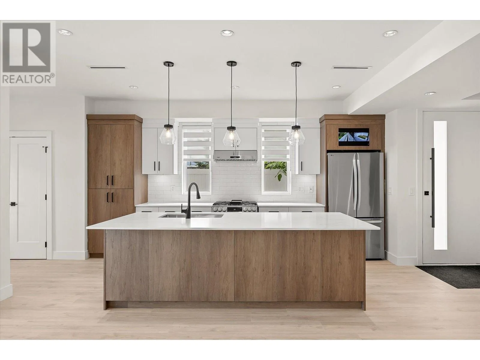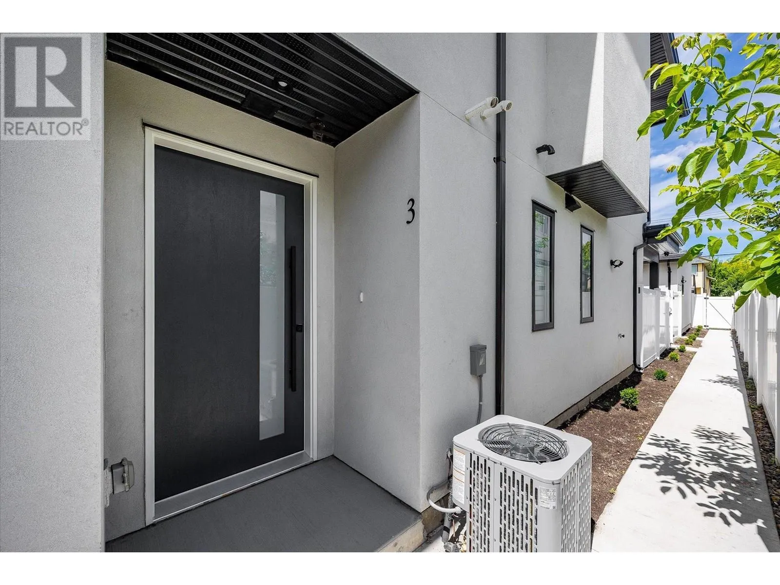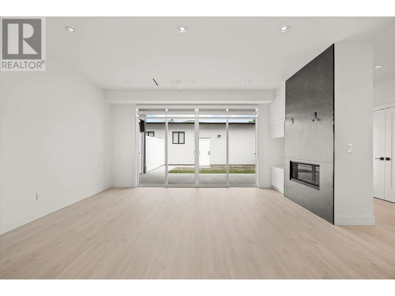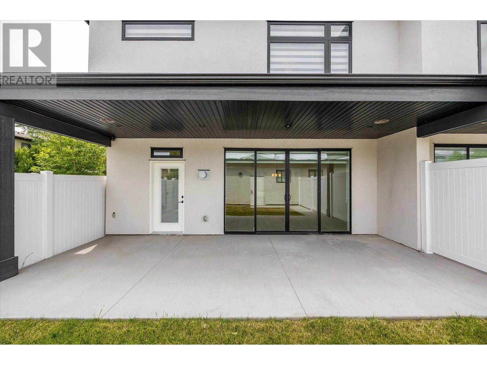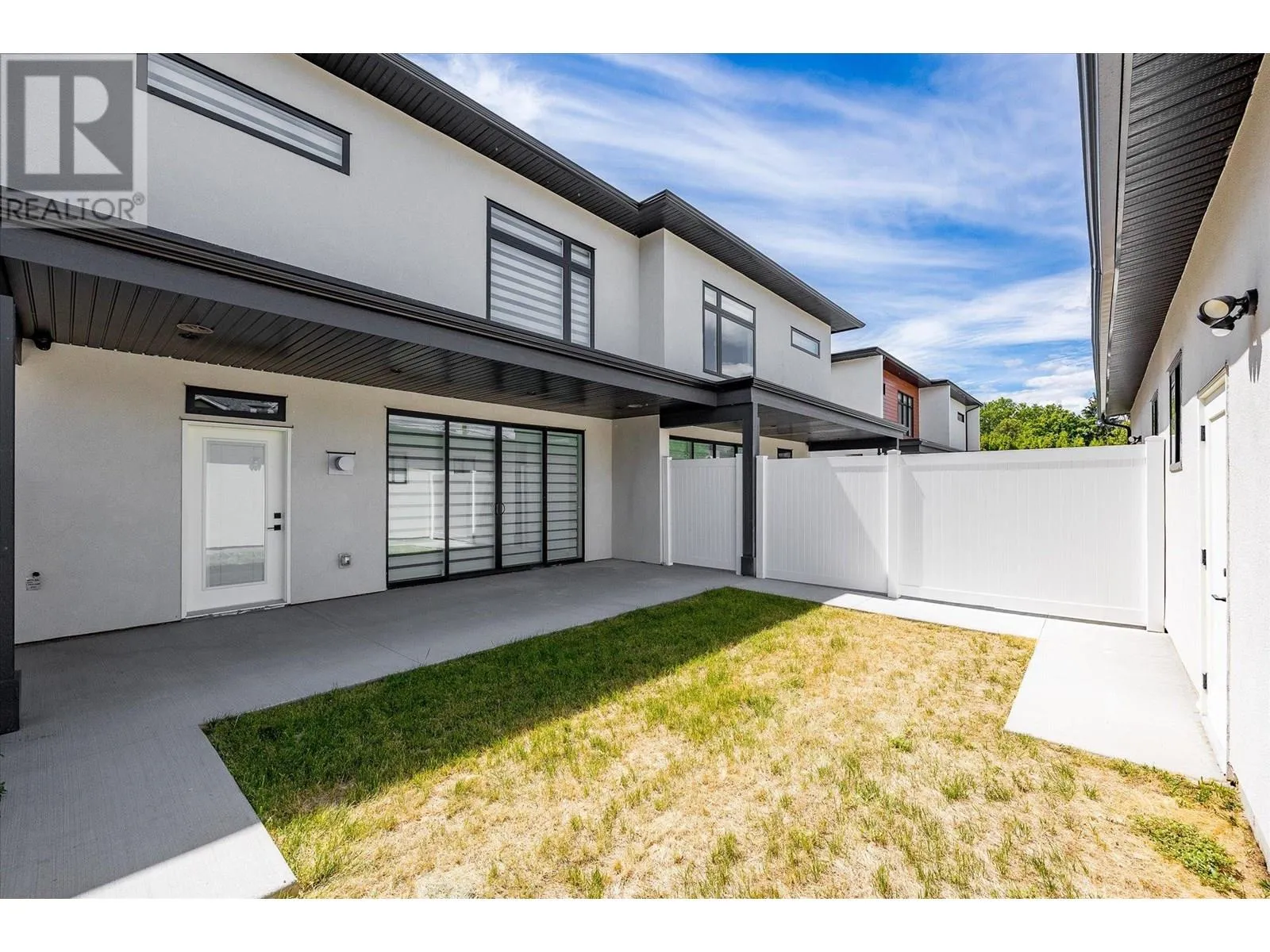 NEW PRICE! Spacious-Brand New-Kelowna South Townhome-Move-In Ready-No Strata Fee! Blending modern design with contemporary charm, this 3-bedroom, 3-bathroom townhome offers 2001 sq ft of thoughtfully designed living space. Highlights include a private rooftop patio, a spacious front yard with a white privacy fence and a single detached garage. Inside, youâre welcomed by 9-foot ceilings and an open-concept main floor featuring wide plank laminate flooring, custom window coverings and elegant built-in cabinetry throughout. The chef-inspired kitchen boasts a large island with built-in storage, striking two-tone cabinetry, stainless steel appliances, a gas range and a wine fridgeâperfect for entertaining! Finishes include white granite countertops, a cozy gas fireplace set against a stylish feature wall and main floor built-in speakers (indoor and outdoor). The primary suite offers a generous sized bedroom with a large walk-in closet and a 5-piece ensuite complete with a freestanding tub and a private water closet. Two additional spacious bedrooms feature TV/media hookups and the same floor laundry room including a stacked washer/dryer with built-in cabinets. Ideally located just minutes from parks, schools, shopping, KGH and the lake this home offers the perfect blend of spacious living, everyday comfort and lifestyle leisure. (id:27476)