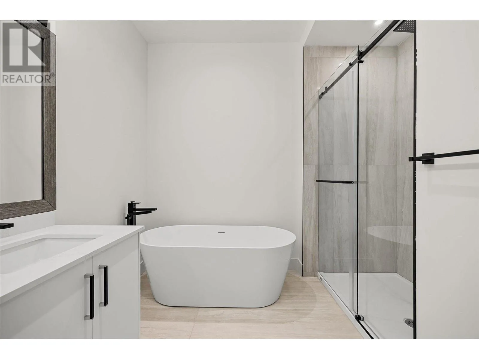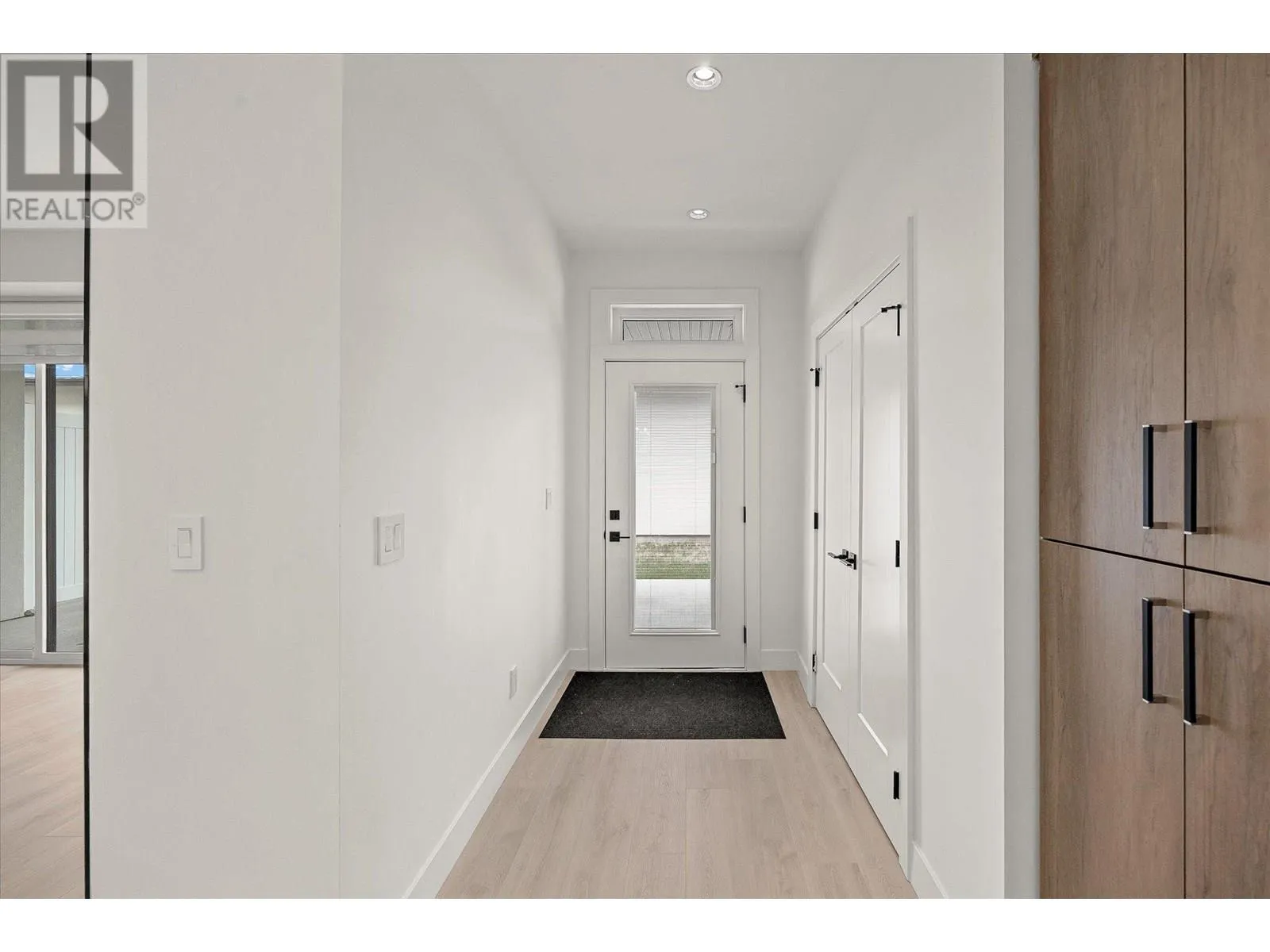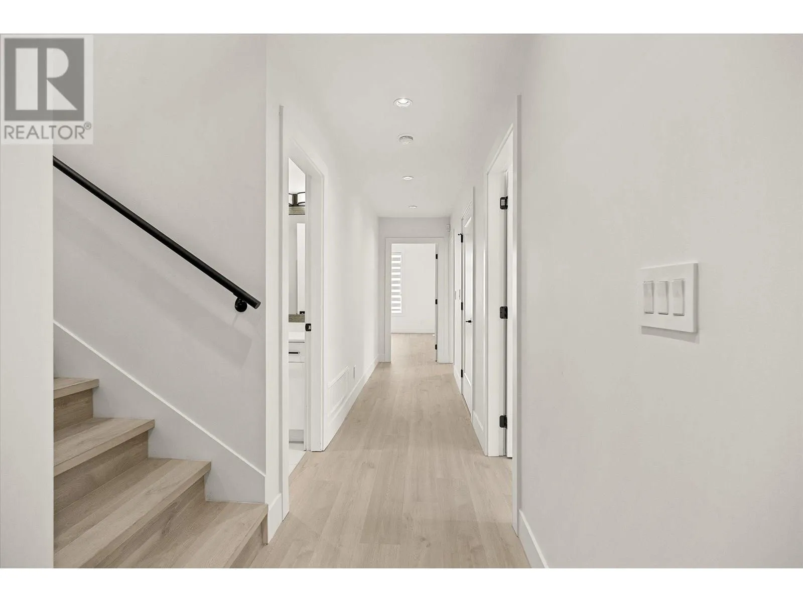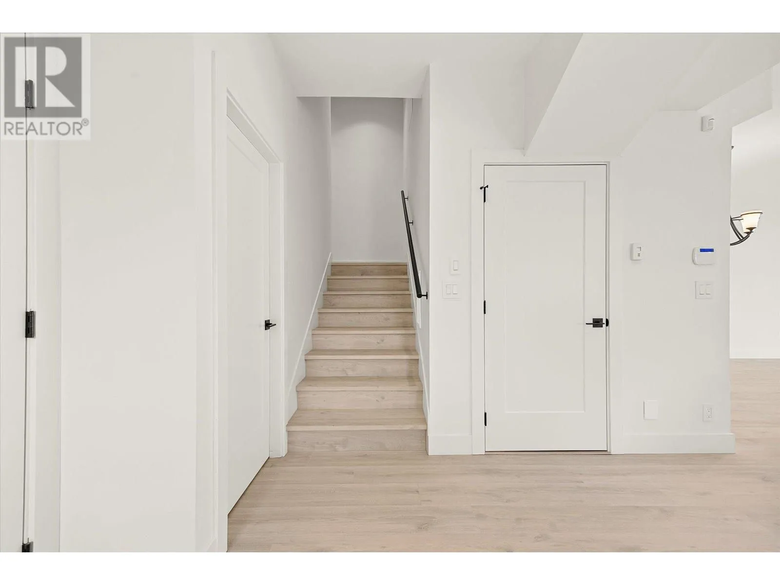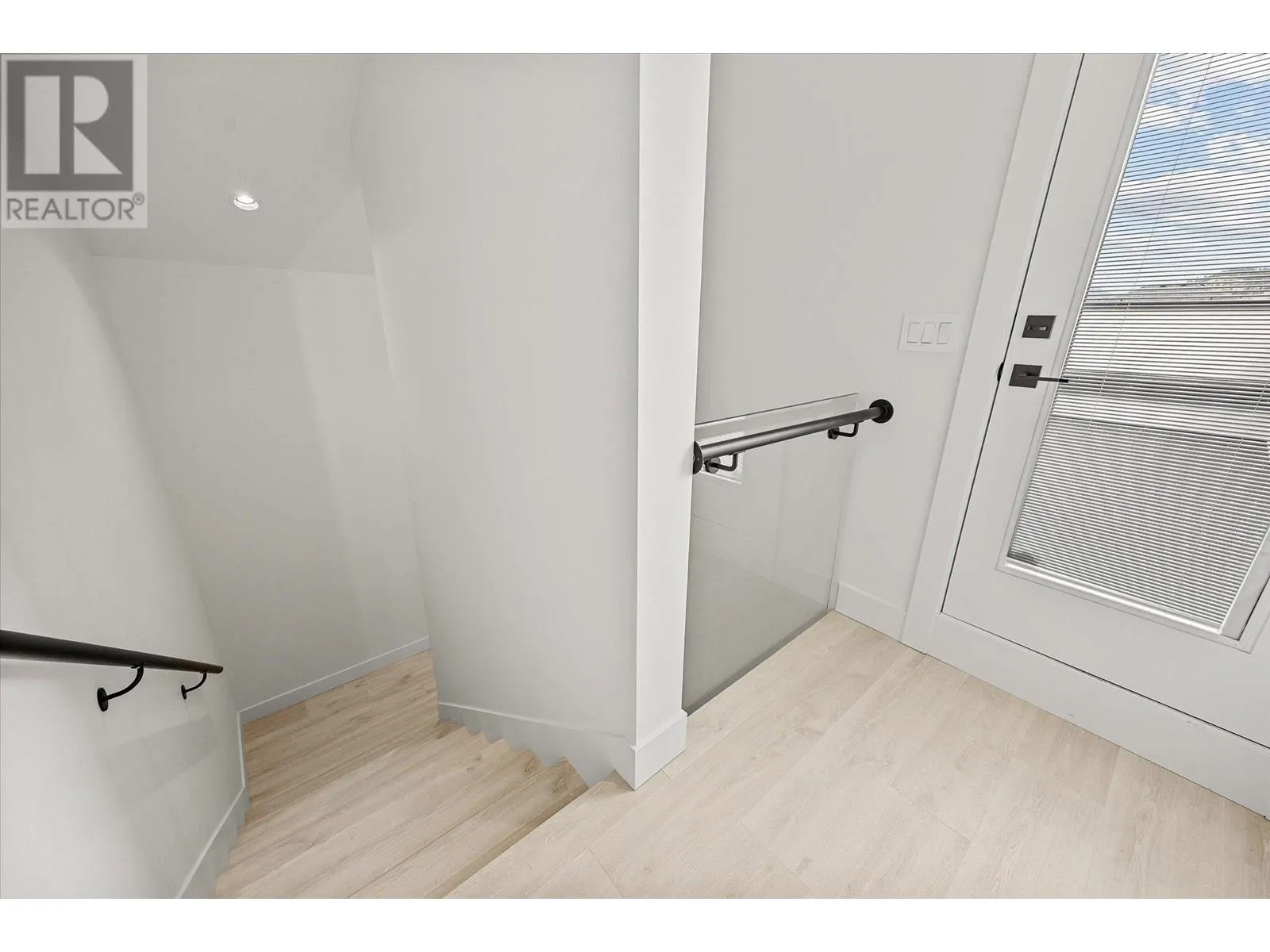 NEW PRICE! Spacious-Brand New-Kelowna South Townhome-Move-In Ready-No Strata Fee! Blending modern design with contemporary charm, this 3-bedroom, 3-bathroom townhome offers 2001 sq ft of thoughtfully designed living space. Highlights include a private rooftop patio, a spacious front yard with a white privacy fence and a single detached garage. Inside, youâre welcomed by 9-foot ceilings and an open-concept main floor featuring wide plank laminate flooring, custom window coverings and elegant built-in cabinetry throughout. The chef-inspired kitchen boasts a large island with built-in storage, striking two-tone cabinetry, stainless steel appliances, a gas range and a wine fridgeâperfect for entertaining! Finishes include white granite countertops, a cozy gas fireplace set against a stylish feature wall and main floor built-in speakers (indoor and outdoor). The primary suite offers a generous sized bedroom with a large walk-in closet and a 5-piece ensuite complete with a freestanding tub and a private water closet. Two additional spacious bedrooms feature TV/media hookups and the same floor laundry room including a stacked washer/dryer with built-in cabinets. Ideally located just minutes from parks, schools, shopping, KGH and the lake this home offers the perfect blend of spacious living, everyday comfort and lifestyle leisure. (id:27476)