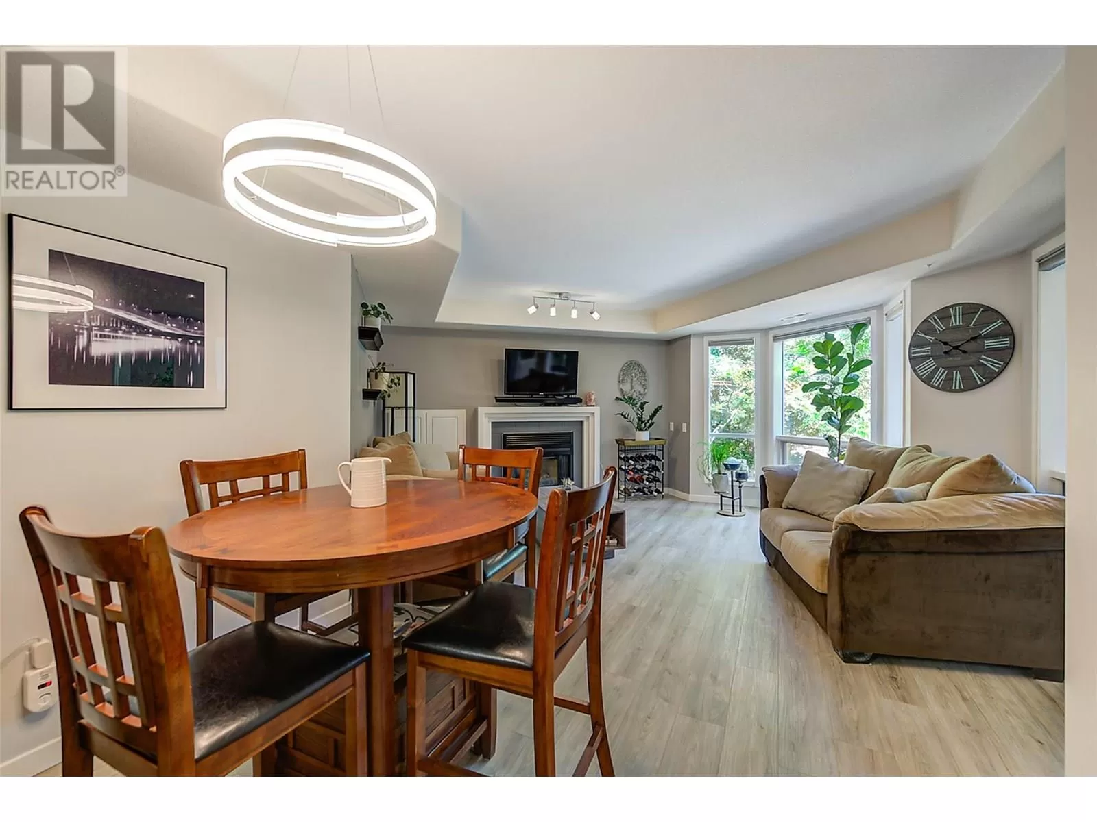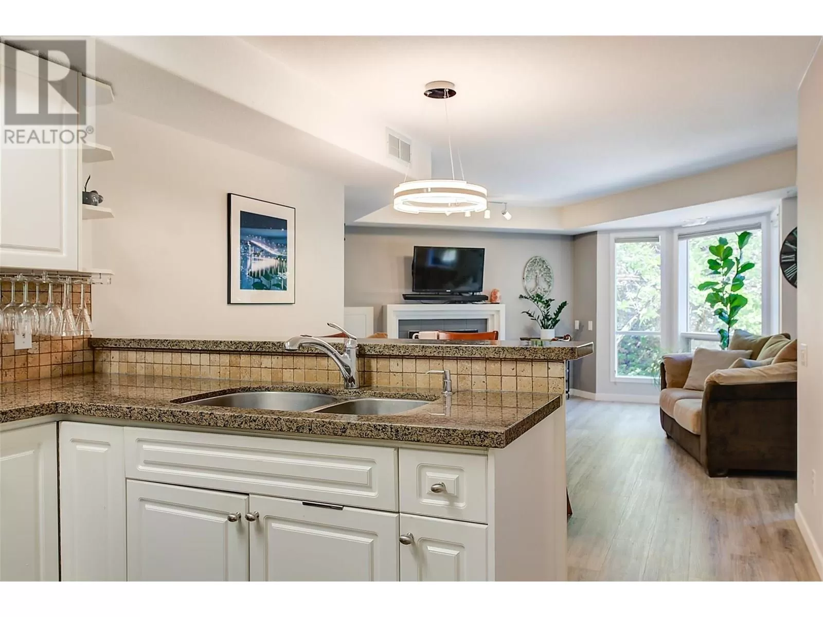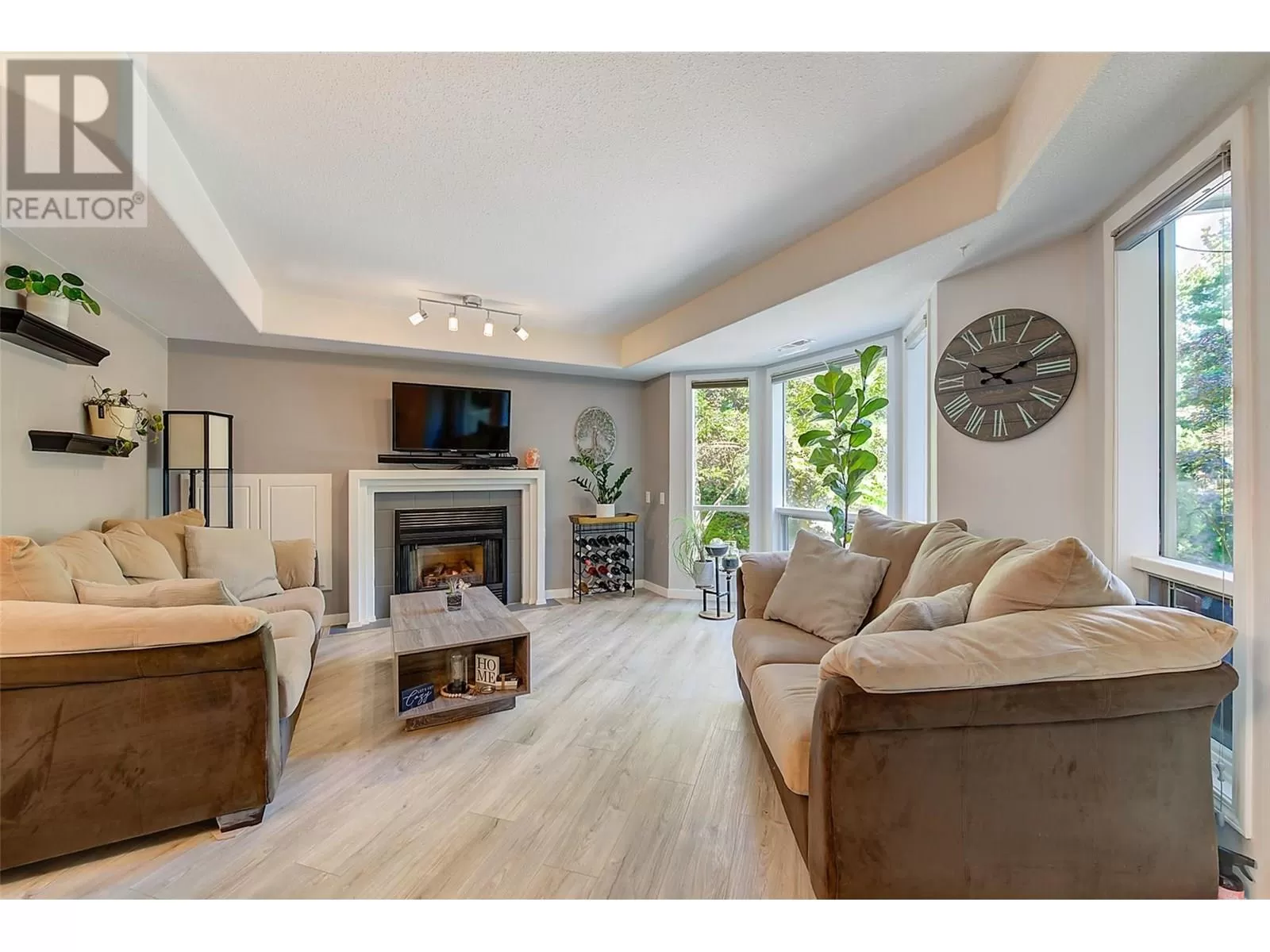 Nature out your window, the city at your doorstepâwelcome to Cascade Falls! The perfect blend of location & lifestyle, this 2-bedroom, 2-bathroom condo offers a thoughtfully designed layout with approximately 1,018 sqft of living space. Located on the quiet side of the building, the open-concept kitchen features granite counters, stainless steel appliances, ample cabinet storage & a sit-up bar for two with extensive vinyl plank flooring. A formal dining area flows seamlessly into a cozy living room with a gas fireplace & access to a covered balconyâperfect for morning coffee or summer BBQs with friends & family! The oversized primary bedroom includes balcony access, a generous walk-in closet & a 4-piece ensuite. The second bedroom is smartly outfitted with a built-in desk & wall bed, ideal for guests or a home office setup & is adjacent to the main 4-piece bathroom. You'll also find a dedicated laundry/pantry room off the kitchen with freezer for added convenience & storage. This condo comes complete with 1 secure underground parking stall, 1 large storage locker & has a new furnace/AC unit (2024)! The pet-friendly strata features mature landscaping & is just steps from Dilworth Soccer Park & nature trails. Live above the city, but never far from itâDilworth Mountain is located in the heart of Kelowna just 10-15 mins to everything you needâUBCO, YLW Orchard Park Mall, groceries, restaurants, big box stores, the Okanagan Rail Trail, Glenmore & more! Move in & enjoy this fall! (id:27476)