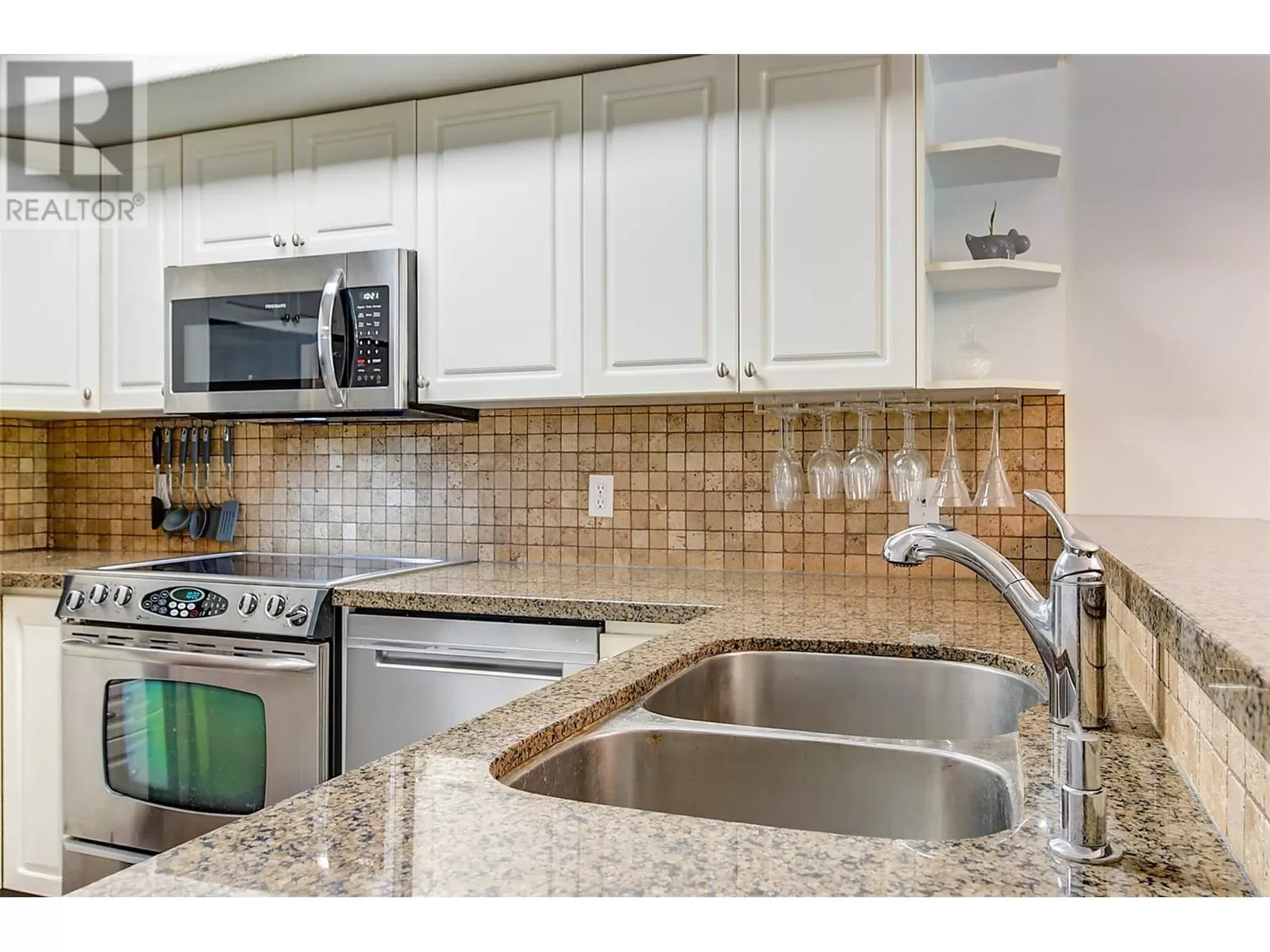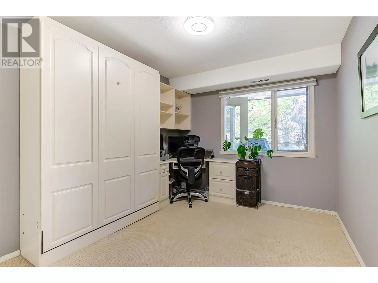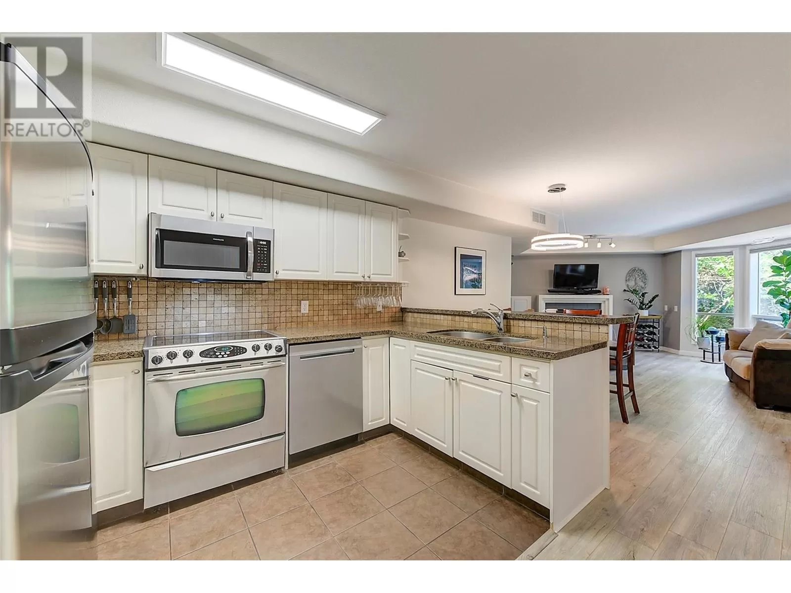 Nature out your window, the city at your doorstepâwelcome to Cascade Falls! The perfect blend of location & lifestyle, this 2-bedroom, 2-bathroom condo offers a thoughtfully designed layout with approximately 1,018 sqft of living space. Located on the quiet side of the building, the open-concept kitchen features granite counters, stainless steel appliances, ample cabinet storage & a sit-up bar for two with extensive vinyl plank flooring. A formal dining area flows seamlessly into a cozy living room with a gas fireplace & access to a covered balconyâperfect for morning coffee or summer BBQs with friends & family! The oversized primary bedroom includes balcony access, a generous walk-in closet & a 4-piece ensuite. The second bedroom is smartly outfitted with a built-in desk & wall bed, ideal for guests or a home office setup & is adjacent to the main 4-piece bathroom. You'll also find a dedicated laundry/pantry room off the kitchen with freezer for added convenience & storage. This condo comes complete with 1 secure underground parking stall, 1 large storage locker & has a new furnace/AC unit (2024)! The pet-friendly strata features mature landscaping & is just steps from Dilworth Soccer Park & nature trails. Live above the city, but never far from itâDilworth Mountain is located in the heart of Kelowna just 10-15 mins to everything you needâUBCO, YLW Orchard Park Mall, groceries, restaurants, big box stores, the Okanagan Rail Trail, Glenmore & more! Move in & enjoy this fall! (id:27476)