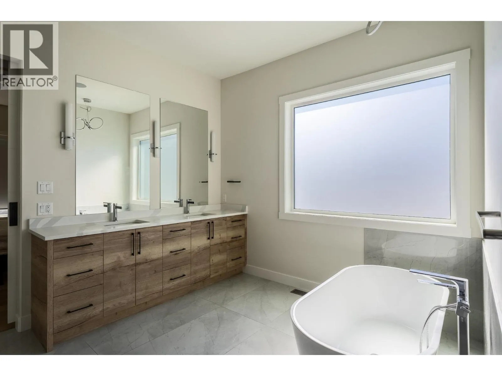This newer walkout basement Rancher comes with a legal 1-bedroom suite. It's on a big lot with plenty of level parking and space for a pool or hot tub. The upper main sundeck and lower covered patio are perfect for enjoying the views. Located near the end of a cul-de-sac and a walking trail, it's super private with minimal traffic. The mountain views are stunning, and the massive vaulted ceilings and oversized windows let in tons of natural light. The main level is spacious with a great room concept that's perfect for entertaining, both indoors and on the oversized covered patio. There's also a scullery, a spacious mudroom, and a laundry room for convenience and storage. The primary bedroom has its own deck access, a huge ensuite, and a walk-in closet. There's a second bedroom or large office with vaulted ceilings and a big closet, plus a full 3-piece bath. The lower walkout level has a spacious recreation and family room with a wet bar and two beverage fridges. There are also two additional bedrooms and a 4-piece bath, making it perfect for extended family or guests. (id:27476)