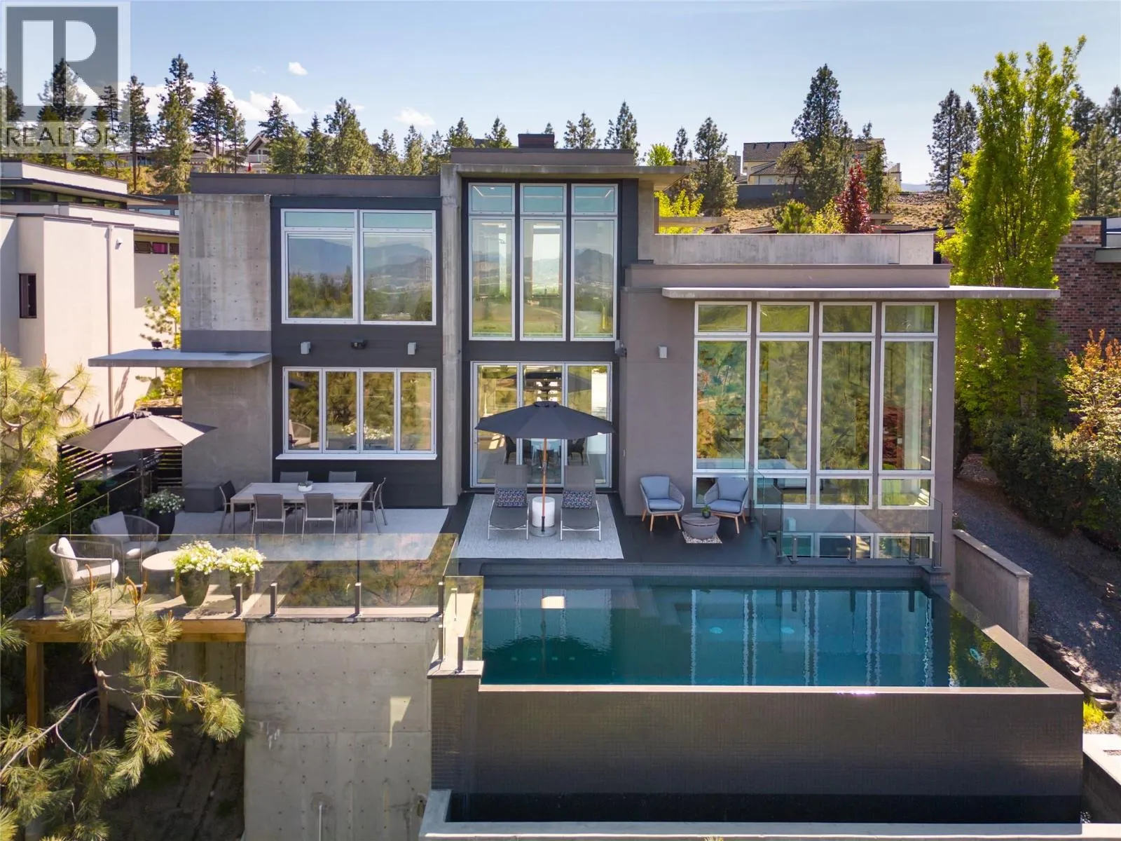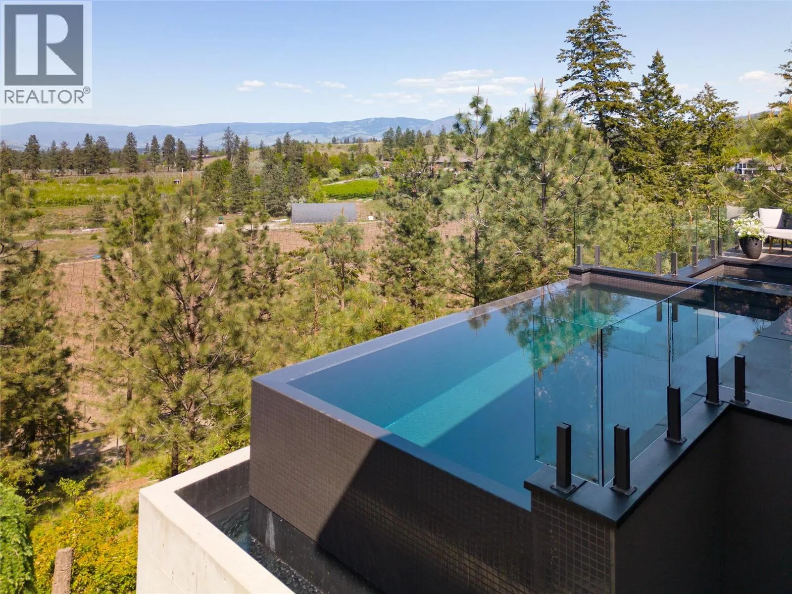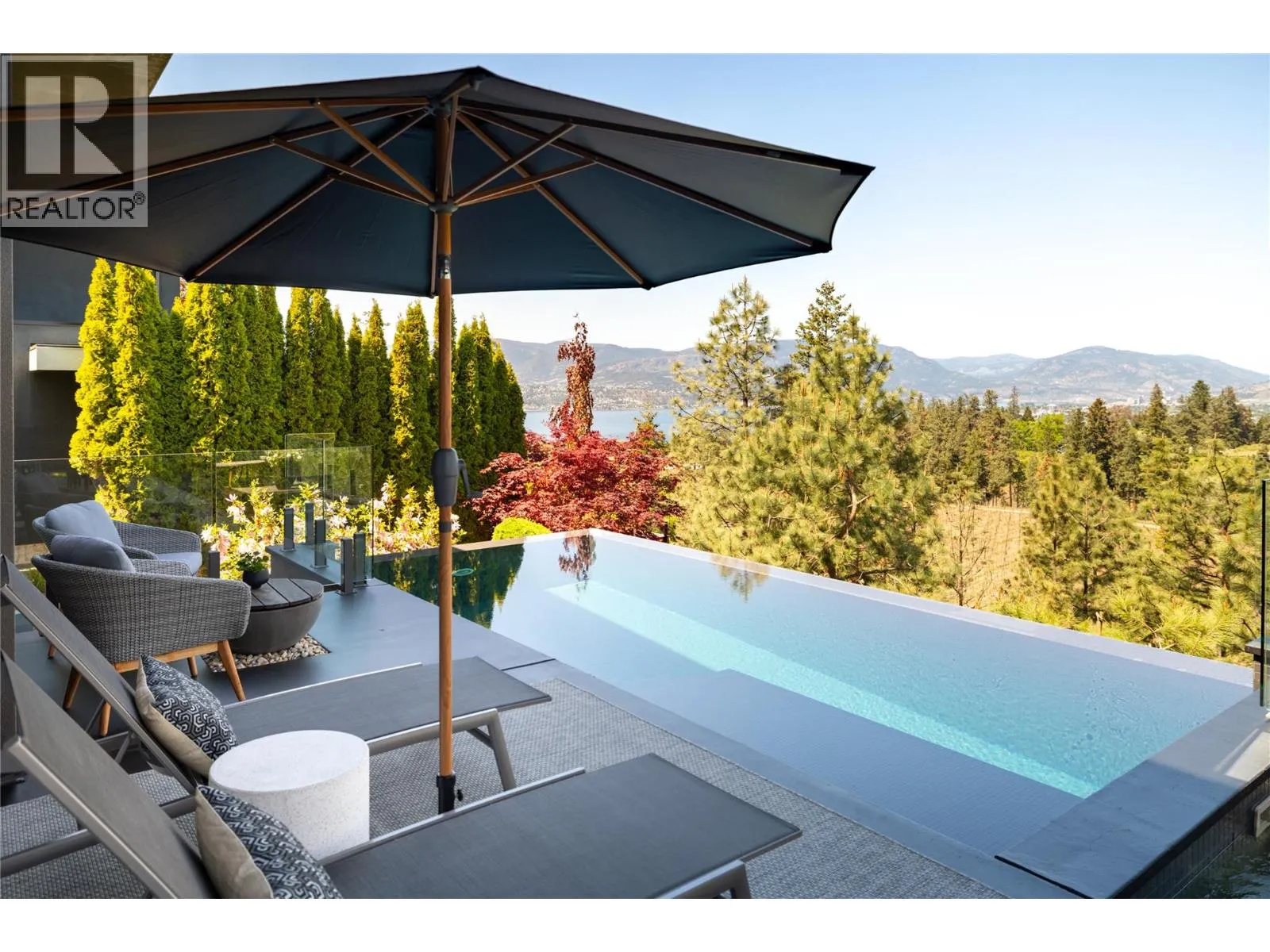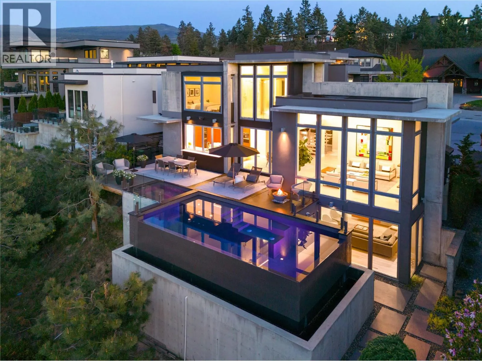 Discover extraordinary design and elevated living in this striking concrete-and-glass home in Kelownaâs coveted Lower Mission. This one-of-a-kind residence captivates with panoramic views of Okanagan Lake, the city skyline, and surrounding vineyards. From the moment you arrive, the homeâs bold form and refined craftsmanship set the tone. A dramatic floating-stair staircase, European white oak floors, and high-gloss stretch ceilings with ambient inset lighting underscore the sophisticated aesthetic. Floor-to-ceiling commercial-grade windows capture the landscapes, while open-concept living flows effortlessly to the outdoors. Entertain on a grand scale: full nano-doors open from the main floor to multiple patios and seating areas, including a built-in eating bar with a nano pass-through window. Head up to the rooftop patio and unwind in the hot tub or the eye-catching infinity poolâdesigned to appear as though itâs floating above the terrain. The designer kitchen is built for both performance and show-stopping style: two-tone Liecht cabinetry, top-of-the-line Miele appliances. A built-in espresso machine, double ovens, cooktop, fridge, freezer, wine fridge, all seamlessly integrated to host gatherings of any magnitude. See firsthand how this home sets a new standard for contemporary living in Kelowna. (id:27476)