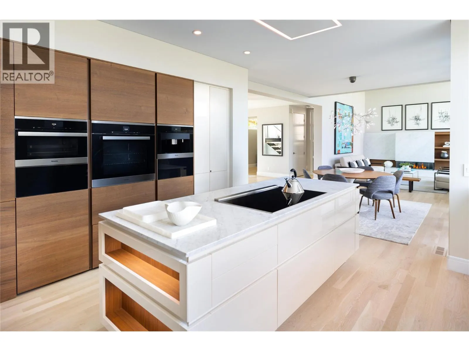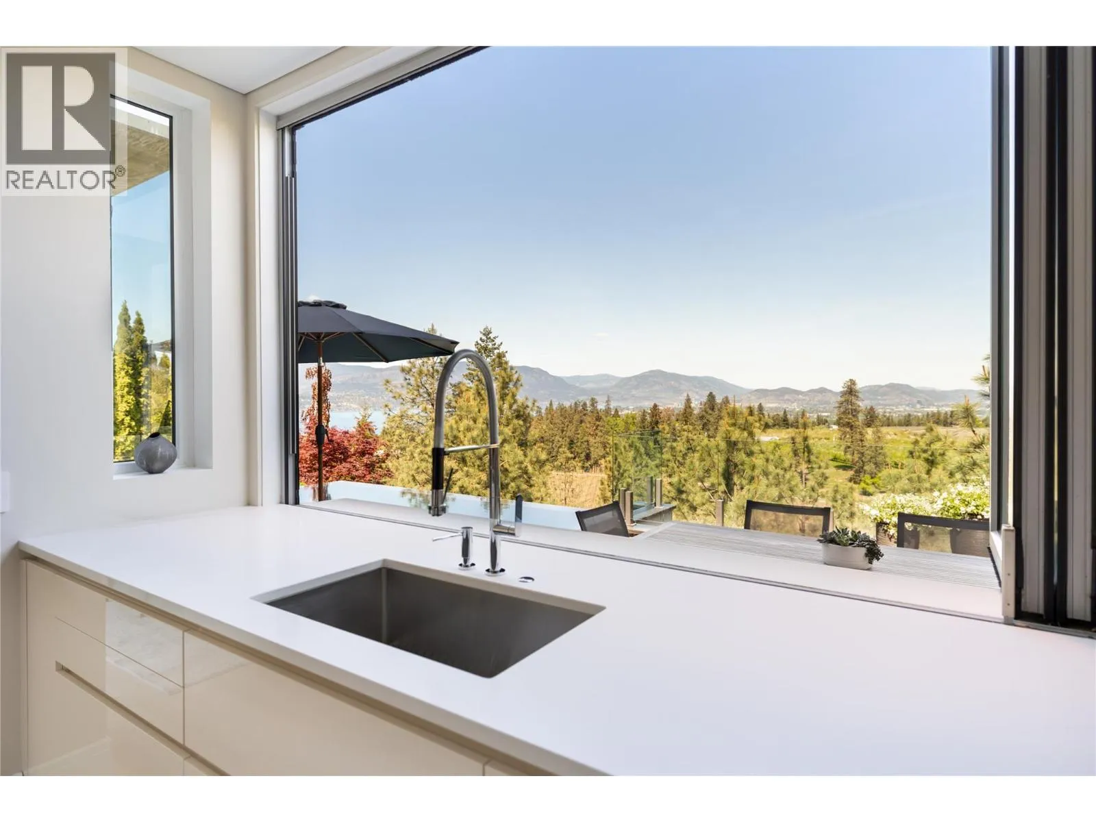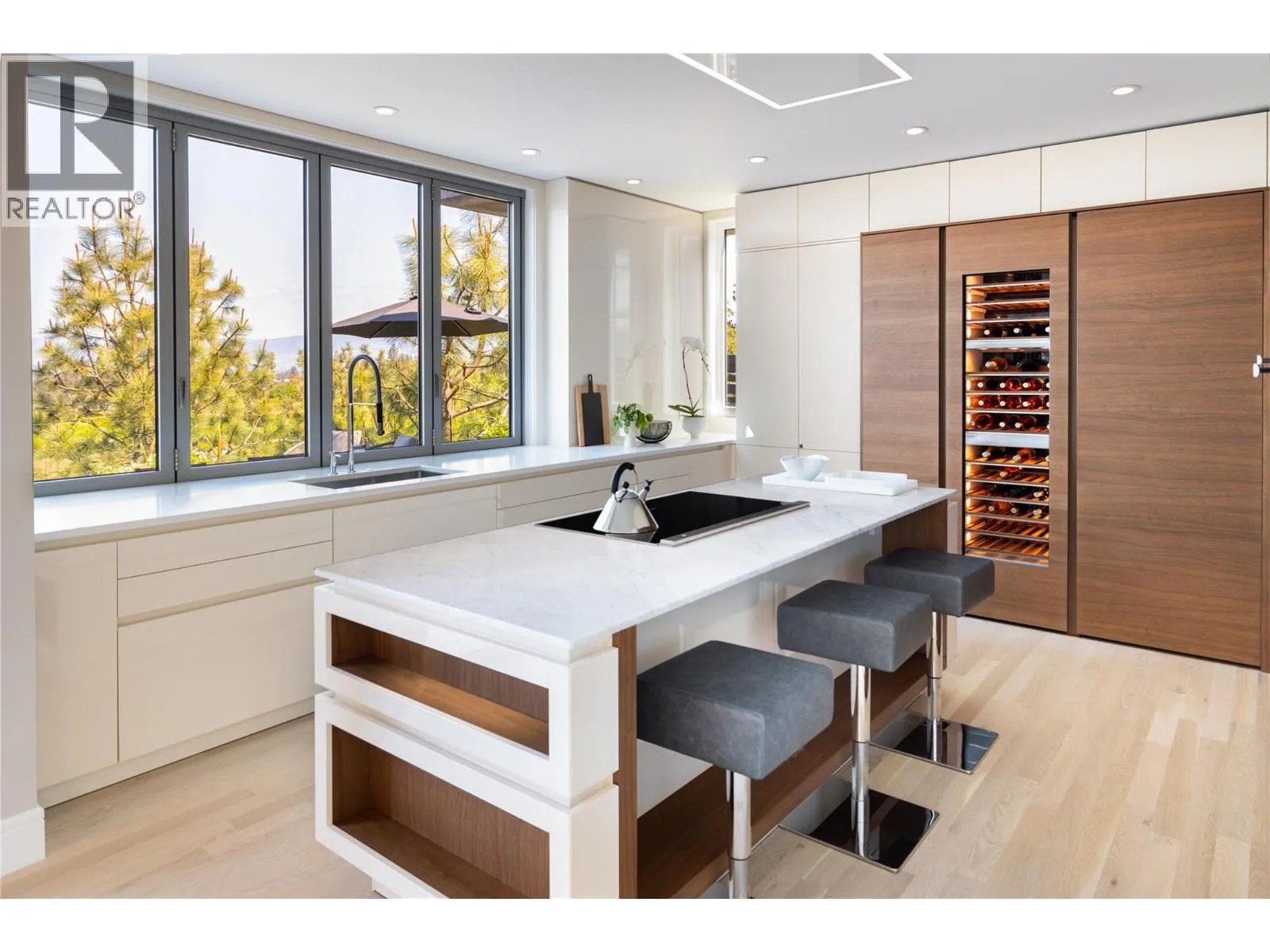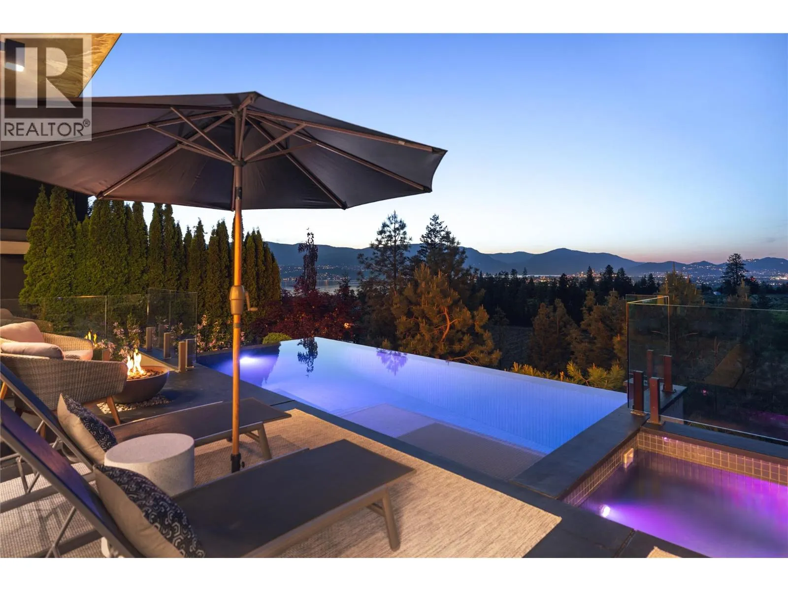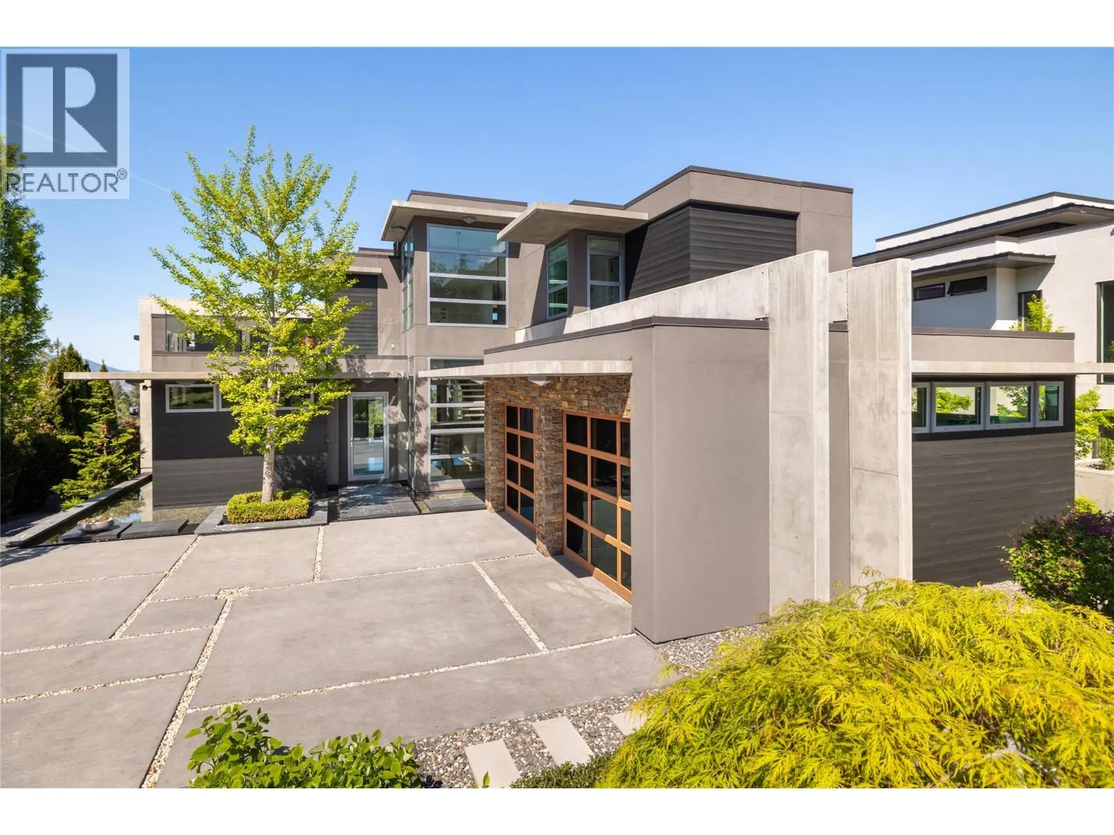 Discover extraordinary design and elevated living in this striking concrete-and-glass home in Kelownaâs coveted Lower Mission. This one-of-a-kind residence captivates with panoramic views of Okanagan Lake, the city skyline, and surrounding vineyards. From the moment you arrive, the homeâs bold form and refined craftsmanship set the tone. A dramatic floating-stair staircase, European white oak floors, and high-gloss stretch ceilings with ambient inset lighting underscore the sophisticated aesthetic. Floor-to-ceiling commercial-grade windows capture the landscapes, while open-concept living flows effortlessly to the outdoors. Entertain on a grand scale: full nano-doors open from the main floor to multiple patios and seating areas, including a built-in eating bar with a nano pass-through window. Head up to the rooftop patio and unwind in the hot tub or the eye-catching infinity poolâdesigned to appear as though itâs floating above the terrain. The designer kitchen is built for both performance and show-stopping style: two-tone Liecht cabinetry, top-of-the-line Miele appliances. A built-in espresso machine, double ovens, cooktop, fridge, freezer, wine fridge, all seamlessly integrated to host gatherings of any magnitude. See firsthand how this home sets a new standard for contemporary living in Kelowna. (id:27476)