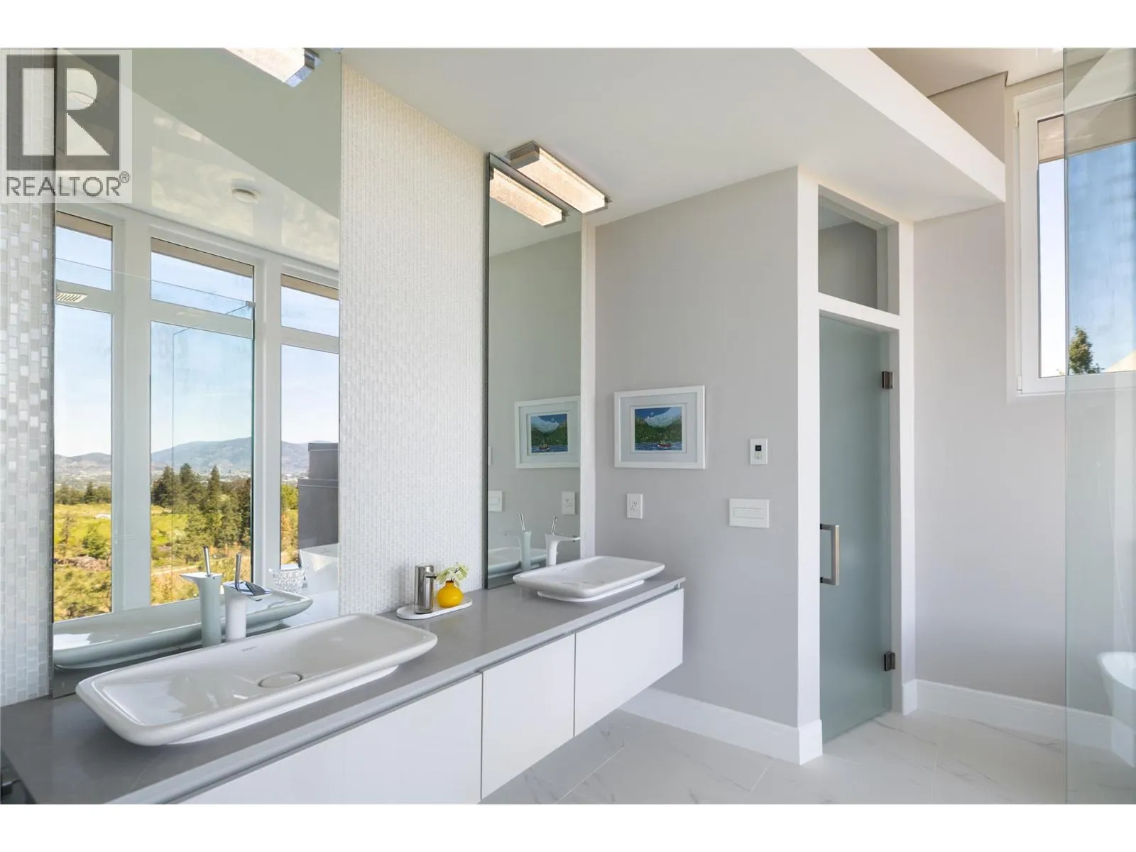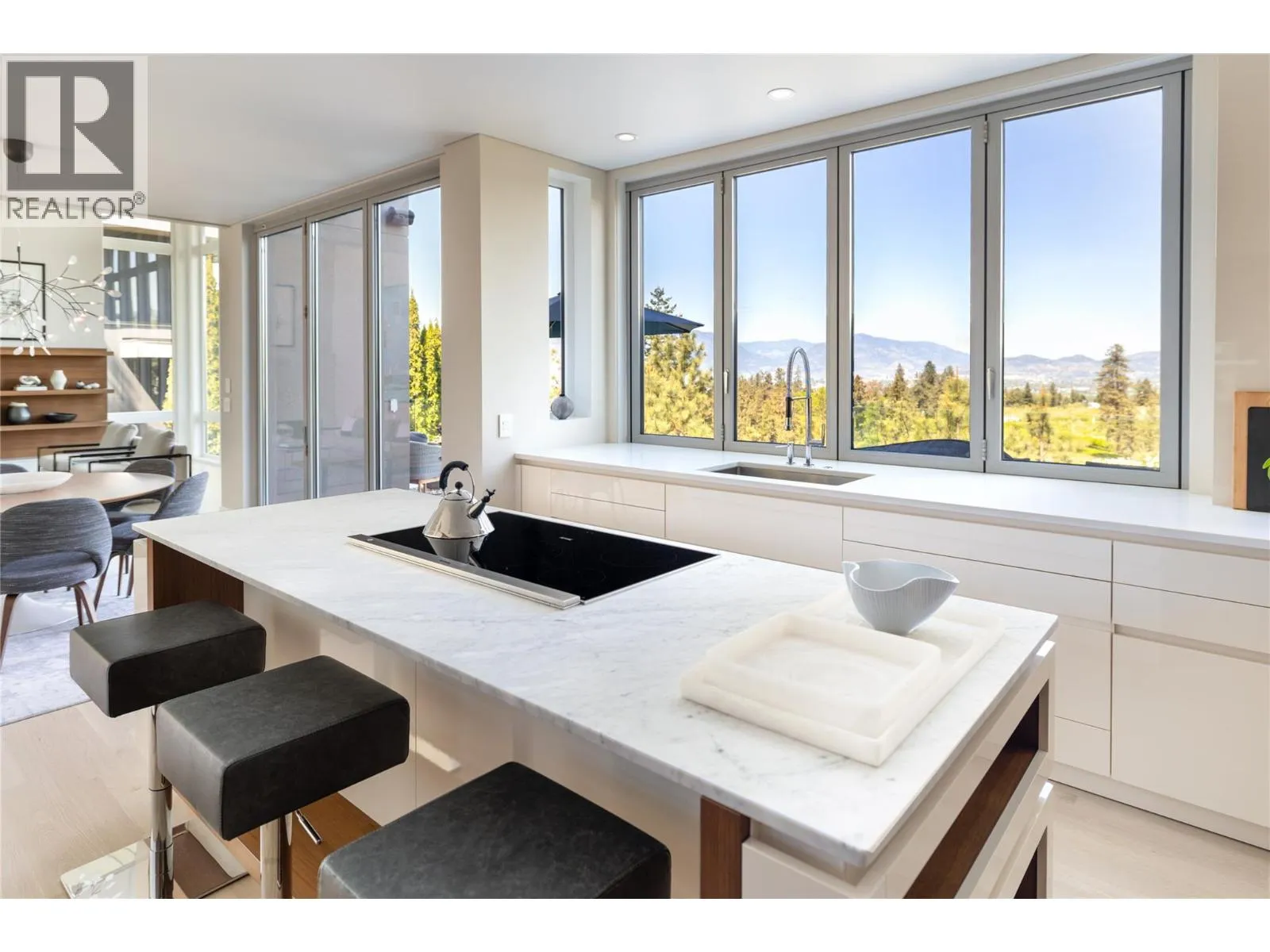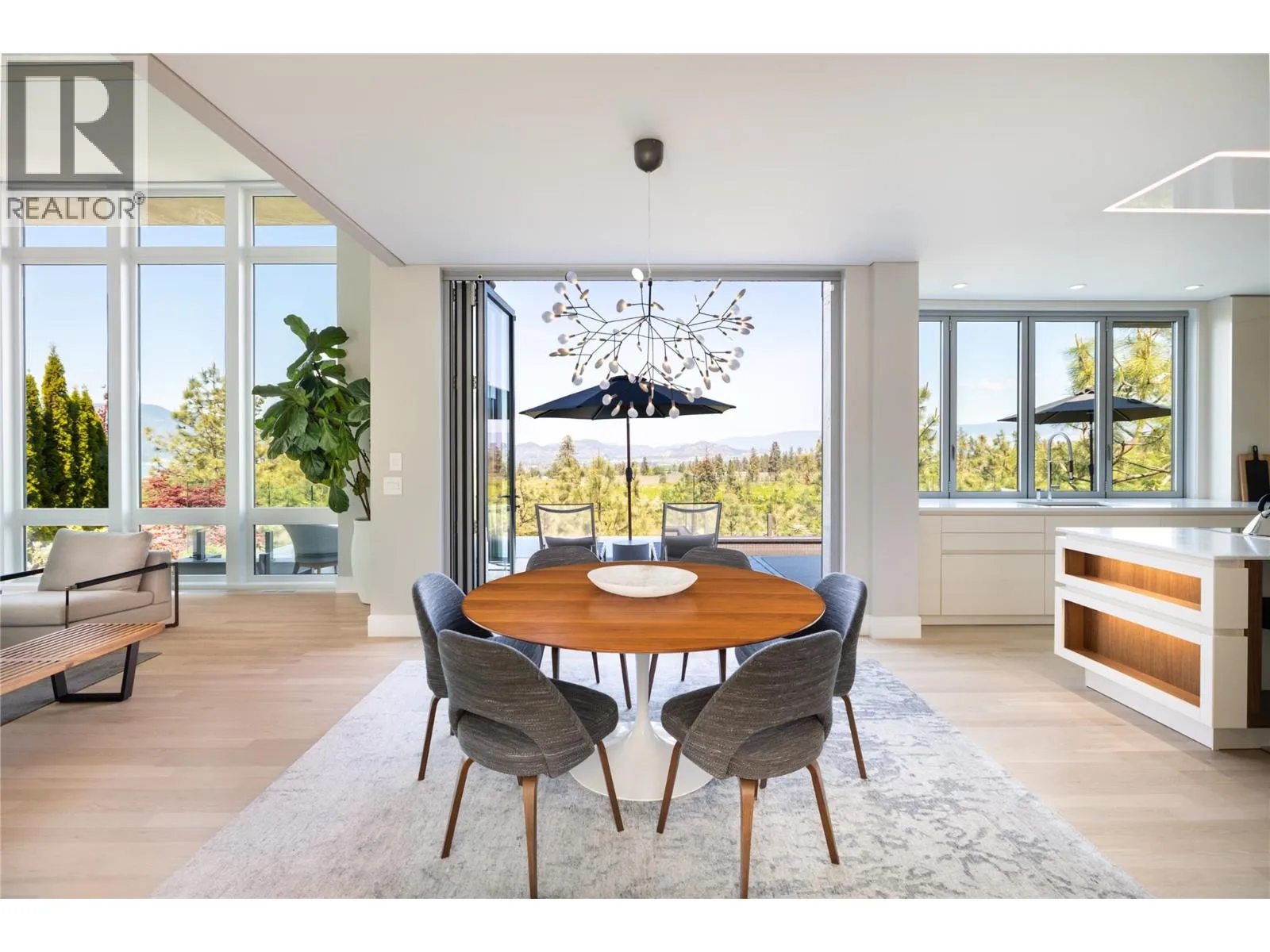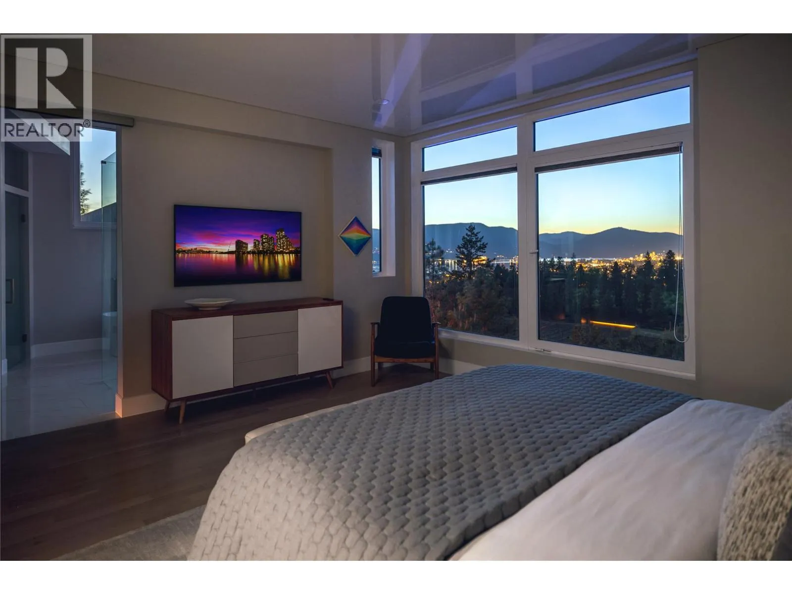 Discover extraordinary design and elevated living in this striking concrete-and-glass home in Kelownaâs coveted Lower Mission. This one-of-a-kind residence captivates with panoramic views of Okanagan Lake, the city skyline, and surrounding vineyards. From the moment you arrive, the homeâs bold form and refined craftsmanship set the tone. A dramatic floating-stair staircase, European white oak floors, and high-gloss stretch ceilings with ambient inset lighting underscore the sophisticated aesthetic. Floor-to-ceiling commercial-grade windows capture the landscapes, while open-concept living flows effortlessly to the outdoors. Entertain on a grand scale: full nano-doors open from the main floor to multiple patios and seating areas, including a built-in eating bar with a nano pass-through window. Head up to the rooftop patio and unwind in the hot tub or the eye-catching infinity poolâdesigned to appear as though itâs floating above the terrain. The designer kitchen is built for both performance and show-stopping style: two-tone Liecht cabinetry, top-of-the-line Miele appliances. A built-in espresso machine, double ovens, cooktop, fridge, freezer, wine fridge, all seamlessly integrated to host gatherings of any magnitude. See firsthand how this home sets a new standard for contemporary living in Kelowna. (id:27476)