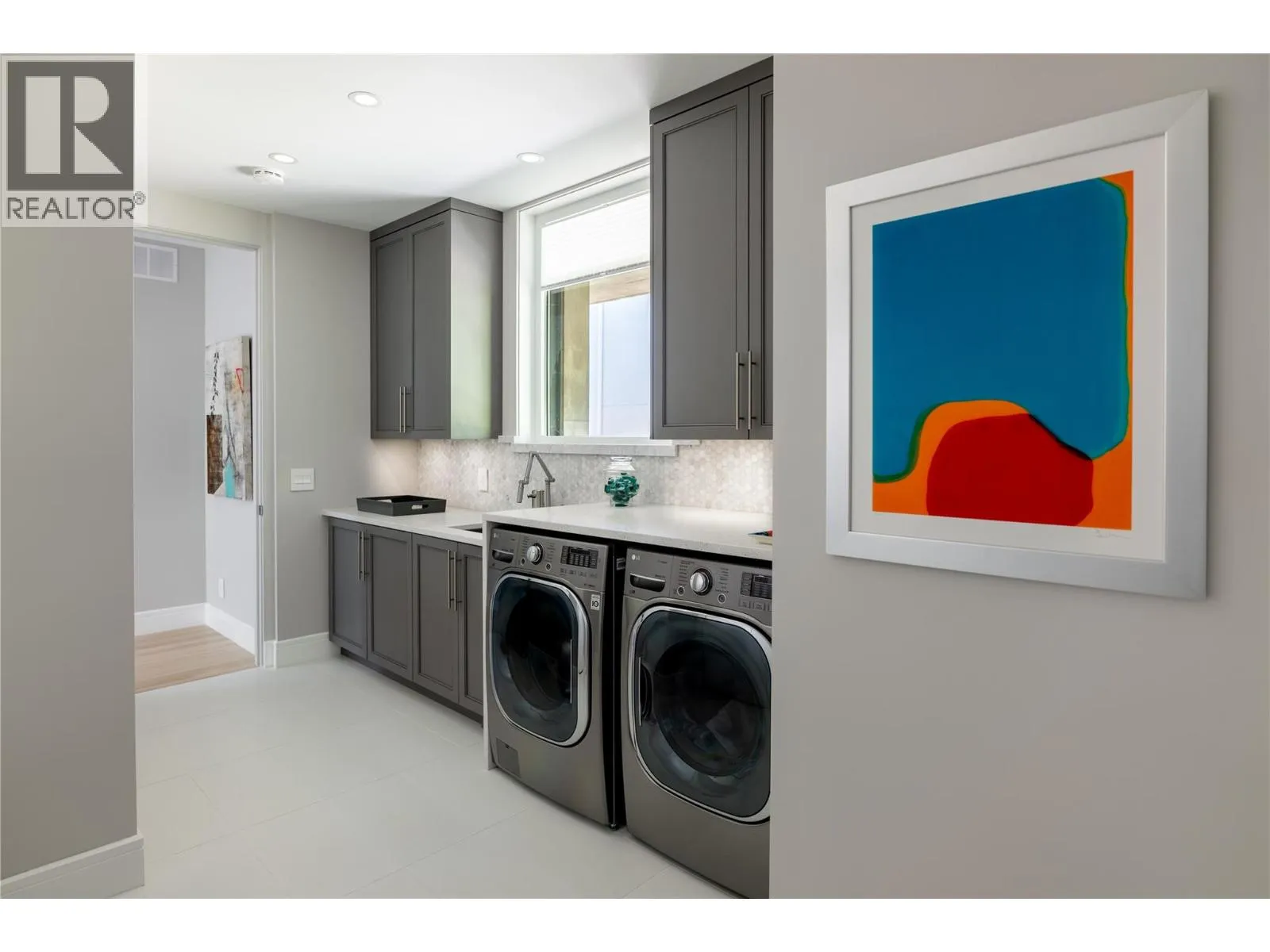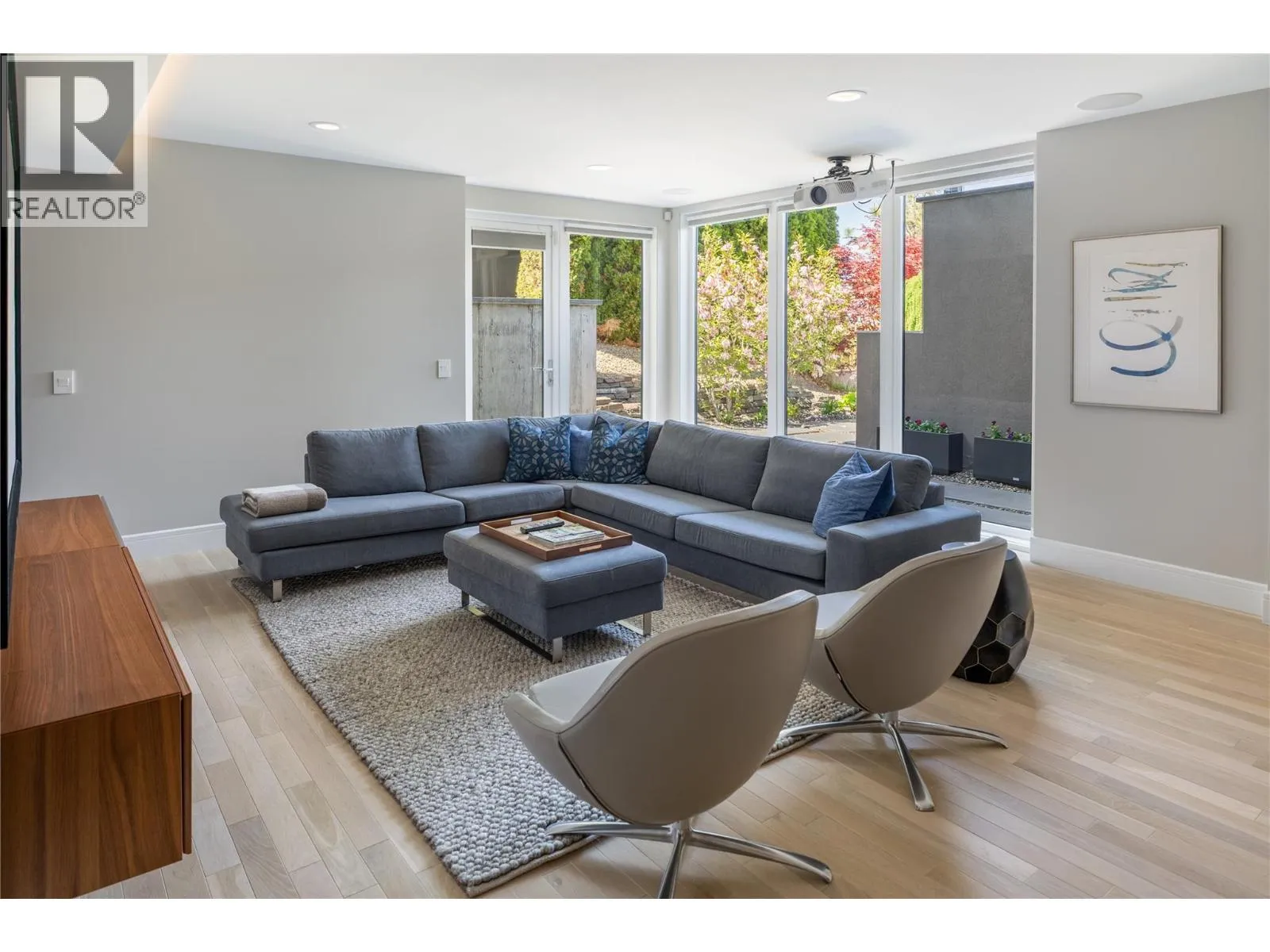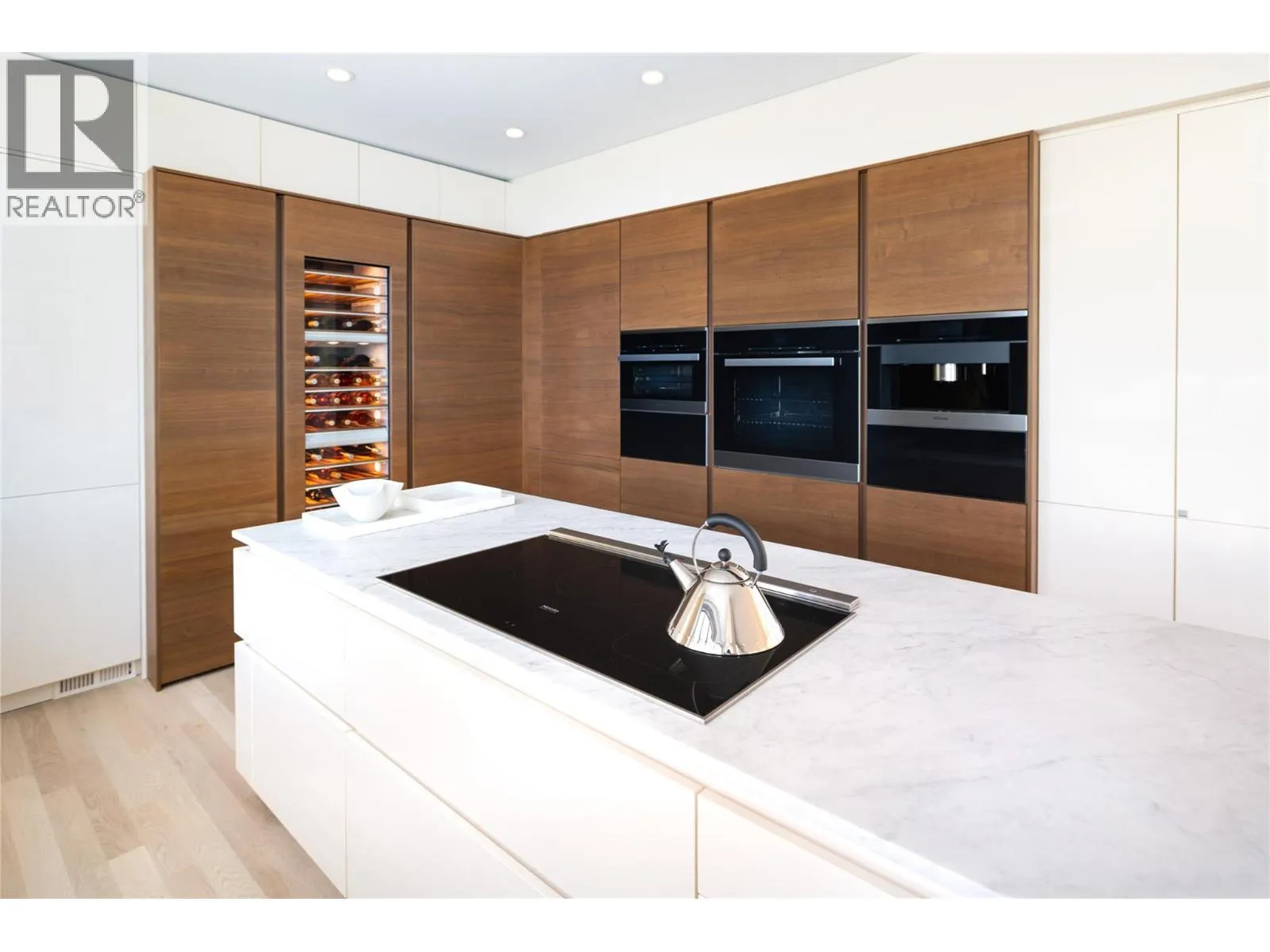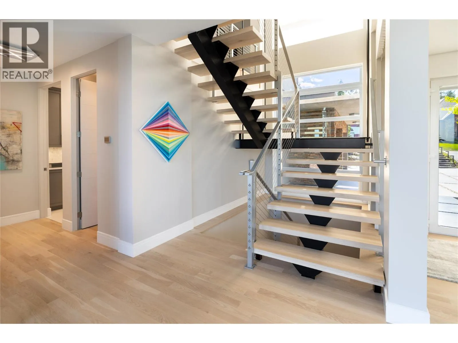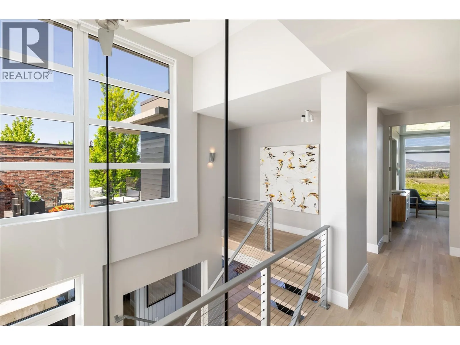 Discover extraordinary design and elevated living in this striking concrete-and-glass home in Kelownaâs coveted Lower Mission. This one-of-a-kind residence captivates with panoramic views of Okanagan Lake, the city skyline, and surrounding vineyards. From the moment you arrive, the homeâs bold form and refined craftsmanship set the tone. A dramatic floating-stair staircase, European white oak floors, and high-gloss stretch ceilings with ambient inset lighting underscore the sophisticated aesthetic. Floor-to-ceiling commercial-grade windows capture the landscapes, while open-concept living flows effortlessly to the outdoors. Entertain on a grand scale: full nano-doors open from the main floor to multiple patios and seating areas, including a built-in eating bar with a nano pass-through window. Head up to the rooftop patio and unwind in the hot tub or the eye-catching infinity poolâdesigned to appear as though itâs floating above the terrain. The designer kitchen is built for both performance and show-stopping style: two-tone Liecht cabinetry, top-of-the-line Miele appliances. A built-in espresso machine, double ovens, cooktop, fridge, freezer, wine fridge, all seamlessly integrated to host gatherings of any magnitude. See firsthand how this home sets a new standard for contemporary living in Kelowna. (id:27476)