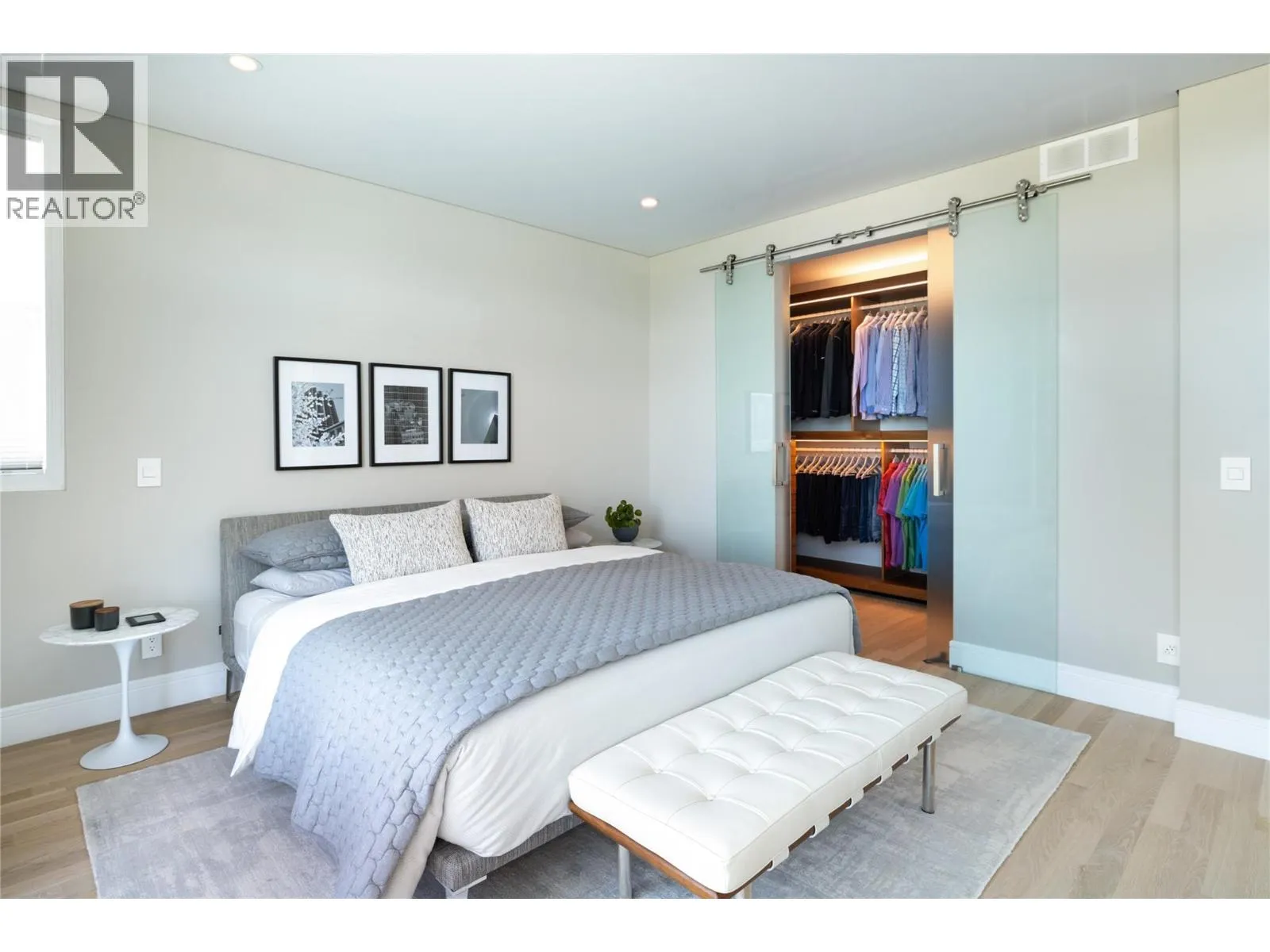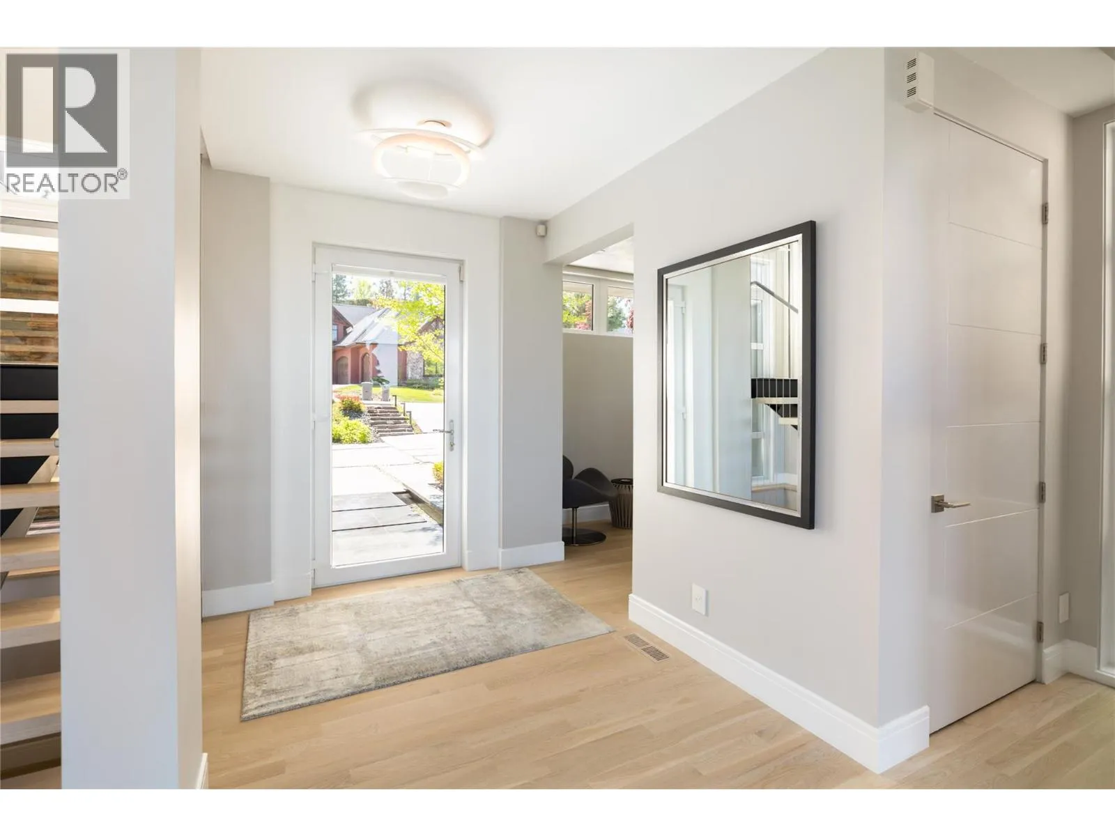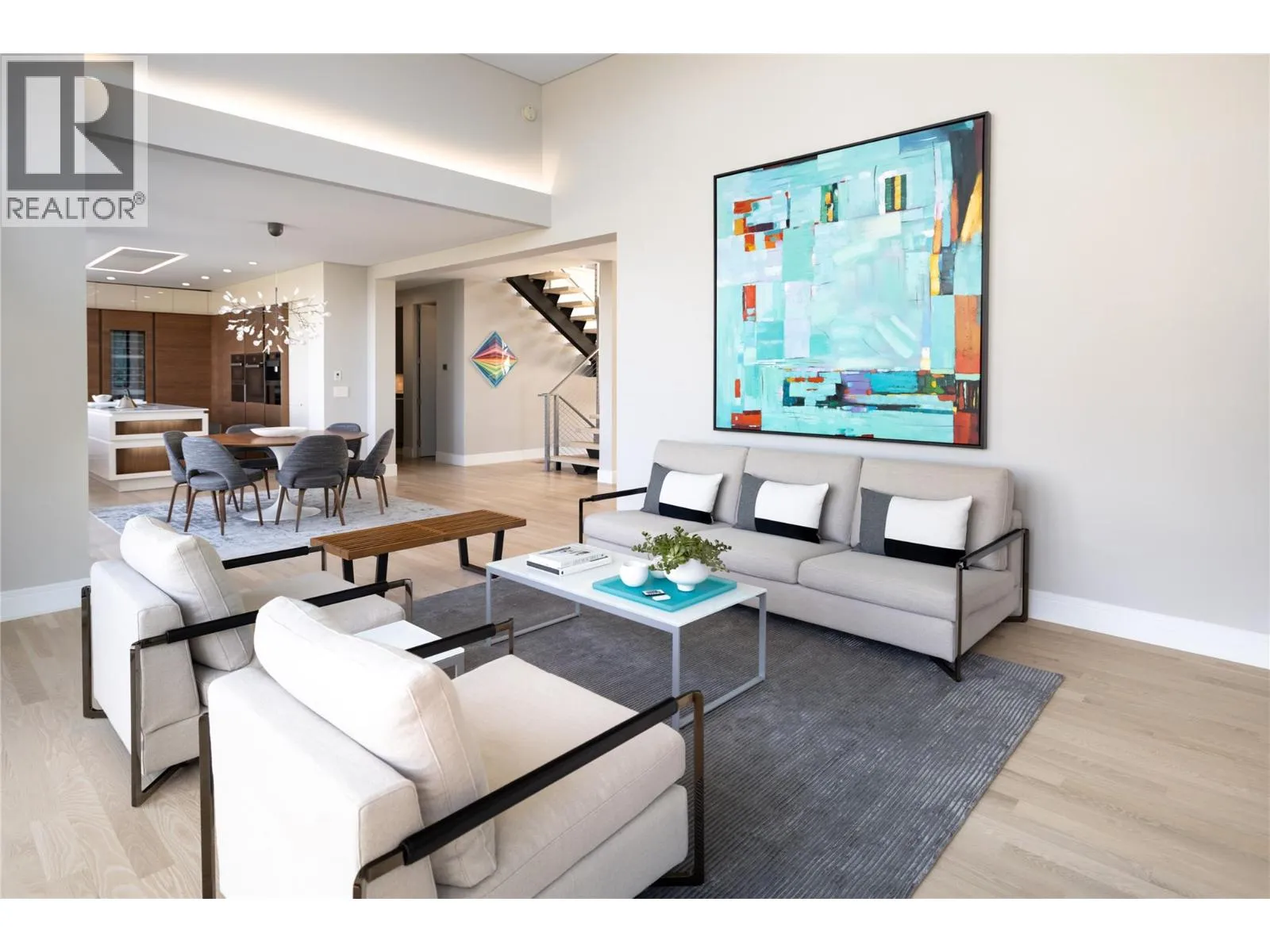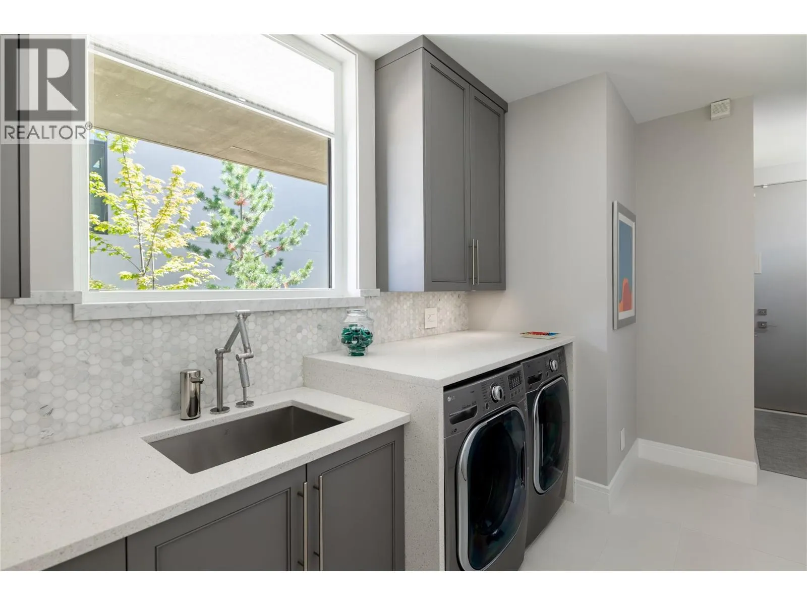 Discover extraordinary design and elevated living in this striking concrete-and-glass home in Kelownaâs coveted Lower Mission. This one-of-a-kind residence captivates with panoramic views of Okanagan Lake, the city skyline, and surrounding vineyards. From the moment you arrive, the homeâs bold form and refined craftsmanship set the tone. A dramatic floating-stair staircase, European white oak floors, and high-gloss stretch ceilings with ambient inset lighting underscore the sophisticated aesthetic. Floor-to-ceiling commercial-grade windows capture the landscapes, while open-concept living flows effortlessly to the outdoors. Entertain on a grand scale: full nano-doors open from the main floor to multiple patios and seating areas, including a built-in eating bar with a nano pass-through window. Head up to the rooftop patio and unwind in the hot tub or the eye-catching infinity poolâdesigned to appear as though itâs floating above the terrain. The designer kitchen is built for both performance and show-stopping style: two-tone Liecht cabinetry, top-of-the-line Miele appliances. A built-in espresso machine, double ovens, cooktop, fridge, freezer, wine fridge, all seamlessly integrated to host gatherings of any magnitude. See firsthand how this home sets a new standard for contemporary living in Kelowna. (id:27476)