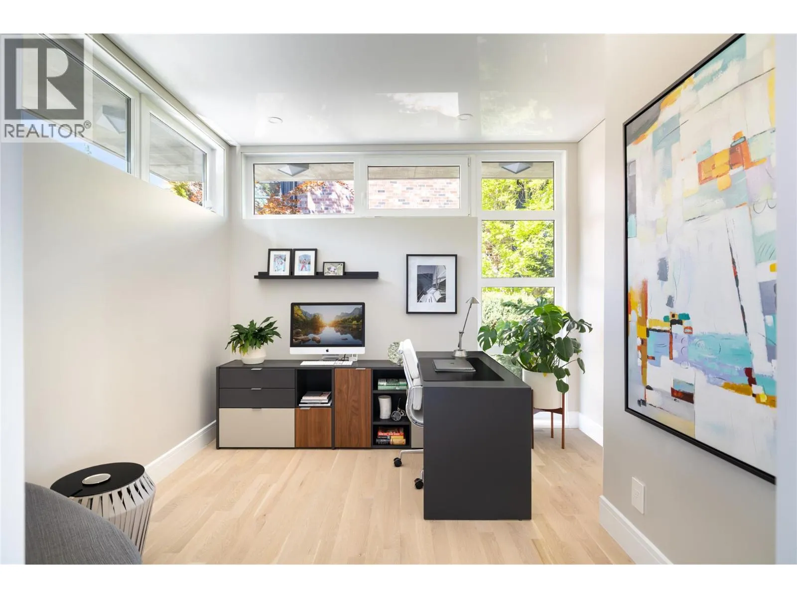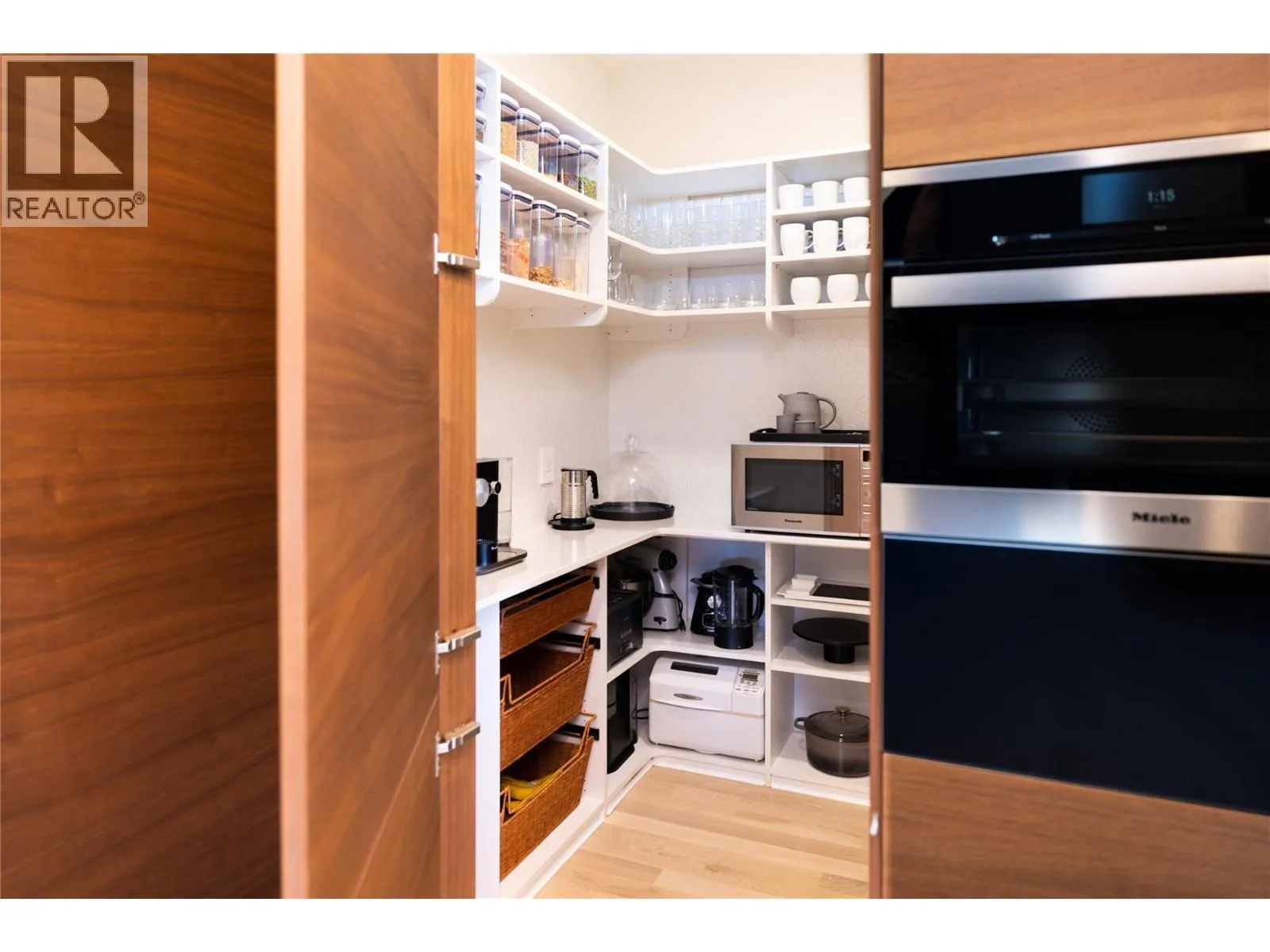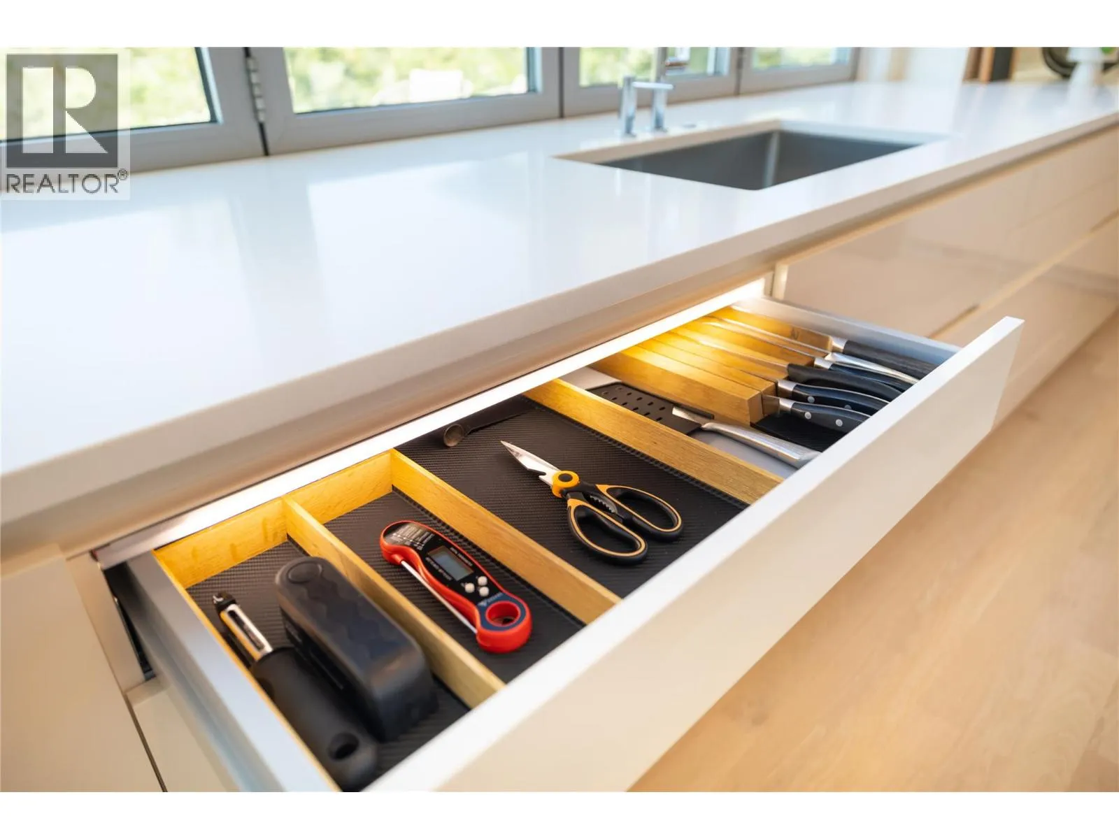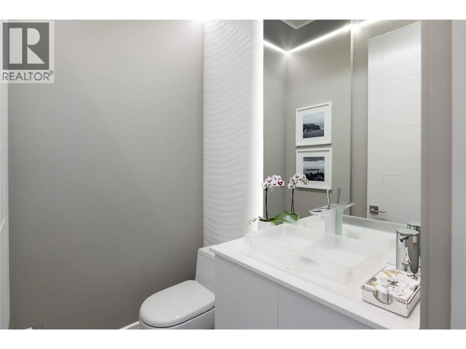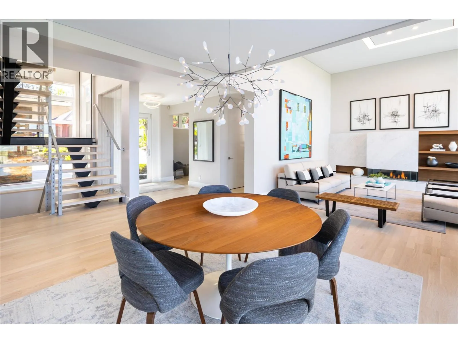 Discover extraordinary design and elevated living in this striking concrete-and-glass home in Kelownaâs coveted Lower Mission. This one-of-a-kind residence captivates with panoramic views of Okanagan Lake, the city skyline, and surrounding vineyards. From the moment you arrive, the homeâs bold form and refined craftsmanship set the tone. A dramatic floating-stair staircase, European white oak floors, and high-gloss stretch ceilings with ambient inset lighting underscore the sophisticated aesthetic. Floor-to-ceiling commercial-grade windows capture the landscapes, while open-concept living flows effortlessly to the outdoors. Entertain on a grand scale: full nano-doors open from the main floor to multiple patios and seating areas, including a built-in eating bar with a nano pass-through window. Head up to the rooftop patio and unwind in the hot tub or the eye-catching infinity poolâdesigned to appear as though itâs floating above the terrain. The designer kitchen is built for both performance and show-stopping style: two-tone Liecht cabinetry, top-of-the-line Miele appliances. A built-in espresso machine, double ovens, cooktop, fridge, freezer, wine fridge, all seamlessly integrated to host gatherings of any magnitude. See firsthand how this home sets a new standard for contemporary living in Kelowna. (id:27476)